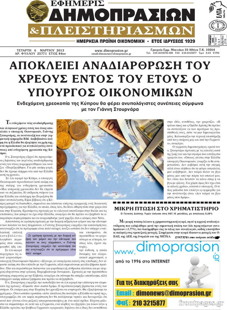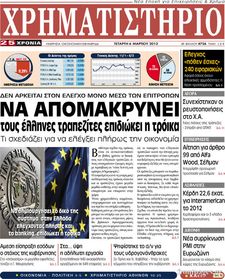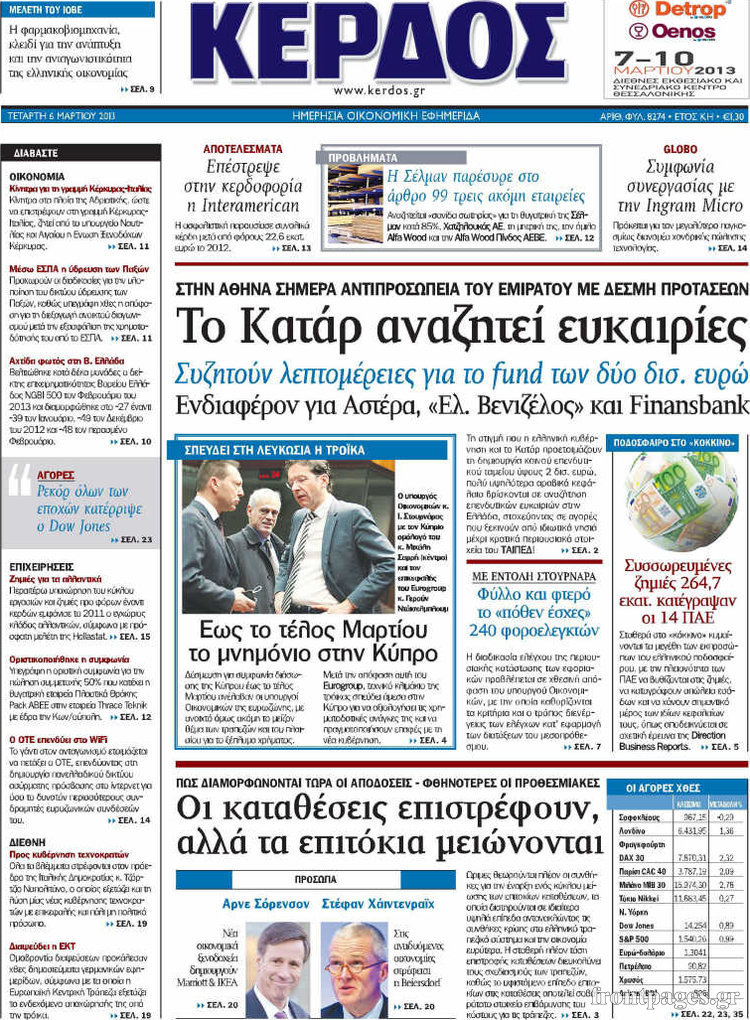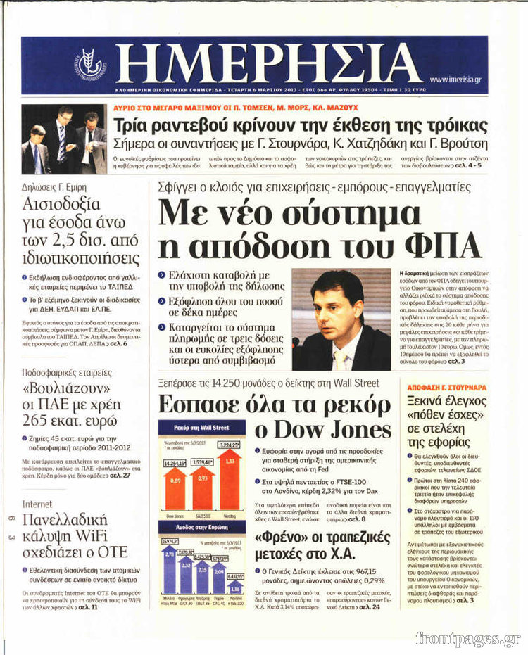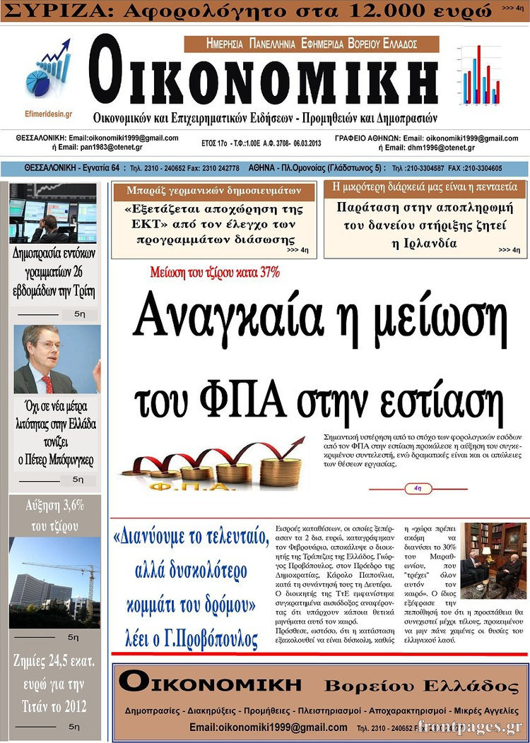 Οι οικονομικές εφημερίδες Enikos Newsroom 09:18, Τετάρτη 06 Μαρτίου 2013 Media Οι οικονομικές εφημερίδες Τα πρωτοσέλιδα των οικονομικών εφημερίδων. ΕΦΗΜΕΡΙΔΕΣ ΟΙΚΟΝΟΜΙΚΕΣ ΕΦΗΜΕΡΙΔΕΣ ΠΡΩΤΟΣΕΛΙΔΑ Μοιράσου το: σχολίασε κι εσύ (0 σχόλια) Ακολουθήστε το enikos.gr στο Google News και μάθετε πρώτοι όλες τις ειδήσεις Δείτε όλες τις τελευταίες ειδήσεις από την Ελλάδα και τον Κόσμο στο enikos.gr Ειδήσεις Ροή Ειδήσεων 3 λεπτά πριν Νίκος Παππάς: Το παρασκήνιο της αποπομπής του – Οι μπουνιές, τα μηνύματα μετά την επίθεση και η διαγραφή από τον ΣΥΡΙΖΑ 1 ώρα πριν Φοροδιαφυγή: Ποιοι φορολογούμενοι κινδυνεύουν να πληρώσουν «τσουχτερά» πρόστιμα 29 λεπτά πριν Φοινικούντα: Παραδόθηκε 30χρονος στην Καλαμάτα για τη διπλή δολοφονία 45 λεπτά πριν Αγρότες: Ανυποχώρητοι στα μπλόκα – Στις Σέρρες σήμερα η κρίσιμη συνεδρίαση της Πανελλαδικής Επιτροπής 57 λεπτά πριν Τα επίσημα χρονοδιαγράμματα που η Τουρκία θα παραλάβει τα Eurofighter 2 ώρες πριν Καούρα: Το μπαχαρικό που είναι «εξίσου αποτελεσματικό» με την ομεπραζόλη, σύμφωνα με ειδικούς 3 ώρες πριν Τα ζώδια σήμερα, Πέμπτη 18 Δεκεμβρίου: Λέοντες, η καρδιά σας θέλει να εκφραστεί 2 ώρες πριν Οπτική ψευδαίσθηση: Μόνο οι πιο έξυπνοι άνθρωποι θα βρουν 7 ξωτικά 15 δευτερόλεπτα 23 ώρες πριν 20 χρόνια τα Χριστούγεννα ξεκινούν στα Public με μεγάλη ποικιλία σε δώρα! 3 λεπτά πριν Νίκος Παππάς: Το παρασκήνιο της αποπομπής του – Οι μπουνιές, τα μηνύματα μετά την επίθεση και η διαγραφή από τον ΣΥΡΙΖΑ 6 λεπτά πριν Κίνηση: «Κόκκινος» ο Κηφισός, μποτιλιάρισμα στο κέντρο της Αθήνας – Καθυστερήσεις 25′ στην Αττική Οδό 11 λεπτά πριν Αλμπέρτο Εσκενάζυ: Το μεσημέρι το «τελευταίο αντίο» στο αποτεφρωτήριο της Ριτσώνας – Η απόφαση της οικογένειάς του 16 λεπτά πριν Τραγωδία στη Θεσσαλονίκη: Νεκρή η 57χρονη που παρασύρθηκε από αυτοκίνητο στον Εύοσμο 20 λεπτά πριν Ανακαλύφθηκαν σπάνια λυχνία λαδιού και μια γραφίδα 2.000 ετών ENIKOS NETWORK Ουρική αρθρίτιδα: Μεγάλη μελέτη αποκαλύπτει τι μπορεί να προκαλεί τη νόσο Τι σημαίνει όταν ο σκύλος σας σάς φέρνει τυχαία αντικείμενα, σύμφωνα με εκπαιδεύτρια Οφειλές προς το Δημόσιο: «Φρένο» στα σενάρια για νέα ρύθμιση – Τι απαντά το υπουργείο Εθνικής Οικονομίας και Οικονομικών Φοροδιαφυγή: Ποιοι φορολογούμενοι κινδυνεύουν να πληρώσουν «τσουχτερά» πρόστιμα Χαρτογραφώντας το «σημείο χωρίς επιστροφή»: Για πρώτη φορά αποκαλύπτεται με λεπτομέρεια το ακανθώδες όριο της ατμόσφαιρας τ... Η Google καταργεί τη λειτουργία «dark web report» – Πώς θα μπορούν οι χρήστες να διαγράφουν τα δεδομένα τους περισσότερα 08:00 , Πέμπτη 18 Δεκεμβρίου 2025 Την Κυριακή με τη Realnews: Δωροεπιταγή 10€ Δωροεπιταγή αξίας 10€ για αγορές άνω των 60€ από τα πολυκαταστήματα FactoryOutlet H προσφορά ι... 07:50 , Πέμπτη 18 Δεκεμβρίου 2025 «Το σόι σου»: Backstage στα γυρίσματα για το εορταστικό επεισόδιο «Το σόι σου» φορά τα γιορτινά του για τα Χριστούγεννα και η Όλγα Λαφαζάνη, με την κάμερα του «... 07:36 , Πέμπτη 18 Δεκεμβρίου 2025 Οι αθλητικές μεταδόσεις 18/12/2025 – Πού θα δείτε τον αγώνα της ΑΕΚ με την Κραϊόβα για το Conference League Τα ματς ΑΕΚ – Ουνιβερσιτάτεα Κραϊόβα για το Conference League και Παναθηναϊκός – Χάποελ Τελ Αβ... 05:48 , Πέμπτη 18 Δεκεμβρίου 2025 Οι οικονομικές εφημερίδες 18/12/2025 Διαβάστε τα πρωτοσέλιδα από τις οικονομικές εφημερίδες, σήμερα 18/12/2025. ΤΕΛΕΥΤΑΙΕΣ ΕΙΔΗΣΕΙΣ 3 λεπτά πριν Νίκος Παππάς: Το παρασκήνιο της αποπομπής του – Οι... 6 λεπτά πριν Κίνηση: «Κόκκινος» ο Κηφισός, μποτιλιάρισμα στο... 11 λεπτά πριν Αλμπέρτο Εσκενάζυ: Το μεσημέρι το «