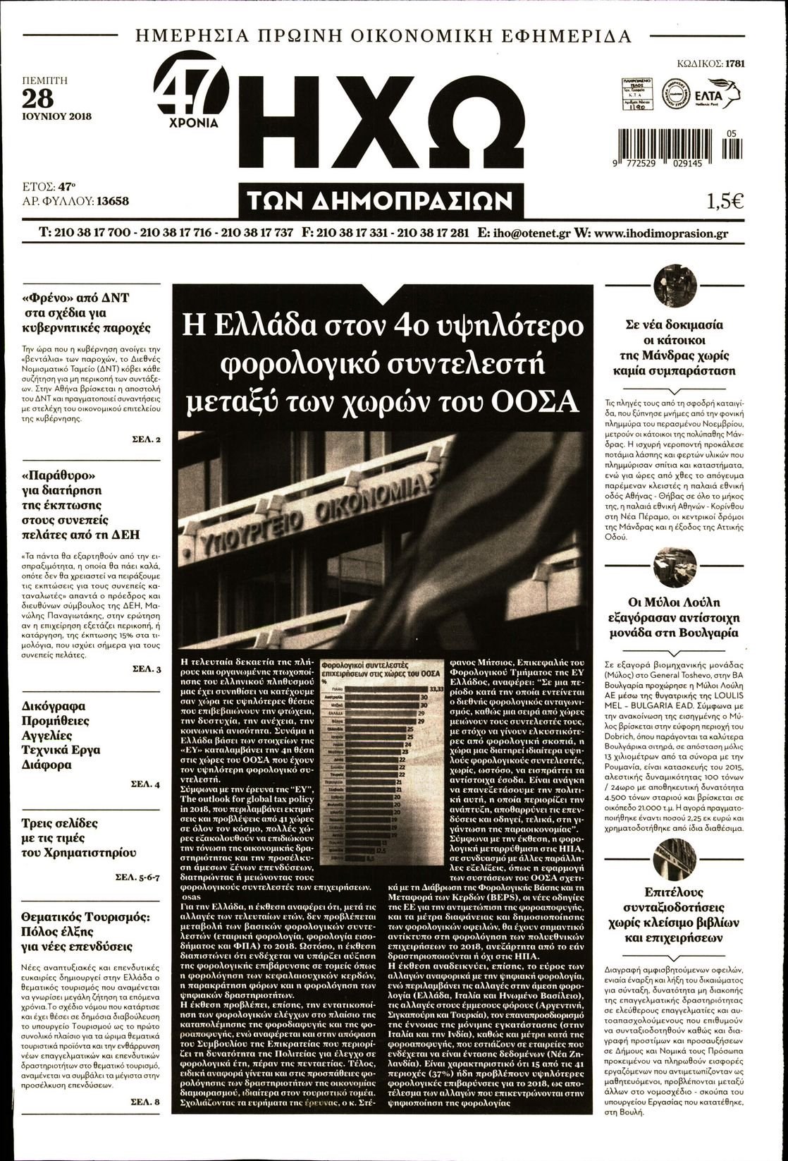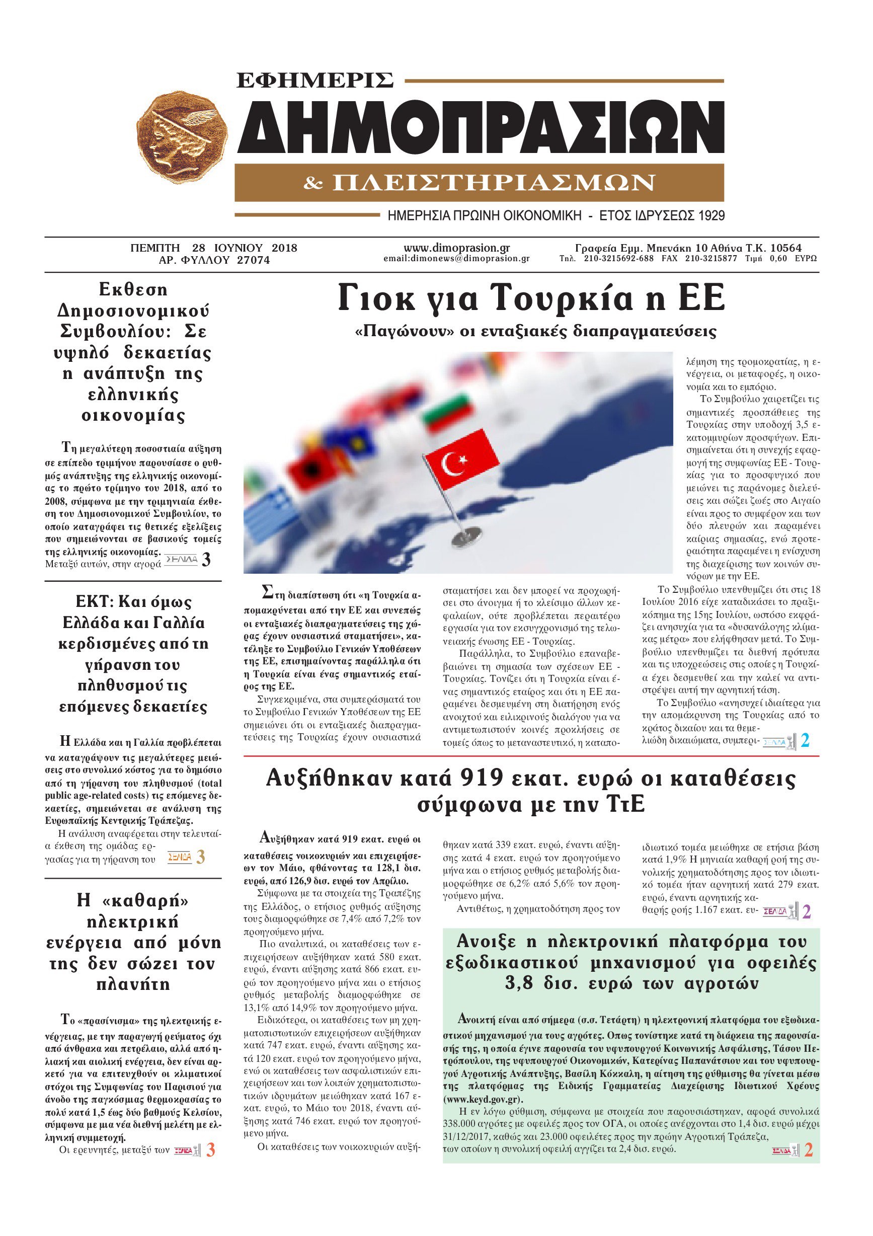 Οι οικονομικές εφημερίδες 28/6/2018 Enikos Newsroom 06:19, Πέμπτη 28 Ιουνίου 2018 Media Διαβάστε τα πρωτοσέλιδα των οικονομικών εφημερίδων. ΟΙΚΟΝΟΜΙΚΕΣ ΕΦΗΜΕΡΙΔΕΣ ΠΡΩΤΟΣΕΛΙΔΑ Μοιράσου το: σχολίασε κι εσύ (0 σχόλια) Ακολουθήστε το enikos.gr στο Google News και μάθετε πρώτοι όλες τις ειδήσεις Δείτε όλες τις τελευταίες ειδήσεις από την Ελλάδα και τον Κόσμο στο enikos.gr Ειδήσεις Ροή Ειδήσεων 3 ώρες πριν Αγρότες: «Όχι στον διάλογο, μας εμπαίζει η κυβέρνηση» – Αποφάσισαν κλιμάκωση των κινητοποιήσεων, τι θα γίνει τα Χριστούγεννα 3 ώρες πριν Την πρώτη Belharra παρέλαβε η χώρα μας, υψώθηκε η ελληνική σημαία στη φρεγάτα «Κίμων» – Δένδιας: «Το ισχυρότερο Πολεμικό Ναυτικό που είχε ποτέ ο ελληνισμός» 1 ώρα πριν Γιώργος Μαζωνάκης: «Έχει υποστεί ένα σωρό εκβιαστικές πρακτικές – Του είπαν ότι θα του βάλουν τον συγκεκριμένο άνθρωπο να τον καταγγείλει» 3 ώρες πριν Μιχάλης Χουρδάκης: «Είμαι διαθέσιμος να συμβάλω στην προσωρινή κάλυψη του ιατρείου της Ψερίμου» – Η επιστολή στον Άδωνι Γεωργιάδη 3 ώρες πριν Εξώδικο Γεωργιάδη στην Κωνσταντοπούλου – «Με κατηγόρησε ότι έχω καταδικαστεί για παιδεραστία» 53 λεπτά πριν Γάμος: 11 ψυχρές αλλά ευγενικές φράσεις, που λέει ένας άνδρας όταν σκέφτεται τον χωρισμό 4 ώρες πριν Τα 5 ζώδια που θα ευνοηθούν στα οικονομικά τους το 2026 – «Τραβούν το χρήμα σαν μαγνήτες» 5 ώρες πριν Αυτό που κρύβεται κάτω από τη Γροιλανδία θα μπορούσε να ανατρέψει όσα γνωρίζουμε για την άνοδο της στάθμης των θαλασσών 1 ημέρα πριν 20 χρόνια τα Χριστούγεννα ξεκινούν στα Public με μεγάλη ποικιλία σε δώρα! 9 λεπτά πριν Στη φυλακή ο «Έλληνας Εσκομπάρ» και τρεις συνεργοί του για το φορτίο με την κοκαΐνη – Τι υποστήριξε στην απολογία του 13 λεπτά πριν ΕΕ: Καλεί τα Σκόπια να σέβονται τις δεσμεύσεις από τη διαδικασία ένταξης και το Διεθνές Δίκαιο – Η χρηματοδότηση του Διαδρόμου Χ 19 λεπτά πριν Σοκ στη Σουηδία: 12χρονος πληρωμένος δολοφόνος σκότωσε λάθος άτομο 24 λεπτά πριν FIFA: Έτοιμη να… επανεντάξει τη Ρωσία από το 2026 28 λεπτά πριν Live η κίνηση: Στο «κόκκινο» Κηφισός, Κηφισίας και οι δρόμοι στο κέντρο – Καθυστερήσεις και στην Αττική Οδό ENIKOS NETWORK Σκέφτεστε συνέχεια συζητήσεις που έχετε κάνει; Τι σημαίνει αυτό, σύμφωνα με ειδικό Ξεκίνησε η «επέλαση» της γρίπης στην Ελλάδα-Ποιοι κινδυνεύουν Κλιμάκωση των κινητοποιήσεων αποφάσισαν οι αγρότες, κλείνουν παρακαμπτήριους την Παρασκευή – Τι απαντά η κυβέρνηση Ευλογιά αιγοπροβάτων: Νέες αποζημιώσεις ύψους 26,02 εκατ. ευρώ σε κτηνοτρόφους – Η κατανομή ανά Περιφέρεια Χαρτογραφώντας το «σημείο χωρίς επιστροφή»: Για πρώτη φορά αποκαλύπτεται με λεπτομέρεια το ακανθώδες όριο της ατμόσφαιρας τ... Η Google καταργεί τη λειτουργία «dark web report» – Πώς θα μπορούν οι χρήστες να διαγράφουν τα δεδομένα τους περισσότερα 17:45 , Πέμπτη 18 Δεκεμβρίου 2025 ROUK ZOUK: Εορταστικό επεισόδιο με καλεσμένους τους πρωταγωνιστές του «Γιατί ρε πατέρα» Το Σάββατο 20 Δεκεμβρίου στις 21:00, η Ζέτα Μακρυπούλια υποδέχεται εκλεκτούς ηθοποιούς που όλο... 17:20 , Πέμπτη 18 Δεκεμβρίου 2025 Άγιος έρωτας: Η Χριστίνα εξομολογείται στον πατέρα Νικόλαο, απόψε στις 21:00 στον Alpha Η Νότα αποφασίζει να εκδικηθεί τον Πέτρο και τον Στέφανο, για χάρη του Λούη, όμως τα πράγματα ... 16:50 , Πέμπτη 18 Δεκεμβρίου 2025 Να μ’ αγαπάς: Ζωή και Φωτεινή συμφιλιώνονται ως μάνα με κόρη, απόψε στις 20:00 Η ταυτότητα του Άγγελου αποκαλύπτεται στο νέο επεισόδιο της σειράς “Να μ’ αγαπάς... 15:52 , Πέμπτη 18 Δεκεμβρίου 2025 Το Σπίτι Δίπλα Στο Ποτάμι: Το καθηλωτικό τε