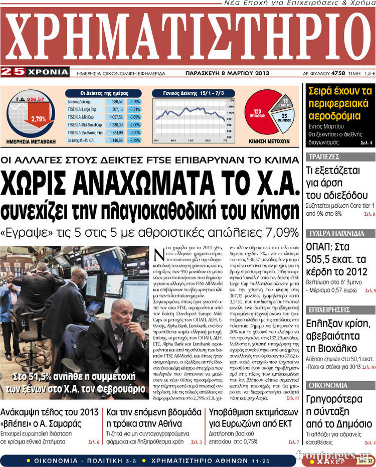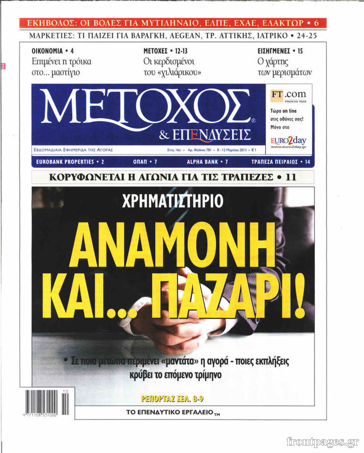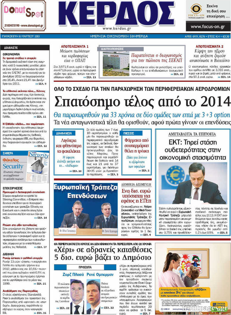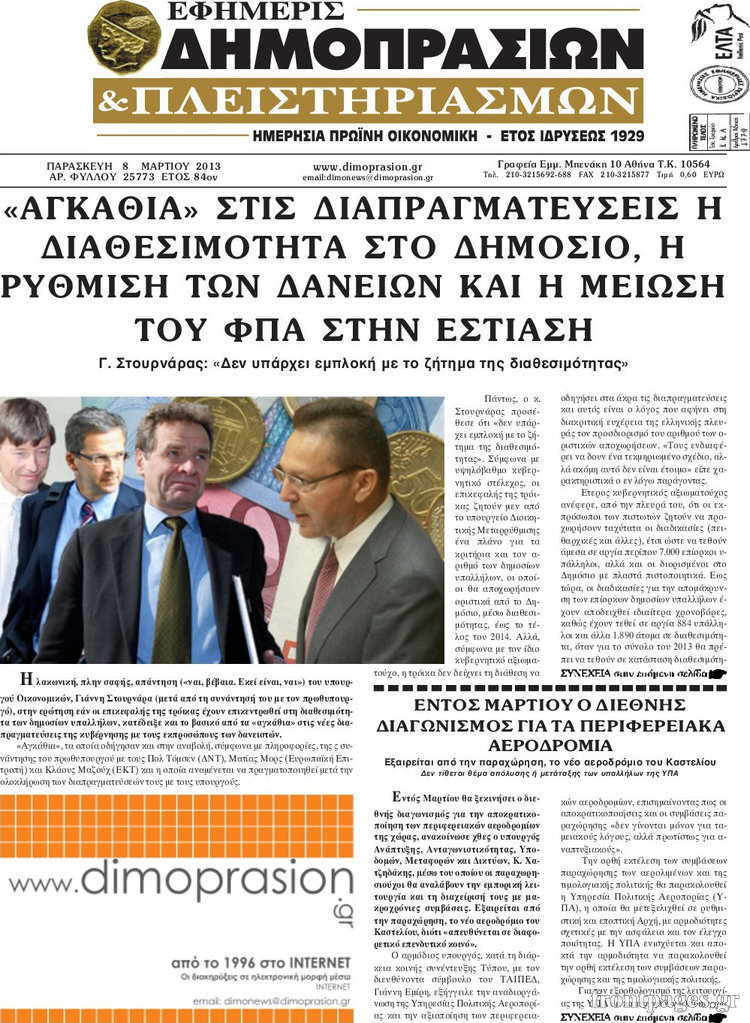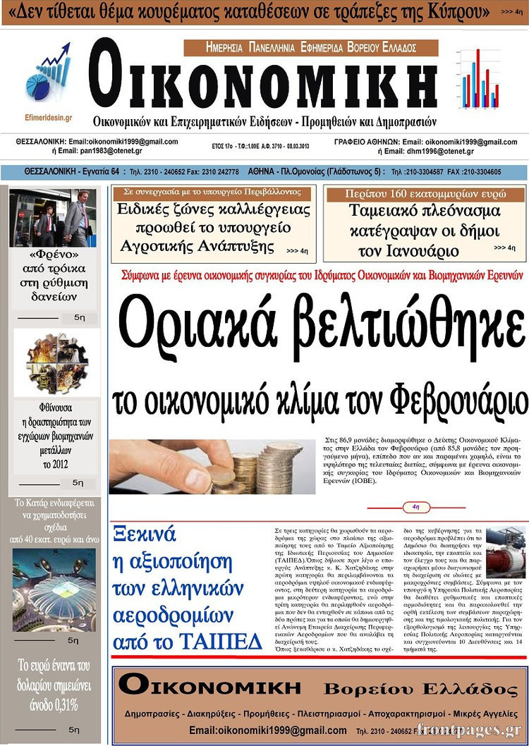 Οι οικονομικές εφημερίδες Enikos Newsroom 08:27, Παρασκευή 08 Μαρτίου 2013 Media Οι οικονομικές εφημερίδες ΕΦΗΜΕΡΙΔΕΣ ΟΙΚΟΝΟΜΙΚΕΣ ΕΦΗΜΕΡΙΔΕΣ ΠΡΩΤΟΣΕΛΙΔΑ Μοιράσου το: σχολίασε κι εσύ (0 σχόλια) Ακολουθήστε το enikos.gr στο Google News και μάθετε πρώτοι όλες τις ειδήσεις Δείτε όλες τις τελευταίες ειδήσεις από την Ελλάδα και τον Κόσμο στο enikos.gr Ειδήσεις Ροή Ειδήσεων 36 λεπτά πριν Τσιάρας: Καλούμε άμεσα τους εκπροσώπους των αγροτών σε ουσιαστικό διάλογο – Υπάρχουν περιθώρια, η κοινωνία περιμένει υπευθυνότητα 3 ώρες πριν Κυψέλη: Επεισόδιο με μαχαίρωμα μέσα σε σχολείο – Τραυματίστηκε 14χρονη 57 λεπτά πριν Λάρισα: Αναβλήθηκε για τον Οκτώβριο του 2026 η δίκη δύο αγροτών του μπλόκου της Νίκαιας 5 ώρες πριν Σίδνεϊ: Τα ονόματα των θυμάτων από την τρομοκρατική επίθεση – Η 10χρονη Ματίλντα και ο επιζών του Ολοκαυτώματος που έσωσε τη γυναίκα του 6 ώρες πριν Δείτε LIVE το συνέδριο «Ελληνικός Τουρισμός, Μια Εθνική Υπόθεση!» 4 ώρες πριν Μακροζωία: 55χρονος που ισχυρίζεται ότι βιολογικά είναι 20 ετών μοιράζεται μια απλή συμβουλή για υγιή εγκέφαλο 6 ώρες πριν Τα 3 ζώδια που μπαίνουν σε μια νέα δυναμική εποχή – «Είστε έτοιμοι για όλα» 5 ώρες πριν Οι 8 φράσεις που δίνουν αμέσως την εντύπωση πως είστε δύσκολος άνθρωπος 7 ώρες πριν Κληρονόμησε 2,8 εκατ. ευρώ και φοβάται ότι οι άνδρες θα την πλησιάζουν για τα λεφτά – «Μήπως καλύτερα να το κρατήσω μυστικό;» 5 λεπτά πριν Λαμία: Άγριο ξύλο μεταξύ μαθητριών στο κέντρο της πόλης – Δύο τραυματίες 10 λεπτά πριν Θανάσης Τσαλταμπάσης: Θα γίνει ξανά πατέρας – «Περιμένουμε και δεύτερο, είναι προχωρημένη η εγκυμοσύνη» 16 λεπτά πριν Στιγμές τρόμου για ηλικιωμένη στην Ιεράπετρα: Την έδεσαν και την φίμωσαν στην προσπάθειά τους να την ληστέψουν 23 λεπτά πριν Τα 3 ζώδια που θα έχουν τύχη «βουνό» έως τις 21 Δεκεμβρίου – «Η ανατροπή που περιμένετε πλησιάζει» 30 λεπτά πριν Ολυμπιακός: «Συμφωνία Καμπελά με Ναντ, εξετάζεται 6μηνος δανεισμός» γράφουν τα γαλλικά ΜΜΕ ENIKOS NETWORK Ραντεβού από σήμερα για ιατρικές εξετάσεις με ένα κλικ μέσω του MyHealth app ΠΟΕΔΗΝ: Ανανέωση των συμβάσεων του ειδικού προγράμματος ΔΥΠΑ 55 ετών και άνω σε δομές Υγείας IRIS: Τι αλλάζει μετά την Πρωτοχρονιά στις συναλλαγές και ποιες θα είναι «επικίνδυνες» Δώρο Χριστουγέννων 2025: Nέος οδηγός της ΓΣΕΕ για την καταβολή του Σύγχρονος Νοστράδαμος: Προειδοποιεί για «μεγάλο γεγονός» τους επόμενους μήνες που θα συγκλονίσει τη Βρετανία και τον κόσμο Τεστ παρατηρητικότητας: Μπορείτε να βρείτε τις 3 διαφορές στις εικόνες με έναν πιγκουίνο σε 14 δευτερόλεπτα περισσότερα 15:31 , Δευτέρα 15 Δεκεμβρίου 2025 Συνέδριο «Ελληνικός Τουρισμός 2025, Μια εθνική υπόθεση!» – Το στοίχημα του ανθρώπινου δυναμικού στον τουρισμό Τον κρίσιμο ρόλο της εκπαίδευσης, της κατάρτισης και της επάρκειας ανθρώπινου δυναμικού για τη... 14:57 , Δευτέρα 15 Δεκεμβρίου 2025 Συνέδριο «Ελληνικός Τουρισμός 2025, Μια εθνική υπόθεση!» – Σταύρος Αρναουτάκης: Βασικό θέμα για την ανάπτυξη κάθε Περιφέρειας είναι οι υποδομές Το ετήσιο συνέδριο «Ελληνικός Τουρισμός 2025, Μια εθνική υπόθεση!» συνδιοργανώνουν η Next is N... 14:27 , Δευτέρα 15 Δεκεμβρίου 2025 Να μ’ αγαπάς: Η Φωτεινή αποφασίζει να δώσει τέλος στη ζωή της Η Φωτεινή βεβαιώνεται πως είναι έγκυος στο νέο επεισόδιο της σειράς “Να μ’ αγαπάς&... 14:08 , Δευτέρα 15 Δεκεμβρίου 2025 Grand Hotel: Η Μελίνα προσπαθεί να παρασύρει τον Χαραλάμπη και να τον μπλέξει στο σχέδιό της Ανατρεπτικό νέο επεισόδιο της σειράς “Grand Hotel” έρχεται απόψε στις 21:00 στον 