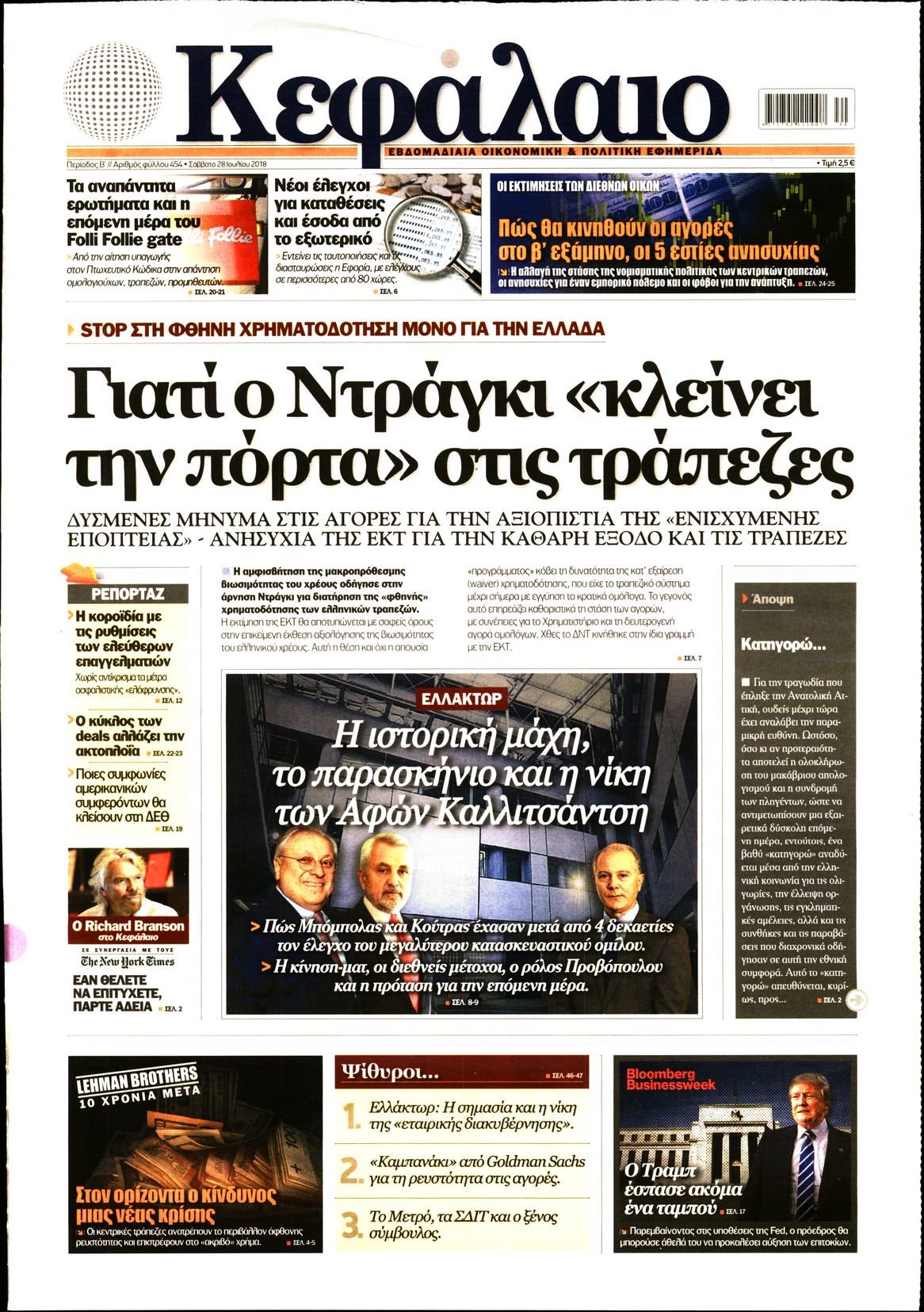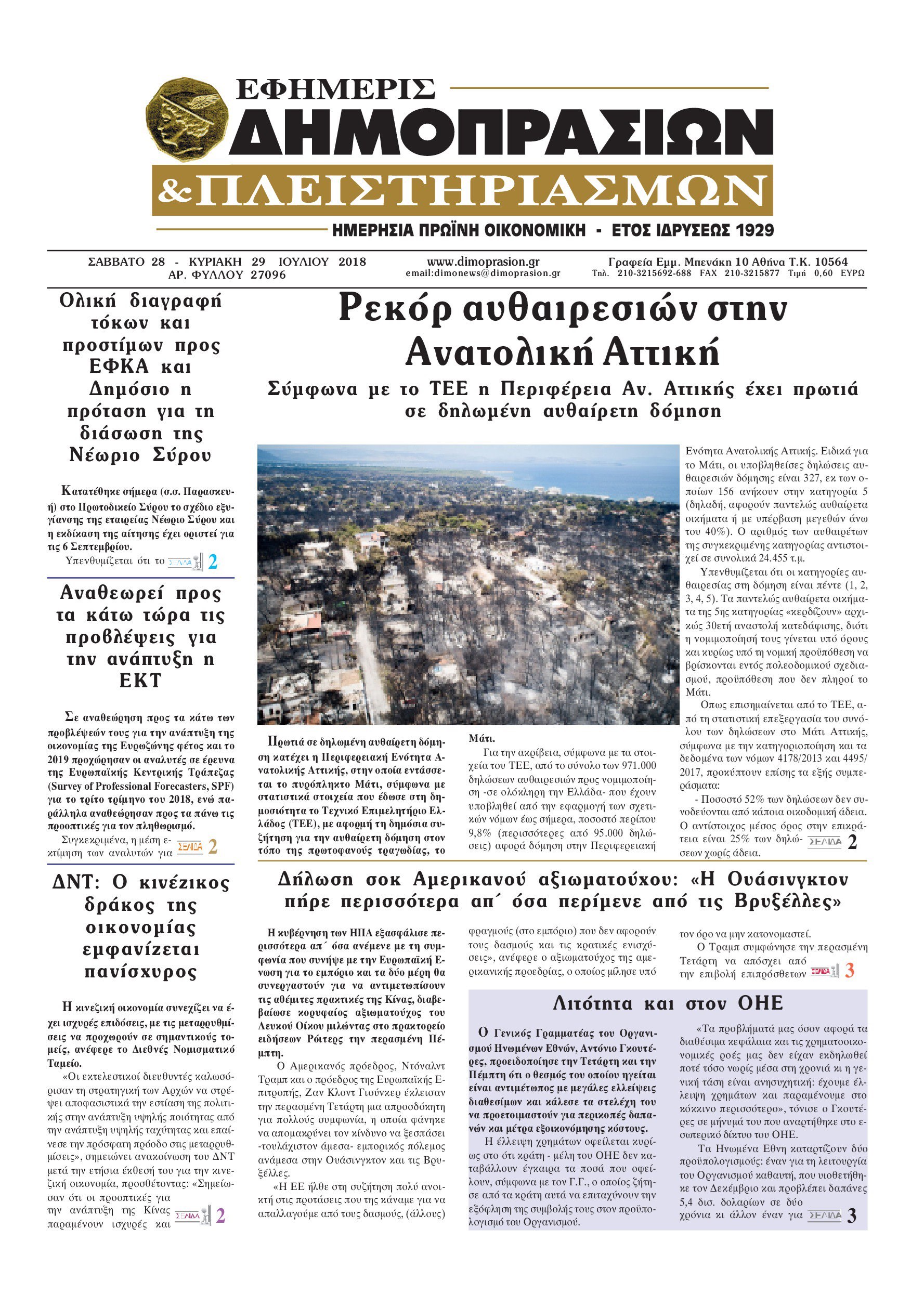 Οι οικονομικές εφημερίδες 28/7/2018 Enikos Newsroom 06:51, Σάββατο 28 Ιουλίου 2018 Media Διαβάστε τα σημερινά πρωτοσέλιδα των οικονομικών εφημερίδων. ΟΙΚΟΝΟΜΙΚΕΣ ΕΦΗΜΕΡΙΔΕΣ ΠΡΩΤΟΣΕΛΙΔΑ Μοιράσου το: σχολίασε κι εσύ (0 σχόλια) Ακολουθήστε το enikos.gr στο Google News και μάθετε πρώτοι όλες τις ειδήσεις Δείτε όλες τις τελευταίες ειδήσεις από την Ελλάδα και τον Κόσμο στο enikos.gr Ειδήσεις Ροή Ειδήσεων 39 λεπτά πριν Ευρωπαϊκή Ένωση: Συμφωνία για δάνειο 90 δισ. ευρώ στην Ουκρανία τη διετία 2026-2027 5 ώρες πριν ΟΠΕΚΕΠΕ: Προφυλακιστέος ο φερόμενος αρχηγός και ο λογιστής της εγκληματικής οργάνωσης 6 ώρες πριν Αυξάνουν την πίεση προς την κυβέρνηση οι αγρότες: Κλείνουν παρακαμπτήριους και ανοίγουν διόδια – Τι θα γίνει τις γιορτές 6 ώρες πριν Φοινικούντα: Το Σάββατο απολογείται ο 30χρονος γιος γνωστού επιχειρηματία της Πλάκας που παραδόθηκε – Όσα είπε στους αστυνομικούς και ο ρόλος του στο έγκλημα 5 ώρες πριν ΑΕΚ – Κραϊόβα 3-2: Επική ανατροπή και πρόκριση στους «16» του Conference League η Ένωση 6 ώρες πριν Αρχαιολόγοι ανακάλυψαν ρωμαϊκά τεχνουργήματα από μια πόλη που δεν υπήρξε ποτέ – Τα τρία εντυπωσιακά κτίρια και ο αμφορέας με τις… σαρδέλες 7 ώρες πριν Ύπνος: Η απλή βραδινή ρουτίνα για να προστατεύσετε τα μαλλιά σας από το κρύο κατά τη διάρκεια του χειμώνα 8 ώρες πριν Manifesting: Πώς να συναντήσετε τον σύντροφο της ζωής σας, ανάλογα με τον μήνα γέννησής σας 2 ημέρες πριν 20 χρόνια τα Χριστούγεννα ξεκινούν στα Public με μεγάλη ποικιλία σε δώρα! 2 λεπτά πριν Αυστραλία: Κήρυξε την Κυριακή (21/12) ημέρα εθνικού πένθους για τη φονική επίθεση στην παραλία Μπόνταϊ 12 λεπτά πριν Ρόδος: Δάσκαλος καράτε καταδικάστηκε για ασέλγεια σε ανήλικες αθλήτριες – Μαρτυρίες για αγγίγματα σε ευαίσθητα σημεία 27 λεπτά πριν Γουατεμάλα: Εξαρθρώθηκε κύκλωμα διακίνησης μεταναστών προς τις ΗΠΑ – Συνελήφθησαν 14 άτομα 31 λεπτά πριν Βουλγαρία: Χιλιάδες πολίτες στους δρόμους κατά της απερχόμενης κυβέρνησης και της διαφθοράς 39 λεπτά πριν Ευρωπαϊκή Ένωση: Συμφωνία για δάνειο 90 δισ. ευρώ στην Ουκρανία τη διετία 2026-2027 ENIKOS NETWORK Σε περίοδο αυξημένης δραστηριότητας η γρίπη στην Ελλάδα-Μέτρα προστασίας από τον ΕΟΔΥ Σκέφτεστε συνέχεια συζητήσεις που έχετε κάνει; Τι σημαίνει αυτό, σύμφωνα με ειδικό Στεγαστικό: Τι λέει η ΠΟΜΙΔΑ για τα νέα μέτρα που ανακοίνωσε ο Κυριάκος Μητσοτάκης Λαγκάρντ: Αισιόδοξη για την ανάπτυξη της Ευρωζώνης, αβέβαιη για τον πληθωρισμό Χαρτογραφώντας το «σημείο χωρίς επιστροφή»: Για πρώτη φορά αποκαλύπτεται με λεπτομέρεια το ακανθώδες όριο της ατμόσφαιρας τ... Η Google καταργεί τη λειτουργία «dark web report» – Πώς θα μπορούν οι χρήστες να διαγράφουν τα δεδομένα τους περισσότερα 02:50 , Παρασκευή 19 Δεκεμβρίου 2025 GNTM: «Κλείδωσαν» οι τέσσερις φιναλίστ – Μεγάλη ανατροπή στις τελευταίες αποχωρήσεις Για προτελευταία φορά εμφανίστηκαν στο πλατό του GNTM οι φιναλίστ του φετινού κύκλου, το βράδυ... 17:45 , Πέμπτη 18 Δεκεμβρίου 2025 ROUK ZOUK: Εορταστικό επεισόδιο με καλεσμένους τους πρωταγωνιστές του «Γιατί ρε πατέρα» Το Σάββατο 20 Δεκεμβρίου στις 21:00, η Ζέτα Μακρυπούλια υποδέχεται εκλεκτούς ηθοποιούς που όλο... 17:20 , Πέμπτη 18 Δεκεμβρίου 2025 Άγιος έρωτας: Η Χριστίνα εξομολογείται στον πατέρα Νικόλαο, απόψε στις 21:00 στον Alpha Η Νότα αποφασίζει να εκδικηθεί τον Πέτρο και τον Στέφανο, για χάρη του Λούη, όμως τα πράγματα ... 16:50 , Πέμπτη 18 Δεκεμβρίου 2025 Να μ’ αγαπάς: Ζωή και Φωτεινή συμφιλιώνονται ως μάνα με κόρη, απόψε στις 20:00 Η ταυτότητα του Άγγελου αποκαλύπτεται 