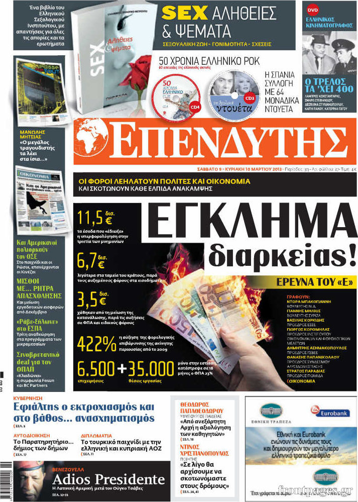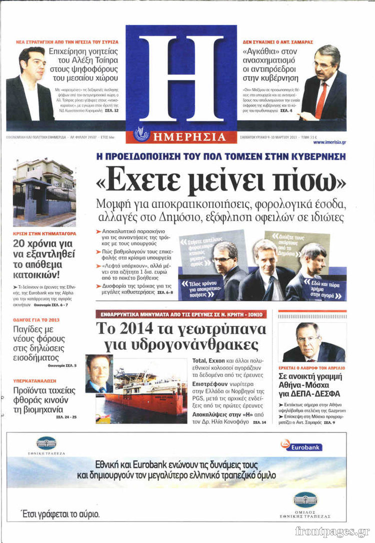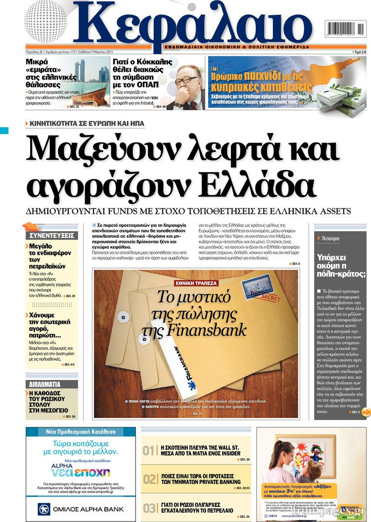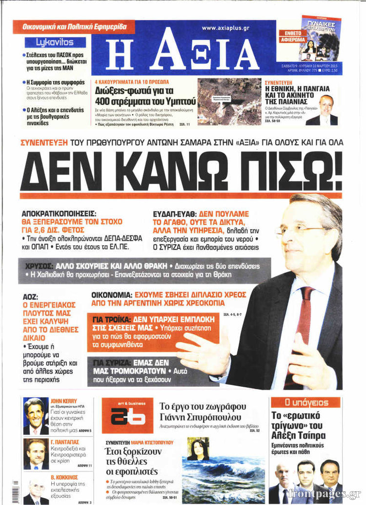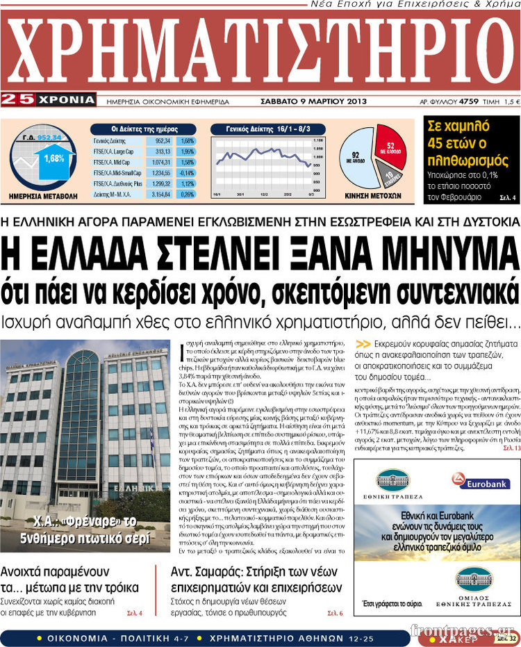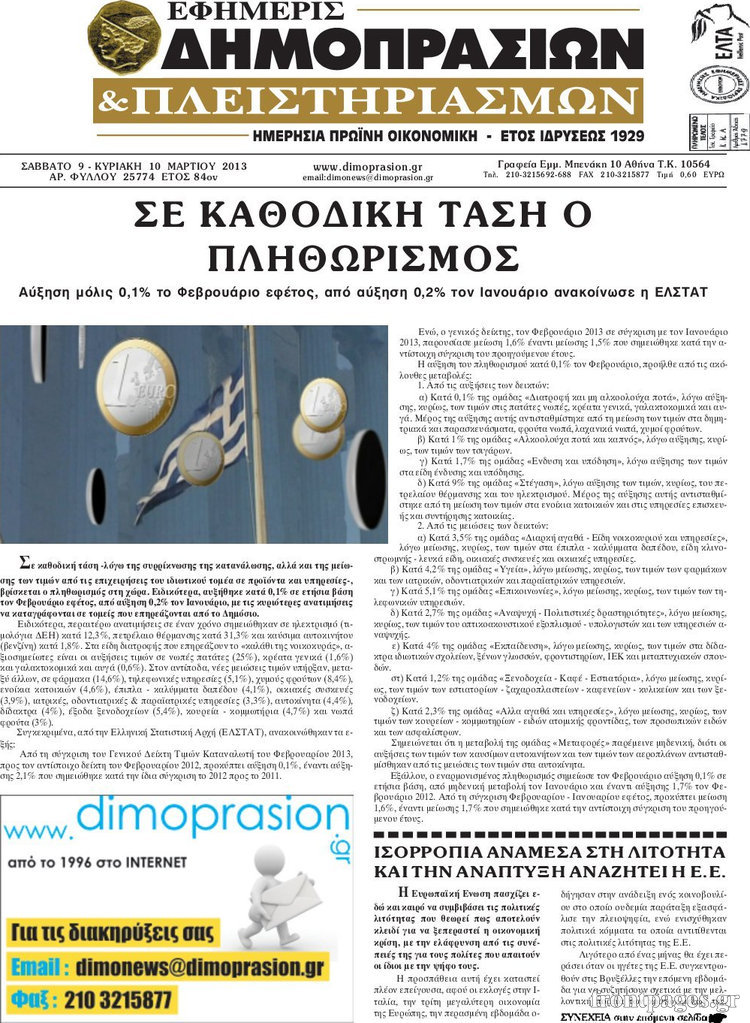 Οι οικονομικές εφημερίδες Enikos Newsroom 09:05, Σάββατο 09 Μαρτίου 2013 Media Οι οικονομικές εφημερίδες Τα πρωτοσέλιδα των οικονομικών εφημερίδων. ΕΦΗΜΕΡΙΔΕΣ ΟΙΚΟΝΟΜΙΚΕΣ ΕΦΗΜΕΡΙΔΕΣ ΠΡΩΤΟΣΕΛΙΔΑ Μοιράσου το: σχολίασε κι εσύ (0 σχόλια) Ακολουθήστε το enikos.gr στο Google News και μάθετε πρώτοι όλες τις ειδήσεις Δείτε όλες τις τελευταίες ειδήσεις από την Ελλάδα και τον Κόσμο στο enikos.gr Ειδήσεις Ροή Ειδήσεων 2 ώρες πριν Αυστραλία: Σχέσεις με το ISIS εκτιμάται πως είχαν οι δράστες της τρομοκρατικής επίθεσης στο Σίδνεϊ 2 ώρες πριν Αγρότες: Αμετακίνητοι από τα μπλόκα σε τελωνεία και εθνικές οδούς – Ο χάρτης των κινητοποιήσεων και τα αιτήματά τους 2 ώρες πριν Σοκ στο Χόλιγουντ: Νεκροί από μαχαιριές ο σκηνοθέτης Ρομπ Ράινερ και η σύζυγός του – Αναφορές ότι τους σκότωσε ο γιος τους 2 ώρες πριν Δολοφονία στη Φοινικούντα: Απολογούνται σήμερα οι δύο συλληφθέντες – Στο «κάδρο» και δύο γυναίκες 1 ώρα πριν Τρόμος στην Κηφισιά: Ανήλικος ληστής έκανε κεφαλοκλείδωμα σε γυναίκα υπάλληλο φούρνου και άρπαξε χρήματα – ΒΙΝΤΕΟ 1 ώρα πριν Κληρονόμησε 2,8 εκατ. ευρώ και φοβάται ότι οι άνδρες θα την πλησιάζουν για τα λεφτά – «Μήπως καλύτερα να το κρατήσω μυστικό;» 2 ώρες πριν Κάτω από παλάτι κρυβόταν ένα άλλο μνημειώδες ανάκτορο: Οι ανασκαφές σε αρχαία πόλη αποκάλυψαν τα ερείπια και τα μυστικά του 5 ώρες πριν Τα ζώδια σήμερα, Δευτέρα 15 Δεκεμβρίου: Ιχθύες, ξεκινήστε από εκεί που η παρουσία σας έχει σημασία 4 ώρες πριν Διατροφή: Γιατρός προειδοποιεί για 2 απλά λάθη που αυξάνουν τον κίνδυνο χρόνιων παθήσεων 3 λεπτά πριν Τα 3 ζώδια που μπαίνουν σε μια νέα δυναμική εποχή – «Είστε έτοιμοι για όλα» 11 λεπτά πριν Αλλάζει το σκηνικό του καιρού την Παρασκευή: «Το ατμοσφαιρικό βουνό υποχωρεί και ανοίγει ο δρόμος για τις κακοκαιρίες» 16 λεπτά πριν Λίλα Μπακλέση – Νατάσα Εξηνταβελώνη: «Όταν πας μια Πατρινιά και μια Περιστεριώτισσα σε εστιατόριο με Michelin – Βίντεο από την έξοδό τους 21 λεπτά πριν Τσιάρας για αγροτικές κινητοποιήσεις: Μονόδρομος ο διάλογος – Διαφάνεια με τη μεταφορά του ΟΠΕΚΕΠΕ στην ΑΑΔΕ 25 λεπτά πριν Χάρης Δούκας: «Χρειάζονται υπερβάσεις τώρα για την ανατροπή» ENIKOS NETWORK Έλλειψη μαγνησίου: Ποια τα συμπτώματα που επηρεάζουν ύπνο, ενέργεια και διάθεση Έχετε καλή φυσική κατάσταση; Δείτε αν μπορείτε να κάνετε αυτές τις 5 κινήσεις Δάνεια σε ελβετικό φράγκο: Ανακοινώνεται η ρύθμιση- Ποιοι και πόσο θα έχουν όφελος – Όλες οι λεπτομέρειες Τέλος οι διώξεις για χρέη σε Εφορία και ΕΦΚΑ – Τι προβλέπει νέα διάταξη μετά την πτώχευση Σύγχρονος Νοστράδαμος: Προειδοποιεί για «μεγάλο γεγονός» τους επόμενους μήνες που θα συγκλονίσει τη Βρετανία και τον κόσμο Τεστ παρατηρητικότητας: Μπορείτε να βρείτε τις 3 διαφορές στις εικόνες με έναν πιγκουίνο σε 14 δευτερόλεπτα περισσότερα 09:15 , Δευτέρα 15 Δεκεμβρίου 2025 Την Κυριακή με τη Realnews: Ό,τι και αν αγοράσεις, σκανάρεις και κερδίζεις! Την Κυριακή με τη Realnews: Ό,τι και αν αγοράσεις, σκανάρεις και κερδίζεις! Με το PADU app, το... 07:42 , Δευτέρα 15 Δεκεμβρίου 2025 Την Κυριακή με τη Realnews: Δωροεπιταγή10€ Δωροεπιταγή αξίας 10€ για αγορές άνω των 60€ από τα πολυκαταστήματα FactoryOutlet H προσφορά ι... 07:17 , Δευτέρα 15 Δεκεμβρίου 2025 Αυτή την Κυριακή με τη Realnews: Instyle, μαζί Drive και Realnews Geopolitics Αυτή την Κυριακή με τη Realnews: Instyle, μαζί Drive και Realnews Geopolitics Instyle Η Άννα Ρ... 05:49 , Δευτέρα 15 Δεκεμβρίου 2025 Οι οικονομικές εφημερίδες 15/12/2025 Διαβάστε τα πρωτοσέλιδα από τις οικονομικές εφημερίδες, σήμερα 15/12/2025. ΤΕΛΕΥΤΑΙΕΣ ΕΙΔΗΣΕΙ