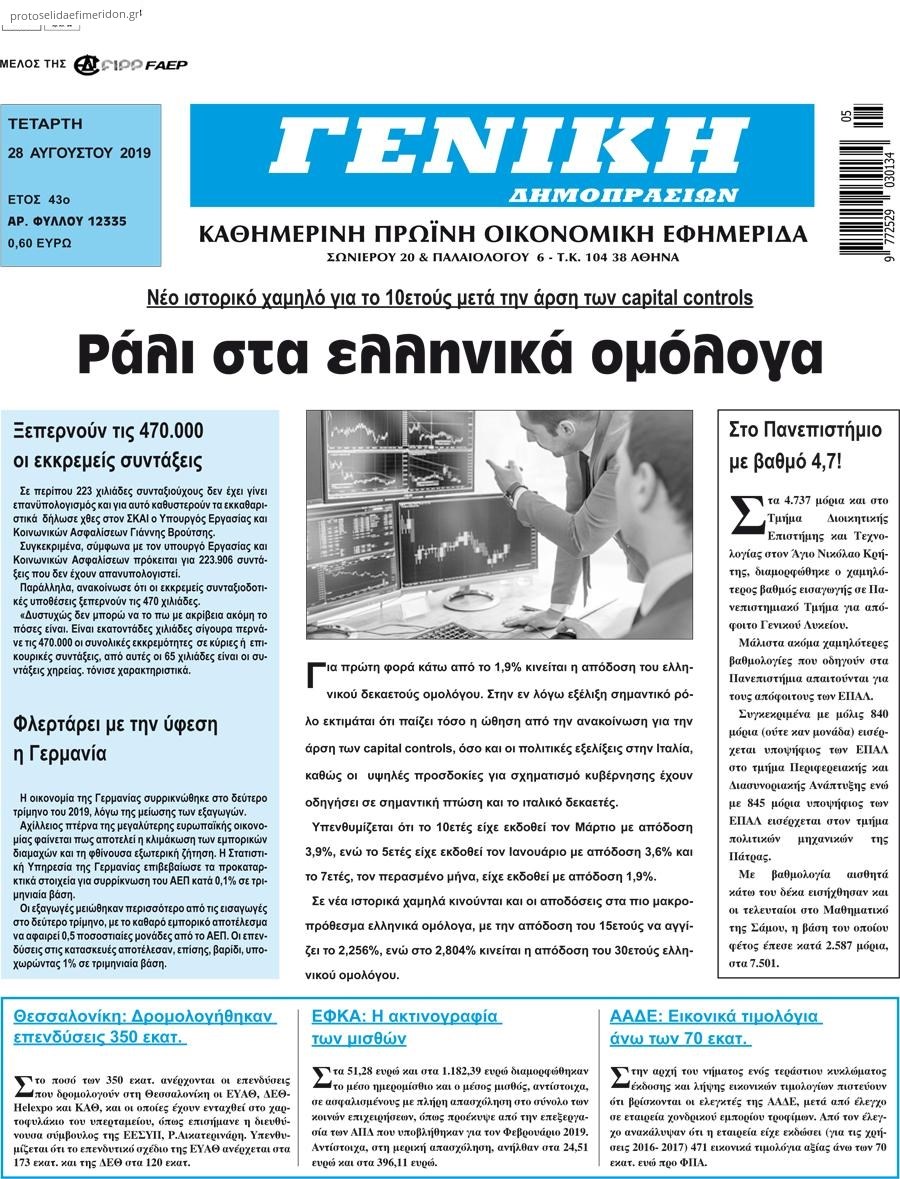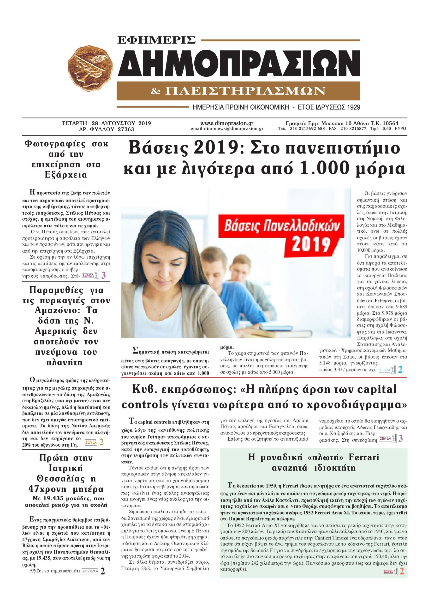 Οι οικονομικές εφημερίδες 28/8/19 Διονύσης Νίκκας 06:32, Τετάρτη 28 Αυγούστου 2019 Media Διαβάστε τα πρωτοσέλιδα των οικονομικών εφημερίδων… ΕΦΗΜΕΡΙΔΩΝ ΟΙΚΟΝΟΜΙΚΩΝ ΠΡΩΤΟΣΕΛΙΔΑ Μοιράσου το: σχολίασε κι εσύ (0 σχόλια) Ακολουθήστε το enikos.gr στο Google News και μάθετε πρώτοι όλες τις ειδήσεις Δείτε όλες τις τελευταίες ειδήσεις από την Ελλάδα και τον Κόσμο στο enikos.gr Ειδήσεις Ροή Ειδήσεων 47 λεπτά πριν ΟΠΕΚΕΠΕ – Κρήτη: Στην Ευρωπαϊκή Εισαγγελία οι 15 από τους 16 συλληφθέντες για τις παράνομες επιδοτήσεις 2 ώρες πριν ΗΠΑ: Ένοπλη επίθεση στο πανεπιστήμιο Μπράουν του Ρόουντ Άιλαντ – Δύο νεκροί και εννέα τραυματίες, ανθρωποκυνηγητό για τον εντοπισμό του δράστη 9 ώρες πριν Ανυποχώρητοι οι αγρότες: Δεν πάνε στο Μαξίμου, κλιμακώνουν τις κινητοποιήσεις – Ποια είναι τα αιτήματά τους 56 λεπτά πριν Εθνικό Μητρώο Παροχών και Ενισχύσεων: Ποιες αλλαγές έρχονται και πώς θα λειτουργεί 38 λεπτά πριν Τα ΝΗ-90 της Αεροπορίας Στρατού θα συνεχίσουν να πετούν, όχι όμως όλα 2 ώρες πριν Οπτική ψευδαίσθηση: Μόνο αν έχετε παρατηρητικότητα ντετέκτιβ, θα βρείτε τον αριθμό «6» σε 5 δευτερόλεπτα 2 ώρες πριν Σπλαχνικό λίπος: Γιατρός του Χάρβαρντ αποκαλύπτει 7 τροφές που βοηθούν στη μείωσή του με φυσικό τρόπο 3 ώρες πριν Τα ζώδια σήμερα, Κυριακή 14 Δεκεμβρίου: Παρθένοι, αφιερώστε χρόνο για να καταλάβετε καλύτερα τα συναισθήματα 9 ώρες πριν Εκπληκτική ανακάλυψη σε αρχαία ελληνική πόλη: Βρέθηκε γυναικείο κεφάλι αγάλματος και οι αρχαιολόγοι εκτιμούν ότι μπορεί να συνδέεται με τη θεά Εστία 49 δευτερόλεπτα πριν Μακελειό στο Πανεπιστήμιο Μπράουν: Ένοπλος σκότωσε 2 άτομα και τραυμάτισε 9 – Το χρονικό των «ματωμένων» εξετάσεων και το βίντεο με τον ύποπτο δράστη 2 λεπτά πριν Σήμερα με τη Realnews: Food & Travel μαζί Beaute και Μαστορέματα 8 λεπτά πριν Καιρός: Αστάθεια και τοπικές βροχές σήμερα – Αναλυτική πρόγνωση ανά περιοχή 14 λεπτά πριν Στο φως απομεινάρια μιας ξεχασμένης πόλης που «σημαδεύτηκε από συγκρούσεις» – Είναι θαμμένη κάτω από σύγχρονη μεγαλούπολη 23 λεπτά πριν e- ΕΦΚΑ και ΔΥΠΑ: Ποιοι πάνε από αύριο στα ΑΤΜ – Αναλυτικά ο «χάρτης» των πληρωμών έως και τις 19 Δεκεμβρίου ENIKOS NETWORK Ποια ομάδα αίματος αυξάνει τον κίνδυνο πρόωρου εγκεφαλικού, σύμφωνα με μελέτη Τεστ προσωπικότητας: Το κλειδί που θα επιλέξετε λέει πολλά για τον τρόπο που διαχειρίζεστε τα προβλήματα Εθνικό Μητρώο Παροχών και Ενισχύσεων: Ποιες αλλαγές έρχονται και πώς θα λειτουργεί Νέα εποχή για την Εγνατία Οδό – Τι αλλάζει με επενδύσεις 1,8 δισ. ευρώ Σύγχρονος Νοστράδαμος: Προειδοποιεί για «μεγάλο γεγονός» τους επόμενους μήνες που θα συγκλονίσει τη Βρετανία και τον κόσμο Τεστ παρατηρητικότητας: Μπορείτε να βρείτε τις 3 διαφορές στις εικόνες με έναν πιγκουίνο σε 14 δευτερόλεπτα περισσότερα 07:46 , Κυριακή 14 Δεκεμβρίου 2025 Σήμερα με τη Realnews: Σκάναρε & κέρδισε με το PaduApp Τo κορυφαίο app επιβράβευσης στην Ελλάδα που σε ανταμείβει για κάθε αγορά! Κέρδισε με 3 μόνο β... 06:54 , Κυριακή 14 Δεκεμβρίου 2025 Η Realnews στο www.pressreader.com Διαβάστε την ψηφιακή έκδοση της εφημερίδας στην οθόνη του κινητού, του tablet και του υπολογισ... 06:05 , Κυριακή 14 Δεκεμβρίου 2025 Σήμερα με τη Realnews: Δωροεπιταγή 10€ Δωροεπιταγή αξίας 10€ για αγορές άνω των 60€ από τα πολυκαταστήματα Factory Outlet. H προσφορά... 05:46 , Κυριακή 14 Δεκεμβρίου 2025 Οι αθλητικές εφημερίδες 14/12/2025 Διαβάστε τα πρωτοσέλιδα από τις αθλητικές εφημερίδες, σήμερα 14/12/2025. ΤΕΛΕΥΤΑΙΕΣ ΕΙΔΗΣΕΙΣ 49 δευτερόλεπτα πριν Μακελειό στο Πανεπιστήμιο Μπράουν: Ένοπλ