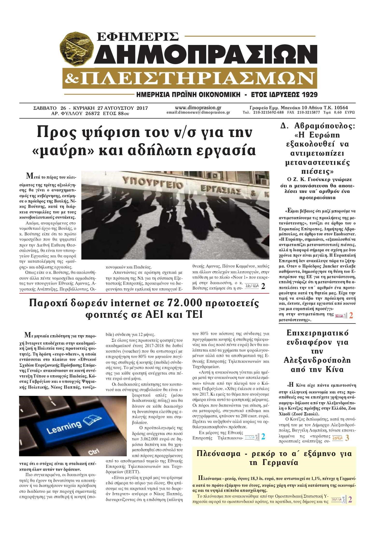 Οι οικονομικές εφημερίδες 28/8/2017 Enikos Newsroom 07:15, Δευτέρα 28 Αυγούστου 2017 Media Διαβάστε τα σημερινά πρωτοσέλιδα των οικονομικών εφημερίδων: ΟΙΚΟΝΟΜΙΚΕΣ ΕΦΗΜΕΡΙΔΕΣ ΠΡΩΤΟΣΕΛΙΔΑ Μοιράσου το: σχολίασε κι εσύ (0 σχόλια) Ακολουθήστε το enikos.gr στο Google News και μάθετε πρώτοι όλες τις ειδήσεις Δείτε όλες τις τελευταίες ειδήσεις από την Ελλάδα και τον Κόσμο στο enikos.gr Ειδήσεις Ροή Ειδήσεων 42 λεπτά πριν Ευρωπαϊκή Ένωση: Χωρίς συμφωνία, για την μακροπρόθεσμη χρηματοδότηση της Ουκρανίας, ολοκληρώθηκε η Σύνοδος Κορυφής στις Βρυξέλλες 4 ώρες πριν ΟΠΕΚΕΠΕ: Προφυλακιστέος ο φερόμενος αρχηγός και ο λογιστής της εγκληματικής οργάνωσης 5 ώρες πριν Αυξάνουν την πίεση προς την κυβέρνηση οι αγρότες: Κλείνουν παρακαμπτήριους και ανοίγουν διόδια – Τι θα γίνει τις γιορτές 5 ώρες πριν Φοινικούντα: Το Σάββατο απολογείται ο 30χρονος γιος γνωστού επιχειρηματία της Πλάκας που παραδόθηκε – Όσα είπε στους αστυνομικούς και ο ρόλος του στο έγκλημα 4 ώρες πριν ΑΕΚ – Κραϊόβα 3-2: Επική ανατροπή και πρόκριση στους «16» του Conference League η Ένωση 5 ώρες πριν Αρχαιολόγοι ανακάλυψαν ρωμαϊκά τεχνουργήματα από μια πόλη που δεν υπήρξε ποτέ – Τα τρία εντυπωσιακά κτίρια και ο αμφορέας με τις… σαρδέλες 6 ώρες πριν Ύπνος: Η απλή βραδινή ρουτίνα για να προστατεύσετε τα μαλλιά σας από το κρύο κατά τη διάρκεια του χειμώνα 7 ώρες πριν Manifesting: Πώς να συναντήσετε τον σύντροφο της ζωής σας, ανάλογα με τον μήνα γέννησής σας 2 ημέρες πριν 20 χρόνια τα Χριστούγεννα ξεκινούν στα Public με μεγάλη ποικιλία σε δώρα! 2 λεπτά πριν Σίσσυ Τουμάση: «Είμαι ασθενοφοβική πάρα πολύ και με πιάνει μια παράνοια μ’ αυτό» 26 λεπτά πριν Ντόναλντ Τραμπ: Δεν χρειάζομαι την έγκριση του Κογκρέσου για να διατάξω στρατιωτικά πλήγματα στη Βενεζουέλα 42 λεπτά πριν Ευρωπαϊκή Ένωση: Χωρίς συμφωνία, για την μακροπρόθεσμη χρηματοδότηση της Ουκρανίας, ολοκληρώθηκε η Σύνοδος Κορυφής στις Βρυξέλλες 57 λεπτά πριν GNTM: «Κλείδωσαν» οι τέσσερις φιναλίστ – Μεγάλη ανατροπή στις τελευταίες αποχωρήσεις 1 ώρα πριν Γιώργος Μαζωνάκης: Αποθεώθηκε στην πρεμιέρα του στην «Ακτή Πειραιώς» λίγες ώρες μετά τις καταγγελίες – «Είμαι αληθινός», είπε με νόημα ENIKOS NETWORK Σε περίοδο αυξημένης δραστηριότητας η γρίπη στην Ελλάδα-Μέτρα προστασίας από τον ΕΟΔΥ Σκέφτεστε συνέχεια συζητήσεις που έχετε κάνει; Τι σημαίνει αυτό, σύμφωνα με ειδικό Στεγαστικό: Τι λέει η ΠΟΜΙΔΑ για τα νέα μέτρα που ανακοίνωσε ο Κυριάκος Μητσοτάκης Λαγκάρντ: Αισιόδοξη για την ανάπτυξη της Ευρωζώνης, αβέβαιη για τον πληθωρισμό Χαρτογραφώντας το «σημείο χωρίς επιστροφή»: Για πρώτη φορά αποκαλύπτεται με λεπτομέρεια το ακανθώδες όριο της ατμόσφαιρας τ... Η Google καταργεί τη λειτουργία «dark web report» – Πώς θα μπορούν οι χρήστες να διαγράφουν τα δεδομένα τους περισσότερα 02:50 , Παρασκευή 19 Δεκεμβρίου 2025 GNTM: «Κλείδωσαν» οι τέσσερις φιναλίστ – Μεγάλη ανατροπή στις τελευταίες αποχωρήσεις Για προτελευταία φορά εμφανίστηκαν στο πλατό του GNTM οι φιναλίστ του φετινού κύκλου, το βράδυ... 17:45 , Πέμπτη 18 Δεκεμβρίου 2025 ROUK ZOUK: Εορταστικό επεισόδιο με καλεσμένους τους πρωταγωνιστές του «Γιατί ρε πατέρα» Το Σάββατο 20 Δεκεμβρίου στις 21:00, η Ζέτα Μακρυπούλια υποδέχεται εκλεκτούς ηθοποιούς που όλο... 17:20 , Πέμπτη 18 Δεκεμβρίου 2025 Άγιος έρωτας: Η Χριστίνα εξομολογείται στον πατέρα Νικόλαο, απόψε στις 21:00 στον Alpha Η Νότα αποφασίζει να εκδικηθεί τον Πέτρο και τον Στέφανο, για χάρη του Λούη, όμως τα πράγματα ... 16:50 , Πέμπτη 18 Δεκεμβρίου 2025 Ν