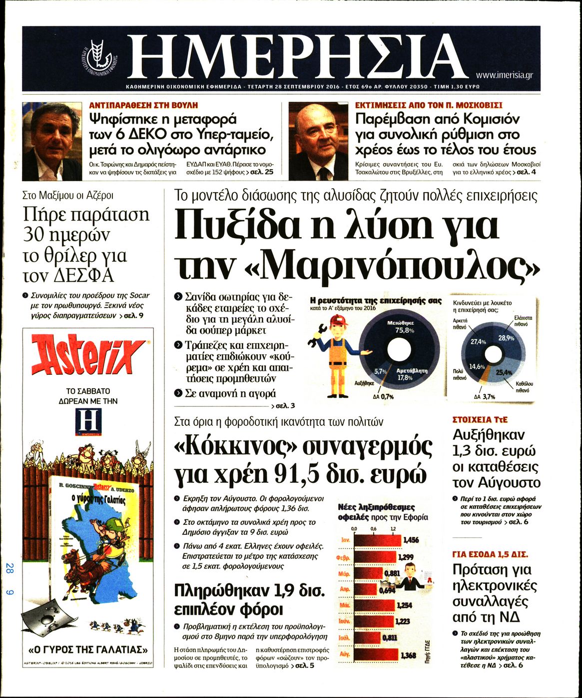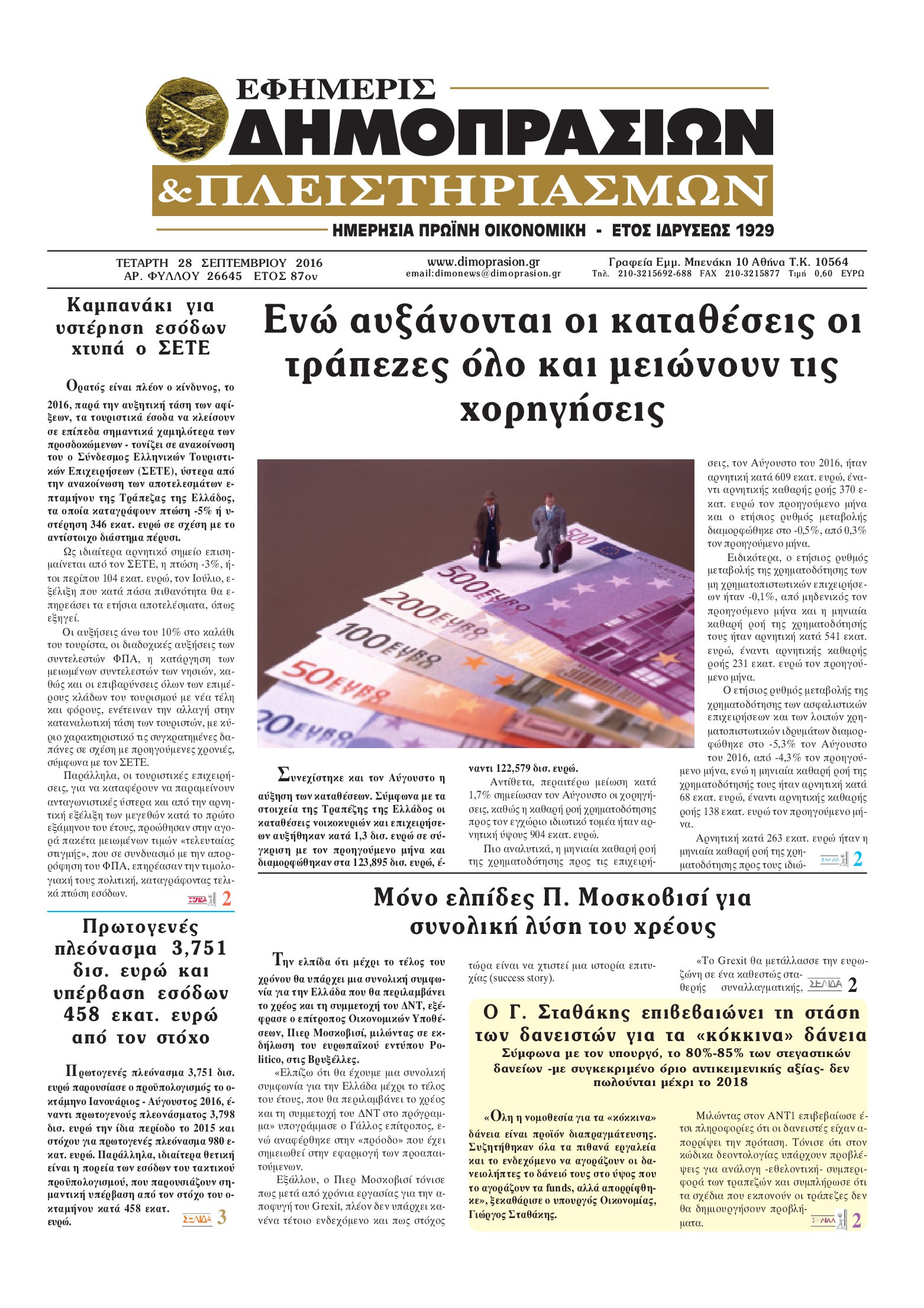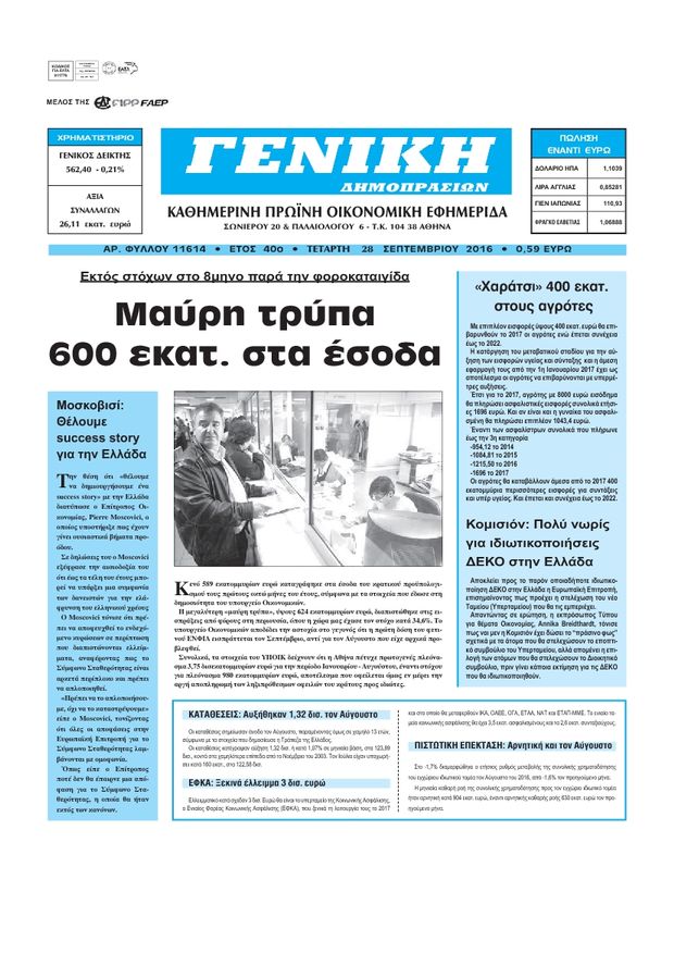 Οι οικονομικές εφημερίδες 28/9/2016 Enikos Newsroom 05:38, Τετάρτη 28 Σεπτεμβρίου 2016 Media Διαβάστε τα σημερινά πρωτοσέλιδα των οικονομικών εφημερίδων: ΟΙΚΟΝΟΜΙΚΕΣ ΕΦΗΜΕΡΙΔΕΣ ΠΡΩΤΟΣΕΛΙΔΑ Μοιράσου το: σχολίασε κι εσύ (0 σχόλια) Ακολουθήστε το enikos.gr στο Google News και μάθετε πρώτοι όλες τις ειδήσεις Δείτε όλες τις τελευταίες ειδήσεις από την Ελλάδα και τον Κόσμο στο enikos.gr Ειδήσεις Ροή Ειδήσεων 4 ώρες πριν Εκτός ευρωομάδας ΣΥΡΙΖΑ ο Νίκος Παππάς μετά την επίθεση στον δημοσιογράφο Νίκο Γιαννόπουλο – Η μήνυση και οι νέες δηλώσεις 4 ώρες πριν «Αγριεύουν» οι αγρότες: «Δεν συντρέχει λόγος συνάντησης με τον πρωθυπουργό» – Ώρα αποφάσεων στη σύσκεψη της Πέμπτης 4 ώρες πριν Κυψέλη: Χωρίς την οικογένειά της δίπλα της απολογήθηκε η 16χρονη – «Της είχε επιτεθεί κάποιος για να την βιάσει, φοβήθηκε και κυκλοφορούσε με μαχαίρι» 4 ώρες πριν Politico: Το πρόβλημα της Ευρώπης δεν είναι το Βέλγιο αλλά ο Ντόναλντ Τραμπ 6 ώρες πριν Αλεξανδρούπολη: Πολυοργανική ανεπάρκεια λόγω υποσιτισμού η αιτία θανάτου του 3χρονου αγοριού 4 ώρες πριν Μυστήριο με τεράστιες κυκλικές πέτρες 200 κιλών – Ανακαλύφθηκαν τυχαία κατά τη διάρκεια οδικών έργων και κανείς δεν ξέρει από πού προέρχονται 5 ώρες πριν Ύπνος: Ειδικός εξηγεί τον πραγματικό λόγο που ξυπνάτε στις 4 τα ξημερώματα – Ο ρόλος των ορμονών και του κιρκάδιου ρυθμού 6 ώρες πριν Αριθμολογία: Οι άνθρωποι που έχουν γεννηθεί αυτές τις 4 ημερομηνίες, είναι τρυφεροί και αγαπούν ανιδιοτελώς 18 ώρες πριν 20 χρόνια τα Χριστούγεννα ξεκινούν στα Public με μεγάλη ποικιλία σε δώρα! 19 λεπτά πριν Σουδάν: Επιδρομή drone σε χωριό του Νότιου Κορντοφάν – Οκτώ νεκροί 35 λεπτά πριν Αλ Τσαντίρι Νιουζ: Η κόρη της Πάολα στο κοινό – Η ατάκα Λαζόπουλου που την έκανε να «κοκκινήσει» 50 λεπτά πριν Ρωσία: Ουκρανικές δυνάμεις έπληξαν πλοίο στο λιμάνι του Ροστόφ – Αναφορές για θύματα 1 ώρα πριν Βρυξέλλες: Νυχτερινό… μπλόκο αγροτών μπροστά από το κτίριο της Ευρωπαϊκής Επιτροπής – Πάνω από 100 τρακτέρ απέκλεισαν την λεωφόρο 1 ώρα πριν Euroleague: Απρόσμενη ήττα για την Μονακό του Βασίλη Σπανούλη – Η βαθμολογία μετά το τέλος της 16ης αγωνιστικής ENIKOS NETWORK Αϋπνία: Το κόλπο που θα σας βοηθήσει να κοιμηθείτε απόψε – Είναι απλό και έχει αποτέλεσμα 2,6 εκατομμύρια πολίτες έχουν ήδη εμβολιαστεί κατά της γρίπης ΕΛΣΤΑΤ: Τι δείχνουν τα νέα στοιχεία για τις ηλεκτρονικές παραγγελίες των επιχειρήσεων ΚΕΠΕ: Οι 3 διακριτές συμβολές των ΜμΕ και της μεταποίησης στην ελληνική οικονομία Χαρτογραφώντας το «σημείο χωρίς επιστροφή»: Για πρώτη φορά αποκαλύπτεται με λεπτομέρεια το ακανθώδες όριο της ατμόσφαιρας τ... Η Google καταργεί τη λειτουργία «dark web report» – Πώς θα μπορούν οι χρήστες να διαγράφουν τα δεδομένα τους περισσότερα 02:30 , Πέμπτη 18 Δεκεμβρίου 2025 Αλ Τσαντίρι Νιουζ: Η κόρη της Πάολα στο κοινό – Η ατάκα Λαζόπουλου που την έκανε να «κοκκινήσει» Γιορτινή διάθεση και ευχάριστες στιγμές γέμισε η αποψινή, τελευταία για το 2025, εκπομπή του «... 22:24 , Τετάρτη 17 Δεκεμβρίου 2025 Το Σπίτι Δίπλα Στο Ποτάμι: Σε κίνδυνο η υγεία του Απόστολου – Τι θα δούμε απόψε “Το Σπίτι Δίπλα στο Ποτάμι” ξετυλίγει το νήμα της ζωής των πέντε αδελφών με καταισ... 21:14 , Τετάρτη 17 Δεκεμβρίου 2025 Παιχνίδια Εκδίκησης: Θα καταφέρει ο Χρήστος να κλονίσει την εμπιστοσύνη της Μάγιας απέναντι στον Άγη; Τα «Παιχνίδια Εκδίκησης» έρχονται απόψε στις 22:30, στον Αντ1, με το τελευταίο επεισόδιο της χ... 20:57 , Τετάρτη 17 Δεκεμβρίου 2025 Άγιος Έρωτας: Η Χλόη καταθέτει εναντίον 