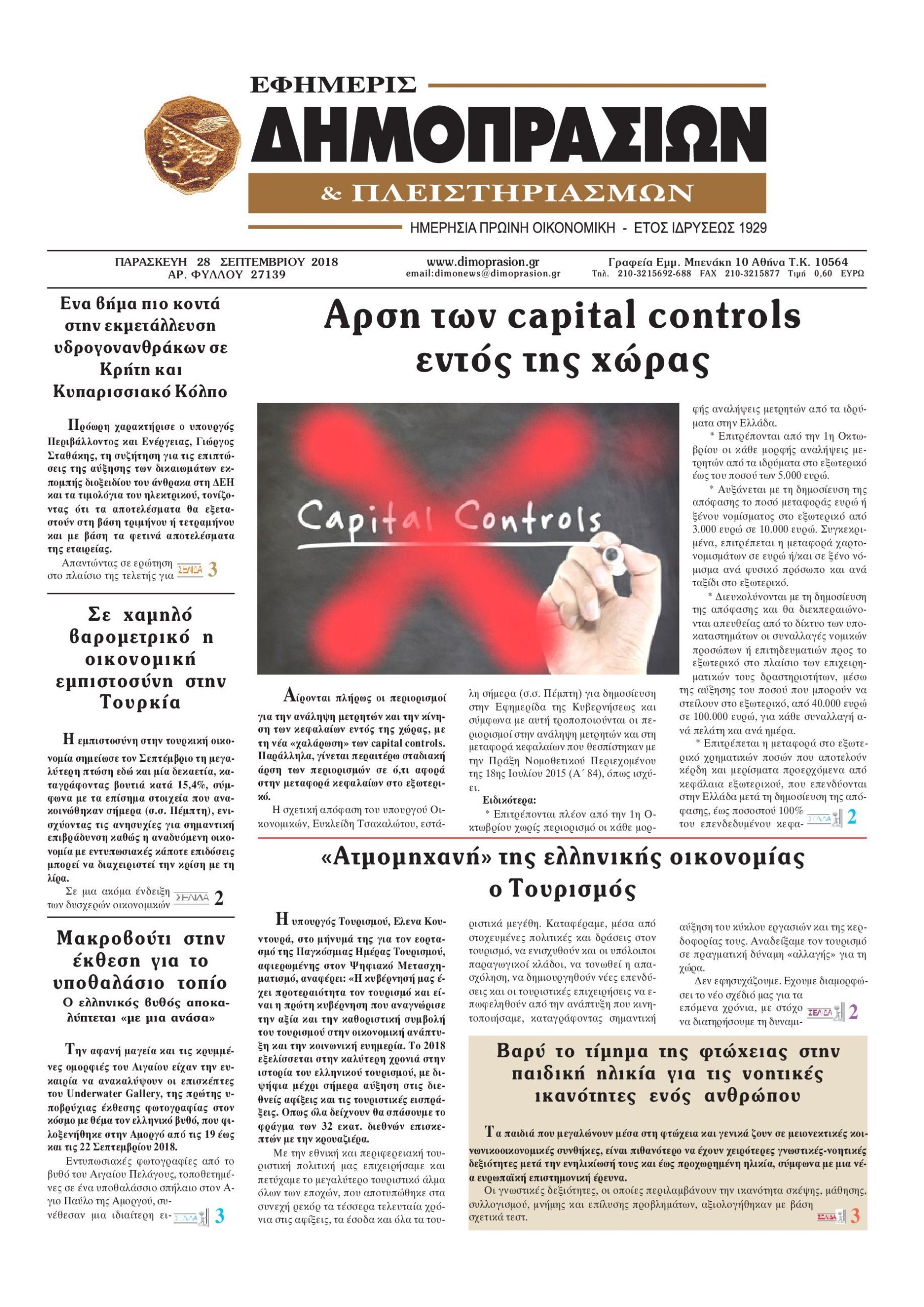 Οι οικονομικές εφημερίδες 28/9/2018 Enikos Newsroom 06:40, Παρασκευή 28 Σεπτεμβρίου 2018 Media Διαβάστε τα πρωτοσέλιδα: ΟΙΚΟΝΟΜΙΚΕΣ ΕΦΗΜΕΡΙΔΕΣ ΠΡΩΤΟΣΕΛΙΔΑ Μοιράσου το: σχολίασε κι εσύ (0 σχόλια) Ακολουθήστε το enikos.gr στο Google News και μάθετε πρώτοι όλες τις ειδήσεις Δείτε όλες τις τελευταίες ειδήσεις από την Ελλάδα και τον Κόσμο στο enikos.gr Ειδήσεις Ροή Ειδήσεων 3 ώρες πριν Τραγωδία στη Χίο: Αρνείται τα πάντα ο φερόμενος διακινητής, τον «καίνε» οι διασωθέντες μετανάστες – Τι ανέφεραν στις πρώτες καταθέσεις τους για το ναυάγιο 4 ώρες πριν Πώς θα γίνει η νέα «κάθοδος» των αγροτών με τρακτέρ στην Αθήνα – «Αν χαθεί ο πρωτογενής τομέας, να μου πει το κράτος πού να μεταναστεύσουμε» 3 ώρες πριν ΗΠΑ – Ιράν: Το θρίλερ των συνομιλιών για τα πυρηνικά και οι μεταβλητές που εξετάζει ο Τραμπ 4 ώρες πριν Μητσοτάκης: «Η δέσμευσή μας για περισσότερες και καλύτερα αμειβόμενες δουλειές γίνεται πράξη» – Άφησε «παράθυρο» για ένταξη υγειονομικών στα βαρέα και ανθυγιεινά 3 ώρες πριν Παναθηναϊκός – ΠΑΟΚ 0-1: Προβάδισμα πρόκρισης από την άσπρη βούλα 4 ώρες πριν Ύπνος: 4 παράγοντες που διαταράσσουν το πιο κρίσιμο στάδιο της ξεκούρασής σας 5 ώρες πριν Αριθμολογία: Το τυχερό σας χρώμα, ανάλογα με το έτος γέννησής σας 3 ώρες πριν Λύθηκε το μυστήριο του Πράσινου Ποταμού που ρέει «ανηφορικά» και διασχίζει μια οροσειρά – Τι είναι η Λιθοσφαιρική Στάλαξη 10 ώρες πριν Νέα εποχή στα καταστήματα Allwyn με Instant Win και κέρδη στη στιγμή – Χιλιάδες τυχεροί διεκδικούν κέρδη έως 500 ευρώ εντελώς δωρεάν 1 ημέρα πριν Οπτική ψευδαίσθηση: Μόνο το 1% των ανθρώπων θα βρει το ελάφι σε 17 δευτερόλεπτα 4 λεπτά πριν Παγκράτι: Λήξη συναγερμού για σακούλα έξω από τράπεζα – Είχε σκουπίδια κι όχι εκρηκτικό μηχανισμό 24 λεπτά πριν Κακοκαιρία: Πτώσεις δέντρων και προβλήματα στην ηλεκτροδότηση στην Κέρκυρα – Ανεμοστρόβιλος προκάλεσε ζημιές σε στέγες σπιτιών 41 λεπτά πριν Κέιτ Μίντλετον: Το βιωματικό της βίντεο – μήνυμά για την Παγκόσμια Ημέρα κατά του Καρκίνου 55 λεπτά πριν K. Χατζηδάκης:« Να μην αδικούμε τους άνδρες και τις γυναίκες του Λιμενικού» – «Η χώρα δεν μπορεί να είναι ξέφραγο αμπέλι» ENIKOS NETWORK Το λάθος που κάνουμε με το μαξιλάρι στον ύπνο και αυξάνει τον κίνδυνο για γλαύκωμα και τύφλωση ΕΟΠΕ: Ολιστική στρατηγική απέναντι στον καρκίνο με επίκεντρο τον άνθρωπο Συμφωνία συνεργασίας για τα κρίσιμα ορυκτά υπέγραψαν ΕΕ, ΗΠΑ και Ιαπωνία – Στόχος η μείωση της εξάρτησης από την Κίνα Πιστοποιητικά: Πώς θα αντικατασταθούν για να μειωθεί η γραφειοκρατία Ευπάθεια στο moltbook ai αποκαλύπτει email, tokens σύνδεσης και api keys Αυτός είναι ο ρόλος της μικρής τρύπας στους νυχοκόπτες – «Είμαι ο μόνος που δεν το ήξερε;»» περισσότερα 20:19 , Τετάρτη 04 Φεβρουαρίου 2026 Eurovision 2026: Θα το… φέρει το «Ferto» του Akyla; Δείτε ποια θέση κατέχει στα ευρωπαϊκά προγνωστικά Πριν καλά-καλά ανακοινωθούν όλα τα κομμάτια του διαγωνισμού της φετινής Eurovision και πριν ακ... 19:50 , Τετάρτη 04 Φεβρουαρίου 2026 Να μ’ αγαπάς: Ο Άγγελος τινάζει στον αέρα τη συμφωνία πώλησης των επιχειρήσεων Η Άννα φεύγει οριστικά από το σπίτι των Καλλιγάδων στο νέο επεισόδιο της σειράς “Να μ΄αγ... 18:22 , Τετάρτη 04 Φεβρουαρίου 2026 Ο Όμιλος Antenna υπέγραψε Μνημόνιο Συνεργασίας με το Junior Achievement Greece και επενδύει στη νέα γενιά Ο Όμιλος Antenna υπέγραψε Μνημόνιο Συνεργασίας με τον μη κερδοσκοπικό οργανισμό Junior Achieve... 16:20 , Τετάρτη 04 Φεβρουαρίου 2026 Μπαμπά, σ’αγαπώ: Έτσι ξεκινά η περιπέτεια της πατρότητας για τα «3 μπαμπαδάκια» Η ν