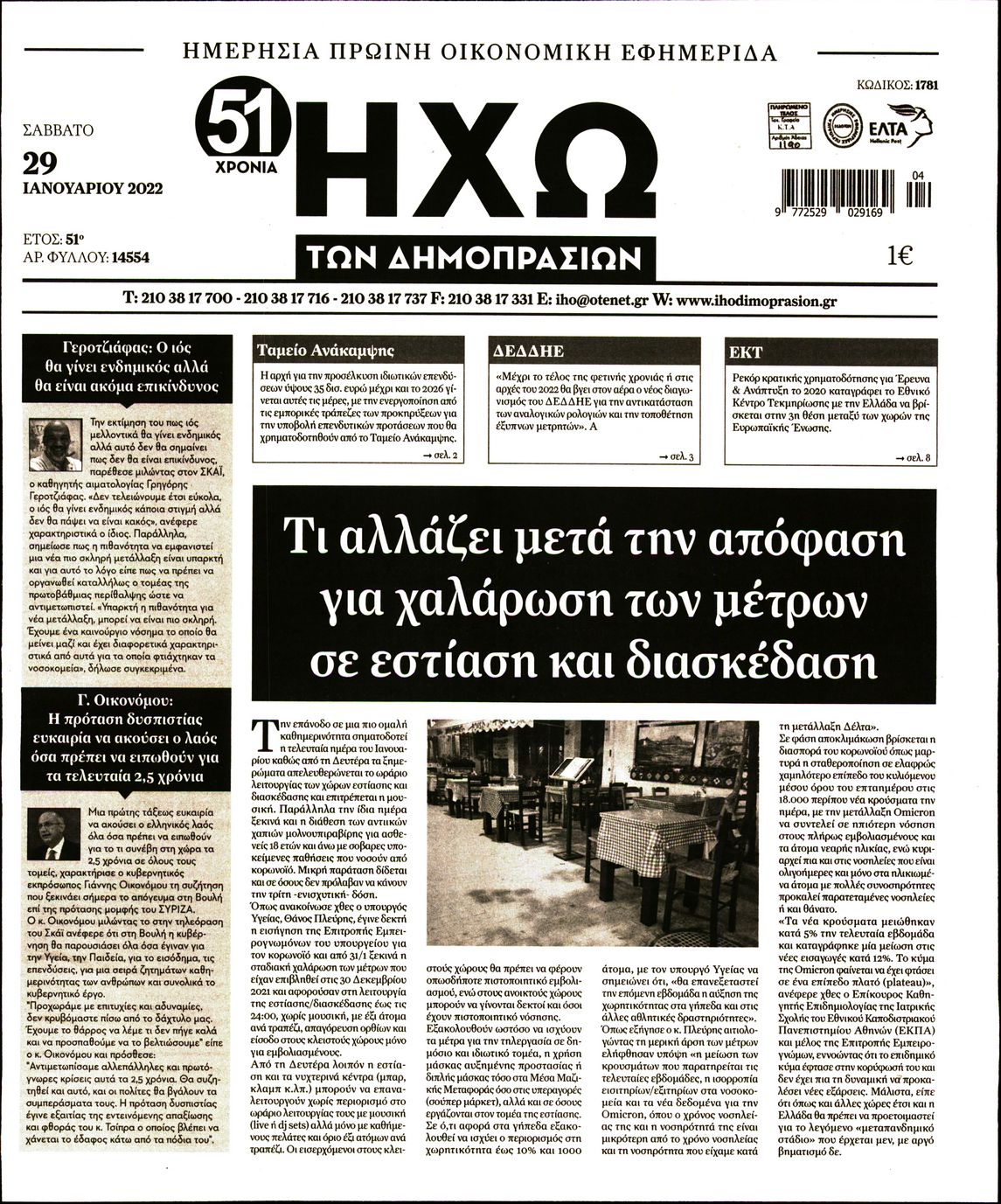 Οι οικονομικές εφημερίδες 29/1/2022 Διονύσης Νίκκας 07:31, Σάββατο 29 Ιανουαρίου 2022 Media Διαβάστε τα πρωτοσέλιδα από τις οικονομικές εφημερίδες… ΟΙΚΟΝΟΜΙΚΕΣ ΕΦΗΜΕΡΙΔΕΣ Μοιράσου το: Ερντογάν σε “κρίση”: “Ξήλωσε” την Στατιστική Υπηρεσία και το υπουργείο Δικαιοσύνης Ληστεία σε σούπερ μάρκετ στον Βόλο – Έδειξε ένα χαρτί στην ταμία που έγραφε “Έχω όπλο” Υπόθεση βιασμού στη Θεσσαλονίκη: Συνθήματα έξω από μαγαζί της παραλιακής σχολίασε κι εσύ (0 σχόλια) Ακολουθήστε το enikos.gr στο Google News και μάθετε πρώτοι όλες τις ειδήσεις Δείτε όλες τις τελευταίες ειδήσεις από την Ελλάδα και τον Κόσμο στο enikos.gr Ειδήσεις Ροή Ειδήσεων 2 ώρες πριν Νίκος Παππάς: Άφαντος παραμένει ο ευρωβουλευτής μετά την επίθεση στον Νίκο Γιαννόπουλο 1 ώρα πριν Βρυξέλλες: Ένταση με τους αγρότες – Πέταξαν πατάτες και κροτίδες 3 ώρες πριν Συναγερμός και στην Ελλάδα για τη «σούπερ γρίπη»: Πόσο σοβαρή είναι και ποιοι θεωρούνται πιο ευάλωτοι – 3 ειδικοί μιλούν στο enikos.gr 2 ώρες πριν Μητσοτάκης: Η Ελλάδα στηρίζει την Ουκρανία και θα υποστηρίξει οποιαδήποτε λύση της παρέχει χρηματοδοτική σταθερότητα 1 ώρα πριν Γαλλία: Το δικαστήριο έκρινε ένοχο τον «διεστραμμένο» αναισθησιολόγο για τη δολοφονία 12 ασθενών – Είχε το παρατσούκλι «Δρ. Θάνατος» 3 ώρες πριν Τα 4 ζώδια που λαμβάνουν ένα ισχυρό σημάδι από το σύμπαν – «Αποκαλύπτεται κάτι που μπορεί να αλλάξει τη ζωή μας» 4 ώρες πριν Η σύζυγός του παραπονιέται για τα χρήματα που της δίνει για ψώνια κάθε μήνα – «Λέει ότι νιώθει φτωχή και της είπα να βρει δουλειά» 2 ώρες πριν Αν κάνετε συνεχώς αυτά τα 8 πράγματα με τα κατοικίδιά σας, σας λείπει η ανθρώπινη επαφή 1 ημέρα πριν 20 χρόνια τα Χριστούγεννα ξεκινούν στα Public με μεγάλη ποικιλία σε δώρα! 4 λεπτά πριν Μαρινάκης για Νίκο Παππά: Να δώσει απαντήσεις ο άνθρωπος που τον έβαλε στην πολιτική – Ήταν προσωπική επιλογή Τσίπρα 7 λεπτά πριν LIVE από Λοριάν: Η ύψωση σημαίας στην πρώτη φρεγάτα FDI Belharra ΚΙΜΩΝ 9 λεπτά πριν Θεσσαλονίκη: Υπό κράτηση ο 48χρονος που κατηγορείται για φοροδιαφυγή ύψους 29,6 εκατ. ευρώ στη Γερμανία 14 λεπτά πριν Φίλης στον Realfm 97,8: «Δεν πρέπει να είμαστε τόσο γενναιόδωροι στην εξωτερική μας πολιτική» 19 λεπτά πριν Στην Ευελπίδων ο 22χρονος που καταγγέλλει τον Γιώργο Μαζωνάκη για ασελγείς πράξεις – «Έχουμε εμπιστοσύνη στη Δικαιοσύνη, καμία εκβίαση» λέει ο δικηγόρος του ENIKOS NETWORK Όμιλος ΙΑΤΡΟΠΟΛΙΣ: Πρωτοπόροι στη μοριακή απεικόνιση και στην πυρηνική ιατρική Τι περιλαμβάνει το σχέδιο της ΕΕ για την καρδιαγγειακή υγεία-Οι προτάσεις της Ελληνικής Καρδιολογικής Εταιρείας Ενοίκια: Τι αλλάζει με τη νέα τροπολογία στην πληρωμή Ειδικό επιδοτούμενο πρόγραμμα κατάρτισης από ΔΥΠΑ και ΕΛΓΟ – ΔΗΜΗΤΡΑ: Έως αύριο οι ενστάσεις – Όσα πρέπει να γνωρίζετε Χαρτογραφώντας το «σημείο χωρίς επιστροφή»: Για πρώτη φορά αποκαλύπτεται με λεπτομέρεια το ακανθώδες όριο της ατμόσφαιρας τ... Η Google καταργεί τη λειτουργία «dark web report» – Πώς θα μπορούν οι χρήστες να διαγράφουν τα δεδομένα τους περισσότερα 08:00 , Πέμπτη 18 Δεκεμβρίου 2025 Την Κυριακή με τη Realnews: Δωροεπιταγή 10€ Δωροεπιταγή αξίας 10€ για αγορές άνω των 60€ από τα πολυκαταστήματα FactoryOutlet H προσφορά ι... 07:50 , Πέμπτη 18 Δεκεμβρίου 2025 «Το σόι σου»: Backstage στα γυρίσματα για το εορταστικό επεισόδιο «Το σόι σου» φορά τα γιορτινά του για τα Χριστούγεννα και η Όλγα Λαφαζάνη, με την κάμερα του «... 07:36 , Πέμπτη 18 Δεκεμβρίου 2025 Οι αθλητικές μεταδόσεις 18/12/2025 – Πού θα δείτε τον αγώνα της ΑΕΚ με τη