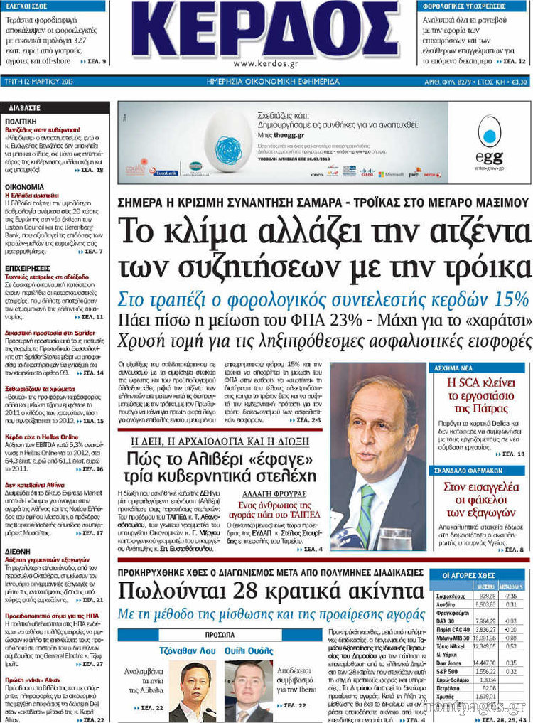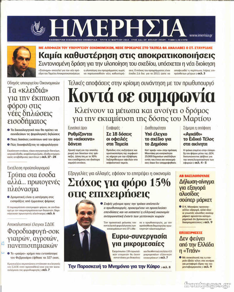 Οι οικονομικές εφημερίδες Enikos Newsroom 09:33, Τρίτη 12 Μαρτίου 2013 Media Οι οικονομικές εφημερίδες ΕΦΗΜΕΡΙΔΕΣ ΟΙΚΟΝΟΜΙΚΕΣ ΕΦΗΜΕΡΙΔΕΣ ΠΡΩΤΟΣΕΛΙΔΑ Μοιράσου το: σχολίασε κι εσύ (0 σχόλια) Ακολουθήστε το enikos.gr στο Google News και μάθετε πρώτοι όλες τις ειδήσεις Δείτε όλες τις τελευταίες ειδήσεις από την Ελλάδα και τον Κόσμο στο enikos.gr Ειδήσεις Ροή Ειδήσεων 2 ώρες πριν Δημοσκόπηση Metron Analysis: Στις 10 μονάδες η διαφορά ΝΔ-ΠΑΣΟΚ, στην 3η θέση η Πλεύση Ελευθερίας – 8 στους 10 στηρίζουν τον αγώνα των αγροτών 6 ώρες πριν Αγρότες: «Όχι στον διάλογο, μας εμπαίζει η κυβέρνηση» – Αποφάσισαν κλιμάκωση των κινητοποιήσεων, τι θα γίνει τα Χριστούγεννα 1 ώρα πριν Νίκος Παππάς στον ΑΝΤ1: «Δεν κρύβομαι – Μετά το συμβάν ακολούθησα κανονικά το πρόγραμμά μου» – ΒΙΝΤΕΟ 3 ώρες πριν Αθήνα: Εξαρθρώθηκε εγκληματική οργάνωση που διακινούσε ναρκωτικά σε μορφή σοκολάτας – Δύο τράπερ ανάμεσα στους 4 συλληφθέντες – ΒΙΝΤΕΟ 1 ώρα πριν Διαμαντής Καραναστάσης: Οδηγούσε υπό την επήρεια αλκοόλ – Του αφαιρέθηκε το δίπλωμα και του επιβλήθηκε πρόστιμο 350 ευρώ 2 ώρες πριν Manifesting: Πώς να συναντήσετε τον σύντροφο της ζωής σας, ανάλογα με τον μήνα γέννησής σας 4 ώρες πριν Γάμος: 11 ψυχρές αλλά ευγενικές φράσεις, που λέει ένας άνδρας όταν σκέφτεται τον χωρισμό 3 ώρες πριν Σφουγγάρισμα: Η συνήθεια που θα σας βοηθήσει να διατηρήσετε το σπίτι σας καθαρό και τακτοποιημένο 2 ημέρες πριν 20 χρόνια τα Χριστούγεννα ξεκινούν στα Public με μεγάλη ποικιλία σε δώρα! 5 λεπτά πριν Αυξάνουν την πίεση προς την κυβέρνηση οι αγρότες: Κλείνουν παρακαμπτήριους και ανοίγουν διόδια – Τι θα γίνει τις γιορτές 10 λεπτά πριν Ελισάβετ Κωνσταντινίδου για τον Γεράσιμο Μιχελή και την Πόπη Χριστοδούλου: «Ξέρω ότι έχουν πάει απλώς κάπου αλλού, ότι δεν είναι ο θάνατος έτσι όπως τον έχουμε στο μυαλό μας» 15 λεπτά πριν Κρήτη: Νέες αποκαλύψεις για τον 54χρονο που κατηγορείται ότι εξαπάτησε τους γονείς του 33χρονου – Ζητούσε τρίχες αγνοουμένων 21 λεπτά πριν Τσιάρας: Δεν θα κινδυνέψουν οι πληρωμές των αγροτών – Χρειαζόμαστε μια νέα πολιτική, ένα restart 28 λεπτά πριν Δέσποινα Βανδή: Το βίντεο που δημοσίευσε με τον Γιώργο Νικολαΐδη – «Έχουμε καταστραφεί από τα μελομακάρονά σου» ENIKOS NETWORK Σε περίοδο αυξημένης δραστηριότητας η γρίπη στην Ελλάδα-Μέτρα προστασίας από τον ΕΟΔΥ Σκέφτεστε συνέχεια συζητήσεις που έχετε κάνει; Τι σημαίνει αυτό, σύμφωνα με ειδικό Λαγκάρντ: Αισιόδοξη για την ανάπτυξη της Ευρωζώνης, αβέβαιη για τον πληθωρισμό ΑΣΕΠ 2ΓΒ/2025: Σήμερα αρχίζει η υποβολή ενστάσεων – Πότε θα βγουν τα οριστικά αποτελέσματα Χαρτογραφώντας το «σημείο χωρίς επιστροφή»: Για πρώτη φορά αποκαλύπτεται με λεπτομέρεια το ακανθώδες όριο της ατμόσφαιρας τ... Η Google καταργεί τη λειτουργία «dark web report» – Πώς θα μπορούν οι χρήστες να διαγράφουν τα δεδομένα τους περισσότερα 17:45 , Πέμπτη 18 Δεκεμβρίου 2025 ROUK ZOUK: Εορταστικό επεισόδιο με καλεσμένους τους πρωταγωνιστές του «Γιατί ρε πατέρα» Το Σάββατο 20 Δεκεμβρίου στις 21:00, η Ζέτα Μακρυπούλια υποδέχεται εκλεκτούς ηθοποιούς που όλο... 17:20 , Πέμπτη 18 Δεκεμβρίου 2025 Άγιος έρωτας: Η Χριστίνα εξομολογείται στον πατέρα Νικόλαο, απόψε στις 21:00 στον Alpha Η Νότα αποφασίζει να εκδικηθεί τον Πέτρο και τον Στέφανο, για χάρη του Λούη, όμως τα πράγματα ... 16:50 , Πέμπτη 18 Δεκεμβρίου 2025 Να μ’ αγαπάς: Ζωή και Φωτεινή συμφιλιώνονται ως μάνα με κόρη, απόψε στις 20:00 Η ταυτότητα του Άγγελου αποκαλύπτεται στο νέο επεισόδιο της σειράς “Να μ’ αγαπάς... 15:52 , Πέμπτη 18 Δε