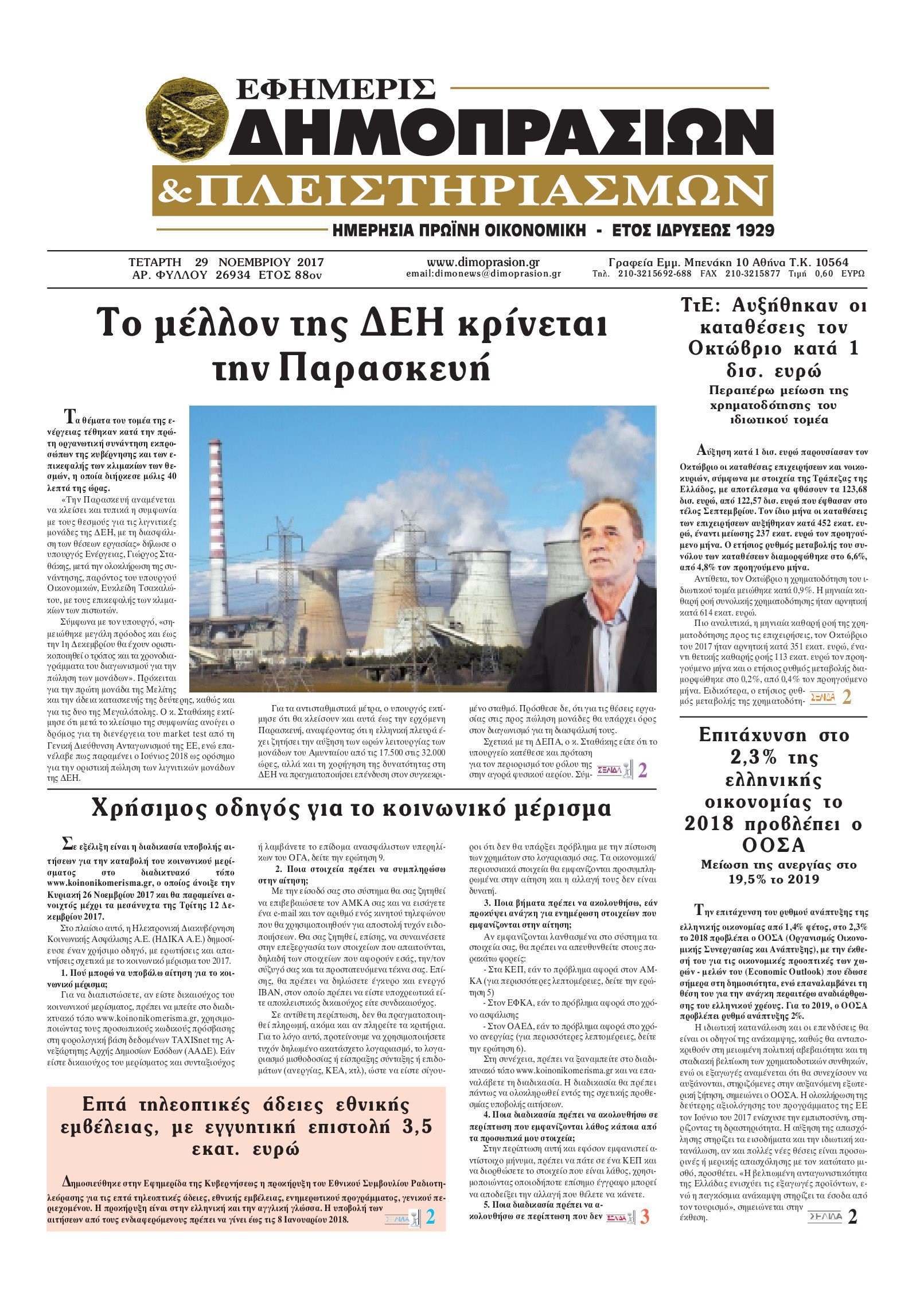 Οι οικονομικές εφημερίδες 29/11/2017 Enikos Newsroom 07:02, Τετάρτη 29 Νοεμβρίου 2017 Media Διαβάστε τα σημερινά πρωτοσέλιδα των οικονομικών εφημερίδων: ΟΙΚΟΝΟΜΙΚΕΣ ΕΦΗΜΕΡΙΔΕΣ ΠΡΩΤΟΣΕΛΙΔΑ Μοιράσου το: σχολίασε κι εσύ (0 σχόλια) Ακολουθήστε το enikos.gr στο Google News και μάθετε πρώτοι όλες τις ειδήσεις Δείτε όλες τις τελευταίες ειδήσεις από την Ελλάδα και τον Κόσμο στο enikos.gr Ειδήσεις Ροή Ειδήσεων 41 λεπτά πριν LIVE από Λοριάν: Η ύψωση της ελληνικής σημαίας στην πρώτη φρεγάτα FDI Belharra ΚΙΜΩΝ 53 λεπτά πριν Στην Ευελπίδων ο 22χρονος που καταγγέλλει τον Γιώργο Μαζωνάκη για ασελγείς πράξεις – «Έχουμε εμπιστοσύνη στη Δικαιοσύνη, καμία εκβίαση» λέει ο δικηγόρος του 3 ώρες πριν Νίκος Παππάς: Άφαντος παραμένει ο ευρωβουλευτής μετά την επίθεση στον Νίκο Γιαννόπουλο 2 ώρες πριν Βρυξέλλες: Ένταση με τους αγρότες – Πέταξαν πατάτες και κροτίδες 3 ώρες πριν Συναγερμός και στην Ελλάδα για τη «σούπερ γρίπη»: Πόσο σοβαρή είναι και ποιοι θεωρούνται πιο ευάλωτοι – 3 ειδικοί μιλούν στο enikos.gr 4 ώρες πριν Τα 4 ζώδια που λαμβάνουν ένα ισχυρό σημάδι από το σύμπαν – «Αποκαλύπτεται κάτι που μπορεί να αλλάξει τη ζωή μας» 5 ώρες πριν Η σύζυγός του παραπονιέται για τα χρήματα που της δίνει για ψώνια κάθε μήνα – «Λέει ότι νιώθει φτωχή και της είπα να βρει δουλειά» 3 ώρες πριν Αν κάνετε συνεχώς αυτά τα 8 πράγματα με τα κατοικίδιά σας, σας λείπει η ανθρώπινη επαφή 1 ημέρα πριν 20 χρόνια τα Χριστούγεννα ξεκινούν στα Public με μεγάλη ποικιλία σε δώρα! 21 δευτερόλεπτα πριν Μπαρτζώκας: Πρέπει να διαχειριστούμε τα συναισθήματά μας, νομίζω ότι για αυτό χάσαμε το ματς με τη Βαλένθια 4 λεπτά πριν Το πιο ελπιδοφόρο χριστουγεννιάτικο δέντρο άναψε στο Ογκολογικό Νοσοκομείο Παίδων «Μαριάννα Β. Βαρδινογιάννη-ΕΛΠΙΔΑ» 6 λεπτά πριν Γιώργος Μαζωνάκης: «Δεν ζήτησα χρήματα, παρά μόνο ηθική δικαίωση» – Οι πρώτες δηλώσεις του 22χρονου μετά την κατάθεση της μήνυσης 10 λεπτά πριν Χριστουγεννιάτικο τραπέζι: Πόσο θα κοστίσει φέτος – Σε ποια είδη τραβούν… την ανηφόρα οι τιμές 19 λεπτά πριν Σκέρτσος για Κωνσταντοπούλου: «Είναι αδίστακτη, βαθιά κυνική και ουσιαστικά αδιάφορη απέναντι στην αλήθεια και τη δικαιοσύνη» ENIKOS NETWORK Όμιλος ΙΑΤΡΟΠΟΛΙΣ: Πρωτοπόροι στη μοριακή απεικόνιση και στην πυρηνική ιατρική Τι περιλαμβάνει το σχέδιο της ΕΕ για την καρδιαγγειακή υγεία-Οι προτάσεις της Ελληνικής Καρδιολογικής Εταιρείας Χριστουγεννιάτικο τραπέζι: Πόσο θα κοστίσει φέτος – Σε ποια είδη τραβούν… την ανηφόρα οι τιμές Ενοίκια: Τι αλλάζει με τη νέα τροπολογία στην πληρωμή Χαρτογραφώντας το «σημείο χωρίς επιστροφή»: Για πρώτη φορά αποκαλύπτεται με λεπτομέρεια το ακανθώδες όριο της ατμόσφαιρας τ... Η Google καταργεί τη λειτουργία «dark web report» – Πώς θα μπορούν οι χρήστες να διαγράφουν τα δεδομένα τους περισσότερα 08:00 , Πέμπτη 18 Δεκεμβρίου 2025 Την Κυριακή με τη Realnews: Δωροεπιταγή 10€ Δωροεπιταγή αξίας 10€ για αγορές άνω των 60€ από τα πολυκαταστήματα FactoryOutlet H προσφορά ι... 07:50 , Πέμπτη 18 Δεκεμβρίου 2025 «Το σόι σου»: Backstage στα γυρίσματα για το εορταστικό επεισόδιο «Το σόι σου» φορά τα γιορτινά του για τα Χριστούγεννα και η Όλγα Λαφαζάνη, με την κάμερα του «... 07:36 , Πέμπτη 18 Δεκεμβρίου 2025 Οι αθλητικές μεταδόσεις 18/12/2025 – Πού θα δείτε τον αγώνα της ΑΕΚ με την Κραϊόβα για το Conference League Τα ματς ΑΕΚ – Ουνιβερσιτάτεα Κραϊόβα για το Conference League και Παναθηναϊκός – Χάποελ Τελ Αβ... 05:48 , Πέμπτη 18 Δεκεμβρίου 2025 Οι οικονομικές εφημερίδες 18/12/2025 Διαβάστε τα πρωτοσέλιδα από τις οικονομ