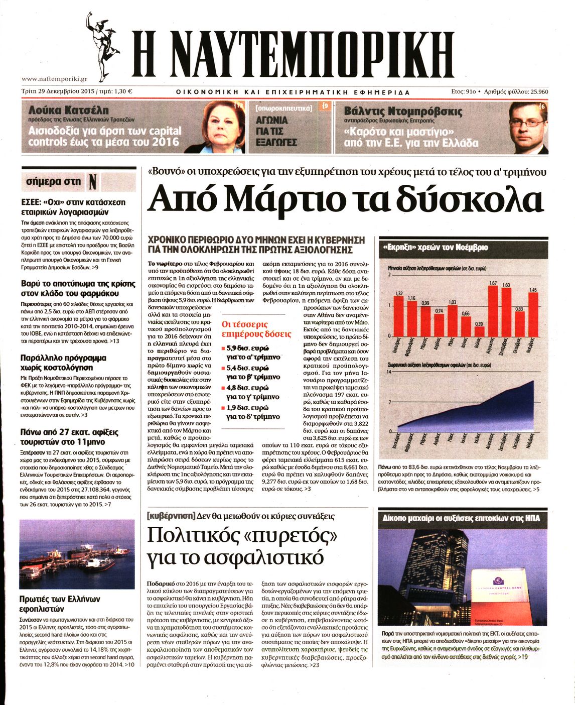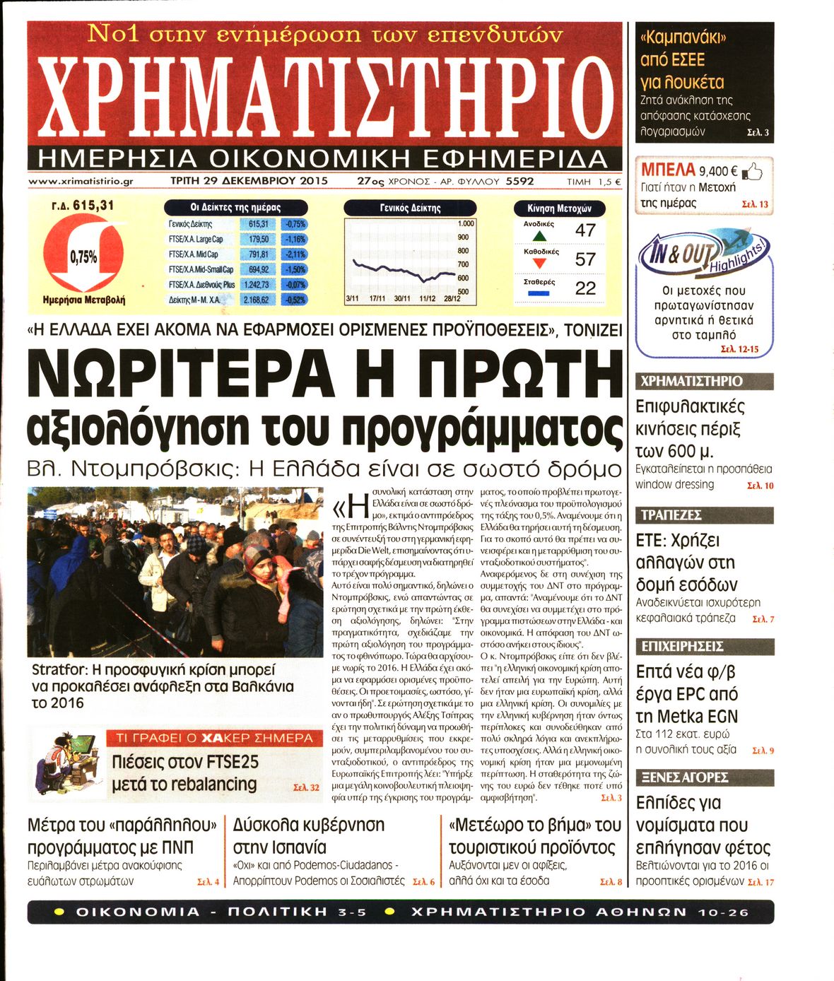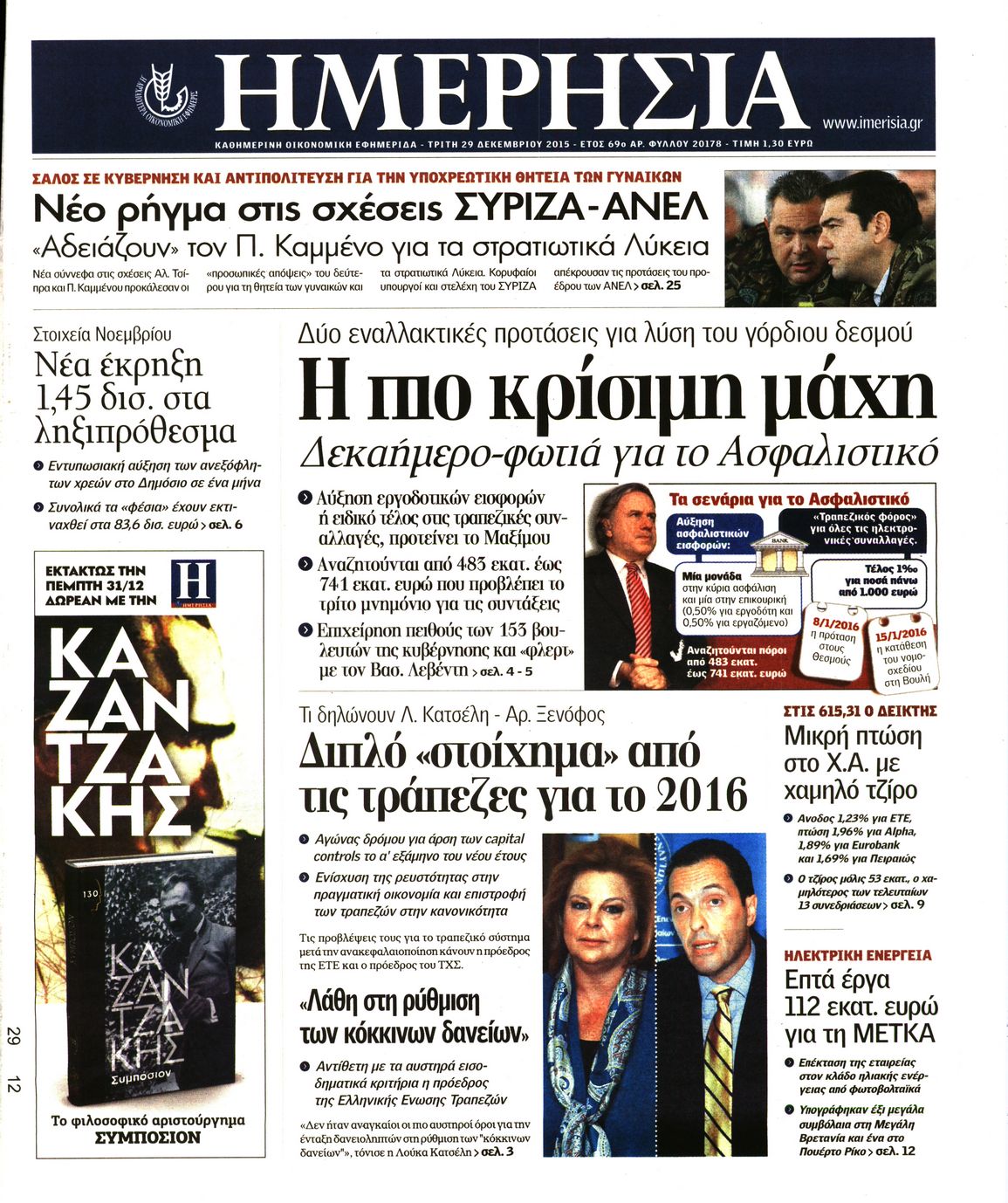 Οι οικονομικές εφημερίδες 29/12/2015 Enikos Newsroom 05:45, Τρίτη 29 Δεκεμβρίου 2015 Media Διαβάστε τα σημερινά πρωτοσέλιδα των οικονομικών εφημερίδων: ΟΙΚΟΝΟΜΙΚΕΣ ΕΦΗΜΕΡΙΔΕΣ ΠΡΩΤΟΣΕΛΙΔΑ Μοιράσου το: σχολίασε κι εσύ (0 σχόλια) Ακολουθήστε το enikos.gr στο Google News και μάθετε πρώτοι όλες τις ειδήσεις Δείτε όλες τις τελευταίες ειδήσεις από την Ελλάδα και τον Κόσμο στο enikos.gr Ειδήσεις Ροή Ειδήσεων 3 ώρες πριν ΣΥΡΙΖΑ: Διαγράφεται ο ευρωβουλευτής Νίκος Παππάς μετά την μήνυση δημοσιογράφου για ξυλοδαρμό 24 λεπτά πριν Δημοσκόπηση Opinion Poll: Στις 12,9 μονάδες η διαφορά ΝΔ-ΠΑΣΟΚ – Τι λένε οι πολίτες για αγρότες, ΟΠΕΚΕΠΕ, Τσίπρα και Σαμαρά 2 ώρες πριν ΟΠΕΚΕΠΕ: Ελεύθερες με όρους η σύζυγος και η αδελφή του φερόμενου αρχηγού – Τι υποστήριξαν 4 ώρες πριν Πώς στήθηκε η επιχείρηση «Ίπαλλος» που οδήγησε στη σύλληψη του «Έλληνα Εσκομπάρ» – «Ο πόλεμος ενάντια στους εμπόρους ναρκωτικών θα συνεχιστεί» 4 ώρες πριν Κυψέλη: Στη φυλακή η 16χρονη που μαχαίρωσε συμμαθήτριά της 1 ώρα πριν Οι άνθρωποι που θυμούνται τα όνειρά τους, συνήθως μοιράζονται αυτά τα 6 σπάνια χαρακτηριστικά 4 ώρες πριν Τα 3 ζώδια που θα δουν τη ζωή τους να αλλάζει ριζικά το 2026 – «Όλα γίνονται καλύτερα σταδιακά» 5 ώρες πριν Ο σπάνιος σεισμός που έλυσε τα χέρια των επιστημόνων – Αποκάλυψε ακριβώς όσα αναζητούσαν 11 ώρες πριν 20 χρόνια τα Χριστούγεννα ξεκινούν στα Public με μεγάλη ποικιλία σε δώρα! 2 λεπτά πριν Η ανακοίνωση της ΕΣΗΕΑ για την επίθεση του Ευρωβουλευτή Νίκου Παππά κατά του δημοσιογράφου Νίκου Γιαννόπουλου 7 λεπτά πριν Θεσσαλονίκη: Χειροπέδες σε 48χρονο που εκκρεμούσε σε βάρος του ευρωπαϊκό ένταλμα σύλληψης για φοροδιαφυγή στη Γερμανία 12 λεπτά πριν «Η αξιοπρέπεια δεν είναι διαπραγματεύσιμη» έγραψε στα social media o 21χρονος που αναμένεται να καταγγείλει τον πασίγνωστο τραγουδιστή 17 λεπτά πριν Καθρέφτες μπάνιου: Το απλό κόλπο με την οδοντόκρεμα για να μην θολώνουν 21 λεπτά πριν Στη ΜΕΘ του νοσοκομείου Ζακύνθου ο Μητροπολίτης Δωδώνης ENIKOS NETWORK Αϋπνία: Το κόλπο που θα σας βοηθήσει να κοιμηθείτε απόψε – Είναι απλό και έχει αποτέλεσμα 2,6 εκατομμύρια πολίτες έχουν ήδη εμβολιαστεί κατά της γρίπης Ελληνικά ομόλογα: Τι λέει η S&P Global Προκήρυξη ΑΣΕΠ για 4.276 μόνιμες προσλήψεις στο Δημόσιο: Βγήκαν τα προσωρινά αποτελέσματα – Ποιοι μπορούν να υποβάλουν ένσ... Χαρτογραφώντας το «σημείο χωρίς επιστροφή»: Για πρώτη φορά αποκαλύπτεται με λεπτομέρεια το ακανθώδες όριο της ατμόσφαιρας τ... Η Google καταργεί τη λειτουργία «dark web report» – Πώς θα μπορούν οι χρήστες να διαγράφουν τα δεδομένα τους περισσότερα 20:15 , Τετάρτη 17 Δεκεμβρίου 2025 Η ανακοίνωση της ΕΣΗΕΑ για την επίθεση του Ευρωβουλευτή Νίκου Παππά κατά του δημοσιογράφου Νίκου Γιαννόπουλου «Το Δ.Σ. της ΕΣΗΕΑ καταδικάζει απερίφραστα την ενέργεια του Ευρωβουλευτή του ΣΥΡΙΖΑ Νίκου Παππ... 12:35 , Τετάρτη 17 Δεκεμβρίου 2025 Μίρκα Παπακωνσταντίνου: «Δεν ήμουν αισιόδοξη για τα νούμερα – Είμαι ρεαλίστρια» Στα γυρίσματα του εορταστικού επεισοδίου της αγαπημένης σειράς “Το Σόι Σου”, βρέθηκε η κάμερα ... 12:12 , Τετάρτη 17 Δεκεμβρίου 2025 Ακούστε την εκπομπή του Νίκου Χατζηνικολάου 17/12/2025 Ακούστε την εκπομπή του Νίκου Χατζηνικολάου στον ραδιοφωνικό σταθμό RealFm 97,8, την Τετάρτη 1... 11:35 , Τετάρτη 17 Δεκεμβρίου 2025 Home Alone: Το σπίτι της ταινίας θα ανακαινιστεί – Επιστροφή στην αισθητική της δεκαετίας του ’90 Οι νέοι ιδιοκτήτες του πραγματικού σπιτιού που παρουσιάζεται στην κλασική ταινία του 1990 «Hom... ΤΕΛΕΥΤΑΙΕΣ ΕΙΔΗΣΕΙΣ 7 λε