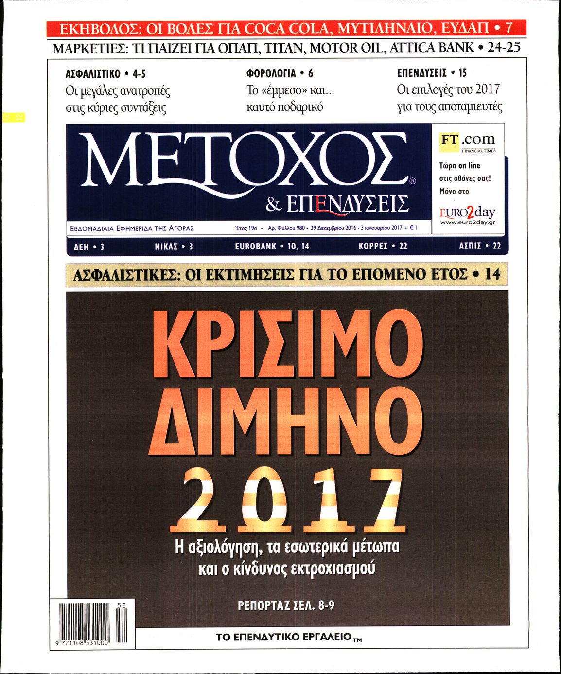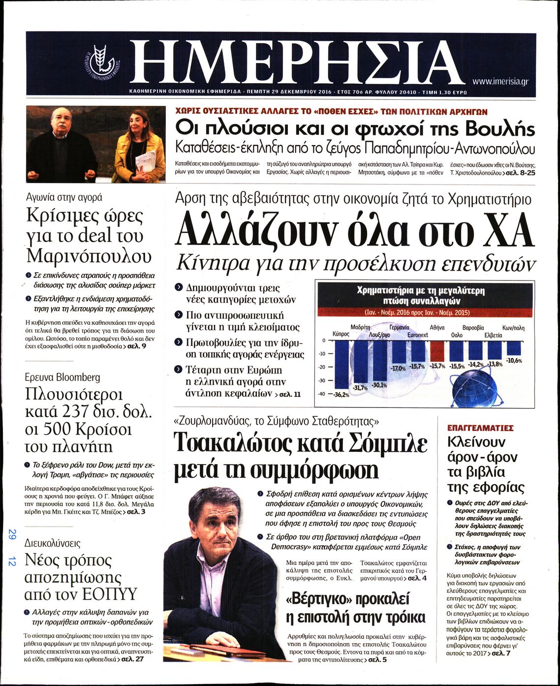 Οι οικονομικές εφημερίδες 29/12/2016 Enikos Newsroom 01:59, Πέμπτη 29 Δεκεμβρίου 2016 Media Διαβάστε τα σημερινά πρωτοσέλιδα των οικονομικών εφημερίδων: ΟΙΚΟΝΟΜΙΚΕΣ ΕΦΗΜΕΡΙΔΕΣ ΠΡΩΤΟΣΕΛΙΔΑ Μοιράσου το: σχολίασε κι εσύ (0 σχόλια) Ακολουθήστε το enikos.gr στο Google News και μάθετε πρώτοι όλες τις ειδήσεις Δείτε όλες τις τελευταίες ειδήσεις από την Ελλάδα και τον Κόσμο στο enikos.gr Ειδήσεις Ροή Ειδήσεων 1 ώρα πριν Αγρότες: «Όχι στον διάλογο, μας εμπαίζει η κυβέρνηση» – Αποφάσισαν κλιμάκωση των κινητοποιήσεων, τι θα γίνει τα Χριστούγεννα 2 ώρες πριν Την πρώτη Belharra παρέλαβε η χώρα μας, υψώθηκε η ελληνική σημαία στη φρεγάτα «Κίμων» – Δένδιας: «Το ισχυρότερο Πολεμικό Ναυτικό που είχε ποτέ ο ελληνισμός» 4 ώρες πριν Γιώργος Μαζωνάκης: «Δεν ζήτησα χρήματα, παρά μόνο ηθική δικαίωση» – Οι πρώτες δηλώσεις του 21χρονου μετά την κατάθεση της μήνυσης 50 λεπτά πριν Μιχάλης Χουρδάκης: «Είμαι διαθέσιμος να συμβάλω στην προσωρινή κάλυψη του ιατρείου της Ψερίμου» – Η επιστολή στον Άδωνι Γεωργιάδη 1 ώρα πριν Εξώδικο Γεωργιάδη στην Κωνσταντοπούλου – «Με κατηγόρησε ότι έχω καταδικαστεί για παιδεραστία» 2 ώρες πριν Τα 5 ζώδια που θα ευνοηθούν στα οικονομικά τους το 2026 – «Τραβούν το χρήμα σαν μαγνήτες» 7 ώρες πριν Αν κάνετε συνεχώς αυτά τα 8 πράγματα με τα κατοικίδιά σας, σας λείπει η ανθρώπινη επαφή 3 ώρες πριν Αυτό που κρύβεται κάτω από τη Γροιλανδία θα μπορούσε να ανατρέψει όσα γνωρίζουμε για την άνοδο της στάθμης των θαλασσών 1 ημέρα πριν 20 χρόνια τα Χριστούγεννα ξεκινούν στα Public με μεγάλη ποικιλία σε δώρα! 4 λεπτά πριν Σύνοδος Κορυφής: Οι Ευρωπαίοι συμφώνησαν να εξετάσουν την χρήση των ρωσικών περιουσιακών για την χρηματοδότηση της Ουκρανίας – Η δήλωση Ζελένσκι 9 λεπτά πριν Δένδιας: Έναρξη διαπραγματεύσεων για την ταχύτερη ανανέωση της Στρατηγικής Εταιρικής Σχέσης Ελλάδας – Γαλλίας 13 λεπτά πριν ROUK ZOUK: Εορταστικό επεισόδιο με καλεσμένους τους πρωταγωνιστές του «Γιατί ρε πατέρα» 19 λεπτά πριν Φιντάν: «Η Κυπριακή Δημοκρατία μας παρεμποδίζει όπου βρει την ευκαιρία» – Η πονηρή πρόταση που ανοίγει τον δρόμο για δύο κράτη 24 λεπτά πριν Ηράκλειο: Συνελήφθη 28χρονος με καλάσνικοφ στο σπίτι του – Η έρευνα για πορνογραφία ανηλίκων ENIKOS NETWORK ΕΟΔΥ: Δωρεάν τεστ για HIV, Ηπατίτιδες, Σύφιλη, Χλαμύδια, Γονόρροια 100 χρόνια ΠΙΣ: Ένας αιώνας προσφοράς στην Ιατρική και την κοινωνία Χριστούγεννα και Πρωτοχρονιά: Δείτε πόσα χρήματα θα πάρουν ως αμοιβή όσοι εργαστούν Κρατική επιχορήγηση έως 14.500 ευρώ: Ποιοι θα λάβουν από σήμερα την προκαταβολή στον τραπεζικό λογαριασμό τους Χαρτογραφώντας το «σημείο χωρίς επιστροφή»: Για πρώτη φορά αποκαλύπτεται με λεπτομέρεια το ακανθώδες όριο της ατμόσφαιρας τ... Η Google καταργεί τη λειτουργία «dark web report» – Πώς θα μπορούν οι χρήστες να διαγράφουν τα δεδομένα τους περισσότερα 17:45 , Πέμπτη 18 Δεκεμβρίου 2025 ROUK ZOUK: Εορταστικό επεισόδιο με καλεσμένους τους πρωταγωνιστές του «Γιατί ρε πατέρα» Το Σάββατο 20 Δεκεμβρίου στις 21:00, η Ζέτα Μακρυπούλια υποδέχεται εκλεκτούς ηθοποιούς που όλο... 17:20 , Πέμπτη 18 Δεκεμβρίου 2025 Άγιος έρωτας: Η Χριστίνα εξομολογείται στον πατέρα Νικόλαο, απόψε στις 21:00 στον Alpha Η Νότα αποφασίζει να εκδικηθεί τον Πέτρο και τον Στέφανο, για χάρη του Λούη, όμως τα πράγματα ... 16:50 , Πέμπτη 18 Δεκεμβρίου 2025 Να μ’ αγαπάς: Ζωή και Φωτεινή συμφιλιώνονται ως μάνα με κόρη, απόψε στις 20:00 Η ταυτότητα του Άγγελου αποκαλύπτεται στο νέο επεισόδιο της σειράς “Να μ’ αγαπάς... 15:52 , Πέμπτη 18 Δε