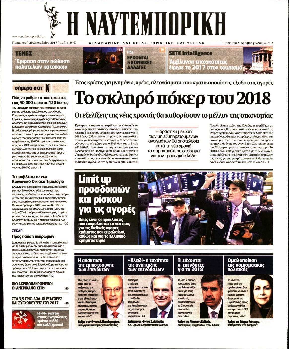 Οι οικονομικές εφημερίδες 29/12/2017 Enikos Newsroom 07:42, Παρασκευή 29 Δεκεμβρίου 2017 Media Διαβάστε τα σημερινά πρωτοσέλιδα των οικονομικών εφημερίδων: ΟΙΚΟΝΟΜΙΚΕΣ ΕΦΗΜΕΡΙΔΕΣ ΠΡΩΤΟΣΕΛΙΔΑ Μοιράσου το: σχολίασε κι εσύ (0 σχόλια) Ακολουθήστε το enikos.gr στο Google News και μάθετε πρώτοι όλες τις ειδήσεις Δείτε όλες τις τελευταίες ειδήσεις από την Ελλάδα και τον Κόσμο στο enikos.gr Ειδήσεις Ροή Ειδήσεων 3 λεπτά πριν ΟΠΕΚΕΠΕ: Προφυλακιστέος ο φερόμενος αρχηγός και ο λογιστής της εγκληματικής οργάνωσης 1 ώρα πριν Αυξάνουν την πίεση προς την κυβέρνηση οι αγρότες: Κλείνουν παρακαμπτήριους και ανοίγουν διόδια – Τι θα γίνει τις γιορτές 1 ώρα πριν Φοινικούντα: Το Σάββατο απολογείται ο 30χρονος γιος γνωστού επιχειρηματία της Πλάκας που παραδόθηκε – Όσα είπε στους αστυνομικούς και ο ρόλος του στο έγκλημα 44 λεπτά πριν Μπορεί ο Μαδούρο να αντέξει τον αποκλεισμό του Τραμπ; Τι θα χρειαστεί η Ουάσινγκτον για να τον ανατρέψει 2 ώρες πριν Πρίγκιπας Ουίλιαμ – Κέιτ: Η νέα οικογενειακή φωτογραφία για τις Χριστουγεννιάτικες κάρτες του 2025 2 ώρες πριν Ύπνος: Η απλή βραδινή ρουτίνα για να προστατεύσετε τα μαλλιά σας από το κρύο κατά τη διάρκεια του χειμώνα 3 ώρες πριν Manifesting: Πώς να συναντήσετε τον σύντροφο της ζωής σας, ανάλογα με τον μήνα γέννησής σας 2 ημέρες πριν 20 χρόνια τα Χριστούγεννα ξεκινούν στα Public με μεγάλη ποικιλία σε δώρα! 47 λεπτά πριν Αρχαιολόγοι ανακάλυψαν ρωμαϊκά τεχνουργήματα από μια πόλη που δεν υπήρξε ποτέ – Τα τρία εντυπωσιακά κτίρια και ο αμφορέας με τις… σαρδέλες 3 λεπτά πριν ΟΠΕΚΕΠΕ: Προφυλακιστέος ο φερόμενος αρχηγός και ο λογιστής της εγκληματικής οργάνωσης 13 λεπτά πριν Αθηνά Μαξίμου: Η τρυφερή ανάρτηση για τα γενέθλια του Αιμίλιου Χειλάκη – «Είναι η εκλεκτική συγγένειά μου, η επιλογή και η ευθύνη μου» 28 λεπτά πριν Παναθηναϊκός – Χάποελ Τελ Αβίβ 93-82: Με… φόρα από την Κωνσταντινούπολη 44 λεπτά πριν Μπορεί ο Μαδούρο να αντέξει τον αποκλεισμό του Τραμπ; Τι θα χρειαστεί η Ουάσινγκτον για να τον ανατρέψει 47 λεπτά πριν Αρχαιολόγοι ανακάλυψαν ρωμαϊκά τεχνουργήματα από μια πόλη που δεν υπήρξε ποτέ – Τα τρία εντυπωσιακά κτίρια και ο αμφορέας με τις… σαρδέλες ENIKOS NETWORK Σε περίοδο αυξημένης δραστηριότητας η γρίπη στην Ελλάδα-Μέτρα προστασίας από τον ΕΟΔΥ Σκέφτεστε συνέχεια συζητήσεις που έχετε κάνει; Τι σημαίνει αυτό, σύμφωνα με ειδικό Στεγαστικό: Τι λέει η ΠΟΜΙΔΑ για τα νέα μέτρα που ανακοίνωσε ο Κυριάκος Μητσοτάκης Λαγκάρντ: Αισιόδοξη για την ανάπτυξη της Ευρωζώνης, αβέβαιη για τον πληθωρισμό Χαρτογραφώντας το «σημείο χωρίς επιστροφή»: Για πρώτη φορά αποκαλύπτεται με λεπτομέρεια το ακανθώδες όριο της ατμόσφαιρας τ... Η Google καταργεί τη λειτουργία «dark web report» – Πώς θα μπορούν οι χρήστες να διαγράφουν τα δεδομένα τους περισσότερα 17:45 , Πέμπτη 18 Δεκεμβρίου 2025 ROUK ZOUK: Εορταστικό επεισόδιο με καλεσμένους τους πρωταγωνιστές του «Γιατί ρε πατέρα» Το Σάββατο 20 Δεκεμβρίου στις 21:00, η Ζέτα Μακρυπούλια υποδέχεται εκλεκτούς ηθοποιούς που όλο... 17:20 , Πέμπτη 18 Δεκεμβρίου 2025 Άγιος έρωτας: Η Χριστίνα εξομολογείται στον πατέρα Νικόλαο, απόψε στις 21:00 στον Alpha Η Νότα αποφασίζει να εκδικηθεί τον Πέτρο και τον Στέφανο, για χάρη του Λούη, όμως τα πράγματα ... 16:50 , Πέμπτη 18 Δεκεμβρίου 2025 Να μ’ αγαπάς: Ζωή και Φωτεινή συμφιλιώνονται ως μάνα με κόρη, απόψε στις 20:00 Η ταυτότητα του Άγγελου αποκαλύπτεται στο νέο επεισόδιο της σειράς “Να μ’ αγαπάς... 15:52 , Πέμπτη 18 Δεκεμβρίου 2025 Το Σπίτι Δίπλα Στο Ποτάμι: Τ