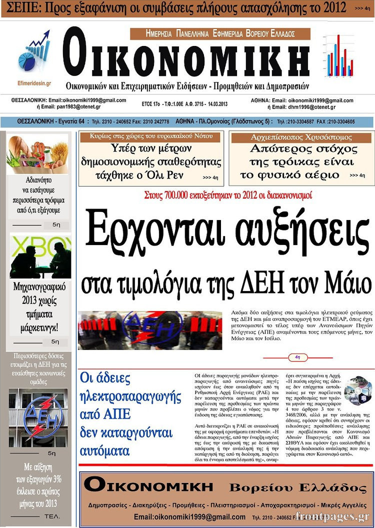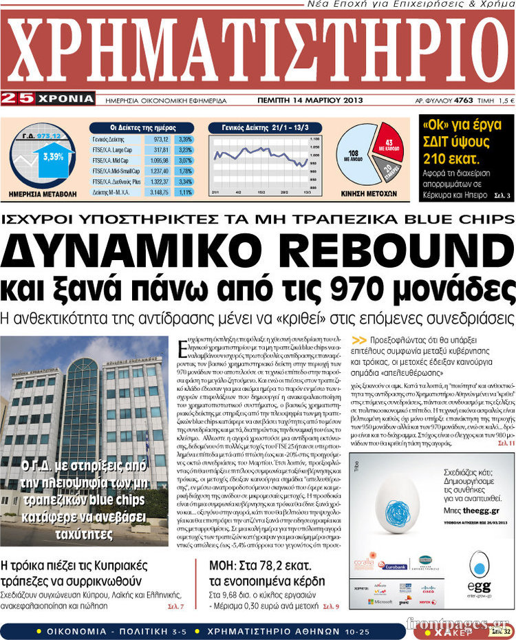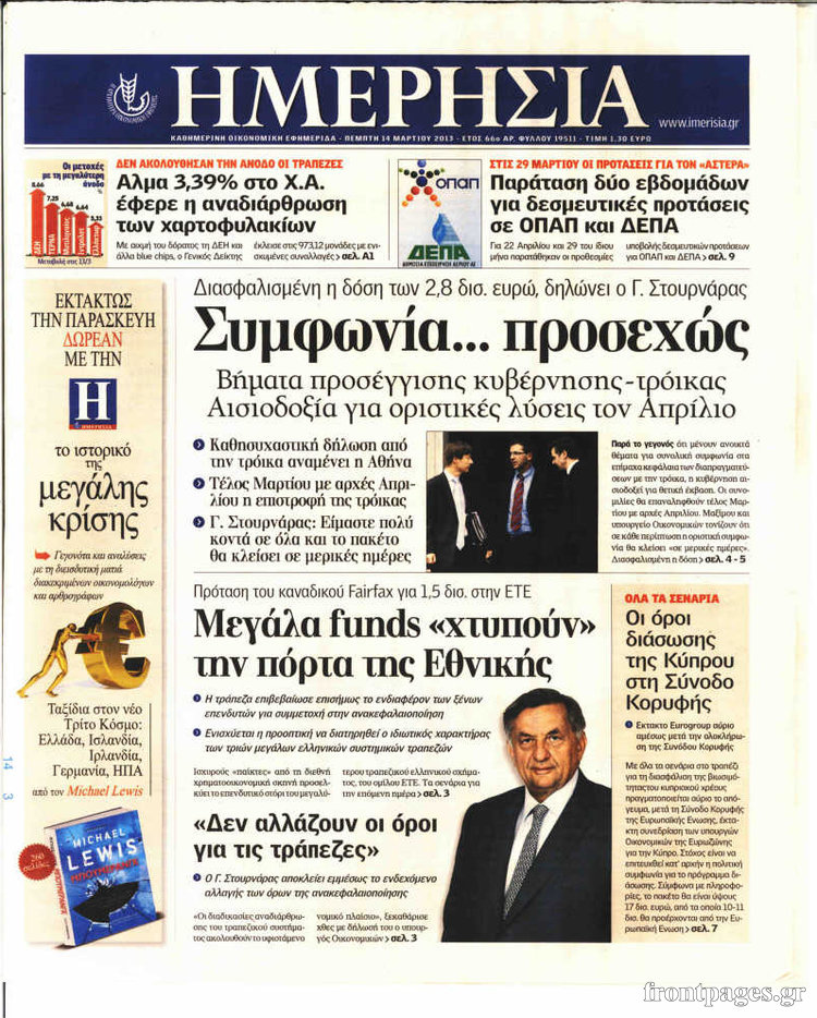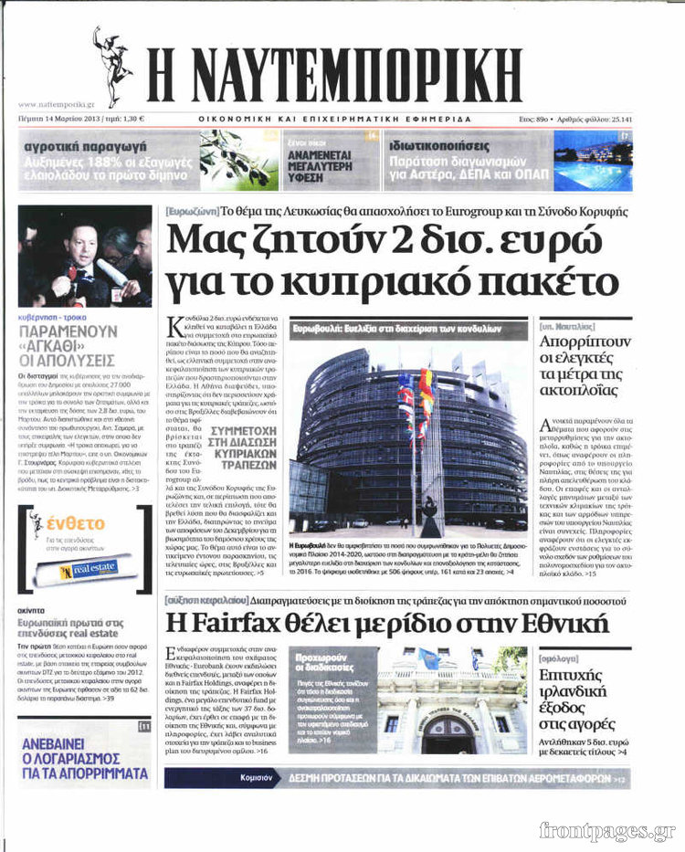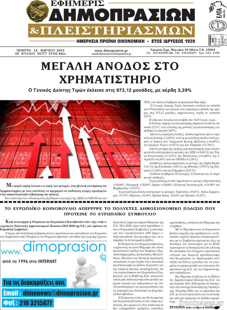 Οι οικονομικές εφημερίδες Enikos Newsroom 08:33, Πέμπτη 14 Μαρτίου 2013 Media Οι οικονομικές εφημερίδες ΕΦΗΜΕΡΙΔΕΣ ΟΙΚΟΝΟΜΙΚΕΣ ΕΦΗΜΕΡΙΔΕΣ ΠΡΩΤΟΣΕΛΙΔΑ Μοιράσου το: σχολίασε κι εσύ (0 σχόλια) Ακολουθήστε το enikos.gr στο Google News και μάθετε πρώτοι όλες τις ειδήσεις Δείτε όλες τις τελευταίες ειδήσεις από την Ελλάδα και τον Κόσμο στο enikos.gr Ειδήσεις Ροή Ειδήσεων 1 ώρα πριν Τσιάρας: Καλούμε άμεσα τους εκπροσώπους των αγροτών σε ουσιαστικό διάλογο – Υπάρχουν περιθώρια, η κοινωνία περιμένει υπευθυνότητα 46 λεπτά πριν Κυψέλη: Για πρώτη ημέρα βρισκόταν στο σχολείο η 16χρονη που επιτέθηκε με μαχαίρι στην 14χρονη – Τι αναφέρουν μαρτυρίες μαθητών για το επεισόδιο 2 ώρες πριν Λάρισα: Αναβλήθηκε για τον Οκτώβριο του 2026 η δίκη δύο αγροτών του μπλόκου της Νίκαιας 6 ώρες πριν Σίδνεϊ: Τα ονόματα των θυμάτων από την τρομοκρατική επίθεση – Η 10χρονη Ματίλντα και ο επιζών του Ολοκαυτώματος που έσωσε τη γυναίκα του 7 ώρες πριν Δείτε LIVE το συνέδριο «Ελληνικός Τουρισμός, Μια Εθνική Υπόθεση!» 1 ώρα πριν Τα 3 ζώδια που θα έχουν τύχη «βουνό» έως τις 21 Δεκεμβρίου – «Η ανατροπή που περιμένετε πλησιάζει» 5 ώρες πριν Μακροζωία: 55χρονος που ισχυρίζεται ότι βιολογικά είναι 20 ετών μοιράζεται μια απλή συμβουλή για υγιή εγκέφαλο 6 ώρες πριν Οι 8 φράσεις που δίνουν αμέσως την εντύπωση πως είστε δύσκολος άνθρωπος 8 ώρες πριν Κληρονόμησε 2,8 εκατ. ευρώ και φοβάται ότι οι άνδρες θα την πλησιάζουν για τα λεφτά – «Μήπως καλύτερα να το κρατήσω μυστικό;» 5 λεπτά πριν Κουίζ για την παλιά Αθήνα: Αναγνωρίζετε την οδό; Είναι από τις πιο γνωστές 11 λεπτά πριν Νίκος Δένδιας: Ανακριβές ότι πήραμε πίσω την πρότασή μας για το SAFE – ΒΙΝΤΕΟ 17 λεπτά πριν Ο Κώστας Μακεδόνας και ο Γιάννης Χριστοδουλόπουλος στο studio 23 λεπτά πριν Κεραμέως: Τα κόμματα θα κληθούν σύντομα να πάρουν θέση για την ιστορική συμφωνία με τους κοινωνικούς εταίρους – «Πυρά» από την αντιπολίτευση 28 λεπτά πριν ΠΑΟΚ: Την Τετάρτη στην Τούμπα ο Χρήστος Ζαφείρης ENIKOS NETWORK Οι 9 κορυφαίες ιατρικές έρευνες για το 2025 που αλλάζουν το τοπίο της υγείας Ραντεβού από σήμερα για ιατρικές εξετάσεις με ένα κλικ μέσω του MyHealth app ΕΛΣΤΑΤ: Μείωση 6,4% στον αριθμό των κενών θέσεων εργασίας στο σύνολο της οικονομίας κατά το γ’ τρίμηνο 2025 – Δείτε αναλυτι... IRIS: Τι αλλάζει μετά την Πρωτοχρονιά στις συναλλαγές και ποιες θα είναι «επικίνδυνες» Σύγχρονος Νοστράδαμος: Προειδοποιεί για «μεγάλο γεγονός» τους επόμενους μήνες που θα συγκλονίσει τη Βρετανία και τον κόσμο Τεστ παρατηρητικότητας: Μπορείτε να βρείτε τις 3 διαφορές στις εικόνες με έναν πιγκουίνο σε 14 δευτερόλεπτα περισσότερα 15:31 , Δευτέρα 15 Δεκεμβρίου 2025 Συνέδριο «Ελληνικός Τουρισμός 2025, Μια εθνική υπόθεση!» – Το στοίχημα του ανθρώπινου δυναμικού στον τουρισμό Τον κρίσιμο ρόλο της εκπαίδευσης, της κατάρτισης και της επάρκειας ανθρώπινου δυναμικού για τη... 14:57 , Δευτέρα 15 Δεκεμβρίου 2025 Συνέδριο «Ελληνικός Τουρισμός 2025, Μια εθνική υπόθεση!» – Σταύρος Αρναουτάκης: Βασικό θέμα για την ανάπτυξη κάθε Περιφέρειας είναι οι υποδομές Το ετήσιο συνέδριο «Ελληνικός Τουρισμός 2025, Μια εθνική υπόθεση!» συνδιοργανώνουν η Next is N... 14:27 , Δευτέρα 15 Δεκεμβρίου 2025 Να μ’ αγαπάς: Η Φωτεινή αποφασίζει να δώσει τέλος στη ζωή της Η Φωτεινή βεβαιώνεται πως είναι έγκυος στο νέο επεισόδιο της σειράς “Να μ’ αγαπάς&... 14:08 , Δευτέρα 15 Δεκεμβρίου 2025 Grand Hotel: Η Μελίνα προσπαθεί να παρασύρει τον Χαραλάμπη και να τον μπλέξει στο σχέδιό της Ανατρεπτικό νέο επεισόδιο 