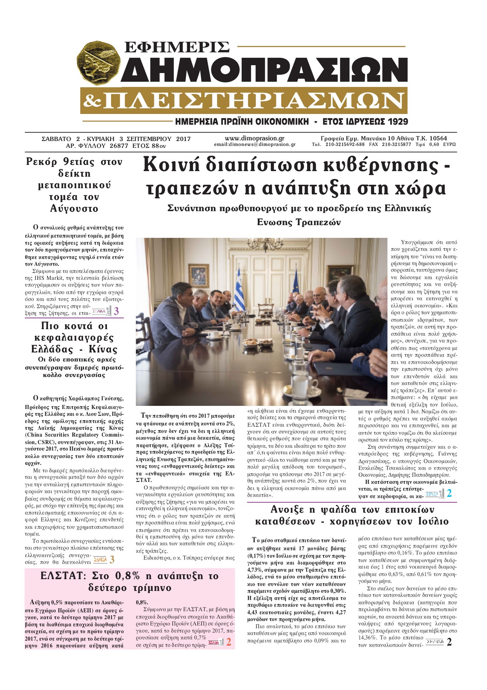 Οι οικονομικές εφημερίδες 2/9/2017 Enikos Newsroom 07:15, Σάββατο 02 Σεπτεμβρίου 2017 Media Διαβάστε τα σημερινά πρωτοσέλιδα των οικονομικών εφημερίδων: ΟΙΚΟΝΟΜΙΚΕΣ ΕΦΗΜΕΡΙΔΕΣ ΠΡΩΤΟΣΕΛΙΔΑ Μοιράσου το: σχολίασε κι εσύ (0 σχόλια) Ακολουθήστε το enikos.gr στο Google News και μάθετε πρώτοι όλες τις ειδήσεις Δείτε όλες τις τελευταίες ειδήσεις από την Ελλάδα και τον Κόσμο στο enikos.gr Ειδήσεις Ροή Ειδήσεων 2 λεπτά πριν Φοροδιαφυγή: Ποιοι φορολογούμενοι κινδυνεύουν να πληρώσουν «τσουχτερά» πρόστιμα 8 ώρες πριν Εκτός ευρωομάδας ΣΥΡΙΖΑ ο Νίκος Παππάς μετά την επίθεση στον δημοσιογράφο Νίκο Γιαννόπουλο – Η μήνυση και οι νέες δηλώσεις 9 ώρες πριν «Αγριεύουν» οι αγρότες: «Δεν συντρέχει λόγος συνάντησης με τον πρωθυπουργό» – Ώρα αποφάσεων στη σύσκεψη της Πέμπτης 9 ώρες πριν Κυψέλη: Χωρίς την οικογένειά της δίπλα της απολογήθηκε η 16χρονη – «Της είχε επιτεθεί κάποιος για να την βιάσει, φοβήθηκε και κυκλοφορούσε με μαχαίρι» 8 ώρες πριν Politico: Το πρόβλημα της Ευρώπης δεν είναι το Βέλγιο αλλά ο Ντόναλντ Τραμπ 1 ώρα πριν Καούρα: Το μπαχαρικό που είναι «εξίσου αποτελεσματικό» με την ομεπραζόλη, σύμφωνα με ειδικούς 2 ώρες πριν Τα ζώδια σήμερα, Πέμπτη 18 Δεκεμβρίου: Λέοντες, η καρδιά σας θέλει να εκφραστεί 8 ώρες πριν Μυστήριο με τεράστιες κυκλικές πέτρες 200 κιλών – Ανακαλύφθηκαν τυχαία κατά τη διάρκεια οδικών έργων και κανείς δεν ξέρει από πού προέρχονται 22 ώρες πριν 20 χρόνια τα Χριστούγεννα ξεκινούν στα Public με μεγάλη ποικιλία σε δώρα! 2 λεπτά πριν Φοροδιαφυγή: Ποιοι φορολογούμενοι κινδυνεύουν να πληρώσουν «τσουχτερά» πρόστιμα 14 λεπτά πριν Εορτολόγιο: Ποιοι γιορτάζουν σήμερα 18 Δεκεμβρίου 26 λεπτά πριν Επιχειρήσεις: Έρχονται νέα μέτρα φορολογικών ελαφρύνσεων – Τα σχέδια για την προκαταβολή φόρου και το τέλος επιτηδεύματος 33 λεπτά πριν ΗΠΑ: Οριστική άρση κυρώσεων κατά της Συρίας – Ανοίγει ο δρόμος για επενδύσεις 41 λεπτά πριν Οι τελευταίες εξελίξεις στην εμπορική συμφωνία Ευρωπαϊκής Ένωσης – Mercosur ENIKOS NETWORK Μπορείτε να εντοπίσετε το ποντικάκι που κρύβεται πίσω από όλα τα μανιτάρια; Μόνο όσοι έχουν τα μάτια γερακιού μπορούν να λύ... Το «λουλούδι σκαντζόχοιρος» που μπορεί να ενισχύσει το ανοσοποιητικό, να μειώσει τη φλεγμονή και να ρυθμίσει το σάκχαρο Φοροδιαφυγή: Ποιοι φορολογούμενοι κινδυνεύουν να πληρώσουν «τσουχτερά» πρόστιμα ΕΛΣΤΑΤ: Τι δείχνουν τα νέα στοιχεία για τις ηλεκτρονικές παραγγελίες των επιχειρήσεων Χαρτογραφώντας το «σημείο χωρίς επιστροφή»: Για πρώτη φορά αποκαλύπτεται με λεπτομέρεια το ακανθώδες όριο της ατμόσφαιρας τ... Η Google καταργεί τη λειτουργία «dark web report» – Πώς θα μπορούν οι χρήστες να διαγράφουν τα δεδομένα τους περισσότερα 05:48 , Πέμπτη 18 Δεκεμβρίου 2025 Οι οικονομικές εφημερίδες 18/12/2025 Διαβάστε τα πρωτοσέλιδα από τις οικονομικές εφημερίδες, σήμερα 18/12/2025. 05:43 , Πέμπτη 18 Δεκεμβρίου 2025 Οι αθλητικές εφημερίδες 18/12/2025 Διαβάστε τα πρωτοσέλιδα από τις αθλητικές εφημερίδες, σήμερα 18/12/2025. 05:38 , Πέμπτη 18 Δεκεμβρίου 2025 Οι πολιτικές εφημερίδες 18/12/2025 Διαβάστε τα πρωτοσέλιδα από τις πολιτικές εφημερίδες, σήμερα 18/12/2025. 05:22 , Πέμπτη 18 Δεκεμβρίου 2025 Το Ποντίκι σήμερα Πέμπτη 18/12/2025 Διαβάστε το πρωτοσέλιδο της εφημερίδας «Το Ποντίκι» σήμερα 18/12/2025. ΤΕΛΕΥΤΑΙΕΣ ΕΙΔΗΣΕΙΣ 14 λεπτά πριν Εορτολόγιο: Ποιοι γιορτάζουν σήμερα 18 Δεκεμβρίου 26 λεπτά πριν Επιχειρήσεις: Έρχονται νέα μέτρα φορολογικών... 33 λεπτά πριν ΗΠΑ: Οριστική άρση κυρώσεων κατά της Συρίας – Ανοίγει... 41 λεπτά πριν Οι τελευταίες