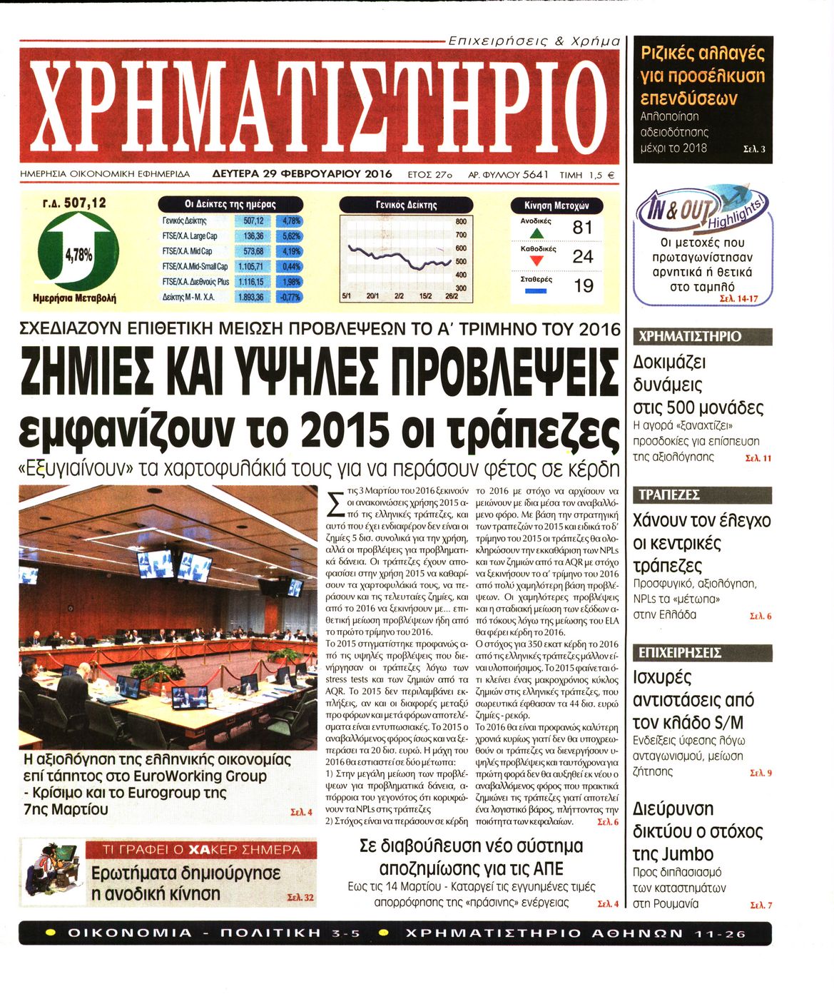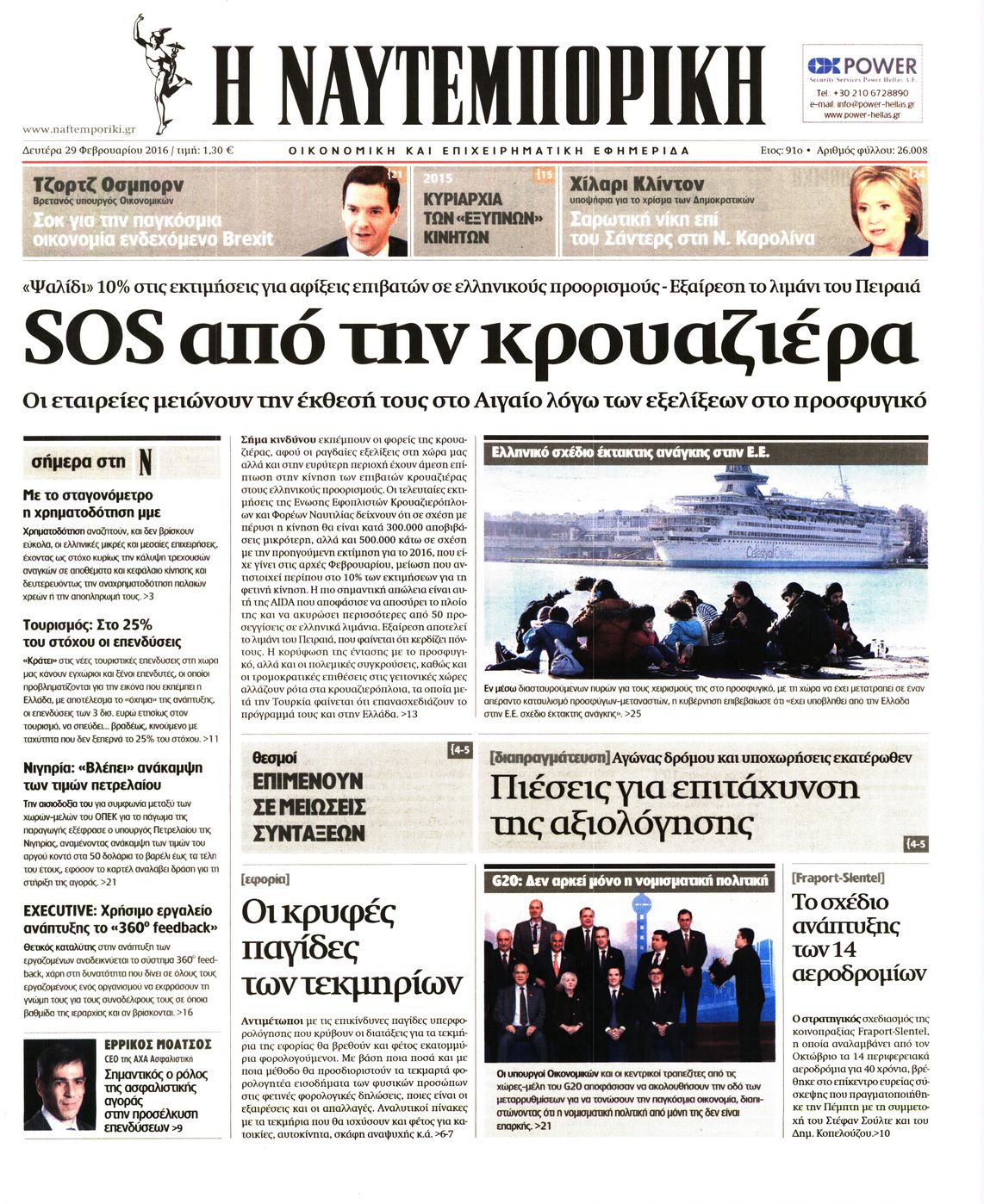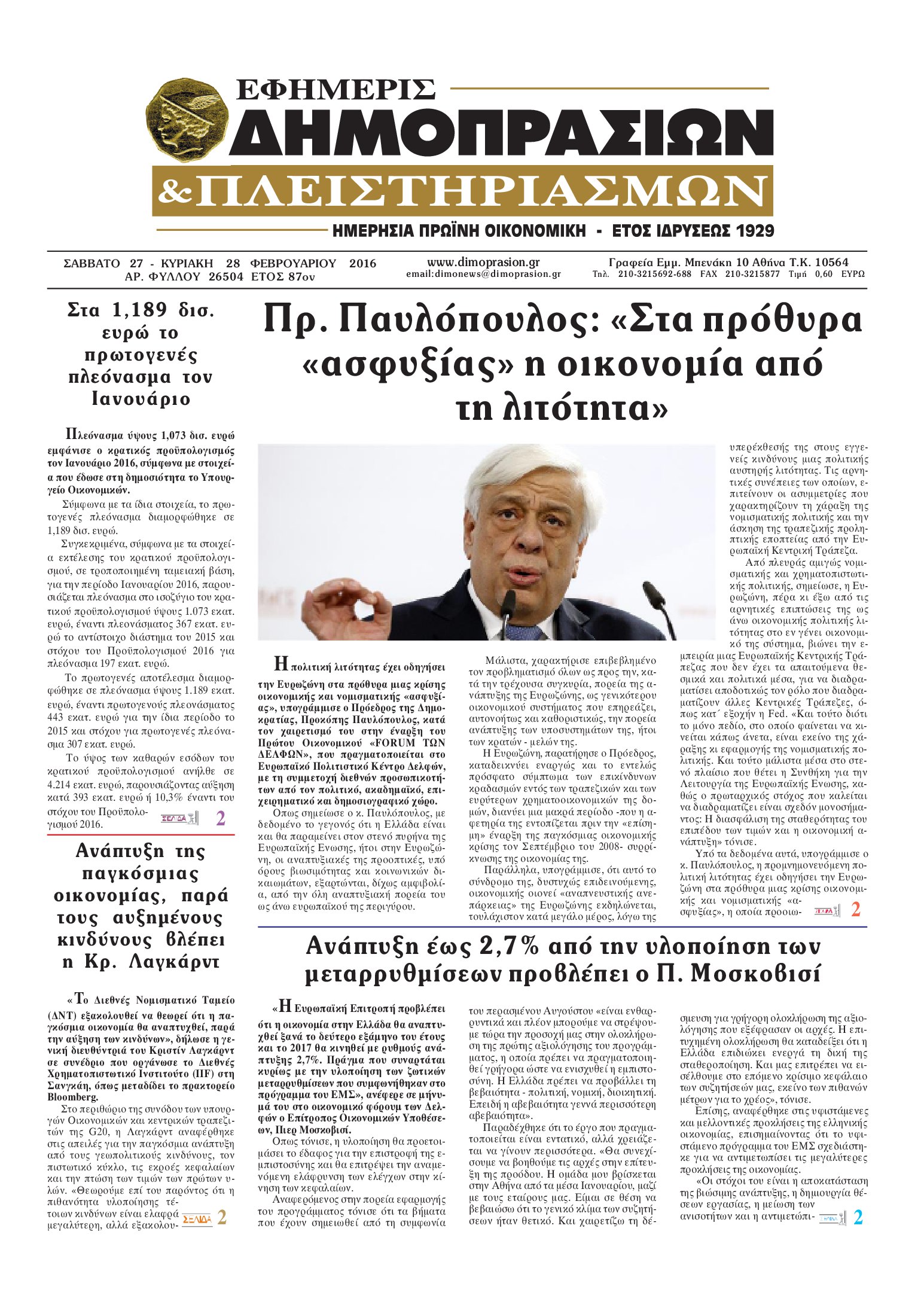 Οι οικονομικές εφημερίδες 29/2/2016 Enikos Newsroom 06:40, Δευτέρα 29 Φεβρουαρίου 2016 Media Διαβάστε τα σημερινά πρωτοσέλιδα των οικονομικών εφημερίδων: ΟΙΚΟΝΟΜΙΚΕΣ ΕΦΗΜΕΡΙΔΕΣ ΠΡΩΤΟΣΕΛΙΔΑ Μοιράσου το: σχολίασε κι εσύ (0 σχόλια) Ακολουθήστε το enikos.gr στο Google News και μάθετε πρώτοι όλες τις ειδήσεις Δείτε όλες τις τελευταίες ειδήσεις από την Ελλάδα και τον Κόσμο στο enikos.gr Ειδήσεις Ροή Ειδήσεων 2 ώρες πριν ΑΑΔΕ: Στον Εισαγγελέα οι πρώτες 50 μαζικές διαγραφές αγρών στο Ε9 – Εξετάζονται συνολικά 3.000 περιπτώσεις 5 ώρες πριν Καιρός: Νέο έκτακτο δελτίο επιδείνωσης από την ΕΜΥ – Ποιες περιοχές θα «χτυπήσει» η κακοκαιρία τα Χριστούγεννα 1 ώρα πριν Ζελένσκι: Πέρασε στην αντεπίθεση με το σχέδιο ειρήνης – Ζητεί συνάντηση με Τραμπ για το εδαφικό 6 ώρες πριν Live – Έξοδος Χριστουγέννων: Αυξημένη η κίνηση στις Εθνικές Οδούς – Εικόνα αποσυμφόρησης με νέες λωρίδες κυκλοφορίας στα αγροτικά μπλόκα 5 ώρες πριν Αεροπορικό δυστύχημα στην Τουρκία: Στο μικροσκόπιο ο καταγραφέας ήχου και το μαύρο κουτί – Η αεροσυνοδός Maria Pappa ανάμεσα στα θύματα 1 ώρα πριν Τα 5 ζώδια που έχουν μεγάλες πιθανότητες να πλουτίσουν το 2026 – «Οι οικονομικές δυσκολίες ανήκουν στο παρελθόν» 2 ώρες πριν Επιστήμονες ανακάλυψαν κάτι συγκλονιστικό – Η μάζα μπορεί να προέρχεται από αόρατες διαστάσεις 6 ώρες πριν Γυναίκα που έχασε 30 κιλά αποκαλύπτει τα μυστικά της επιτυχίας της – «Οι υδατάνθρακες είναι καύσιμο του οργανισμού, όχι εχθρός» 5 ώρες πριν Οι άνθρωποι που αποφεύγουν να γιορτάσουν τα Χριστούγεννα με την οικογένειά τους, συνήθως είχαν αυτές τις 8 εμπειρίες στην παιδική ηλικία 6 λεπτά πριν Greek Mafia: Στον ανακριτή ο 35χρονος συνεργός του «Εντίκ» – Σε δύο δόσεις η απολογία του 13 λεπτά πριν Κουίζ για την παλιά Αθήνα: Αναγνωρίζετε την περιοχή; Είναι από τις πιο γνωστές 20 λεπτά πριν Νετανιάχου: Κατηγορεί τη Χαμάς για παραβίαση της συμφωνίας – 110 δισ. δολάρια για ανεξάρτητη βιομηχανία όπλων 26 λεπτά πριν Θεσσαλονίκη: Άναψαν οι ψησταριές παρά τη βροχή στη Βασιλέως Ηρακλείου – Δείτε βίντεο 32 λεπτά πριν Σούπερ προσφορές* για Boxing Day, Super League, NBA και EuroLeague από το Pamestoixima.gr ENIKOS NETWORK ΕΟΔΥ: Οι «χρυσές» συμβουλές για να απολαύσουμε το Χριστουγεννιάτικο τραπέζι χωρίς υπερβολές New Year’s Resolutions: Μικρές αποφάσεις για μια καλή χρονιά ΑΑΔΕ: Στον Εισαγγελέα οι πρώτες 50 μαζικές διαγραφές αγρών στο Ε9 – Η λίστα με 3.000 «ιδιοκτήτες» για επιδοτήσεις ΟΠΕΚΕΠΕ Αλλάζουν οι διατάξεις του Κτιριοδομικού του Κτιριοδομικού Κανονισμού – Τι είπε ο Ταγαράς Ο Google Assistant θα παραμείνει λίγο περισσότερο για ορισμένους χρήστες Android Τεστ προσωπικότητας: Το βάζο που θα επιλέξετε αποκαλύπτει πώς λύνετε προβλήματα στη ζωή σας περισσότερα 16:12 , Τετάρτη 24 Δεκεμβρίου 2025 ALPHA: Παραμονή Χριστουγέννων με τον Κωνσταντίνο Αργυρό Ο Alpha παρουσιάζει απόψε σε πρώτη τηλεοπτική μετάδοση τη συναρπαστική και sold out εμφάνιση ... 15:51 , Τετάρτη 24 Δεκεμβρίου 2025 ‘Αγιος Έρωτας: Ο σεισμός που έκοψε την ανάσα – Δείτε τις συγκλονιστικές σκηνές Με έναν συγκλονιστικό τρόπο έκλεισε χθες βράδυ το τελευταίο επεισόδιο του 2025 της σειράς R... 13:27 , Τετάρτη 24 Δεκεμβρίου 2025 Ο Χριστουγεννιάτικος Τηλεμαραθώνιος του ΑΝΤ1 ένωσε τους πολιτικούς αρχηγούς – Τα εγκωμιαστικά σχόλια για τον Θοδωρή Κυριακού Σπάνια ομοφωνία: Όλοι οι πολιτικοί αρχηγοί αποθεώνουν τον Θοδωρή Κυριακού Ο Χριστουγεννιάτικος... 12:05 , Τετάρτη 24 Δεκεμβρίου 2025 Έξοδος εκδρομέων για τα Χριστούγεννα: Στείλε βίντεο ή φωτογραφίες στο enikos.gr – Απο