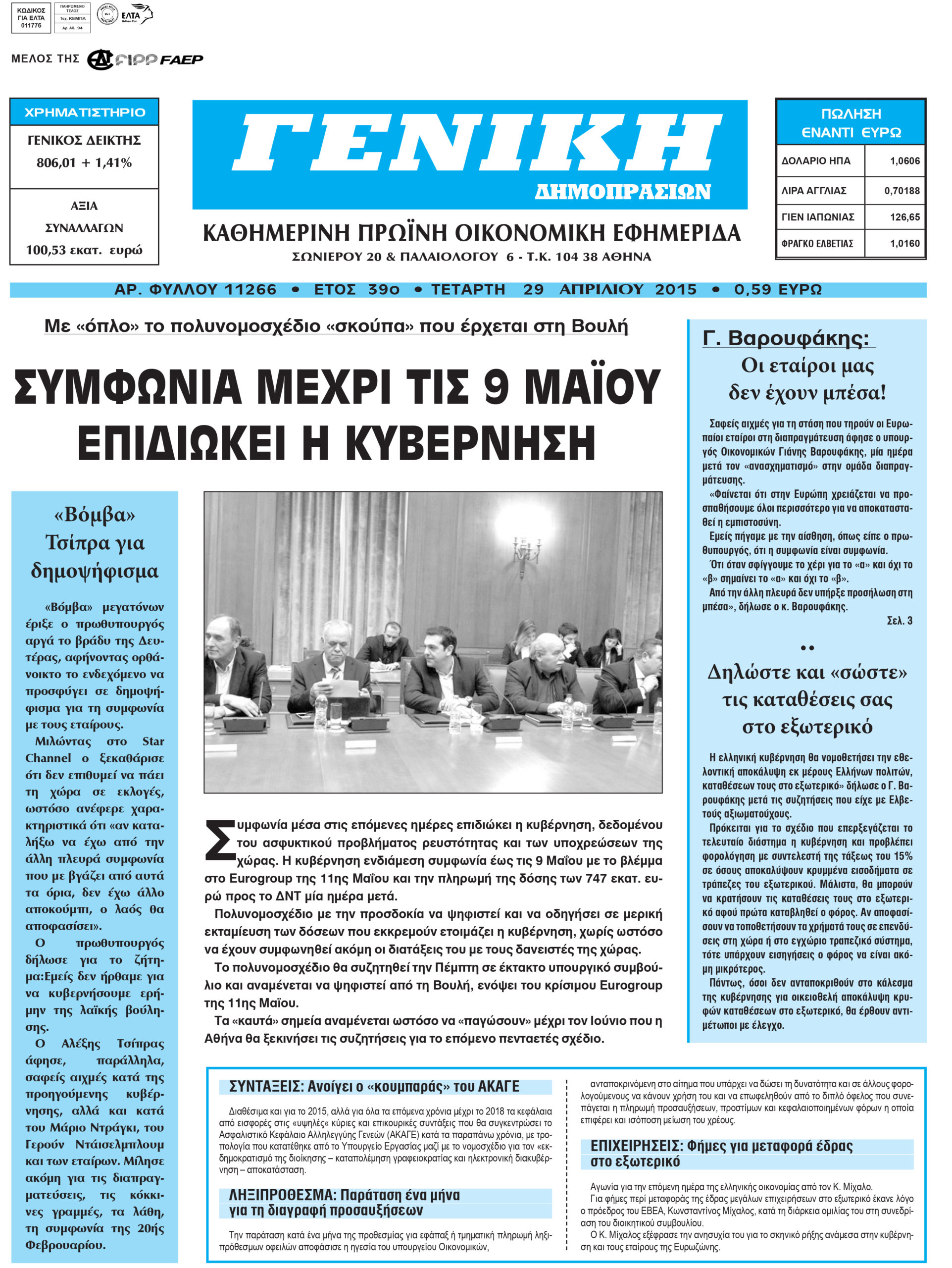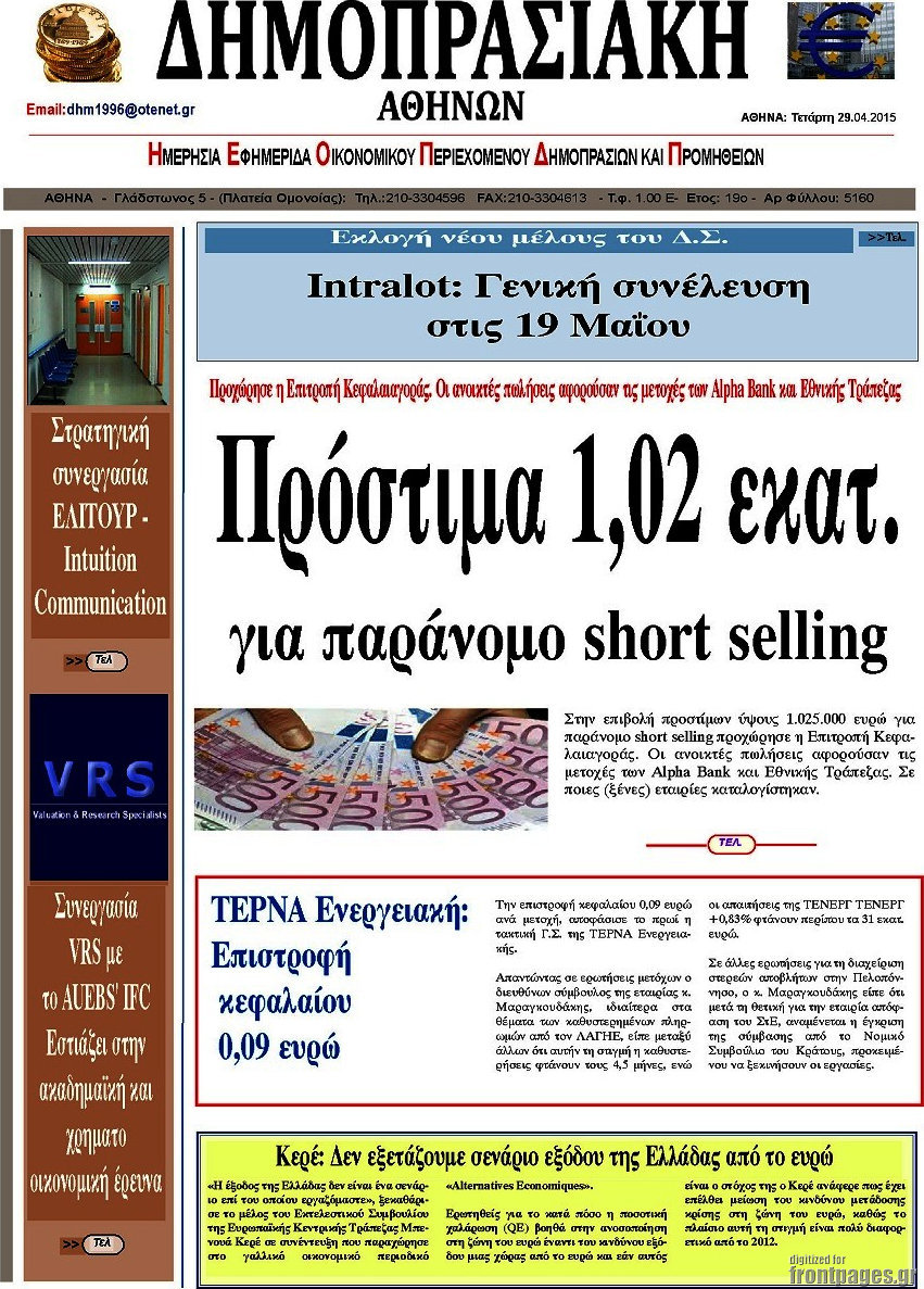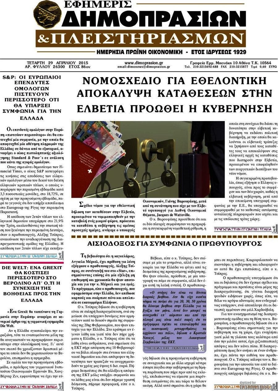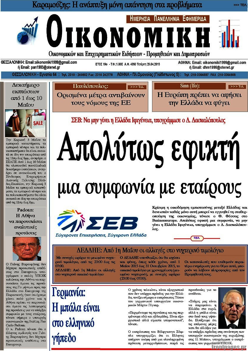 Οι οικονομικές εφημερίδες 29/4/2015 Enikos Newsroom 07:11, Τετάρτη 29 Απριλίου 2015 Media Διαβάστε τα σημερινά πρωτοσέλιδα των οικονομικών εφημερίδων: ΟΙΚΟΝΟΜΙΚΕΣ ΕΦΗΜΕΡΙΔΕΣ ΠΡΩΤΟΣΕΛΙΔΑ Μοιράσου το: σχολίασε κι εσύ (0 σχόλια) Ακολουθήστε το enikos.gr στο Google News και μάθετε πρώτοι όλες τις ειδήσεις Δείτε όλες τις τελευταίες ειδήσεις από την Ελλάδα και τον Κόσμο στο enikos.gr Ειδήσεις Ροή Ειδήσεων 32 λεπτά πριν Έρευνα MRB: Η πρόθεση ψήφου και τα σημαντικότερα προβλήματα – Οι «λέξεις» που εκφράζουν τους πολίτες 25 λεπτά πριν Αλαλούμ με τις πληρωμές στους αγρότες: Δεν καταβλήθηκε η Βασική Ενίσχυση, αλλά έγινε παρακράτηση της εισφοράς στον ΕΛΓΑ – Τι απαντά η κυβέρνηση 1 ώρα πριν Αγρότες: Πολύωροι αποκλεισμοί και σήμερα στα τελωνεία Ευζώνων, Νίκης, Προμαχώνα και Εξοχής 2 ώρες πριν Ρομπ Ράινερ: Το δείπνο με τους Ομπάμα που δεν έγινε ποτέ και νέα στοιχεία για τον «καβγά» στο πάρτι – Βίντεο με τον γιο του να περιφέρεται κοντά στο σπίτι της τραγωδίας 1 ώρα πριν Κυψέλη: Μαθητές κλείδωσαν τους καθηγητές μέσα στο Γυμνάσιο μετά την επίθεση με μαχαίρι 17 λεπτά πριν Τα 4 ζώδια που ξαναβρίσκουν τον εαυτό τους – «Μπαίνετε επιτέλους στην ουσία των πραγμάτων» 4 ώρες πριν Οπτική ψευδαίσθηση: Μόνο αν είσαι ο Σέρλοκ Χολμς θα βρεις τον σκύλο σε 15 δευτερόλεπτα 3 ώρες πριν Νεολιθικός σκύλος βρέθηκε προσεκτικά θαμμένος στον βυθό λίμνης – Δίπλα του βρέθηκε ένα στιλέτο 2 ώρες πριν Έλαβε τελεσίγραφο από τη σύντροφό του – «Μου είπε πως ή θα της κάνω πρόταση στα δύο χρόνια σχέσης ή θα με χωρίσει» 7 λεπτά πριν Λούκας Γιώρκας: «Έχω δεχθεί παρατραβηγμένες συμπεριφορές – Άφησα τον άνθρωπο να εκτονωθεί και συνέχισα» 12 λεπτά πριν Οι Νιου Γιορκ Νικς κατέκτησαν το NBA Cup – MVP ο Τζέιλεν Μπράνσον με 25 πόντους και 8 ασίστ 17 λεπτά πριν Τα 4 ζώδια που ξαναβρίσκουν τον εαυτό τους – «Μπαίνετε επιτέλους στην ουσία των πραγμάτων» 18 λεπτά πριν «Οδύσσεια»: Νέες εντυπωσιακές φωτογραφίες από το κινηματογραφικό έπος του Κρίστοφερ Νόλαν 22 λεπτά πριν Κλιμάκωση από την Παρασκευή προαναγγέλλουν οι αγρότες – «Ψίχουλα οι εξαγγελίες Χατζηδάκη» λέει ο Σωκράτης Αλειφτήρας ENIKOS NETWORK Αδενώματα Υπόφυσης: Μια πάθηση καλοήθης, αλλά όχι αθώα Χρόνια Αναπνευστικά Νοσήματα: 400.000 θάνατοι ετησίως στην Ευρώπη Ειδικό επιδοτούμενο πρόγραμμα κατάρτισης της ΔΥΠΑ για ανέργους: Αρχίζει σήμερα η υποβολή ενστάσεων-Ποιους αφορά Δώρο Χριστουγέννων και επιδόματα της ΔΥΠΑ: Σήμερα αρχίζει η προπληρωμή τους-Ποιους αφορά Σύγχρονος Νοστράδαμος: Προειδοποιεί για «μεγάλο γεγονός» τους επόμενους μήνες που θα συγκλονίσει τη Βρετανία και τον κόσμο Τεστ παρατηρητικότητας: Μπορείτε να βρείτε τις 3 διαφορές στις εικόνες με έναν πιγκουίνο σε 14 δευτερόλεπτα περισσότερα 09:08 , Τετάρτη 17 Δεκεμβρίου 2025 Τηλεθέαση (16/12): Ανακατατάξεις στην πρωινή ψυχαγωγική ζώνη Ξεκάθαρη πρωτιά στην τηλεθέαση για την «Super Κατερίνα» στο δυναμικό κοινό με ποσοστό 18,5%, α... 08:00 , Τετάρτη 17 Δεκεμβρίου 2025 Την Κυριακή με τη Realnews: Δωροεπιταγή 10€ Δωροεπιταγή αξίας 10€ για αγορές άνω των 60€ από τα πολυκαταστήματα FactoryOutlet H προσφορά ι... 07:00 , Τετάρτη 17 Δεκεμβρίου 2025 Την Κυριακή με τη Realnews: Ό,τι και αν αγοράσεις, σκανάρεις και κερδίζεις! Την Κυριακή με τη Realnews: Ό,τι και αν αγοράσεις, σκανάρεις και κερδίζεις! Με το PADU app, το... 05:48 , Τετάρτη 17 Δεκεμβρίου 2025 Οι οικονομικές εφημερίδες 17/12/2025 Διαβάστε τα πρωτοσέλιδα από τις οικονομικές εφημερίδες, σήμερα 17/12/2025. ΤΕΛΕΥΤΑΙΕΣ ΕΙΔΗΣΕΙΣ 7 λεπτά πριν Λούκας Γιώρκας: «Έχω