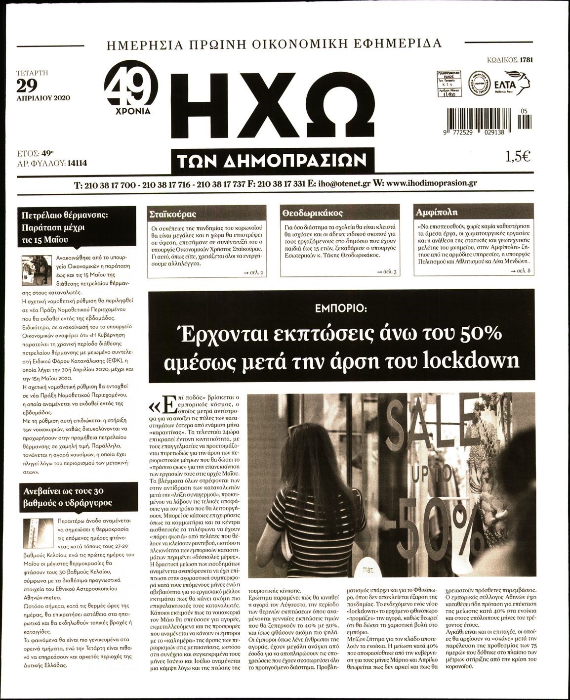 Οι οικονομικές εφημερίδες 29/4/2020 Διονύσης Νίκκας 06:34, Τετάρτη 29 Απριλίου 2020 Media Διαβάστε τα πρωτοσέλιδα των οικονομικών εφημερίδων… ΟΙΚΟΝΟΜΙΚΕΣ ΕΦΗΜΕΡΙΔΕΣ ΠΡΩΤΟΣΕΛΙΔΑ Μοιράσου το: σχολίασε κι εσύ (0 σχόλια) Ακολουθήστε το enikos.gr στο Google News και μάθετε πρώτοι όλες τις ειδήσεις Δείτε όλες τις τελευταίες ειδήσεις από την Ελλάδα και τον Κόσμο στο enikos.gr Ειδήσεις Ροή Ειδήσεων 1 ώρα πριν Πώς δρούσε το κύκλωμα που διακινούσε ναρκωτικά σε σχολεία – Υπέβαλαν σε βασανιστήρια όσους δεν τηρούσαν τους «κανόνες πειθαρχίας» 2 ώρες πριν Αγρότες: Γιορτές στα μπλόκα με ανοιχτά διόδια – Δικογραφία στα Ιωάννινα για το σήκωμα των μπαρών 6 ώρες πριν Αρχεία Έπσταϊν: Οι συγκλονιστικές φωτογραφίες – Ο Μάικλ Τζάκσον, ο Μικ Τζάγκερ και ο Κέβιν Σπέισι ανάμεσα στους διάσημους που απεικονίζονται 35 λεπτά πριν NBC: Ο Νετανιάχου σχεδιάζει να ενημερώσει τον Τραμπ για πιθανά νέα πλήγματα εναντίον του Ιράν 44 λεπτά πριν Αττική: Εξαρθρώθηκε εγκληματική οργάνωση που έκλεβε οχήματα, τα παραποιούσε και τα μεταπωλούσε σε πολίτες – Πώς δρούσε το κύκλωμα 2 ώρες πριν Η τύχη χαμογελά σε 3 ζώδια έως τις 28 Δεκεμβρίου – «Προσέξτε τις επιλογές σας και η επιμονή σας θα ανταμειφθεί» 6 ώρες πριν Διαιτολόγος αποκαλύπτει 9 πρωινές συνήθειες που «λιώνουν» το κοιλιακό λίπος – «Υποστηρίζουν την υγιεινή απώλεια βάρους» 3 ώρες πριν Μία ανεκμετάλλευτη πηγή θα μπορούσε να προσφέρει ανεξάντλητη ενέργεια – Οι επιστήμονες ίσως γνωρίζουν πώς να την ξεκλειδώσουν 9 ώρες πριν Enerwave: Το νέο «ρεύμα» στη λιανική ενέργειας που αλλάζει την εμπειρία του καταναλωτή 9 λεπτά πριν Η Realnews στο www.pressreader.com 16 λεπτά πριν Νιούκαστλ – Τσέλσι 2-2: Αλύγιστοι οι Λονδρέζοι 26 λεπτά πριν Μικαέλα Μπέντχαους: Ο πρώτος άνθρωπος σε αναπηρικό αμαξίδιο που ταξίδεψε στο διάστημα – ΒΙΝΤΕΟ 35 λεπτά πριν NBC: Ο Νετανιάχου σχεδιάζει να ενημερώσει τον Τραμπ για πιθανά νέα πλήγματα εναντίον του Ιράν 44 λεπτά πριν Αττική: Εξαρθρώθηκε εγκληματική οργάνωση που έκλεβε οχήματα, τα παραποιούσε και τα μεταπωλούσε σε πολίτες – Πώς δρούσε το κύκλωμα ENIKOS NETWORK Γιατί πρέπει να ζητάμε χάρες; Ποιο είναι το φαινόμενο Ben Franklin που κάνει τους άλλους να μας συμπαθούν Η αποχή από την αναπαραγωγή παρατείνει τη ζωή στα ζώα, σύμφωνα με μελέτη – Τι ισχύει για τους ανθρώπους; Τράπεζες: Πόσες ημέρες θα είναι κλειστές μέσα στις γιορτές Στα ύψη ο χρυσός – Νέο ρεκόρ στην τιμή της λίρας, πόσο πωλείται Χαρτογραφώντας το «σημείο χωρίς επιστροφή»: Για πρώτη φορά αποκαλύπτεται με λεπτομέρεια το ακανθώδες όριο της ατμόσφαιρας τ... Η Google καταργεί τη λειτουργία «dark web report» – Πώς θα μπορούν οι χρήστες να διαγράφουν τα δεδομένα τους περισσότερα 14:04 , Σάββατο 20 Δεκεμβρίου 2025 Η Realnews αυτής της Κυριακής (21/12/2025) Με τίτλο: «Ασπίδα προστασίας για την Ελλάδα» κυκλοφορεί, αυτήν την Κυριακή, η Realnews. Σημαντ... 12:53 , Σάββατο 20 Δεκεμβρίου 2025 Να μ’ αγαπάς: Το παρελθόν έρχεται στο φως – Καταιγιστικές εξελίξεις στα τελευταία επεισόδια του 2025 Ο Άγγελος αποκαλύπτεται, η Φωτεινή ανησυχεί για τον Λευτέρη και η Ζωή έρχεται αντιμέτωπη με το... 11:41 , Σάββατο 20 Δεκεμβρίου 2025 «Η αγάπη δεν χάνεται ποτέ»: Η μικρού μήκους ταινία κινουμένων σχεδίων που θέτει ερωτήματα για τη ζωή και τον θάνατο Ο θάνατος είναι ένα από τα πιο σκληρά θέματα που καλείται να διαχειριστεί κάποιος στη διάρκεια... 09:30 , Σάββατο 20 Δεκεμβρίου 2025 «Porto Leone: Στη γειτονιά με τα κόκκινα φανάρια» – Ο Χρόνης αποκαλύπτει στην Αλεξάνδρα το μυστικό για το πα
