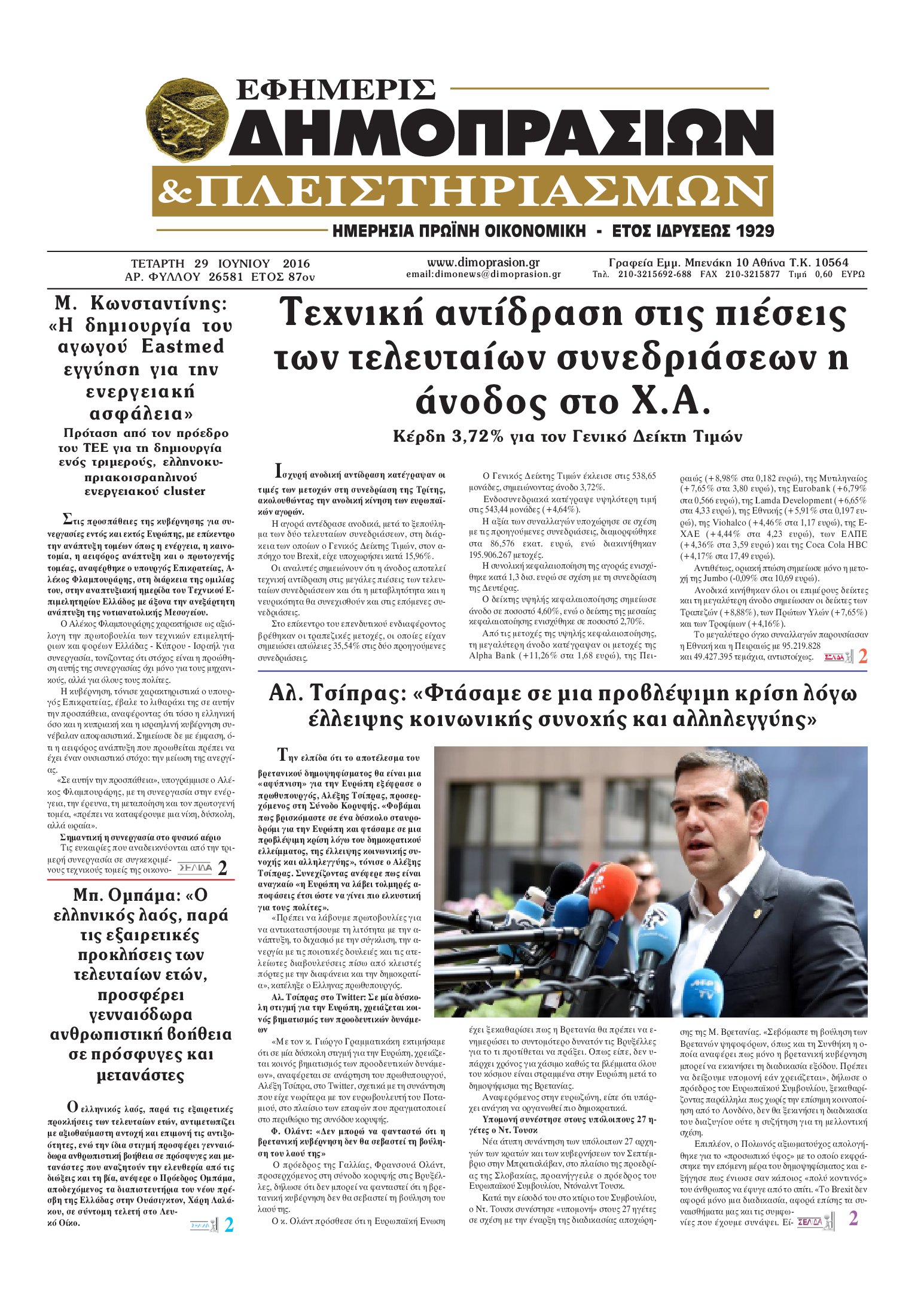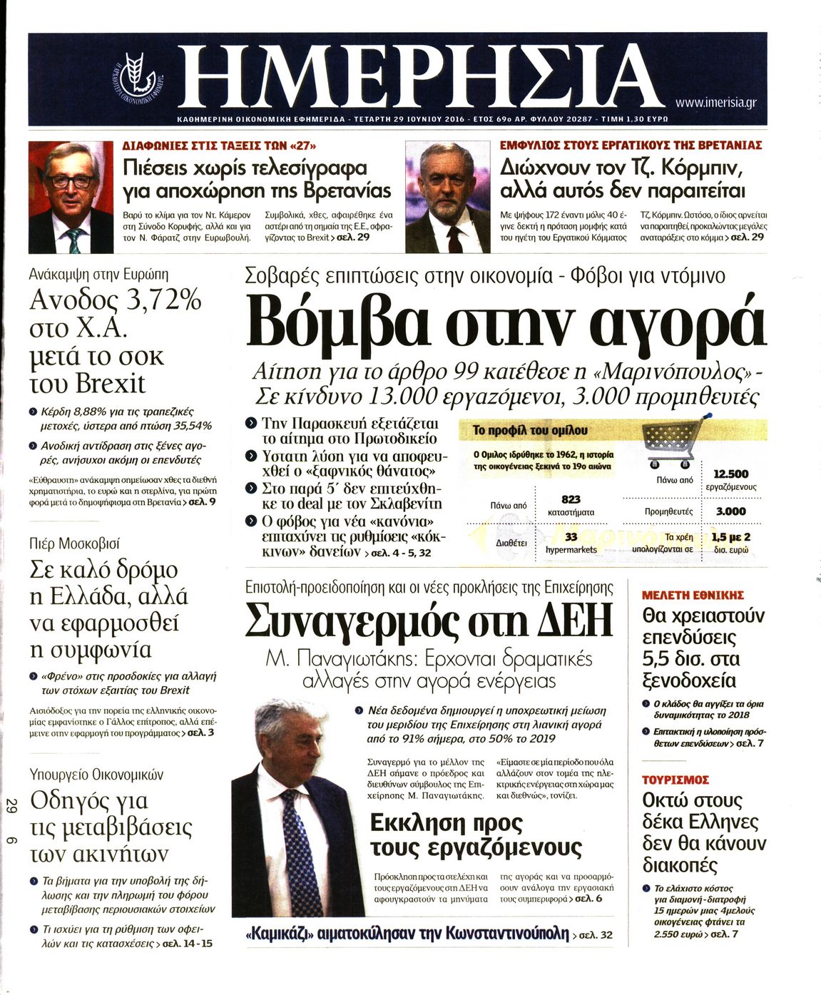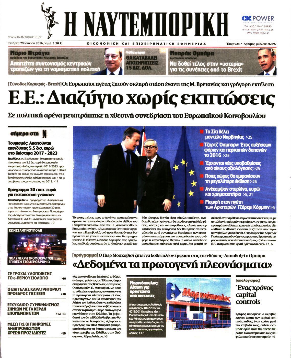 Οι οικονομικές εφημερίδες 29/6/2016 Enikos Newsroom 05:16, Τετάρτη 29 Ιουνίου 2016 Media Διαβάστε τα σημερινά πρωτοσέλιδα των οικονομικών εφημερίδων: ΟΙΚΟΝΟΜΙΚΕΣ ΕΦΗΜΕΡΙΔΕΣ ΠΡΩΤΟΣΕΛΙΔΑ Μοιράσου το: σχολίασε κι εσύ (0 σχόλια) Ακολουθήστε το enikos.gr στο Google News και μάθετε πρώτοι όλες τις ειδήσεις Δείτε όλες τις τελευταίες ειδήσεις από την Ελλάδα και τον Κόσμο στο enikos.gr Ειδήσεις Ροή Ειδήσεων 1 ώρα πριν Αυξάνουν την πίεση προς την κυβέρνηση οι αγρότες: Κλείνουν παρακαμπτήριους και ανοίγουν διόδια – Τι θα γίνει τις γιορτές 8 λεπτά πριν ΟΠΕΚΕΠΕ: Προφυλακιστέος ο φερόμενος αρχηγός και ο λογιστής της εγκληματικής οργάνωσης 1 ώρα πριν Φοινικούντα: Το Σάββατο απολογείται ο 30χρονος γιος γνωστού επιχειρηματία της Πλάκας που παραδόθηκε – Όσα είπε στους αστυνομικούς και ο ρόλος του στο έγκλημα 49 λεπτά πριν Μπορεί ο Μαδούρο να αντέξει τον αποκλεισμό του Τραμπ; Τι θα χρειαστεί η Ουάσινγκτον για να τον ανατρέψει 2 ώρες πριν Πρίγκιπας Ουίλιαμ – Κέιτ: Η νέα οικογενειακή φωτογραφία για τις Χριστουγεννιάτικες κάρτες του 2025 2 ώρες πριν Ύπνος: Η απλή βραδινή ρουτίνα για να προστατεύσετε τα μαλλιά σας από το κρύο κατά τη διάρκεια του χειμώνα 3 ώρες πριν Manifesting: Πώς να συναντήσετε τον σύντροφο της ζωής σας, ανάλογα με τον μήνα γέννησής σας 2 ημέρες πριν 20 χρόνια τα Χριστούγεννα ξεκινούν στα Public με μεγάλη ποικιλία σε δώρα! 52 λεπτά πριν Αρχαιολόγοι ανακάλυψαν ρωμαϊκά τεχνουργήματα από μια πόλη που δεν υπήρξε ποτέ – Τα τρία εντυπωσιακά κτίρια και ο αμφορέας με τις… σαρδέλες 8 λεπτά πριν ΟΠΕΚΕΠΕ: Προφυλακιστέος ο φερόμενος αρχηγός και ο λογιστής της εγκληματικής οργάνωσης 18 λεπτά πριν Αθηνά Μαξίμου: Η τρυφερή ανάρτηση για τα γενέθλια του Αιμίλιου Χειλάκη – «Είναι η εκλεκτική συγγένειά μου, η επιλογή και η ευθύνη μου» 33 λεπτά πριν Παναθηναϊκός – Χάποελ Τελ Αβίβ 93-82: Με… φόρα από την Κωνσταντινούπολη 49 λεπτά πριν Μπορεί ο Μαδούρο να αντέξει τον αποκλεισμό του Τραμπ; Τι θα χρειαστεί η Ουάσινγκτον για να τον ανατρέψει 52 λεπτά πριν Αρχαιολόγοι ανακάλυψαν ρωμαϊκά τεχνουργήματα από μια πόλη που δεν υπήρξε ποτέ – Τα τρία εντυπωσιακά κτίρια και ο αμφορέας με τις… σαρδέλες ENIKOS NETWORK Σε περίοδο αυξημένης δραστηριότητας η γρίπη στην Ελλάδα-Μέτρα προστασίας από τον ΕΟΔΥ Σκέφτεστε συνέχεια συζητήσεις που έχετε κάνει; Τι σημαίνει αυτό, σύμφωνα με ειδικό Στεγαστικό: Τι λέει η ΠΟΜΙΔΑ για τα νέα μέτρα που ανακοίνωσε ο Κυριάκος Μητσοτάκης Λαγκάρντ: Αισιόδοξη για την ανάπτυξη της Ευρωζώνης, αβέβαιη για τον πληθωρισμό Χαρτογραφώντας το «σημείο χωρίς επιστροφή»: Για πρώτη φορά αποκαλύπτεται με λεπτομέρεια το ακανθώδες όριο της ατμόσφαιρας τ... Η Google καταργεί τη λειτουργία «dark web report» – Πώς θα μπορούν οι χρήστες να διαγράφουν τα δεδομένα τους περισσότερα 17:45 , Πέμπτη 18 Δεκεμβρίου 2025 ROUK ZOUK: Εορταστικό επεισόδιο με καλεσμένους τους πρωταγωνιστές του «Γιατί ρε πατέρα» Το Σάββατο 20 Δεκεμβρίου στις 21:00, η Ζέτα Μακρυπούλια υποδέχεται εκλεκτούς ηθοποιούς που όλο... 17:20 , Πέμπτη 18 Δεκεμβρίου 2025 Άγιος έρωτας: Η Χριστίνα εξομολογείται στον πατέρα Νικόλαο, απόψε στις 21:00 στον Alpha Η Νότα αποφασίζει να εκδικηθεί τον Πέτρο και τον Στέφανο, για χάρη του Λούη, όμως τα πράγματα ... 16:50 , Πέμπτη 18 Δεκεμβρίου 2025 Να μ’ αγαπάς: Ζωή και Φωτεινή συμφιλιώνονται ως μάνα με κόρη, απόψε στις 20:00 Η ταυτότητα του Άγγελου αποκαλύπτεται στο νέο επεισόδιο της σειράς “Να μ’ αγαπάς... 15:52 , Πέμπτη 18 Δεκεμβρίου 2025 Το Σπίτι Δίπλα Στο Ποτάμι: Το καθη