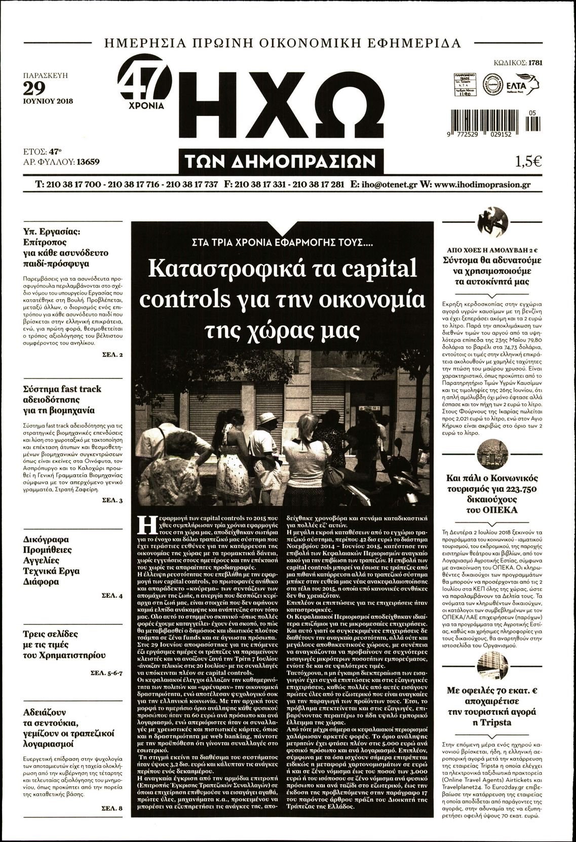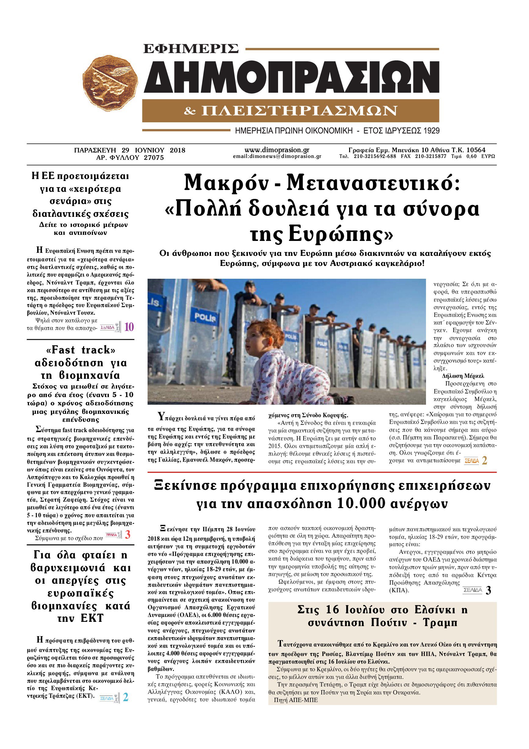 Οι οικονομικές εφημερίδες 29/6/2018 Enikos Newsroom 06:37, Παρασκευή 29 Ιουνίου 2018 Media Διαβάστε τα πρωτοσέλιδα των οικονομικών εφημερίδων. ΟΙΚΟΝΟΜΙΚΕΣ ΕΦΗΜΕΡΙΔΕΣ ΠΡΩΤΟΣΕΛΙΔΑ Μοιράσου το: σχολίασε κι εσύ (0 σχόλια) Ακολουθήστε το enikos.gr στο Google News και μάθετε πρώτοι όλες τις ειδήσεις Δείτε όλες τις τελευταίες ειδήσεις από την Ελλάδα και τον Κόσμο στο enikos.gr Ειδήσεις Ροή Ειδήσεων 2 ώρες πριν Ευρωπαϊκή Ένωση: Συμφωνία για δάνειο 90 δισ. ευρώ στην Ουκρανία τη διετία 2026-2027 7 ώρες πριν ΟΠΕΚΕΠΕ: Προφυλακιστέος ο φερόμενος αρχηγός και ο λογιστής της εγκληματικής οργάνωσης 8 ώρες πριν Αυξάνουν την πίεση προς την κυβέρνηση οι αγρότες: Κλείνουν παρακαμπτήριους και ανοίγουν διόδια – Τι θα γίνει τις γιορτές 8 ώρες πριν Φοινικούντα: Το Σάββατο απολογείται ο 30χρονος γιος γνωστού επιχειρηματία της Πλάκας που παραδόθηκε – Όσα είπε στους αστυνομικούς και ο ρόλος του στο έγκλημα 6 ώρες πριν ΑΕΚ – Κραϊόβα 3-2: Επική ανατροπή και πρόκριση στους «16» του Conference League η Ένωση 7 ώρες πριν Αρχαιολόγοι ανακάλυψαν ρωμαϊκά τεχνουργήματα από μια πόλη που δεν υπήρξε ποτέ – Τα τρία εντυπωσιακά κτίρια και ο αμφορέας με τις… σαρδέλες 8 ώρες πριν Ύπνος: Η απλή βραδινή ρουτίνα για να προστατεύσετε τα μαλλιά σας από το κρύο κατά τη διάρκεια του χειμώνα 9 ώρες πριν Manifesting: Πώς να συναντήσετε τον σύντροφο της ζωής σας, ανάλογα με τον μήνα γέννησής σας 2 ημέρες πριν 20 χρόνια τα Χριστούγεννα ξεκινούν στα Public με μεγάλη ποικιλία σε δώρα! 5 λεπτά πριν ΕΥΔΑΠ: Αλλάζουν τα τιμολόγια του νερού 13 λεπτά πριν Οπτική ψευδαίσθηση: Μόνο αν έχεις αετίσια ματιά θα βρεις τον παπαγάλο σε 12 δευτερόλεπτα 20 λεπτά πριν Αθήνα: Βρέθηκε η 16χρονη που είχε εξαφανιστεί από τις 6 Δεκεμβρίου – Η ανακοίνωση από το «Χαμόγελο του Παιδιού» 28 λεπτά πριν Κρύα χέρια και πόδια: Γιατρός εξηγεί ποια είναι η αίτια και πότε πρέπει να ανησυχήσετε 35 λεπτά πριν Σαν σήμερα 19 Δεκεμβρίου: Τα σημαντικότερα γεγονότα της ημέρας ENIKOS NETWORK Σε περίοδο αυξημένης δραστηριότητας η γρίπη στην Ελλάδα-Μέτρα προστασίας από τον ΕΟΔΥ Σκέφτεστε συνέχεια συζητήσεις που έχετε κάνει; Τι σημαίνει αυτό, σύμφωνα με ειδικό Στεγαστικό: Τι λέει η ΠΟΜΙΔΑ για τα νέα μέτρα που ανακοίνωσε ο Κυριάκος Μητσοτάκης Λαγκάρντ: Αισιόδοξη για την ανάπτυξη της Ευρωζώνης, αβέβαιη για τον πληθωρισμό Χαρτογραφώντας το «σημείο χωρίς επιστροφή»: Για πρώτη φορά αποκαλύπτεται με λεπτομέρεια το ακανθώδες όριο της ατμόσφαιρας τ... Η Google καταργεί τη λειτουργία «dark web report» – Πώς θα μπορούν οι χρήστες να διαγράφουν τα δεδομένα τους περισσότερα 05:48 , Παρασκευή 19 Δεκεμβρίου 2025 Οι οικονομικές εφημερίδες 19/12/2025 Διαβάστε τα πρωτοσέλιδα από τις οικονομικές εφημερίδες, σήμερα 19/12/2025. 05:43 , Παρασκευή 19 Δεκεμβρίου 2025 Οι αθλητικές εφημερίδες 19/12/2025 Διαβάστε τα πρωτοσέλιδα από τις αθλητικές εφημερίδες, σήμερα 19/12/2025. 05:38 , Παρασκευή 19 Δεκεμβρίου 2025 Οι πολιτικές εφημερίδες 19/12/2025 Διαβάστε τα πρωτοσέλιδα από τις πολιτικές εφημερίδες, σήμερα 19/12/2025. 02:50 , Παρασκευή 19 Δεκεμβρίου 2025 GNTM: «Κλείδωσαν» οι τέσσερις φιναλίστ – Μεγάλη ανατροπή στις τελευταίες αποχωρήσεις Για προτελευταία φορά εμφανίστηκαν στο πλατό του GNTM οι φιναλίστ του φετινού κύκλου, το βράδυ... ΤΕΛΕΥΤΑΙΕΣ ΕΙΔΗΣΕΙΣ 5 λεπτά πριν ΕΥΔΑΠ: Αλλάζουν τα τιμολόγια του νερού 13 λεπτά πριν Οπτική ψευδαίσθηση: Μόνο αν έχεις αετίσια ματιά θα... 20 λεπτά πριν Αθήνα: Βρέθηκε η 16χρονη που είχε εξαφανιστεί από τις 6... 28 λεπτά πριν Κρύα χέρια και πόδια: Γιατρός εξηγεί ποια είναι 