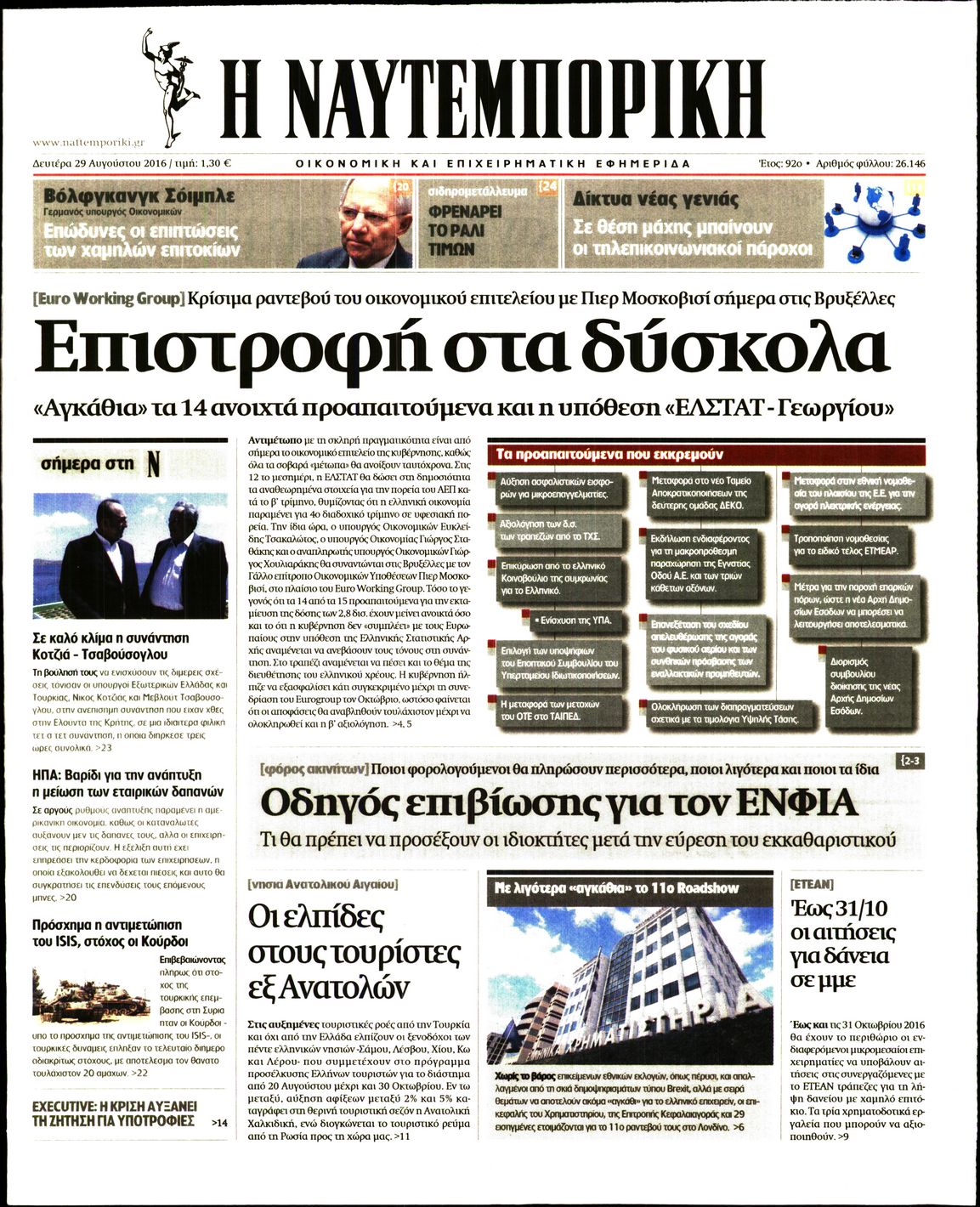 Oι οικονομικές εφημερίδες 29/8/2016 Enikos Newsroom 04:44, Δευτέρα 29 Αυγούστου 2016 Media Διαβάστε τα σημερινά πρωτοσέλιδα των οικονομικών εφημερίδων: ΟΙΚΟΝΟΜΙΚΕΣ ΕΦΗΜΕΡΙΔΕΣ ΠΡΩΤΟΣΕΛΙΔΑ Μοιράσου το: σχολίασε κι εσύ (0 σχόλια) Ακολουθήστε το enikos.gr στο Google News και μάθετε πρώτοι όλες τις ειδήσεις Δείτε όλες τις τελευταίες ειδήσεις από την Ελλάδα και τον Κόσμο στο enikos.gr Ειδήσεις Ροή Ειδήσεων 1 ώρα πριν Αυξάνουν την πίεση προς την κυβέρνηση οι αγρότες: Κλείνουν παρακαμπτήριους και ανοίγουν διόδια – Τι θα γίνει τις γιορτές 8 λεπτά πριν ΟΠΕΚΕΠΕ: Προφυλακιστέος ο φερόμενος αρχηγός και ο λογιστής της εγκληματικής οργάνωσης 1 ώρα πριν Φοινικούντα: Το Σάββατο απολογείται ο 30χρονος γιος γνωστού επιχειρηματία της Πλάκας που παραδόθηκε – Όσα είπε στους αστυνομικούς και ο ρόλος του στο έγκλημα 48 λεπτά πριν Μπορεί ο Μαδούρο να αντέξει τον αποκλεισμό του Τραμπ; Τι θα χρειαστεί η Ουάσινγκτον για να τον ανατρέψει 2 ώρες πριν Πρίγκιπας Ουίλιαμ – Κέιτ: Η νέα οικογενειακή φωτογραφία για τις Χριστουγεννιάτικες κάρτες του 2025 2 ώρες πριν Ύπνος: Η απλή βραδινή ρουτίνα για να προστατεύσετε τα μαλλιά σας από το κρύο κατά τη διάρκεια του χειμώνα 3 ώρες πριν Manifesting: Πώς να συναντήσετε τον σύντροφο της ζωής σας, ανάλογα με τον μήνα γέννησής σας 2 ημέρες πριν 20 χρόνια τα Χριστούγεννα ξεκινούν στα Public με μεγάλη ποικιλία σε δώρα! 52 λεπτά πριν Αρχαιολόγοι ανακάλυψαν ρωμαϊκά τεχνουργήματα από μια πόλη που δεν υπήρξε ποτέ – Τα τρία εντυπωσιακά κτίρια και ο αμφορέας με τις… σαρδέλες 8 λεπτά πριν ΟΠΕΚΕΠΕ: Προφυλακιστέος ο φερόμενος αρχηγός και ο λογιστής της εγκληματικής οργάνωσης 18 λεπτά πριν Αθηνά Μαξίμου: Η τρυφερή ανάρτηση για τα γενέθλια του Αιμίλιου Χειλάκη – «Είναι η εκλεκτική συγγένειά μου, η επιλογή και η ευθύνη μου» 33 λεπτά πριν Παναθηναϊκός – Χάποελ Τελ Αβίβ 93-82: Με… φόρα από την Κωνσταντινούπολη 48 λεπτά πριν Μπορεί ο Μαδούρο να αντέξει τον αποκλεισμό του Τραμπ; Τι θα χρειαστεί η Ουάσινγκτον για να τον ανατρέψει 52 λεπτά πριν Αρχαιολόγοι ανακάλυψαν ρωμαϊκά τεχνουργήματα από μια πόλη που δεν υπήρξε ποτέ – Τα τρία εντυπωσιακά κτίρια και ο αμφορέας με τις… σαρδέλες ENIKOS NETWORK Σε περίοδο αυξημένης δραστηριότητας η γρίπη στην Ελλάδα-Μέτρα προστασίας από τον ΕΟΔΥ Σκέφτεστε συνέχεια συζητήσεις που έχετε κάνει; Τι σημαίνει αυτό, σύμφωνα με ειδικό Στεγαστικό: Τι λέει η ΠΟΜΙΔΑ για τα νέα μέτρα που ανακοίνωσε ο Κυριάκος Μητσοτάκης Λαγκάρντ: Αισιόδοξη για την ανάπτυξη της Ευρωζώνης, αβέβαιη για τον πληθωρισμό Χαρτογραφώντας το «σημείο χωρίς επιστροφή»: Για πρώτη φορά αποκαλύπτεται με λεπτομέρεια το ακανθώδες όριο της ατμόσφαιρας τ... Η Google καταργεί τη λειτουργία «dark web report» – Πώς θα μπορούν οι χρήστες να διαγράφουν τα δεδομένα τους περισσότερα 17:45 , Πέμπτη 18 Δεκεμβρίου 2025 ROUK ZOUK: Εορταστικό επεισόδιο με καλεσμένους τους πρωταγωνιστές του «Γιατί ρε πατέρα» Το Σάββατο 20 Δεκεμβρίου στις 21:00, η Ζέτα Μακρυπούλια υποδέχεται εκλεκτούς ηθοποιούς που όλο... 17:20 , Πέμπτη 18 Δεκεμβρίου 2025 Άγιος έρωτας: Η Χριστίνα εξομολογείται στον πατέρα Νικόλαο, απόψε στις 21:00 στον Alpha Η Νότα αποφασίζει να εκδικηθεί τον Πέτρο και τον Στέφανο, για χάρη του Λούη, όμως τα πράγματα ... 16:50 , Πέμπτη 18 Δεκεμβρίου 2025 Να μ’ αγαπάς: Ζωή και Φωτεινή συμφιλιώνονται ως μάνα με κόρη, απόψε στις 20:00 Η ταυτότητα του Άγγελου αποκαλύπτεται στο νέο επεισόδιο της σειράς “Να μ’ αγαπάς... 15:52 , Πέμπτη 18 Δεκεμβρίου 2025 Το Σπίτι Δίπλα Στο Ποτάμι: Το καθ