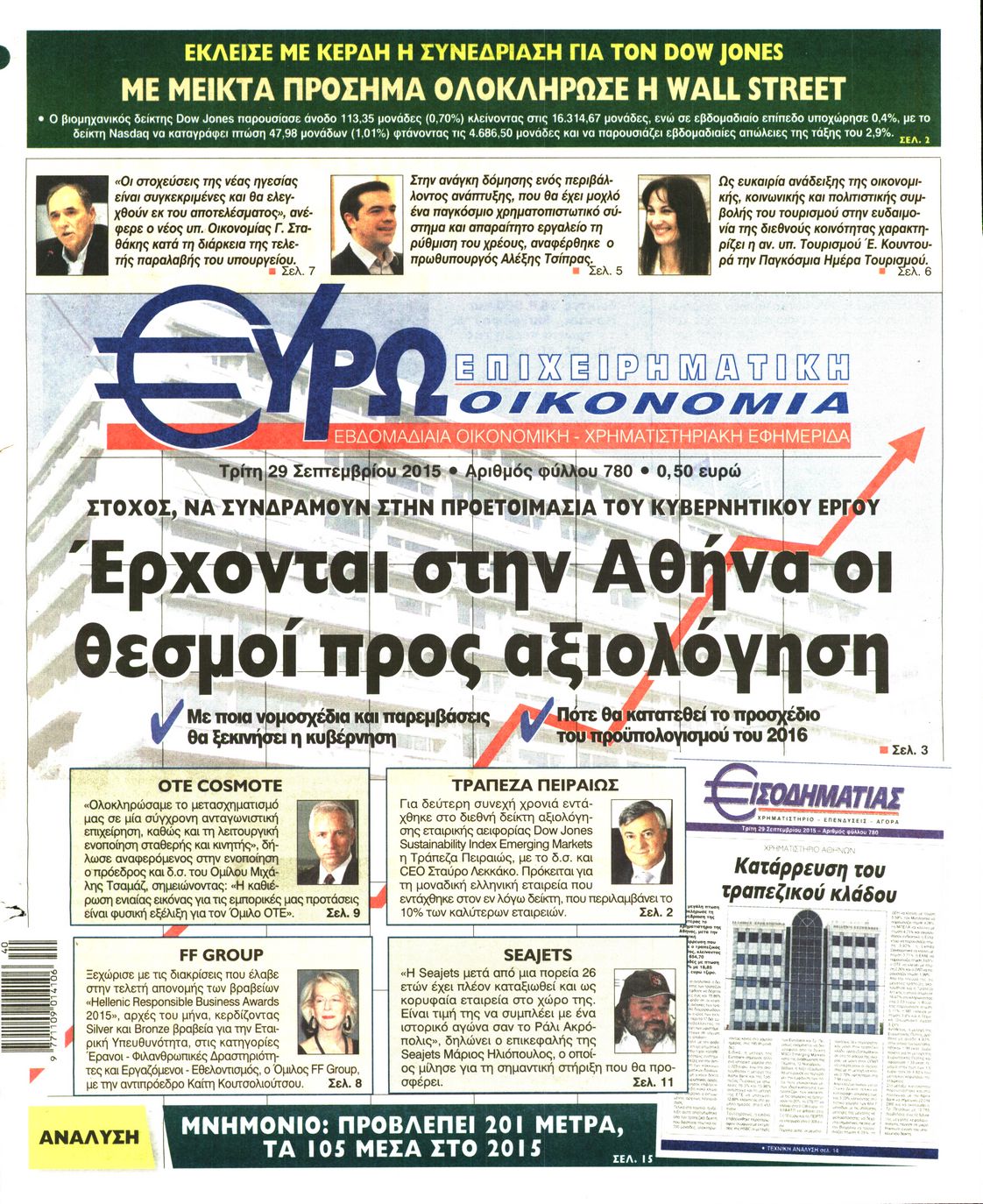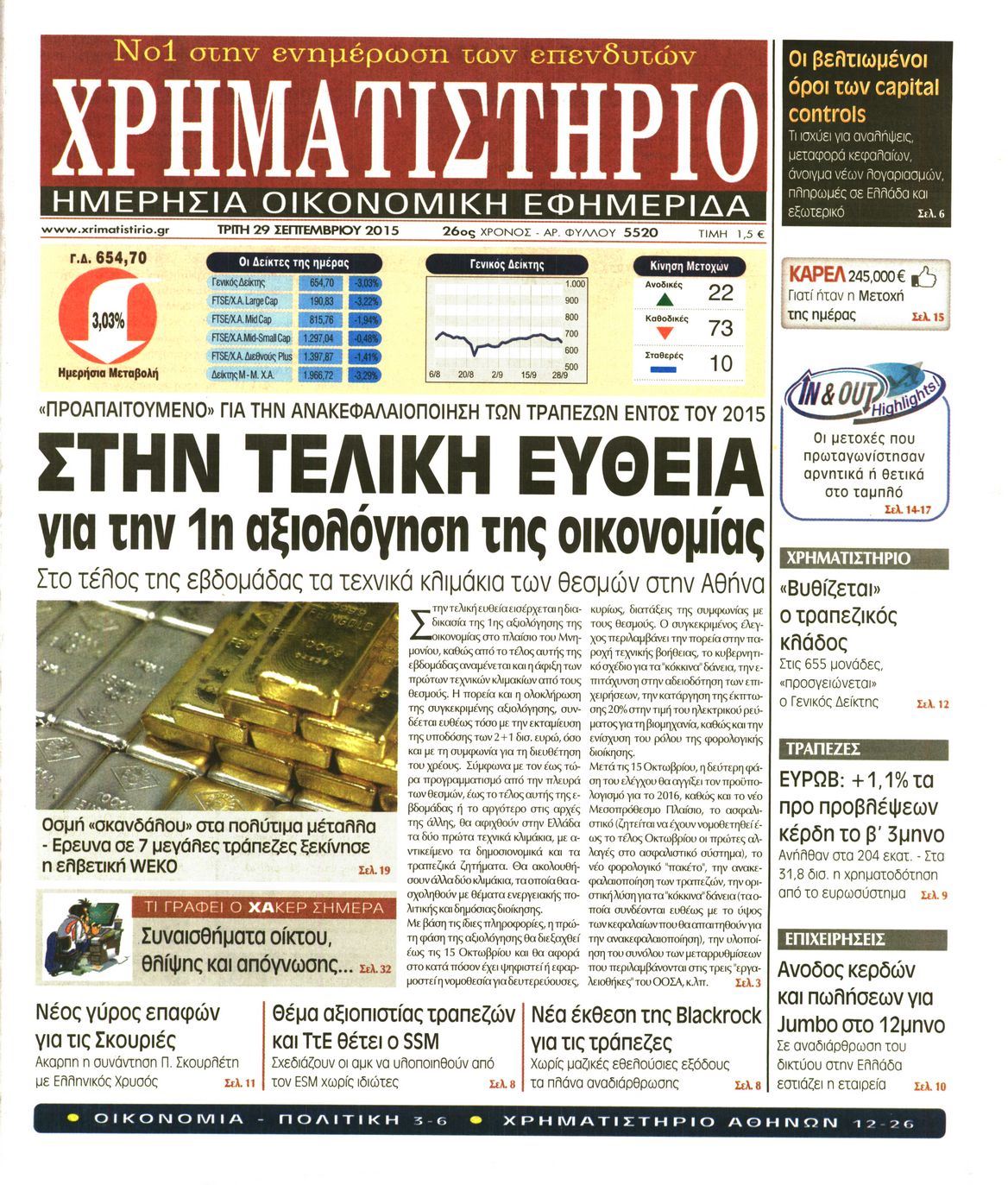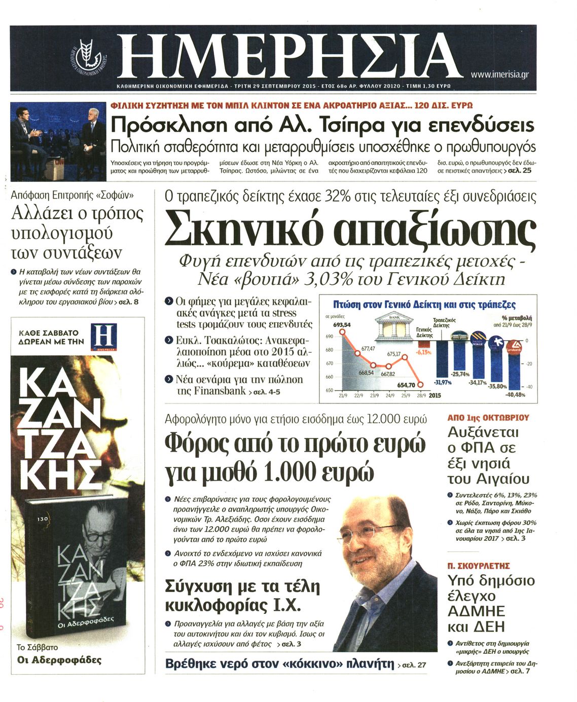 Οι οικονομικές εφημερίδες 29/9/2015 Enikos Newsroom 06:43, Τρίτη 29 Σεπτεμβρίου 2015 Media Διαβάστε τα σημερινά πρωτοσέλιδα των οικονομικών εφημερίδων: ΟΙΚΟΝΟΜΙΚΕΣ ΕΦΗΜΕΡΙΔΕΣ ΠΡΩΤΟΣΕΛΙΔΑ Μοιράσου το: σχολίασε κι εσύ (0 σχόλια) Ακολουθήστε το enikos.gr στο Google News και μάθετε πρώτοι όλες τις ειδήσεις Δείτε όλες τις τελευταίες ειδήσεις από την Ελλάδα και τον Κόσμο στο enikos.gr Ειδήσεις Ροή Ειδήσεων 40 λεπτά πριν Ευρωπαϊκή Ένωση: Χωρίς συμφωνία, για την μακροπρόθεσμη χρηματοδότηση της Ουκρανίας, ολοκληρώθηκε η Σύνοδος Κορυφής στις Βρυξέλλες 4 ώρες πριν ΟΠΕΚΕΠΕ: Προφυλακιστέος ο φερόμενος αρχηγός και ο λογιστής της εγκληματικής οργάνωσης 5 ώρες πριν Αυξάνουν την πίεση προς την κυβέρνηση οι αγρότες: Κλείνουν παρακαμπτήριους και ανοίγουν διόδια – Τι θα γίνει τις γιορτές 5 ώρες πριν Φοινικούντα: Το Σάββατο απολογείται ο 30χρονος γιος γνωστού επιχειρηματία της Πλάκας που παραδόθηκε – Όσα είπε στους αστυνομικούς και ο ρόλος του στο έγκλημα 4 ώρες πριν ΑΕΚ – Κραϊόβα 3-2: Επική ανατροπή και πρόκριση στους «16» του Conference League η Ένωση 5 ώρες πριν Αρχαιολόγοι ανακάλυψαν ρωμαϊκά τεχνουργήματα από μια πόλη που δεν υπήρξε ποτέ – Τα τρία εντυπωσιακά κτίρια και ο αμφορέας με τις… σαρδέλες 6 ώρες πριν Ύπνος: Η απλή βραδινή ρουτίνα για να προστατεύσετε τα μαλλιά σας από το κρύο κατά τη διάρκεια του χειμώνα 7 ώρες πριν Manifesting: Πώς να συναντήσετε τον σύντροφο της ζωής σας, ανάλογα με τον μήνα γέννησής σας 2 ημέρες πριν 20 χρόνια τα Χριστούγεννα ξεκινούν στα Public με μεγάλη ποικιλία σε δώρα! 36 δευτερόλεπτα πριν Σίσσυ Τουμάση: «Είμαι ασθενοφοβική πάρα πολύ και με πιάνει μια παράνοια μ’ αυτό» 25 λεπτά πριν Ντόναλντ Τραμπ: Δεν χρειάζομαι την έγκριση του Κογκρέσου για να διατάξω στρατιωτικά πλήγματα στη Βενεζουέλα 40 λεπτά πριν Ευρωπαϊκή Ένωση: Χωρίς συμφωνία, για την μακροπρόθεσμη χρηματοδότηση της Ουκρανίας, ολοκληρώθηκε η Σύνοδος Κορυφής στις Βρυξέλλες 56 λεπτά πριν GNTM: «Κλείδωσαν» οι τέσσερις φιναλίστ – Μεγάλη ανατροπή στις τελευταίες αποχωρήσεις 1 ώρα πριν Γιώργος Μαζωνάκης: Αποθεώθηκε στην πρεμιέρα του στην «Ακτή Πειραιώς» λίγες ώρες μετά τις καταγγελίες – «Είμαι αληθινός», είπε με νόημα ENIKOS NETWORK Σε περίοδο αυξημένης δραστηριότητας η γρίπη στην Ελλάδα-Μέτρα προστασίας από τον ΕΟΔΥ Σκέφτεστε συνέχεια συζητήσεις που έχετε κάνει; Τι σημαίνει αυτό, σύμφωνα με ειδικό Στεγαστικό: Τι λέει η ΠΟΜΙΔΑ για τα νέα μέτρα που ανακοίνωσε ο Κυριάκος Μητσοτάκης Λαγκάρντ: Αισιόδοξη για την ανάπτυξη της Ευρωζώνης, αβέβαιη για τον πληθωρισμό Χαρτογραφώντας το «σημείο χωρίς επιστροφή»: Για πρώτη φορά αποκαλύπτεται με λεπτομέρεια το ακανθώδες όριο της ατμόσφαιρας τ... Η Google καταργεί τη λειτουργία «dark web report» – Πώς θα μπορούν οι χρήστες να διαγράφουν τα δεδομένα τους περισσότερα 02:50 , Παρασκευή 19 Δεκεμβρίου 2025 GNTM: «Κλείδωσαν» οι τέσσερις φιναλίστ – Μεγάλη ανατροπή στις τελευταίες αποχωρήσεις Για προτελευταία φορά εμφανίστηκαν στο πλατό του GNTM οι φιναλίστ του φετινού κύκλου, το βράδυ... 17:45 , Πέμπτη 18 Δεκεμβρίου 2025 ROUK ZOUK: Εορταστικό επεισόδιο με καλεσμένους τους πρωταγωνιστές του «Γιατί ρε πατέρα» Το Σάββατο 20 Δεκεμβρίου στις 21:00, η Ζέτα Μακρυπούλια υποδέχεται εκλεκτούς ηθοποιούς που όλο... 17:20 , Πέμπτη 18 Δεκεμβρίου 2025 Άγιος έρωτας: Η Χριστίνα εξομολογείται στον πατέρα Νικόλαο, απόψε στις 21:00 στον Alpha Η Νότα αποφασίζει να εκδικηθεί τον Πέτρο και τον Στέφανο, για χάρη του Λούη, όμως τα πράγματα ... 16:50 , Πέμπτη 18 Δεκεμβ
