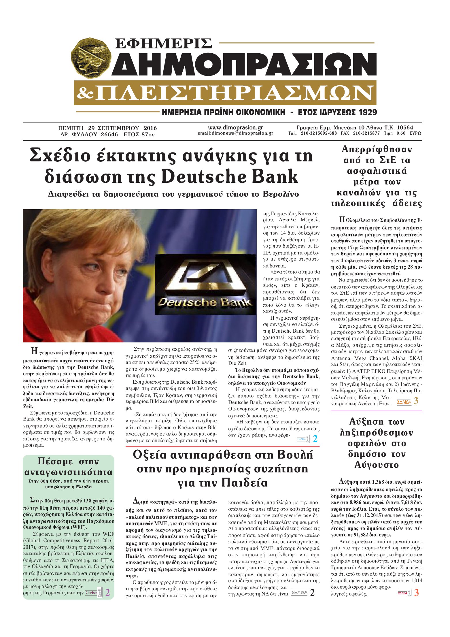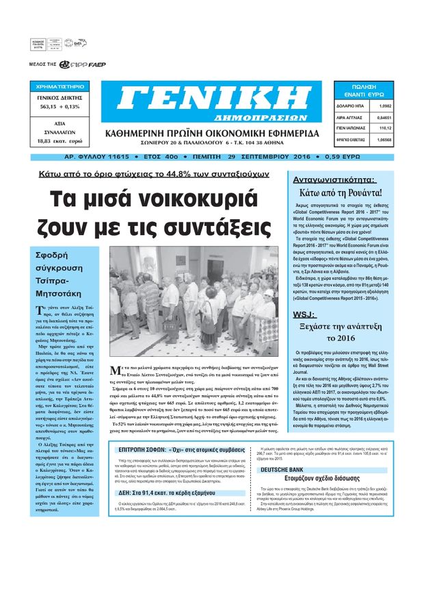 Οι οικονομικές εφημερίδες 29/9/2016 Enikos Newsroom 05:06, Πέμπτη 29 Σεπτεμβρίου 2016 Media Διαβάστε τα σημερινά πρωτοσέλιδα των οικονομικών εφημερίδων: ΟΙΚΟΝΟΜΙΚΕΣ ΕΦΗΜΕΡΙΔΕΣ ΠΡΩΤΟΣΕΛΙΔΑ Μοιράσου το: σχολίασε κι εσύ (0 σχόλια) Ακολουθήστε το enikos.gr στο Google News και μάθετε πρώτοι όλες τις ειδήσεις Δείτε όλες τις τελευταίες ειδήσεις από την Ελλάδα και τον Κόσμο στο enikos.gr Ειδήσεις Ροή Ειδήσεων 2 ώρες πριν LIVE από Λοριάν: Η ύψωση της ελληνικής σημαίας στην πρώτη φρεγάτα FDI Belharra ΚΙΜΩΝ 2 ώρες πριν Στην Ευελπίδων ο 22χρονος που καταγγέλλει τον Γιώργο Μαζωνάκη για ασελγείς πράξεις – «Έχουμε εμπιστοσύνη στη Δικαιοσύνη, καμία εκβίαση» λέει ο δικηγόρος του 1 ώρα πριν Γαλλία: Η οργή των αγροτών – Αναμένεται η ομιλία του Μακρόν, τα τρακτέρ συγκεντρώνονται μαζικά στις Βρυξέλλες 5 ώρες πριν Συναγερμός και στην Ελλάδα για τη «σούπερ γρίπη»: Πόσο σοβαρή είναι και ποιοι θεωρούνται πιο ευάλωτοι – 3 ειδικοί μιλούν στο enikos.gr 2 ώρες πριν Χριστουγεννιάτικο τραπέζι: Πόσο θα κοστίσει φέτος – Σε ποια είδη τραβούν… την ανηφόρα οι τιμές 5 ώρες πριν Τα 4 ζώδια που λαμβάνουν ένα ισχυρό σημάδι από το σύμπαν – «Αποκαλύπτεται κάτι που μπορεί να αλλάξει τη ζωή μας» 6 ώρες πριν Η σύζυγός του παραπονιέται για τα χρήματα που της δίνει για ψώνια κάθε μήνα – «Λέει ότι νιώθει φτωχή και της είπα να βρει δουλειά» 4 ώρες πριν Αν κάνετε συνεχώς αυτά τα 8 πράγματα με τα κατοικίδιά σας, σας λείπει η ανθρώπινη επαφή 1 ημέρα πριν 20 χρόνια τα Χριστούγεννα ξεκινούν στα Public με μεγάλη ποικιλία σε δώρα! 3 λεπτά πριν Αλβανία: Συγκρούσεις μέσα στο κοινοβούλιο – Bουλευτές άναψαν φωτοβολίδες και πέταξαν νερό στον πρόεδρο της Βουλής – Δείτε βίντεο 7 λεπτά πριν Δίκη Βαλυράκη: Καταθέτει ο βασικός αυτόπτης μάρτυρας – «Δέχτηκα πιέσεις να μη μιλήσω, πήγα να ψωνίσω και αυτοκίνητο με χτύπησε στο πόδι» 13 λεπτά πριν Αυτό που κρύβεται κάτω από τη Γροιλανδία θα μπορούσε να ανατρέψει όσα γνωρίζουμε για την άνοδο της στάθμης των θαλασσών 17 λεπτά πριν Parthenis x Papazó & Akylas powered by ΣΚΡΑΤΣ: Το πιο καλαίσθητο act του MadWalk 2025 23 λεπτά πριν Πηγές ΣΥΡΙΖΑ: Η ΝΔ απαξιώνει την Εξεταστική και επιμένει στη συγκάλυψη – Ο επικαιροποιημένος κατάλογος προτεινόμενων μαρτύρων ENIKOS NETWORK 100 χρόνια ΠΙΣ: Ένας αιώνας προσφοράς στην Ιατρική και την κοινωνία Ένα ποτήρι την ημέρα από αυτόν τον χυμό μειώνει τη χοληστερίνη, τη φλεγμονή και την πίεση ΑΑΔΕ: Έρχεται το… ΔΕΟΣ – Όλες οι λεπτομέρειες για τον ενιαίο ελεγκτικό μηχανισμό για το οικονομικό έγκλημα e-ΕΦΚΑ: Μέχρι πότε πρέπει να γίνει επιλογή ασφαλιστικής κατηγορίας για το 2026 – Τι πρέπει να γνωρίζετε Χαρτογραφώντας το «σημείο χωρίς επιστροφή»: Για πρώτη φορά αποκαλύπτεται με λεπτομέρεια το ακανθώδες όριο της ατμόσφαιρας τ... Η Google καταργεί τη λειτουργία «dark web report» – Πώς θα μπορούν οι χρήστες να διαγράφουν τα δεδομένα τους περισσότερα 08:00 , Πέμπτη 18 Δεκεμβρίου 2025 Την Κυριακή με τη Realnews: Δωροεπιταγή 10€ Δωροεπιταγή αξίας 10€ για αγορές άνω των 60€ από τα πολυκαταστήματα FactoryOutlet H προσφορά ι... 07:50 , Πέμπτη 18 Δεκεμβρίου 2025 «Το σόι σου»: Backstage στα γυρίσματα για το εορταστικό επεισόδιο «Το σόι σου» φορά τα γιορτινά του για τα Χριστούγεννα και η Όλγα Λαφαζάνη, με την κάμερα του «... 07:36 , Πέμπτη 18 Δεκεμβρίου 2025 Οι αθλητικές μεταδόσεις 18/12/2025 – Πού θα δείτε τον αγώνα της ΑΕΚ με την Κραϊόβα για το Conference League Τα ματς ΑΕΚ – Ουνιβερσιτάτεα Κραϊόβα για το Conference League και Παναθηναϊκός – Χάποελ Τελ Αβ... 05:48 , Πέμπτη 18 Δεκεμβρίου 2025 Οι οικονομικέ