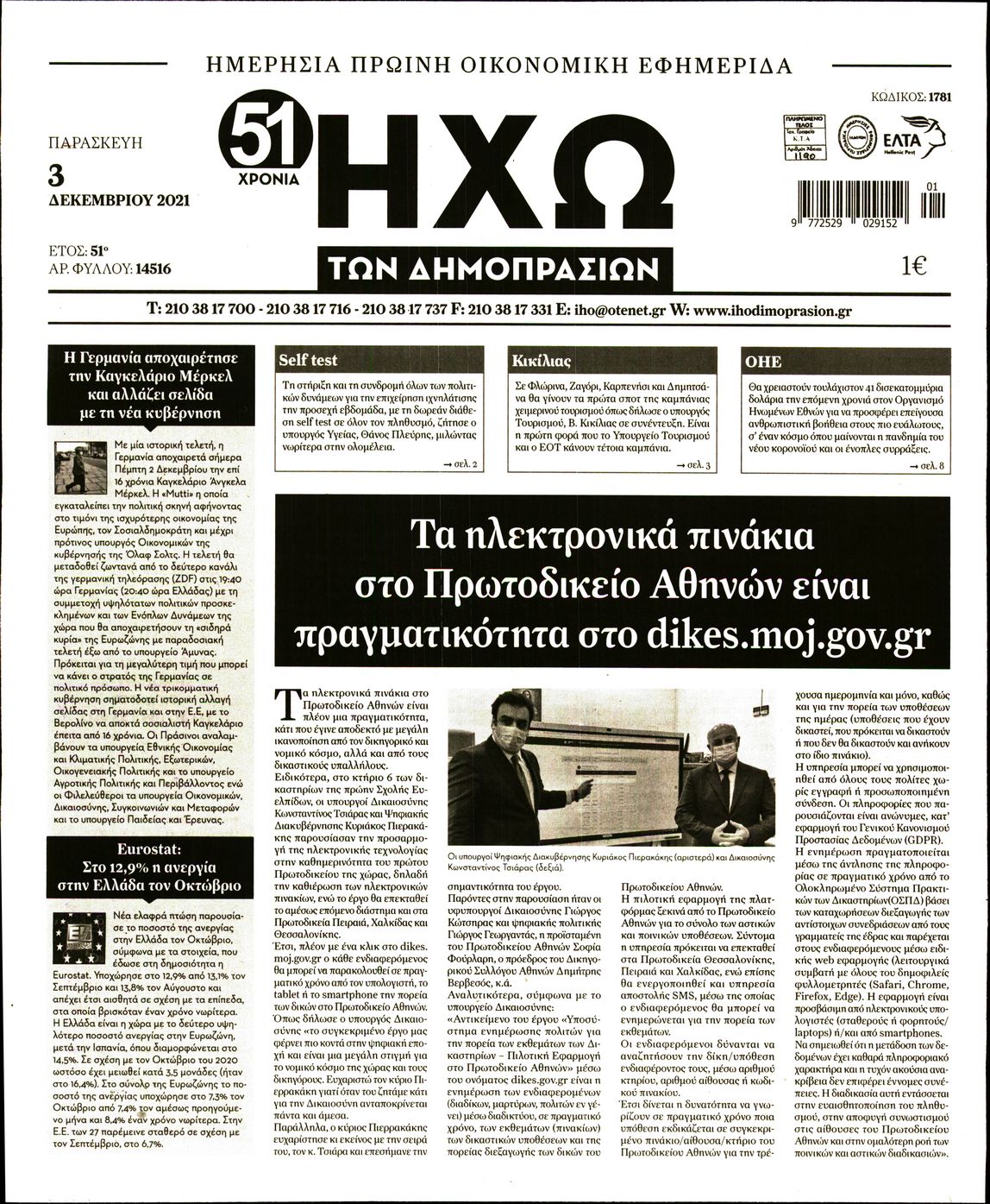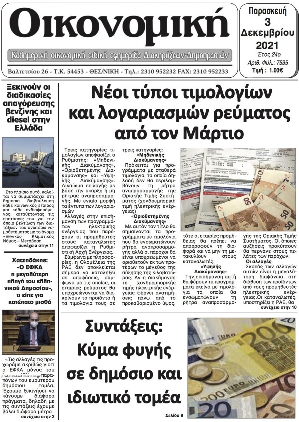 Οι οικονομικές εφημερίδες 3/12/2021 Διονύσης Νίκκας 06:50, Παρασκευή 03 Δεκεμβρίου 2021 Media Διαβάστε τα πρωτοσέλιδα από τις οικονομικές εφημερίδες… ΟΙΚΟΝΟΜΙΚΕΣ ΕΦΗΜΕΡΙΔΕΣ Μοιράσου το: σχολίασε κι εσύ (0 σχόλια) Ακολουθήστε το enikos.gr στο Google News και μάθετε πρώτοι όλες τις ειδήσεις Δείτε όλες τις τελευταίες ειδήσεις από την Ελλάδα και τον Κόσμο στο enikos.gr Ειδήσεις Ροή Ειδήσεων 14 λεπτά πριν Κλιμακώνουν από σήμερα τις κινητοποιήσεις οι αγρότες: Νέα μπλόκα, κλείσιμο παρακαμπτηρίων και άνοιγμα διοδίων – Το νέο μήνυμα Μητσοτάκη 40 λεπτά πριν Συντάξεις: Οι κερδισμένοι και οι χαμένοι από τις αυξήσεις – Αναλυτικός οδηγός και παραδείγματα 4 ώρες πριν Ευρωπαϊκή Ένωση: Συμφωνία για δάνειο 90 δισ. ευρώ στην Ουκρανία τη διετία 2026-2027 – Μητσοτάκης: Η λύση που προκρίθηκε είναι η ενδεδειγμένη 60 λεπτά πριν Θανατηφόρο τροχαίο στη Νέα Φιλαδέλφεια: Νεκρός 27χρονος οδηγός μηχανής ύστερα από σύγκρουση με τρόλεϊ 8 ώρες πριν ΟΠΕΚΕΠΕ: Προφυλακιστέος ο φερόμενος αρχηγός και ο λογιστής της εγκληματικής οργάνωσης 2 ώρες πριν Οπτική ψευδαίσθηση: Μόνο αν έχεις αετίσια ματιά θα βρεις τον παπαγάλο σε 12 δευτερόλεπτα 2 ώρες πριν Κρύα χέρια και πόδια: Γιατρός εξηγεί ποια είναι η αίτια και πότε πρέπει να ανησυχήσετε 3 ώρες πριν Τα ζώδια σήμερα, Παρασκευή 19 Δεκεμβρίου: Τοξότες, με τη Νέα Σελήνη έρχεται η προσωπική ανανέωσή σας 2 ημέρες πριν 20 χρόνια τα Χριστούγεννα ξεκινούν στα Public με μεγάλη ποικιλία σε δώρα! 29 δευτερόλεπτα πριν Την Κυριακή με τη Realnews: Δωροεπιταγή 10€ 6 λεπτά πριν Πανεπιστήμιο Μπράουν: Νεκρός ο ύποπτος για την επίθεση 12 λεπτά πριν Τέμπη: Συνεχίζεται σήμερα η δίκη για τη διαχείριση του βιντεοληπτικού υλικού 14 λεπτά πριν Κλιμακώνουν από σήμερα τις κινητοποιήσεις οι αγρότες: Νέα μπλόκα, κλείσιμο παρακαμπτηρίων και άνοιγμα διοδίων – Το νέο μήνυμα Μητσοτάκη 21 λεπτά πριν e-ΕΦΚΑ και ΔΥΠΑ: Τελευταία ημέρα πληρωμών σήμερα ENIKOS NETWORK Άνοια: Ειδικοί προειδοποιούν για 5 κοινές συνήθειες που μπορεί να αυξήσουν τον κίνδυνο 6 Χριστουγεννιάτικα δώρα για όσους τα έχουν όλα – Θα τους εκπλήξουν Συντάξεις: Οι κερδισμένοι και οι χαμένοι από τις αυξήσεις – Αναλυτικός οδηγός Στεγαστικό: Τι λέει η ΠΟΜΙΔΑ για τα νέα μέτρα που ανακοίνωσε ο Κυριάκος Μητσοτάκης Χαρτογραφώντας το «σημείο χωρίς επιστροφή»: Για πρώτη φορά αποκαλύπτεται με λεπτομέρεια το ακανθώδες όριο της ατμόσφαιρας τ... Η Google καταργεί τη λειτουργία «dark web report» – Πώς θα μπορούν οι χρήστες να διαγράφουν τα δεδομένα τους περισσότερα 05:48 , Παρασκευή 19 Δεκεμβρίου 2025 Οι οικονομικές εφημερίδες 19/12/2025 Διαβάστε τα πρωτοσέλιδα από τις οικονομικές εφημερίδες, σήμερα 19/12/2025. 05:43 , Παρασκευή 19 Δεκεμβρίου 2025 Οι αθλητικές εφημερίδες 19/12/2025 Διαβάστε τα πρωτοσέλιδα από τις αθλητικές εφημερίδες, σήμερα 19/12/2025. 05:38 , Παρασκευή 19 Δεκεμβρίου 2025 Οι πολιτικές εφημερίδες 19/12/2025 Διαβάστε τα πρωτοσέλιδα από τις πολιτικές εφημερίδες, σήμερα 19/12/2025. 02:50 , Παρασκευή 19 Δεκεμβρίου 2025 GNTM: «Κλείδωσαν» οι τέσσερις φιναλίστ – Μεγάλη ανατροπή στις τελευταίες αποχωρήσεις Για προτελευταία φορά εμφανίστηκαν στο πλατό του GNTM οι φιναλίστ του φετινού κύκλου, το βράδυ... ΤΕΛΕΥΤΑΙΕΣ ΕΙΔΗΣΕΙΣ 6 λεπτά πριν Πανεπιστήμιο Μπράουν: Νεκρός ο ύποπτος για την επίθεση 12 λεπτά πριν Τέμπη: Συνεχίζεται σήμερα η δίκη για τη διαχείριση του... 14 λεπτά πριν Κλιμακώνουν από σήμερα τις κινητοποιήσεις οι αγρότες:... 21 λεπτά πριν e-ΕΦΚΑ και ΔΥΠΑ: Τελευταία ημέρα πληρωμών σήμερα 28 λεπτά πριν Καιρός: Ηλιοφάν
