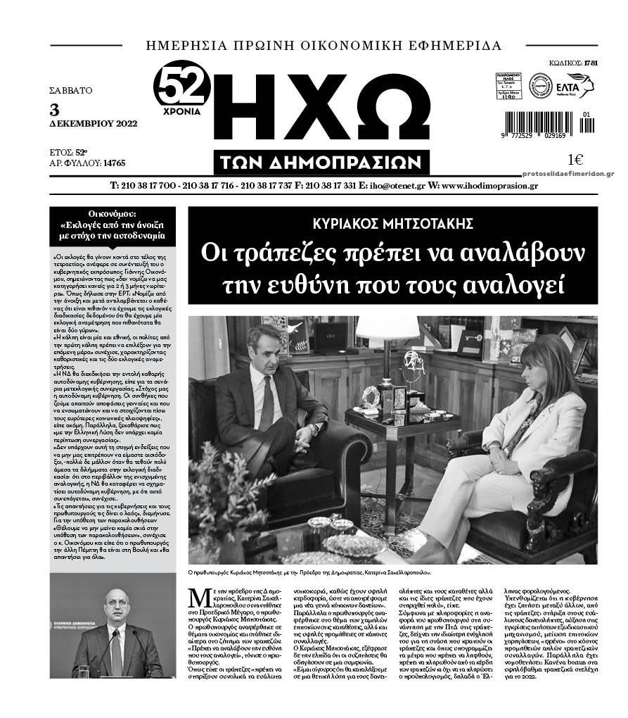 Διαβάστε τα πρωτοσέλιδα από τις οικονομικές εφημερίδες, σήμερα 3/12/2022.