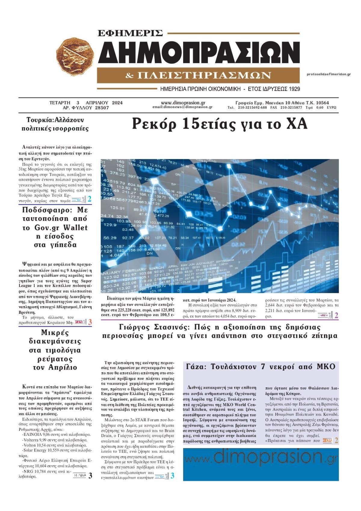Οι οικονομικές εφημερίδες 3/4/2024 xrisikakif 07:25, Τετάρτη 03 Απριλίου 2024 Media Διαβάστε τα πρωτοσέλιδα από τις οικονομικές εφημερίδες, σήμερα 3/4/2024. ΕΦΗΜΕΡΙΔΕΣ ΟΙΚΟΝΟΜΙΚΕΣ ΕΦΗΜΕΡΙΔΕΣ ΠΡΩΤΟΣΕΛΙΔΑ Μοιράσου το: Οι πολιτικές εφημερίδες 3/4/2024 Οπτική ψευδαίσθηση: Μόνο το 1% των ανθρώπων μπορεί να βρει το κερί και την λάμπα σε 12 δευτερόλεπτα Ερντογάν για αποτέλεσμα αυτοδιοικητικών εκλογών: «Όχι μόνο απώλεια ψήφων, αλλά και απώλεια αίματος και ψυχής» σχολίασε κι εσύ (0 σχόλια) Ακολουθήστε το enikos.gr στο Google News και μάθετε πρώτοι όλες τις ειδήσεις Δείτε όλες τις τελευταίες ειδήσεις από την Ελλάδα και τον Κόσμο στο enikos.gr Ειδήσεις Ροή Ειδήσεων 4 ώρες πριν «Βιολάντα»: Αυτά είναι τα κρίσιμα σχέδια των εγκαταστάσεων που κατέθεσε η επιχείρηση στις αρμόδιες υπηρεσίες – Αποκάλυψη enikos.gr 2 ώρες πριν Αρχεία Επστάιν: Σάλος με τις αποκαλύψεις για τους φίλους του καταδικασμένου χρηματιστή – Οι Ρωσίδες, ο Γκέιτς, τα ΣΜΝ, τα ελικόπτερα και ο Μασκ 2 ώρες πριν Τροχαίο δυστύχημα στη Ρουμανία: Θρήνος στις κηδείες των 2 φιλάθλων του ΠΑΟΚ – Το Σάββατο η εξόδιος ακολουθία για τους 3 νέους από την Αλεξάνδρεια Ημαθίας 2 ώρες πριν Βιολάντα: Διευρυμένη εισαγγελική έρευνα για τα αίτια της τραγωδίας στα Τρίκαλα – Οι αποκαλύψεις για το αδήλωτο υπόγειο, οι καταθέσεις-«φωτιά» και το νέο βίντεο 6 ώρες πριν Νίκος Κούρκουλος: Η συνέντευξη στο «Ενώπιος Ενωπίω» και τον Νίκο Χατζηνικολάου το 1994 – Τι είχε πει για τα παιδικά του χρόνια, το θέατρο και την προσωπική του ζωή 3 ώρες πριν Αριθμολογία: Οι 3 πιο ανιδιοτελείς ημερομηνίες γέννησης – «Είναι οι πιο γενναιόδωροι και δοτικοί άνθρωποι» 3 ώρες πριν Ύπνος: Η μέθοδος αναπνοής που «διώχνει τις αρνητικές σκέψεις», σύμφωνα με ειδικούς 2 ώρες πριν Στο φως η πρώτη αραμαϊκή επιγραφή ενός ξεχασμένου ελληνιστικού βασιλείου – Για μοναδική ανακάλυψη που ξαναγράφει την ιστορία μιλούν οι αρχαιολόγοι 9 ώρες πριν Allwyn: Η νέα εποχή του ΟΠΑΠ – Νέο brand, περισσότερη διασκέδαση και σύγχρονες εμπειρίες ψυχαγωγίας για τους πελάτες 13 λεπτά πριν Βιλερμπάν – Παναθηναϊκός 78-79: Επιστροφή στις νίκες με πρωταγωνιστή τον Σλούκα – Όλα τα αποτελέσματα και η βαθμολογία 37 λεπτά πριν Σε δημόσια ηλεκτρονική διαβούλευση το νομοσχέδιο για την επιστολική ψήφο των αποδήμων 47 λεπτά πριν Προς κατάργηση το όριο των 100ml για υγρά στο αεροπλάνο – Πού έχουν αυξηθεί τα όρια και τι ισχύει για το «Ελ. Βενιζέλος» 1 ώρα πριν Κίμπερλι Γκίλφοϊλ: «Η Ελλάδα δεν είναι παθητικός θεατής στο ενεργειακό μέλλον της Ευρώπης, είναι πρωταγωνιστής» 2 ώρες πριν Αρχεία Επστάιν: Σάλος με τις αποκαλύψεις για τους φίλους του καταδικασμένου χρηματιστή – Οι Ρωσίδες, ο Γκέιτς, τα ΣΜΝ, τα ελικόπτερα και ο Μασκ ENIKOS NETWORK Τα 8 πράγματα που κάνουν οι πιο ευτυχισμένοι άνθρωποι για να νιώθουν πάντα νέοι Πώς επηρεάζει η ηλικία την υγεία της εγκυμοσύνης; ΗΠΑ: Πέφτει κατακόρυφα η τιμή του χρυσού και του ασημιού, μετά την επιλογή του Κέβιν Γουόρς για την ηγεσία της Fed Τράπεζα της Ελλάδας: Αύξηση πάνω από 80 δισ. ευρώ στις καταθέσεις νοικοκυριών από το 2019 – Σε υψηλό 15ετίας τον Δεκέμβριο Google Search: Αναβαθμίζει τις δυνατότητες AI με Gemini 3 και Follow-up ερωτήσεις Κουίζ: Πόσο καλός είσαι στην ελληνική μυθολογία; Δοκίμασε τις γνώσεις σου και κάνε το 3 στα 3 περισσότερα 21:42 , Παρασκευή 30 Ιανουαρίου 2026 Το σόι σου: Η Λυδία ψάχνει απεγνωσμένα για δουλειά Ένα ακόμη σπαρταριστό επεισόδιο της πολυαγαπημένης σειράς “Το σόι σου” έρχεται την... 19:40 , Παρασκευή 30 Ιαν