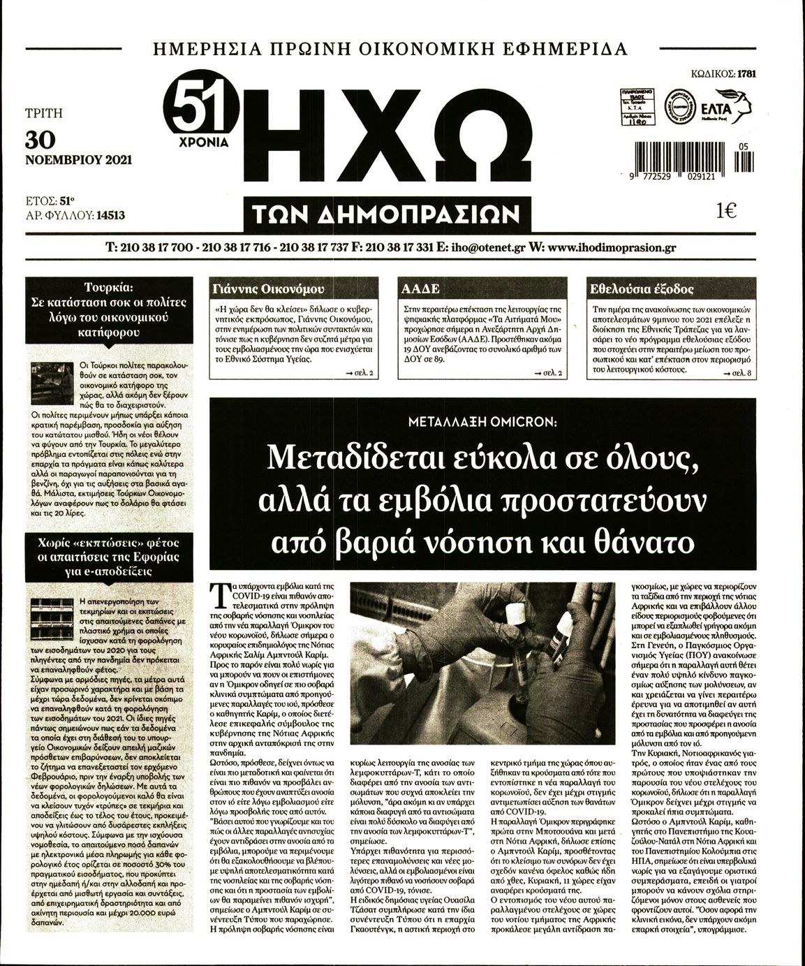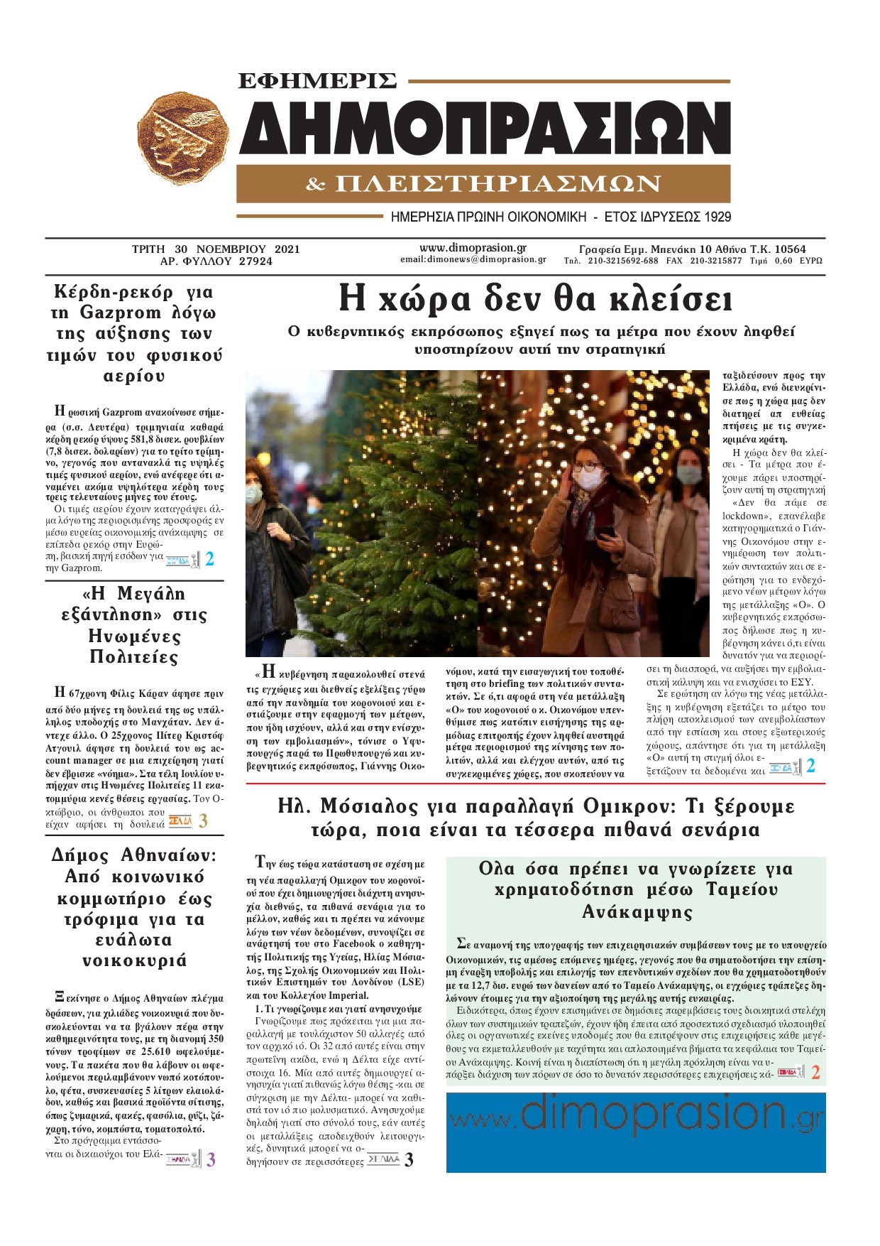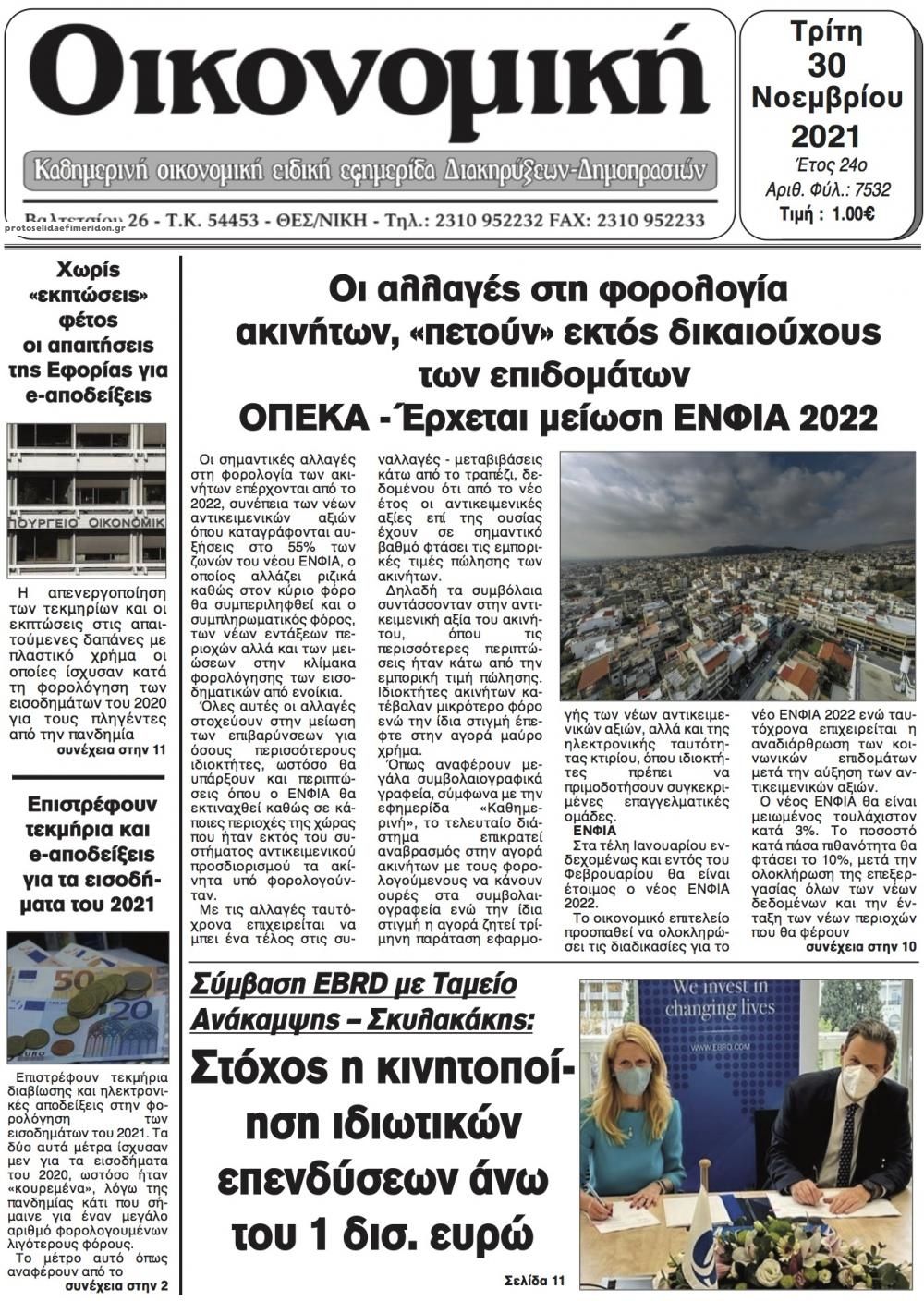 Οι οικονομικές εφημερίδες 30/11/2021 Διονύσης Νίκκας 06:44, Τρίτη 30 Νοεμβρίου 2021 Media Διαβάστε τα πρωτοσέλιδα από τις οικονομικές εφημερίδες… ΟΙΚΟΝΟΜΙΚΕΣ ΕΦΗΜΕΡΙΔΕΣ Μοιράσου το: σχολίασε κι εσύ (0 σχόλια) Ακολουθήστε το enikos.gr στο Google News και μάθετε πρώτοι όλες τις ειδήσεις Δείτε όλες τις τελευταίες ειδήσεις από την Ελλάδα και τον Κόσμο στο enikos.gr Ειδήσεις Ροή Ειδήσεων 9 ώρες πριν Μητσοτάκης: Αναγκαία η μεταρρύθμιση του πρωτογενούς τομέα – Τα 6 νέα μέτρα για το στεγαστικό και οι αναφορές σε «Ιθάκη» και «πολιτικούς του καναπέ» 8 ώρες πριν Δάνεια σε ελβετικό φράγκο: Τα βασικά σημεία της ρύθμισης – ανάσας για 40.000 δανειολήπτες – Αναλυτικός οδηγός με ερωτήσεις και απαντήσεις 8 ώρες πριν Κυψέλη: Εξιτήριο πήρε η 14χρονη μαθήτρια που μαχαιρώθηκε από την 16χρονη σε σχολείο – «Θέλω να βοηθήσω το παιδί, έχει μπλέξει με κακές παρέες» 7 ώρες πριν Τραμπ: Γιατί κατέθεσε τώρα την αγωγή κατά του BBC – Πώς η κίνησή του εξυπηρετεί το νέο δόγμα του για «αντίσταση» στην Ευρώπη, υπέρ των συντηρητικών 8 ώρες πριν ΟΠΕΚΕΠΕ – Παράνομες επιδοτήσεις: Ελεύθεροι με περιοριστικούς όρους και οι 7 κατηγορούμενοι που απολογήθηκαν σήμερα 7 ώρες πριν Ανακαλύφθηκε βυθισμένη πέτρινη κατασκευή ανοιχτά της Κριμαίας – Αποτελεί μέρος αρχαίας ελληνικής αποικίας 8 ώρες πριν Ύπνος: Αυτό μπορεί να είναι το χειρότερο λάθος για το βιολογικό ρολόι σας, σύμφωνα με ειδικό 9 ώρες πριν Αριθμολογία: Οι άνθρωποι που έχουν γεννηθεί αυτές τις 3 ημερομηνίες, προσελκύουν μεγάλη τύχη πριν από το τέλος του 2025 11 ώρες πριν Οι 7 συμπεριφορές που μαρτυρούν ότι ένας άνδρας επενδύει μακροπρόθεσμα σε μια σχέση 4 λεπτά πριν Τρομοκρατική επίθεση στο Σίδνεϊ: Ξεκίνησαν οι κηδείες των θυμάτων της επίθεσης στην παραλία Μπόνταϊ 12 λεπτά πριν Οπτική ψευδαίσθηση: Μόνο αν είσαι ο Σέρλοκ Χολμς θα βρεις τον σκύλο σε 15 δευτερόλεπτα 20 λεπτά πριν Κάλεσμα του Ντόναλντ Τραμπ για διεθνή αγώνα κατά της ισλαμιστικής τρομοκρατίας μετά το Σίδνεϊ 27 λεπτά πριν Υγεία του εντέρου: Προσθέστε 1 superfood στα scrambled eggs για καλύτερη πέψη και ευεξία 34 λεπτά πριν Σαν σήμερα 17 Δεκεμβρίου: Τα σημαντικότερα γεγονότα της ημέρας ENIKOS NETWORK Αίτημα ΙΣΑ για την εξαίρεση των προσωπικών γιατρών από τις κατ’ οίκον επισκέψεις Η σκανδιναβική μέθοδος στον ύπνο που μπορεί να σώσει έναν γάμο Πιερρακάκης: Ο προϋπολογισμός συμβάλλει ουσιαστικά στην ενίσχυση της αγοραστικής δύναμης της πλειονότητας των εργαζομένων e-ΕΦΚΑ: Παρατείνεται η προθεσμία για την υποβολή ΑΠΔ – Ποιους αφορά Σύγχρονος Νοστράδαμος: Προειδοποιεί για «μεγάλο γεγονός» τους επόμενους μήνες που θα συγκλονίσει τη Βρετανία και τον κόσμο Τεστ παρατηρητικότητας: Μπορείτε να βρείτε τις 3 διαφορές στις εικόνες με έναν πιγκουίνο σε 14 δευτερόλεπτα περισσότερα 05:48 , Τετάρτη 17 Δεκεμβρίου 2025 Οι οικονομικές εφημερίδες 17/12/2025 Διαβάστε τα πρωτοσέλιδα από τις οικονομικές εφημερίδες, σήμερα 17/12/2025. 05:43 , Τετάρτη 17 Δεκεμβρίου 2025 Οι αθλητικές εφημερίδες 17/12/2025 Διαβάστε τα πρωτοσέλιδα από τις αθλητικές εφημερίδες, σήμερα 17/12/2025. 05:38 , Τετάρτη 17 Δεκεμβρίου 2025 Οι πολιτικές εφημερίδες 17/12/2025 Διαβάστε τα πρωτοσέλιδα από τις πολιτικές εφημερίδες, σήμερα 17/12/2025. 20:06 , Τρίτη 16 Δεκεμβρίου 2025 Ο ΣΚΑΙ καταγγέλλει τον ΕΚΚΟΜΕΔ Επιστολή με την οποία καταγράφει την έντονη διαμαρτυρία του προς τον διευθύνοντα σύμβουλο του... ΤΕΛΕΥΤΑΙΕΣ ΕΙΔΗΣΕΙΣ 4 λεπτά πριν Τρομοκρατική επίθεση στο Σίδνεϊ: Ξεκίνησαν οι κηδείες... 12 λεπτά πριν Οπτική ψευδαίσθ