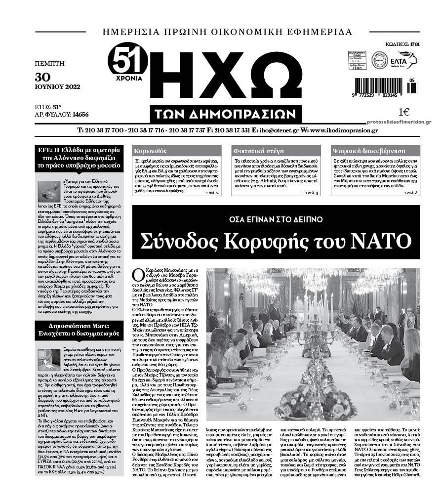Οι οικονομικές εφημερίδες 30/6/2022 Σταύρος Ιωακείμ 06:46, Πέμπτη 30 Ιουνίου 2022 Media Διαβάστε τα πρωτοσέλιδα από τις οικονομικές εφημερίδες, σήμερα 30/6/2022. ΕΦΗΜΕΡΙΔΕΣ ΟΙΚΟΝΟΜΙΚΕΣ ΕΦΗΜΕΡΙΔΕΣ ΠΡΩΤΟΣΕΛΙΔΑ Μοιράσου το: Οι αθλητικές εφημερίδες 30/6/2022 Οι πολιτικές εφημερίδες 30/6/2022 Το Ποντίκι σήμερα Πέμπτη 30/6/2022 σχολίασε κι εσύ (0 σχόλια) Ακολουθήστε το enikos.gr στο Google News και μάθετε πρώτοι όλες τις ειδήσεις Δείτε όλες τις τελευταίες ειδήσεις από την Ελλάδα και τον Κόσμο στο enikos.gr Ειδήσεις Ροή Ειδήσεων 5 ώρες πριν Αυξάνουν την πίεση προς την κυβέρνηση οι αγρότες: Κλείνουν παρακαμπτήριους και ανοίγουν διόδια – Τι θα γίνει τις γιορτές 4 ώρες πριν ΟΠΕΚΕΠΕ: Προφυλακιστέος ο φερόμενος αρχηγός και ο λογιστής της εγκληματικής οργάνωσης 23 λεπτά πριν Ευρωπαϊκή Ένωση: Χωρίς συμφωνία, για την μακροπρόθεσμη χρηματοδότηση της Ουκρανίας, ολοκληρώθηκε η Σύνοδος Κορυφής στις Βρυξέλλες 3 ώρες πριν ΑΕΚ – Κραϊόβα 3-2: Επική ανατροπή και πρόκριση στους «16» του Conference League η Ένωση 5 ώρες πριν Φοινικούντα: Το Σάββατο απολογείται ο 30χρονος γιος γνωστού επιχειρηματία της Πλάκας που παραδόθηκε – Όσα είπε στους αστυνομικούς και ο ρόλος του στο έγκλημα 4 ώρες πριν Αρχαιολόγοι ανακάλυψαν ρωμαϊκά τεχνουργήματα από μια πόλη που δεν υπήρξε ποτέ – Τα τρία εντυπωσιακά κτίρια και ο αμφορέας με τις… σαρδέλες 5 ώρες πριν Ύπνος: Η απλή βραδινή ρουτίνα για να προστατεύσετε τα μαλλιά σας από το κρύο κατά τη διάρκεια του χειμώνα 6 ώρες πριν Manifesting: Πώς να συναντήσετε τον σύντροφο της ζωής σας, ανάλογα με τον μήνα γέννησής σας 2 ημέρες πριν 20 χρόνια τα Χριστούγεννα ξεκινούν στα Public με μεγάλη ποικιλία σε δώρα! 23 λεπτά πριν Ευρωπαϊκή Ένωση: Χωρίς συμφωνία, για την μακροπρόθεσμη χρηματοδότηση της Ουκρανίας, ολοκληρώθηκε η Σύνοδος Κορυφής στις Βρυξέλλες 38 λεπτά πριν GNTM: «Κλείδωσαν» οι τέσσερις φιναλίστ – Μεγάλη ανατροπή στις τελευταίες αποχωρήσεις 52 λεπτά πριν Γιώργος Μαζωνάκης: Αποθεώθηκε στην πρεμιέρα του στην «Ακτή Πειραιώς» λίγες ώρες μετά τις καταγγελίες – «Είμαι αληθινός», είπε με νόημα 1 ώρα πριν Πόλεμος στην Ουκρανία: Ρωσικά drones έπληξαν την Οδησσό – Μία νεκρή και ζημιές σε ενεργειακές υποδομές 1 ώρα πριν ΑΕΚ-Κραϊόβα: Τα highlights της μυθικής ανατροπής της «Ένωσης» ENIKOS NETWORK Σε περίοδο αυξημένης δραστηριότητας η γρίπη στην Ελλάδα-Μέτρα προστασίας από τον ΕΟΔΥ Σκέφτεστε συνέχεια συζητήσεις που έχετε κάνει; Τι σημαίνει αυτό, σύμφωνα με ειδικό Στεγαστικό: Τι λέει η ΠΟΜΙΔΑ για τα νέα μέτρα που ανακοίνωσε ο Κυριάκος Μητσοτάκης Λαγκάρντ: Αισιόδοξη για την ανάπτυξη της Ευρωζώνης, αβέβαιη για τον πληθωρισμό Χαρτογραφώντας το «σημείο χωρίς επιστροφή»: Για πρώτη φορά αποκαλύπτεται με λεπτομέρεια το ακανθώδες όριο της ατμόσφαιρας τ... Η Google καταργεί τη λειτουργία «dark web report» – Πώς θα μπορούν οι χρήστες να διαγράφουν τα δεδομένα τους περισσότερα 02:50 , Παρασκευή 19 Δεκεμβρίου 2025 GNTM: «Κλείδωσαν» οι τέσσερις φιναλίστ – Μεγάλη ανατροπή στις τελευταίες αποχωρήσεις Για προτελευταία φορά εμφανίστηκαν στο πλατό του GNTM οι φιναλίστ του φετινού κύκλου, το βράδυ... 17:45 , Πέμπτη 18 Δεκεμβρίου 2025 ROUK ZOUK: Εορταστικό επεισόδιο με καλεσμένους τους πρωταγωνιστές του «Γιατί ρε πατέρα» Το Σάββατο 20 Δεκεμβρίου στις 21:00, η Ζέτα Μακρυπούλια υποδέχεται εκλεκτούς ηθοποιούς που όλο... 17:20 , Πέμπτη 18 Δεκεμβρίου 2025 Άγιος έρωτας: Η Χριστίνα εξομολογείται στον πατέρα Νικόλαο, απόψε στις 21:00 στον Alpha Η Νότα αποφασίζει να εκδικηθεί τον Πέτρο και