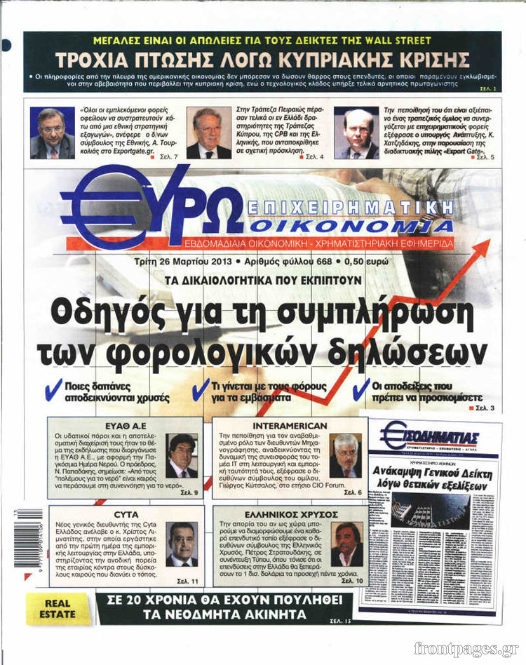 Οι οικονομικές εφημερίδες Enikos Newsroom 08:59, Τρίτη 26 Μαρτίου 2013 Media Οι οικονομικές εφημερίδες ΕΦΗΜΕΡΙΔΕΣ ΟΙΚΟΝΟΜΙΚΕΣ ΕΦΗΜΕΡΙΔΕΣ ΠΡΩΤΟΣΕΛΙΔΑ Μοιράσου το: σχολίασε κι εσύ (0 σχόλια) Ακολουθήστε το enikos.gr στο Google News και μάθετε πρώτοι όλες τις ειδήσεις Δείτε όλες τις τελευταίες ειδήσεις από την Ελλάδα και τον Κόσμο στο enikos.gr Ειδήσεις Ροή Ειδήσεων 2 ώρες πριν Δημοσκόπηση Alco: Στο 23,6% η ΝΔ, στο 11,6% το ΠΑΣΟΚ – Η άποψη των πολιτών για αγρότες, εκλογές και Τσίπρα 42 λεπτά πριν Σύσκεψη αγροτών στην Νίκαια: «Δεν είναι ξεκάθαρες οι δηλώσεις του κ. Τσιάρα – Η απόφαση θα ληφθεί πανελλαδικά» 2 ώρες πριν Ουκρανία: Έπληξε ρωσικό υποβρύχιο στο Νοβορισίσκ με υποθαλάσσιο drone – ΒΙΝΤΕΟ 6 ώρες πριν Κυψέλη: Για πρώτη ημέρα βρισκόταν στο σχολείο η 16χρονη που επιτέθηκε με μαχαίρι στην 14χρονη – Τι αναφέρουν μαρτυρίες μαθητών για το επεισόδιο 2 ώρες πριν Επιστήμονες αποκαλύπτουν πότε μπορεί να εξαφανιστούν οι παγετώνες της Γης – Υπό απειλή πασίγνωστες οροσειρές του πλανήτη 1 ώρα πριν Αριθμολογία: Ο τυχερός σας αριθμός, ανάλογα με τον μήνα γέννησής σας 3 ώρες πριν Γάμος: Αν ένας άνδρας νιώθει βαθιά μοναξιά, θα αρχίσει να κάνει αυτά τα 11 πράγματα μέσα στο σπίτι 2 ώρες πριν Πώς να μην μαραίνονται γρήγορα τα κομμένα λουλούδια: Το λάθος στην τοποθέτηση του βάζου που πρέπει να αποφεύγετε 24 λεπτά πριν Ύπνος: Η αρχαία μορφή άσκησης που αποδεικνύεται αποτελεσματική στην αντιμετώπιση της αϋπνίας, σύμφωνα με μελέτη 5 λεπτά πριν Κοινό ανακοινωθέν των Ευρωπαίων για την Ουκρανία: «Καμία εδαφική παραχώρηση μέχρι να εφαρμοστούν οι εγγυήσεις ασφάλειας» 11 λεπτά πριν Ρούλα Σταματοπούλου: «Προσπαθούσαμε τρία χρόνια να αποκτήσουμε παιδί, αλλά δεν το έβαλα κάτω» 17 λεπτά πριν Μαρία Καρυστιανού: «Είμαι στην πρώτη γραμμή οργάνωσης κινήματος που μπορεί να γίνει κόμμα – Πάμε για κάτι πολύ μεγάλο» – ΒΙΝΤΕΟ 24 λεπτά πριν Ύπνος: Η αρχαία μορφή άσκησης που αποδεικνύεται αποτελεσματική στην αντιμετώπιση της αϋπνίας, σύμφωνα με μελέτη 28 λεπτά πριν Κάγια Κάλας: Ερωτήματα για κυβερνοεπίθεση πίσω από τα τεχνικά προβλήματα που εμπόδισαν τις συνομιλίες ΕΕ με Γουίτκοφ-Κούσνερ ENIKOS NETWORK Πότε το χρόνιο ροχαλητό να αποτελέσει ένδειξη κινδύνου για την καρδιά; Τι λένε οι ειδικοί Μάριος Θεμιστοκλέους: Το ΕΣΥ ενισχύεται, εκσυγχρονίζεται, αλλάζει Ελεύθεροι επαγγελματίες: Οι κερδισμένοι και οι χαμένοι για το 2026 Νέες υποχρεώσεις για συγκεκριμένες εισαγωγές από 1 Ιανουαρίου 2026 – Tι πρέπει να γνωρίζουν οι επιχειρήσεις Σύγχρονος Νοστράδαμος: Προειδοποιεί για «μεγάλο γεγονός» τους επόμενους μήνες που θα συγκλονίσει τη Βρετανία και τον κόσμο Τεστ παρατηρητικότητας: Μπορείτε να βρείτε τις 3 διαφορές στις εικόνες με έναν πιγκουίνο σε 14 δευτερόλεπτα περισσότερα 21:35 , Δευτέρα 15 Δεκεμβρίου 2025 Το Σπίτι Δίπλα Στο Ποτάμι: Η Ιουλία και ο Φωκάς μετακομίζουν στη Ρόδο – Δύο νέοι χαρακτήρες μπαίνουν στη σειρά Δύο νέοι, κομβικοί χαρακτήρες κάνουν την εμφάνισή τους αυτή την εβδομάδα στην αγαπημένη σειρά ... 19:46 , Δευτέρα 15 Δεκεμβρίου 2025 Άγιος έρωτας: Η Χριστίνα λέει την αλήθεια στον Αντρέα Ο Βασίλης δέχεται επίθεση από τους συμμαθητές του, η Αναστασία είναι συντετριμμένη με την απώλ... 18:45 , Δευτέρα 15 Δεκεμβρίου 2025 Συνέδριο «Ελληνικός Τουρισμός 2025, Μια εθνική υπόθεση!» – «Ο Θαλάσσιος Πυλώνας ως Ενιαία Στρατηγική: Συνέργειες σε Λιμάνια, Μαρίνες, Ακτοπλοΐα, Κρουαζιέρα και Yachting» Στο πλαίσιο της τέταρτης και τελευταίας ενότητας του 7ου συνεδρ