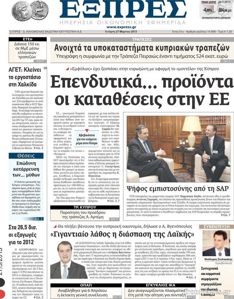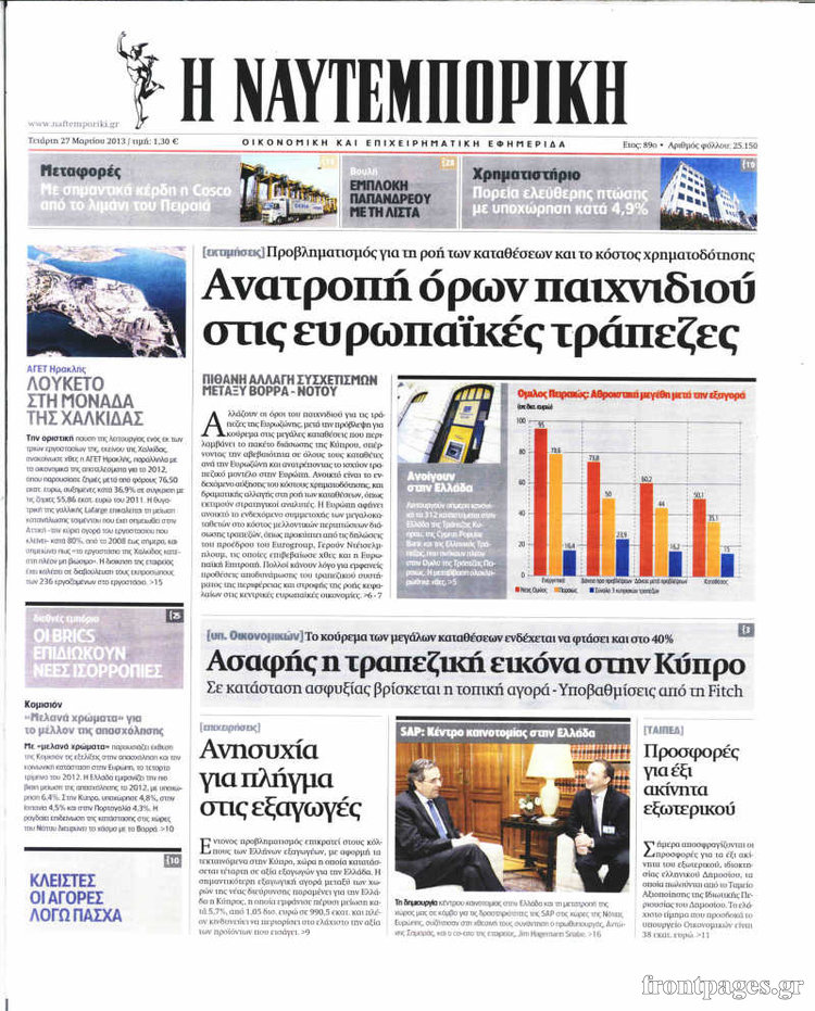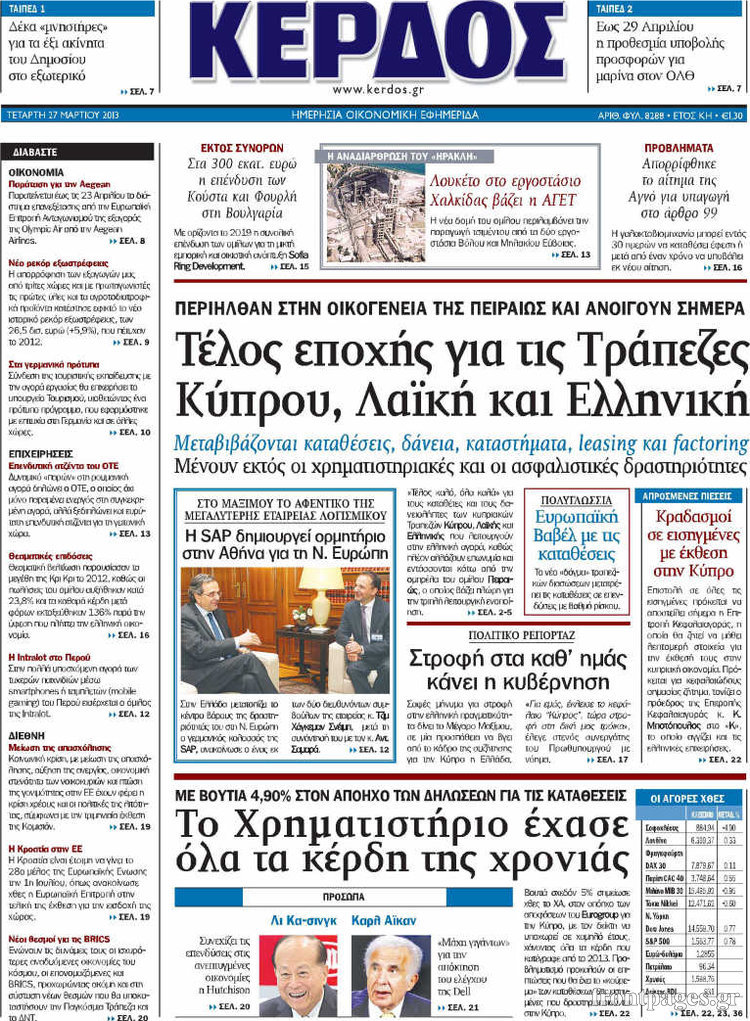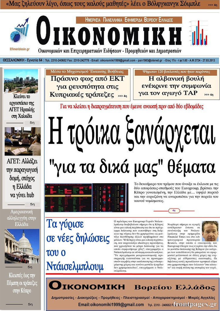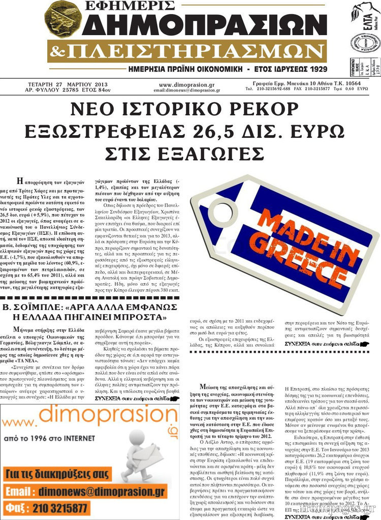 Οι οικονομικές εφημερίδες Enikos Newsroom 08:24, Τετάρτη 27 Μαρτίου 2013 Media Οι οικονομικές εφημερίδες ΕΦΗΜΕΡΙΔΕΣ ΟΙΚΟΝΟΜΙΚΕΣ ΕΦΗΜΕΡΙΔΕΣ ΠΡΩΤΟΣΕΛΙΔΑ Μοιράσου το: σχολίασε κι εσύ (0 σχόλια) Ακολουθήστε το enikos.gr στο Google News και μάθετε πρώτοι όλες τις ειδήσεις Δείτε όλες τις τελευταίες ειδήσεις από την Ελλάδα και τον Κόσμο στο enikos.gr Ειδήσεις Ροή Ειδήσεων 1 ώρα πριν Δημοσκόπηση Alco: Στο 23,6% η ΝΔ, στο 11,6% το ΠΑΣΟΚ – Η άποψη των πολιτών για αγρότες, εκλογές και Τσίπρα 5 ώρες πριν Κυψέλη: Για πρώτη ημέρα βρισκόταν στο σχολείο η 16χρονη που επιτέθηκε με μαχαίρι στην 14χρονη – Τι αναφέρουν μαρτυρίες μαθητών για το επεισόδιο 2 ώρες πριν Φοινικούντα: Αρνούνται τις κατηγορίες οι 2 συλληφθέντες – «Θέλω να συμβάλλω στην αποκάλυψη της αλήθειας» λέει ο ανιψιός του θύματος 3 ώρες πριν Κρήτη: Εντοπίστηκε στίγμα του 33χρονου γιατρού που έχει εξαφανιστεί μέσω νέας τεχνολογίας που εφαρμόζεται για πρώτη φορά στην Ελλάδα 4 ώρες πριν Ρομπ και Μισέλ Ράινερ: Συνελήφθη ο γιος τους ως ύποπτος για την δολοφονία τους 6 ώρες πριν Τα 3 ζώδια που θα έχουν τύχη «βουνό» έως τις 21 Δεκεμβρίου – «Η ανατροπή που περιμένετε πλησιάζει» 3 ώρες πριν Γάμος: Αν ένας άνδρας νιώθει βαθιά μοναξιά, θα αρχίσει να κάνει αυτά τα 11 πράγματα μέσα στο σπίτι 2 ώρες πριν Πώς να μην μαραίνονται γρήγορα τα κομμένα λουλούδια: Το λάθος στην τοποθέτηση του βάζου που πρέπει να αποφεύγετε 7 ώρες πριν Επιστήμονες του CERN έλυσαν ένα μυστήριο δεκαετιών της σωματιδιακής φυσικής – Τι ανακάλυψαν 6 λεπτά πριν Βάσω Λασκαράκη: «Χρόνια πολλά, αγάπη μου σε ευχαριστώ που κάνεις την ζωή μου πιο ωραία» – Οι ευχές στον Λευτέρη Σουλτάτο για την γιορτή του 11 λεπτά πριν Μερτς: Οι συνομιλίες για την Ουκρανία είναι «ίσως η μεγαλύτερη διπλωματική δυναμική» – Ζελένσκι: «Επώδυνο το εδαφικό» 16 λεπτά πριν Κόντρα Θεοδωρικάκου – Φάμελλου στη Βουλή – Τα «πυρά» της Κωνσταντοπούλου 21 λεπτά πριν Πιερρακάκης: Σύντομα η Ελλάδα θα έχει περάσει στην πρώτη πεντάδα της Ευρώπης στην ψηφιακή πολιτική – Έχουμε πετύχει έναν άθλο 26 λεπτά πριν Νέα σύλληψη στο «Ελ. Βενιζέλος» για ναρκωτικά – Χειροπέδες σε 23χρονο που είχε 18,5 κιλά κάνναβης στη βαλίτσα του ENIKOS NETWORK Πότε το χρόνιο ροχαλητό να αποτελέσει ένδειξη κινδύνου για την καρδιά; Τι λένε οι ειδικοί Μάριος Θεμιστοκλέους: Το ΕΣΥ ενισχύεται, εκσυγχρονίζεται, αλλάζει ΟΠΕΚΑ: Ποιο επίδομα αυξάνεται από τον επόμενο μήνα και γιατί Ευλογιά αιγοπροβάτων: Έως το τέλος του έτους η οικονομική στήριξη 187 εκατ. ευρώ σε κτηνοτρόφους – Όλα όσα είπε ο Πρωτοψάλτ... Σύγχρονος Νοστράδαμος: Προειδοποιεί για «μεγάλο γεγονός» τους επόμενους μήνες που θα συγκλονίσει τη Βρετανία και τον κόσμο Τεστ παρατηρητικότητας: Μπορείτε να βρείτε τις 3 διαφορές στις εικόνες με έναν πιγκουίνο σε 14 δευτερόλεπτα περισσότερα 19:46 , Δευτέρα 15 Δεκεμβρίου 2025 Άγιος έρωτας: Η Χριστίνα λέει την αλήθεια στον Αντρέα Ο Βασίλης δέχεται επίθεση από τους συμμαθητές του, η Αναστασία είναι συντετριμμένη με την απώλ... 18:45 , Δευτέρα 15 Δεκεμβρίου 2025 Συνέδριο «Ελληνικός Τουρισμός 2025, Μια εθνική υπόθεση!» – «Ο Θαλάσσιος Πυλώνας ως Ενιαία Στρατηγική: Συνέργειες σε Λιμάνια, Μαρίνες, Ακτοπλοΐα, Κρουαζιέρα και Yachting» Στο πλαίσιο της τέταρτης και τελευταίας ενότητας του 7ου συνεδρίου «Ελληνικός Τουρισμός 2025, ... 18:13 , Δευτέρα 15 Δεκεμβρίου 2025 Συνέδριο «Ελληνικός Τουρισμός 2025, Μια εθνική υπόθεση!» – Κικίλιας: «Μεγάλα asset της Ελλάδας η ναυτιλία και ο τουρισμός» Στον θαλάσσιο οικονο