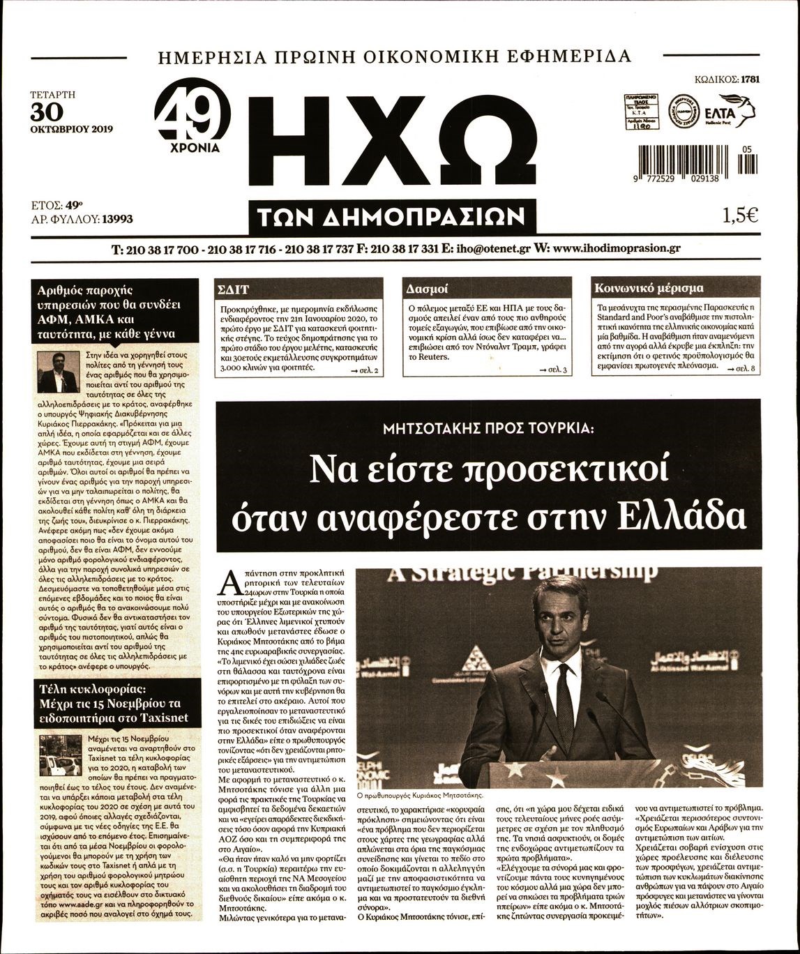 Οι οικονομικές εφημερίδες 30/10/19 Διονύσης Νίκκας 06:54, Τετάρτη 30 Οκτωβρίου 2019 Media Διαβάστε τα πρωτοσέλιδα των οικονομικών εφημερίδων… ΕΦΗΜΕΡΙΔΕΣ ΟΙΚΟΝΟΜΙΚΕΣ Μοιράσου το: σχολίασε κι εσύ (0 σχόλια) Ακολουθήστε το enikos.gr στο Google News και μάθετε πρώτοι όλες τις ειδήσεις Δείτε όλες τις τελευταίες ειδήσεις από την Ελλάδα και τον Κόσμο στο enikos.gr Ειδήσεις Ροή Ειδήσεων 30 λεπτά πριν Έξοδος Χριστουγέννων: Αυξημένη η κίνηση προς την Κεντρική Ελλάδα – Η εικόνα στα αγροτικά μπλόκα και οι δρόμοι που είναι ανοιχτοί 1 ώρα πριν Καιρός: Επιδείνωση με ισχυρές βροχές και καταιγίδες σήμερα – Πού θα εκδηλωθούν έντονα φαινόμενα 1 ώρα πριν Ελλάδα – Κύπρος – Ισραήλ: Η νέα αμυντική συνεργασία, το κέντρο κυβερνοασφάλειας και τα νεύρα της Τουρκίας 9 ώρες πριν Τραγωδία στην Τουρκία: Νεκρός ο αρχηγός του Γενικού Επιτελείου της Λιβύης – Συνετρίβη λίγο μετά την απογείωση το ιδιωτικό τζετ που τον μετέφερε – ΦΩΤΟ και ΒΙΝΤΕΟ 1 ώρα πριν Το όνομα Τραμπ για πρώτη φορά στα αρχεία Επστάιν – 5 συμπεράσματα από τη νέα μαζική δημοσίευση εγγράφων 3 ώρες πριν Τα ζώδια σήμερα, Τετάρτη 24 Δεκεμβρίου: Αιγόκεροι, χρειάζεται να επαναπροσδιορίσετε τη σχέση σας με τον έρωτα 3 ώρες πριν Χοληστερίνη και σάκχαρο στο αίμα: Η κατανάλωση ενός ροφήματος κάθε μέρα μπορεί να βοηθήσει στην μείωσή τους 2 ώρες πριν Οπτική ψευδαίσθηση: Μόνο αν είσαι ο Σέρλοκ Χολμς θα βρεις τον αριθμό «87» σε 7 δευτερόλεπτα 23 ώρες πριν Η Coca-Cola και ο Ελληνικός Ερυθρός Σταυρός μαζί αυτά τα Χριστούγεννα: Μια μεγάλη αγκαλιά για τους συνανθρώπους μας που έχουν ανάγκη 1 λεπτό πριν Παρά Πέντε: Όλα όσα έγιναν στο reunion της θρυλικής σειράς – Το τραγούδι των ηθοποιών και το βίντεο για τους συντελεστές που έχουν φύγει από τη ζωή 8 λεπτά πριν Τραγωδία στη Σλοβακία: Κατέρρευσε οροφή σε εταιρεία – 3 νεκροί 15 λεπτά πριν Αγρότης ανακάλυψε τυχαία λείψανα δύο ανθρώπων της Εποχής του Χαλκού – Το μυστήριο πίσω από την περίεργη ταφή 16 λεπτά πριν Κίνα: Επιβολή προσωρινών μέτρων κατά των επιδοτήσεων σε ευρωπαϊκά γαλακτοκομικά προϊόντα 30 λεπτά πριν Έξοδος Χριστουγέννων: Αυξημένη η κίνηση προς την Κεντρική Ελλάδα – Η εικόνα στα αγροτικά μπλόκα και οι δρόμοι που είναι ανοιχτοί ENIKOS NETWORK Γιατί αυξάνονται τα εμφράγματα στις γιορτές – Πώς να μειώσετε τον κίνδυνο, σύμφωνα με καρδιολόγο Το μυστικό για τις πιο τραγανές και νόστιμες πατάτες φούρνου που έχετε φάει Οι αθλητικές εφημερίδες 24/12/2025 Εφορία: Ποιες φορολογικές δηλώσεις κινδυνεύουν με «πέναλτι» εάν δεν υποβληθούν μέχρι την παραμονή της Πρωτοχρονιάς Ο Google Assistant θα παραμείνει λίγο περισσότερο για ορισμένους χρήστες Android Τεστ προσωπικότητας: Το βάζο που θα επιλέξετε αποκαλύπτει πώς λύνετε προβλήματα στη ζωή σας περισσότερα 08:43 , Τετάρτη 24 Δεκεμβρίου 2025 Παρά Πέντε: Όλα όσα έγιναν στο reunion της θρυλικής σειράς – Το τραγούδι των ηθοποιών και το βίντεο για τους συντελεστές που έχουν φύγει από τη ζωή Ήταν Σεπτέμβρης του 2005 όταν έκανε πρεμιέρα στο MEGA το «Παρά Πέντε». Η θρυλική σειρά που λατ... 07:28 , Τετάρτη 24 Δεκεμβρίου 2025 Οι αθλητικές μεταδόσεις 24/12/2025 Τα παιχνίδια από το Κύπελλο Εθνών Αφρικής ξεχωρίζουν στο πρόγραμμα με τις αθλητικές μεταδόσεις... 07:01 , Τετάρτη 24 Δεκεμβρίου 2025 Αυτή την Κυριακή με τη Realnews: Το μυστήριο των Χριστουγέννων – Οι γιορτές στη Νέα Υόρκη παίρνουν μια αναπάντεχη τροπή, σε ένα συγκλονιστικό θρίλερ από τη συγγραφέα Vicki Delany Αυτή την Κυριακή με τη Realnews: Το μυστήριο των Χριστουγέννων – Οι γιορτέ