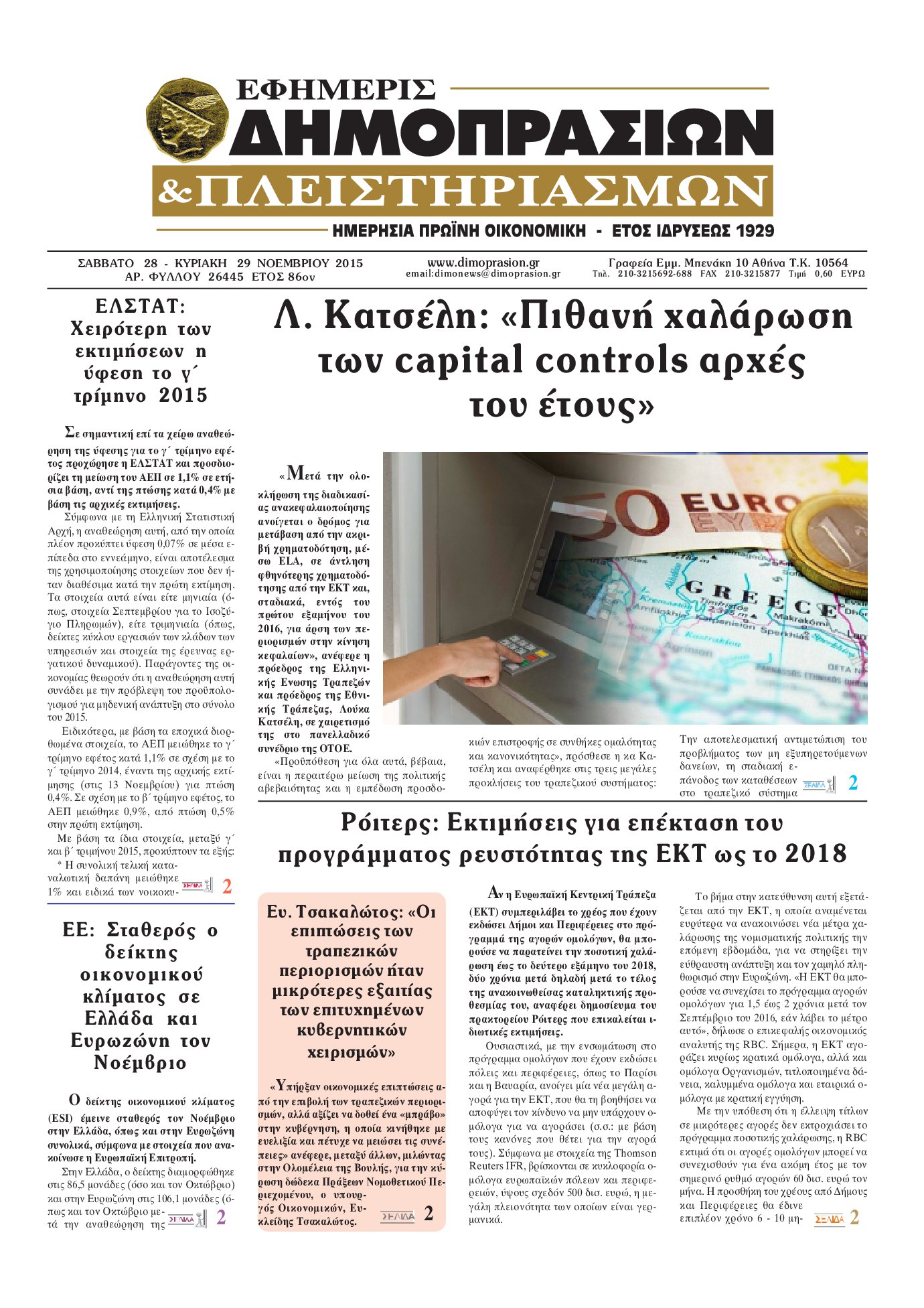 Οι οικονομικές εφημερίδες 30/11/2015 Enikos Newsroom 06:14, Δευτέρα 30 Νοεμβρίου 2015 Media Διαβάστε τα σημερινά πρωτοσέλιδα των οικονομικών εφημερίδων: ΟΙΚΟΝΟΜΙΚΕΣ ΕΦΗΜΕΡΙΔΕΣ ΠΡΩΤΟΣΕΛΙΔΑ Μοιράσου το: σχολίασε κι εσύ (0 σχόλια) Ακολουθήστε το enikos.gr στο Google News και μάθετε πρώτοι όλες τις ειδήσεις Δείτε όλες τις τελευταίες ειδήσεις από την Ελλάδα και τον Κόσμο στο enikos.gr Ειδήσεις Ροή Ειδήσεων 1 ώρα πριν Εθνικό Απολυτήριο: Από το σχολικό έτος 2027-2028 ξεκινά η εφαρμογή του – Δεν καταργούνται οι πανελλήνιες 2 ώρες πριν Τέμπη: Τα «γυμνά» καθίσματα του Intercity 62 στη φωτιά και οι τραγικές συνέπειες – «Ενδεχομένως κάποιοι να είχαν γλιτώσει, εάν ήταν πυράντοχα» 58 λεπτά πριν Reuters: H Ελλάδα θα ανακοινώσει σύντομα την απαγόρευση χρήσης των social media για παιδιά κάτω των 15 ετών 42 λεπτά πριν Αμβούργο: Συνελήφθη Έλληνας από την Κομοτηνή για απόπειρα σαμποτάζ σε πολεμικά πλοία 4 ώρες πριν Βία ανηλίκων: Η «ανατομία» του φαινομένου μέσα από τα μάτια ειδικών και το στοίχημα της πρόληψης – «Το ερώτημα δεν πρέπει να είναι τι έκανε το παιδί, αλλά τι του συνέβη» 53 λεπτά πριν Τα 3 ζώδια που θα δουν τη ζωή τους να βελτιώνεται αισθητά μέχρι τα τέλη Φεβρουαρίου – «Τα πράγματα πηγαίνουν προς το καλύτερο» 8 ώρες πριν Ο πατέρας του ανακάλυψε πως δεν είναι το βιολογικό του παιδί – «Ελπίζαμε να ήταν ψέμα» 5 ώρες πριν Οι 9 φράσεις που χρησιμοποιούν οι πανέξυπνοι άνθρωποι και οι υπόλοιποι απλώς… δεν καταλαβαίνουν 2 ώρες πριν Είναι τελικά επικίνδυνο να κάθεστε σε μια δημόσια τουαλέτα; Η επιστήμη ίσως σας εκπλήξει 3 λεπτά πριν Δολοφονία στη Νέα Πέραμο: Για κατάθεση στο Τμήμα Ανθρωποκτονιών η σύντροφος του 27χρονου – Στοιχεία για το κίνητρο της εκτέλεσης ψάχνουν οι Αρχές 8 λεπτά πριν Βρετανία: Άρχισε επίσημη έρευνα κατά του chatbot Grok του Έλον Μασκ 14 λεπτά πριν «Αναβρασμός» για τον 13ο και 14ο μισθό στο Δημόσιο: Εν αναμονή δημοσίευσης της απόφασης του ΣτΕ – Τι ζητεί η ΑΔΕΔΥ, τι αναφέρει η Ένωση Δικαστών και Εισαγγελέων 21 λεπτά πριν Βορίζια: Έρευνα της ΕΛΑΣ σε παλιό ποιμνοστάσιο – Εντοπίστηκαν πολεμικό τυφέκιο, φυσίγγια και φυτίλι 27 λεπτά πριν Ξεκινά ο διάλογος για το νέο Εθνικό Απολυτήριο – Μητσοτάκης: Να υπάρχει στο ζήτημα αυτό διάθεση συναίνεσης και θετικής συνεισφοράς ENIKOS NETWORK Άδωνις Γεωργιάδης: Σε app για το κινητό τηλέφωνο το Εθνικό Μητρώο Νεοπλασιών ΣΕΙΒ: Η ιατρική τεχνολογία, μοχλός βιωσιμότητας και ισότιμης πρόσβασης Πεντάστερη άφιξη στην Αθηναϊκή Ριβιέρα Σε εξέλιξη οι διαδικασίες παραχώρησης χρήσης αιγιαλού και παραλίας – Αρχίζει η ανάρτηση διακηρύξεων από τις Κτηματικές Υπηρ... Ευπάθεια στο moltbook ai αποκαλύπτει email, tokens σύνδεσης και api keys Αυτός είναι ο ρόλος της μικρής τρύπας στους νυχοκόπτες – «Είμαι ο μόνος που δεν το ήξερε;»» περισσότερα 10:57 , Τρίτη 03 Φεβρουαρίου 2026 Ακούστε το σχόλιο του Νίκου Χατζηνικολάου 3/2/2026 Ακούστε το σχόλιο του Νίκου Χατζηνικολάου στον ραδιοφωνικό σταθμό Realfm 97,8, την Τρίτη 3 Φεβ... 10:42 , Τρίτη 03 Φεβρουαρίου 2026 Τηλεθέαση (2/2): Ανατροπή στους πίνακες για την πρωινή ψυχαγωγική ζώνη Στις πρωινές εκπομπές, οι «Αταίριαστοι» του ΣΚΑΪ βρέθηκαν στην κορυφή της τηλεθέασης τόσο στο ... 05:48 , Τρίτη 03 Φεβρουαρίου 2026 Οι οικονομικές εφημερίδες 3/2/2026 Διαβάστε τα πρωτοσέλιδα από τις οικονομικές εφημερίδες, σήμερα 3/2/2026. 05:38 , Τρίτη 03 Φεβρουαρίου 2026 Οι πολιτικές εφημερίδες 3/2/2026 Διαβάστε τα πρωτοσέλιδα από τις πολιτικές εφημερίδες, σήμερα 3/2/2026. ΤΕΛΕΥΤΑΙΕΣ ΕΙΔΗΣΕΙΣ 3 λεπτά πριν Δολοφονία στη Νέα Πέραμο: Γι