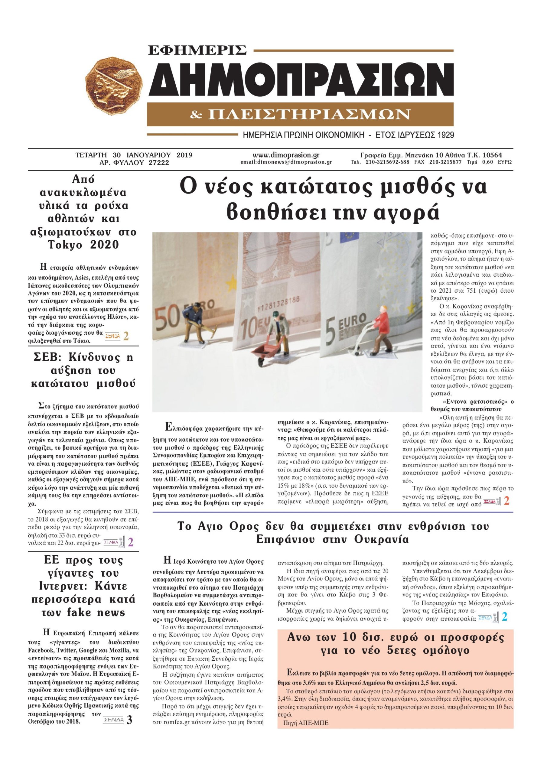 Οι οικονομικές εφημερίδες 30/1/19 Enikos Newsroom 06:41, Τετάρτη 30 Ιανουαρίου 2019 Media Διαβάστε τα πρωτοσέλιδα των οικονομικών εφημερίδων: ΟΙΚΟΝΟΜΙΚΕΣ ΕΦΗΜΕΡΙΔΕΣ ΠΡΩΤΟΣΕΛΙΔΑ Μοιράσου το: σχολίασε κι εσύ (0 σχόλια) Ακολουθήστε το enikos.gr στο Google News και μάθετε πρώτοι όλες τις ειδήσεις Δείτε όλες τις τελευταίες ειδήσεις από την Ελλάδα και τον Κόσμο στο enikos.gr Ειδήσεις Ροή Ειδήσεων 2 ώρες πριν Κυριάκος Μητσοτάκης: «Κάποιοι αγρότες δεν αισθάνονται την ανάγκη να διαφωνήσουν με τις προτάσεις της κυβέρνησης, η Ευρώπη στέκεται στο πλευρό της Ουκρανίας» 7 ώρες πριν ΟΠΕΚΕΠΕ: Προφυλακιστέος ο φερόμενος αρχηγός και ο λογιστής της εγκληματικής οργάνωσης 8 ώρες πριν Αυξάνουν την πίεση προς την κυβέρνηση οι αγρότες: Κλείνουν παρακαμπτήριους και ανοίγουν διόδια – Τι θα γίνει τις γιορτές 8 ώρες πριν Φοινικούντα: Το Σάββατο απολογείται ο 30χρονος γιος γνωστού επιχειρηματία της Πλάκας που παραδόθηκε – Όσα είπε στους αστυνομικούς και ο ρόλος του στο έγκλημα 7 ώρες πριν ΑΕΚ – Κραϊόβα 3-2: Επική ανατροπή και πρόκριση στους «16» του Conference League η Ένωση 8 ώρες πριν Αρχαιολόγοι ανακάλυψαν ρωμαϊκά τεχνουργήματα από μια πόλη που δεν υπήρξε ποτέ – Τα τρία εντυπωσιακά κτίρια και ο αμφορέας με τις… σαρδέλες 9 ώρες πριν Ύπνος: Η απλή βραδινή ρουτίνα για να προστατεύσετε τα μαλλιά σας από το κρύο κατά τη διάρκεια του χειμώνα 10 ώρες πριν Manifesting: Πώς να συναντήσετε τον σύντροφο της ζωής σας, ανάλογα με τον μήνα γέννησής σας 2 ημέρες πριν 20 χρόνια τα Χριστούγεννα ξεκινούν στα Public με μεγάλη ποικιλία σε δώρα! 13 λεπτά πριν Απειλή για το Προϋπολογισμό τα ληξιπρόθεσμα χρέη των ιδιωτών προς την εφορία 13 λεπτά πριν Πέντε νεκροί σε πλήγματα των ΗΠΑ κατά δύο σκαφών που φέρεται να μετέφεραν ναρκωτικά στον Ανατολικό Ειρηνικό 21 λεπτά πριν ΕΥΔΑΠ: Αλλάζουν τα τιμολόγια του νερού 29 λεπτά πριν Οπτική ψευδαίσθηση: Μόνο αν έχεις αετίσια ματιά θα βρεις τον παπαγάλο σε 12 δευτερόλεπτα 36 λεπτά πριν Αθήνα: Βρέθηκε η 16χρονη που είχε εξαφανιστεί από τις 6 Δεκεμβρίου – Η ανακοίνωση από το «Χαμόγελο του Παιδιού» ENIKOS NETWORK Σε περίοδο αυξημένης δραστηριότητας η γρίπη στην Ελλάδα-Μέτρα προστασίας από τον ΕΟΔΥ Σκέφτεστε συνέχεια συζητήσεις που έχετε κάνει; Τι σημαίνει αυτό, σύμφωνα με ειδικό Στεγαστικό: Τι λέει η ΠΟΜΙΔΑ για τα νέα μέτρα που ανακοίνωσε ο Κυριάκος Μητσοτάκης Λαγκάρντ: Αισιόδοξη για την ανάπτυξη της Ευρωζώνης, αβέβαιη για τον πληθωρισμό Χαρτογραφώντας το «σημείο χωρίς επιστροφή»: Για πρώτη φορά αποκαλύπτεται με λεπτομέρεια το ακανθώδες όριο της ατμόσφαιρας τ... Η Google καταργεί τη λειτουργία «dark web report» – Πώς θα μπορούν οι χρήστες να διαγράφουν τα δεδομένα τους περισσότερα 05:48 , Παρασκευή 19 Δεκεμβρίου 2025 Οι οικονομικές εφημερίδες 19/12/2025 Διαβάστε τα πρωτοσέλιδα από τις οικονομικές εφημερίδες, σήμερα 19/12/2025. 05:43 , Παρασκευή 19 Δεκεμβρίου 2025 Οι αθλητικές εφημερίδες 19/12/2025 Διαβάστε τα πρωτοσέλιδα από τις αθλητικές εφημερίδες, σήμερα 19/12/2025. 05:38 , Παρασκευή 19 Δεκεμβρίου 2025 Οι πολιτικές εφημερίδες 19/12/2025 Διαβάστε τα πρωτοσέλιδα από τις πολιτικές εφημερίδες, σήμερα 19/12/2025. 02:50 , Παρασκευή 19 Δεκεμβρίου 2025 GNTM: «Κλείδωσαν» οι τέσσερις φιναλίστ – Μεγάλη ανατροπή στις τελευταίες αποχωρήσεις Για προτελευταία φορά εμφανίστηκαν στο πλατό του GNTM οι φιναλίστ του φετινού κύκλου, το βράδυ... ΤΕΛΕΥΤΑΙΕΣ ΕΙΔΗΣΕΙΣ 13 λεπτά πριν Απειλή για το Προϋπολογισμό τα ληξιπρόθεσμα χρέη των... 13 λεπτά πριν Πέντε νεκροί σε πλήγματα των ΗΠΑ κατά δύο σκ