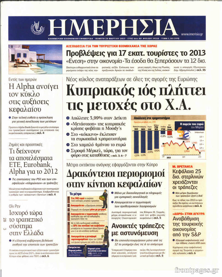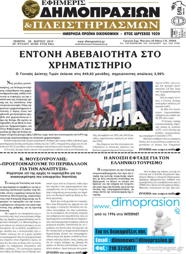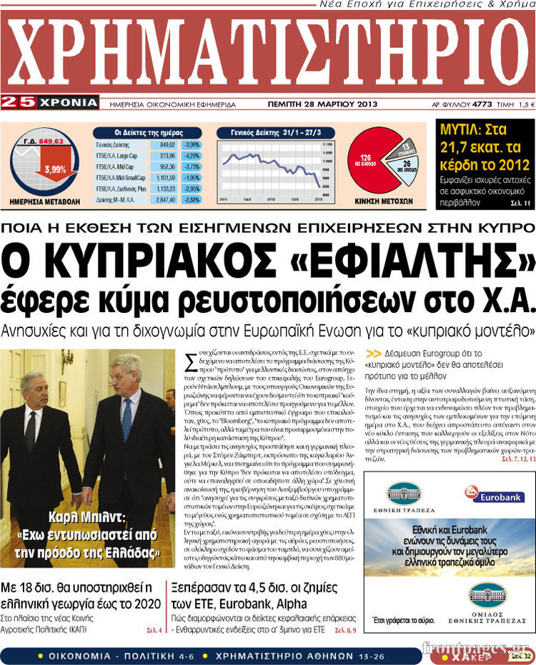 Οι οικονομικές εφημερίδες Enikos Newsroom 08:29, Πέμπτη 28 Μαρτίου 2013 Media Οι οικονομικές εφημερίδες ΕΦΗΜΕΡΙΔΕΣ ΟΙΚΟΝΟΜΙΚΕΣ ΕΦΗΜΕΡΙΔΕΣ ΠΡΩΤΟΣΕΛΙΔΑ Μοιράσου το: σχολίασε κι εσύ (0 σχόλια) Ακολουθήστε το enikos.gr στο Google News και μάθετε πρώτοι όλες τις ειδήσεις Δείτε όλες τις τελευταίες ειδήσεις από την Ελλάδα και τον Κόσμο στο enikos.gr Ειδήσεις Ροή Ειδήσεων 2 ώρες πριν Τσιάρας: Καλούμε άμεσα τους εκπροσώπους των αγροτών σε ουσιαστικό διάλογο – Υπάρχουν περιθώρια, η κοινωνία περιμένει υπευθυνότητα 1 ώρα πριν Κυψέλη: Για πρώτη ημέρα βρισκόταν στο σχολείο η 16χρονη που επιτέθηκε με μαχαίρι στην 14χρονη – Τι αναφέρουν μαρτυρίες μαθητών για το επεισόδιο 2 ώρες πριν Λάρισα: Αναβλήθηκε για τον Οκτώβριο του 2026 η δίκη δύο αγροτών του μπλόκου της Νίκαιας 6 ώρες πριν Σίδνεϊ: Τα ονόματα των θυμάτων από την τρομοκρατική επίθεση – Η 10χρονη Ματίλντα και ο επιζών του Ολοκαυτώματος που έσωσε τη γυναίκα του 7 ώρες πριν Δείτε το συνέδριο «Ελληνικός Τουρισμός, Μια Εθνική Υπόθεση!» 2 ώρες πριν Τα 3 ζώδια που θα έχουν τύχη «βουνό» έως τις 21 Δεκεμβρίου – «Η ανατροπή που περιμένετε πλησιάζει» 5 ώρες πριν Μακροζωία: 55χρονος που ισχυρίζεται ότι βιολογικά είναι 20 ετών μοιράζεται μια απλή συμβουλή για υγιή εγκέφαλο 6 ώρες πριν Οι 8 φράσεις που δίνουν αμέσως την εντύπωση πως είστε δύσκολος άνθρωπος 8 ώρες πριν Κληρονόμησε 2,8 εκατ. ευρώ και φοβάται ότι οι άνδρες θα την πλησιάζουν για τα λεφτά – «Μήπως καλύτερα να το κρατήσω μυστικό;» 3 λεπτά πριν Τι απαντά ο τραγουδιστής μετά την αποκάλυψη ότι «έρχονται» καταγγελίες για ασέλγεια 8 λεπτά πριν Μεσσηνία: Αγρότες απέκλεισαν τον αυτοκινητόδρομο στο ύψος της Θουρίας – Κλειστά και τα δύο ρεύματα 14 λεπτά πριν Ρεάλ Μαδρίτης: 180 λεπτά και 3 γκολ μακριά από το ιστορικό ρεκόρ του Κριστιάνο Ρονάλντο ο Μπαπέ 20 λεπτά πριν Σοκ στη Σίκινο: Ανθρώπινος σκελετός εντοπίστηκε από κυνηγούς – Ανήκει στη μία εκ των 2 τουριστριών που αγνοούνταν από το 2024 26 λεπτά πριν Κουίζ για την παλιά Αθήνα: Αναγνωρίζετε την οδό; Είναι από τις πιο γνωστές ENIKOS NETWORK Οι 9 κορυφαίες ιατρικές έρευνες για το 2025 που αλλάζουν το τοπίο της υγείας Ραντεβού από σήμερα για ιατρικές εξετάσεις με ένα κλικ μέσω του MyHealth app ΕΛΣΤΑΤ: Μείωση 6,4% στον αριθμό των κενών θέσεων εργασίας στο σύνολο της οικονομίας κατά το γ’ τρίμηνο 2025 – Δείτε αναλυτι... IRIS: Τι αλλάζει μετά την Πρωτοχρονιά στις συναλλαγές και ποιες θα είναι «επικίνδυνες» Σύγχρονος Νοστράδαμος: Προειδοποιεί για «μεγάλο γεγονός» τους επόμενους μήνες που θα συγκλονίσει τη Βρετανία και τον κόσμο Τεστ παρατηρητικότητας: Μπορείτε να βρείτε τις 3 διαφορές στις εικόνες με έναν πιγκουίνο σε 14 δευτερόλεπτα περισσότερα 15:31 , Δευτέρα 15 Δεκεμβρίου 2025 Συνέδριο «Ελληνικός Τουρισμός 2025, Μια εθνική υπόθεση!» – Το στοίχημα του ανθρώπινου δυναμικού στον τουρισμό Τον κρίσιμο ρόλο της εκπαίδευσης, της κατάρτισης και της επάρκειας ανθρώπινου δυναμικού για τη... 14:57 , Δευτέρα 15 Δεκεμβρίου 2025 Συνέδριο «Ελληνικός Τουρισμός 2025, Μια εθνική υπόθεση!» – Σταύρος Αρναουτάκης: Βασικό θέμα για την ανάπτυξη κάθε Περιφέρειας είναι οι υποδομές Το ετήσιο συνέδριο «Ελληνικός Τουρισμός 2025, Μια εθνική υπόθεση!» συνδιοργανώνουν η Next is N... 14:27 , Δευτέρα 15 Δεκεμβρίου 2025 Να μ’ αγαπάς: Η Φωτεινή αποφασίζει να δώσει τέλος στη ζωή της Η Φωτεινή βεβαιώνεται πως είναι έγκυος στο νέο επεισόδιο της σειράς “Να μ’ αγαπάς&... 14:08 , Δευτέρα 15 Δεκεμβρίου 2025 Grand Hotel: Η Μελίνα προσπαθεί να παρασύρει το