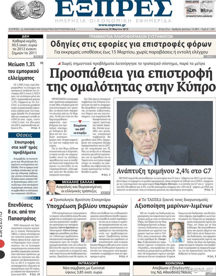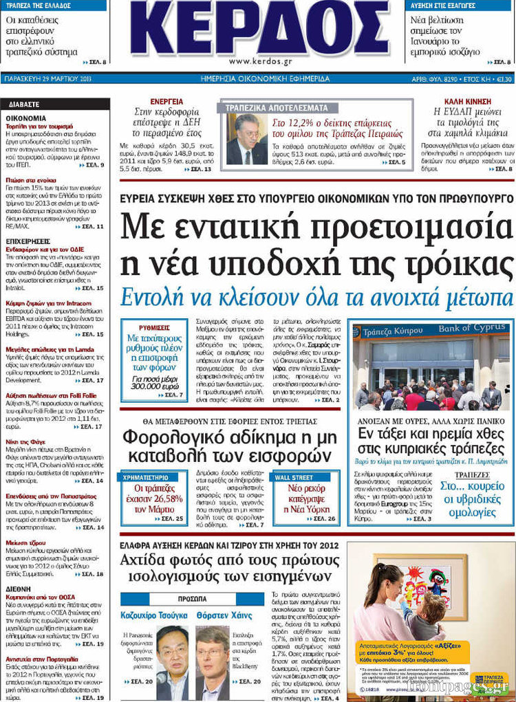 Οι οικονομικές εφημερίδες Enikos Newsroom 08:30, Παρασκευή 29 Μαρτίου 2013 Media Οι οικονομικές εφημερίδες Τα πρωτοσέλιδα των οικονομικών εφημερίδων. ΕΦΗΜΕΡΙΔΕΣ ΟΙΚΟΝΟΜΙΚΕΣ ΕΦΗΜΕΡΙΔΕΣ ΠΡΩΤΟΣΕΛΙΔΑ Μοιράσου το: σχολίασε κι εσύ (0 σχόλια) Ακολουθήστε το enikos.gr στο Google News και μάθετε πρώτοι όλες τις ειδήσεις Δείτε όλες τις τελευταίες ειδήσεις από την Ελλάδα και τον Κόσμο στο enikos.gr Ειδήσεις Ροή Ειδήσεων 51 λεπτά πριν Σίδνεϊ: Τα ονόματα των θυμάτων από την τρομοκρατική επίθεση – Η 10χρονη Ματίλντα και ο επιζών του Ολοκαυτώματος που έσωσε τη γυναίκα του 2 ώρες πριν Η διαδρομή του σκάφους με την τεράστια ποσότητα κοκαΐνης που κατασχέθηκε στο λιμάνι του Πειραιά – Συνελήφθη και γνωστός «βαρώνος» 2 ώρες πριν Κυβέρνηση: Οι κόκκινες γραμμές στη διαπραγμάτευση με τους αγρότες – Τι ζητούν οι εκπρόσωποι των μπλόκων 4 ώρες πριν Σοκ στο Χόλιγουντ: Νεκροί από μαχαιριές ο σκηνοθέτης Ρομπ Ράινερ και η σύζυγός του – Αναφορές ότι τους σκότωσε ο γιος τους 2 ώρες πριν Δείτε LIVE το συνέδριο «Ελληνικός Τουρισμός, Μια Εθνική Υπόθεση!» 11 λεπτά πριν Μακροζωία: 55χρονος που ισχυρίζεται ότι βιολογικά είναι 20 ετών μοιράζεται μια απλή συμβουλή για υγιή εγκέφαλο 2 ώρες πριν Τα 3 ζώδια που μπαίνουν σε μια νέα δυναμική εποχή – «Είστε έτοιμοι για όλα» 1 ώρα πριν Οι 8 φράσεις που δίνουν αμέσως την εντύπωση πως είστε δύσκολος άνθρωπος 3 ώρες πριν Κληρονόμησε 2,8 εκατ. ευρώ και φοβάται ότι οι άνδρες θα την πλησιάζουν για τα λεφτά – «Μήπως καλύτερα να το κρατήσω μυστικό;» 6 λεπτά πριν Απεργία 16ης Δεκεμβρίου: Ποιοι συμμετέχουν – Τι ισχύει για τα Μέσα Μαζικής Μεταφοράς 11 λεπτά πριν Μακροζωία: 55χρονος που ισχυρίζεται ότι βιολογικά είναι 20 ετών μοιράζεται μια απλή συμβουλή για υγιή εγκέφαλο 14 λεπτά πριν Γιατί καθυστερεί η πρεμιέρα του «Survivor» – Το παρασκήνιο 15 λεπτά πριν Συνέδριο «Ελληνικός Τουρισμός 2025, Μια εθνική υπόθεση!» – Χάρης Δούκας: «Η Αθήνα δεν είναι πια εποχικός προορισμός» – Στοίχημα η βιώσιμη διαχείριση του τουρισμού 19 λεπτά πριν Ισπανία: Επιβολή προστίμου 64 εκατομμυρίων ευρώ στην πλατφόρμα Airbnb ENIKOS NETWORK Νέα φάρμακα για την παχυσαρκία: Υπάρχει κίνδυνος καρκίνου; Αρτηριακή πλάκα: Ειδικός στη μακροζωία εξηγεί πώς μπορεί να αντιστραφεί μέσα σε 12 μήνες Συντάξεις Ιανουαρίου 2026: Ποια ταμεία πληρώνουν πρώτα Νέες θέσεις εργασίας σε δήμο: Αρχίζει σήμερα η υποβολή αιτήσεων-Ποιες ειδικότητες αφορά Σύγχρονος Νοστράδαμος: Προειδοποιεί για «μεγάλο γεγονός» τους επόμενους μήνες που θα συγκλονίσει τη Βρετανία και τον κόσμο Τεστ παρατηρητικότητας: Μπορείτε να βρείτε τις 3 διαφορές στις εικόνες με έναν πιγκουίνο σε 14 δευτερόλεπτα περισσότερα 11:59 , Δευτέρα 15 Δεκεμβρίου 2025 Γιατί καθυστερεί η πρεμιέρα του «Survivor» – Το παρασκήνιο Μετατίθεται για αργότερα η πρεμιέρα του «Survivor» στην prime time του ΣΚΑΪ, κλείνοντας τη χρο... 11:58 , Δευτέρα 15 Δεκεμβρίου 2025 Συνέδριο «Ελληνικός Τουρισμός 2025, Μια εθνική υπόθεση!» – Χάρης Δούκας: «Η Αθήνα δεν είναι πια εποχικός προορισμός» – Στοίχημα η βιώσιμη διαχείριση του τουρισμού Στις προκλήσεις που δημιουργεί η ραγδαία αύξηση του τουρισμού σε τοπικό επίπεδο, αναφέρθηκε στ... 11:44 , Δευτέρα 15 Δεκεμβρίου 2025 Συνέδριο «Ελληνικός Τουρισμός 2025, Μια εθνική υπόθεση!» – Νίκος Χαρδαλιάς: Η πολυκεντρική ταυτότητα της Αττικής είναι το απόλυτο στρατηγικό μας πλεονέκτημα «Ο τουρισμός είναι ένας κρίσιμος παράγοντας για την οικονομική ανάπτυξη της χώρας και τη δημιο... 11:43 , Δευτέρα 15 Δεκεμβρίου 2025 Μ