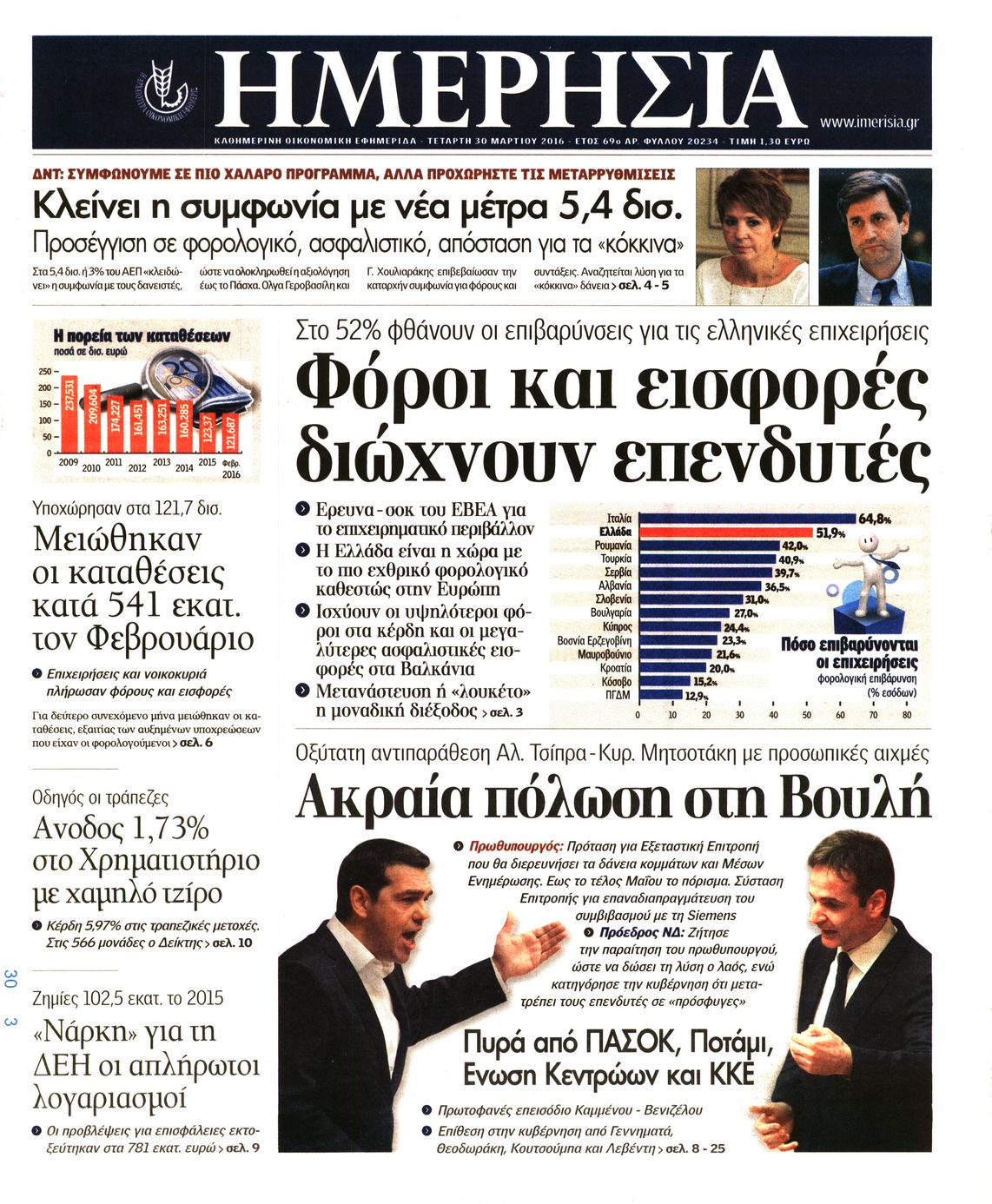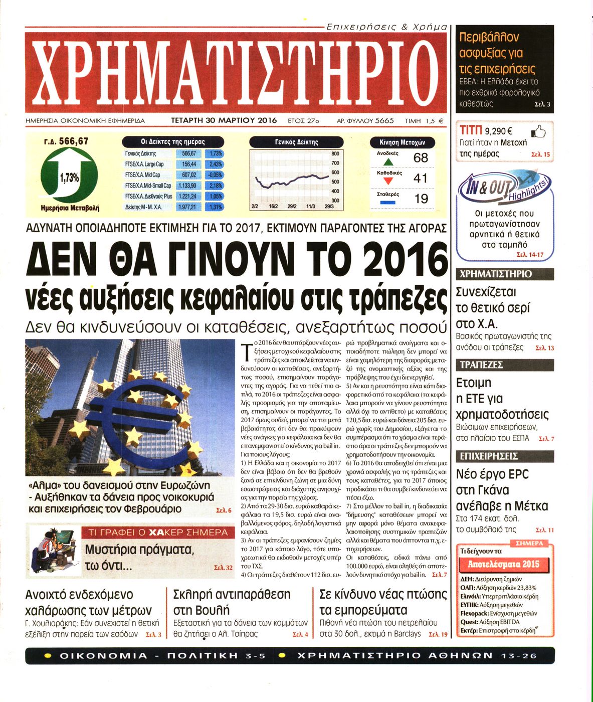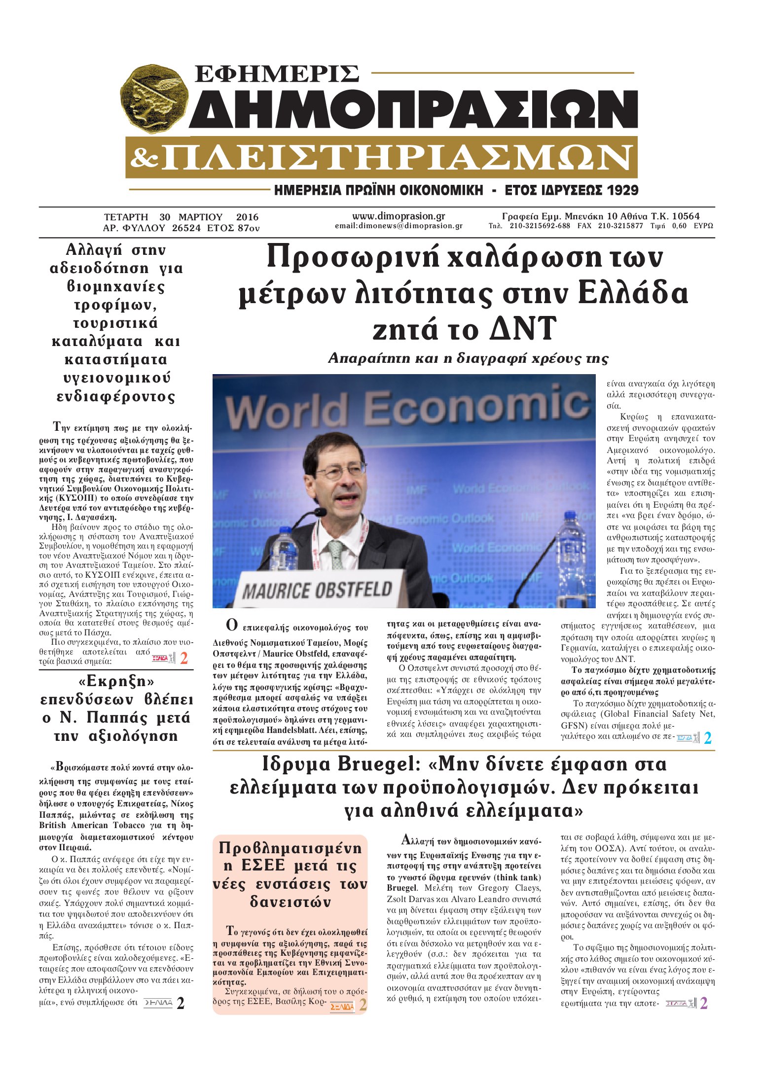 Οι οικονομικές εφημερίδες 30/3/2016 Enikos Newsroom 06:22, Τετάρτη 30 Μαρτίου 2016 Media Διαβάστε τα σημερινά πρωτοσέλιδα των οικονομικών εφημερίδων: ΟΙΚΟΝΟΜΙΚΕΣ ΕΦΗΜΕΡΙΔΕΣ ΠΡΩΤΟΣΕΛΙΔΑ Μοιράσου το: σχολίασε κι εσύ (0 σχόλια) Ακολουθήστε το enikos.gr στο Google News και μάθετε πρώτοι όλες τις ειδήσεις Δείτε όλες τις τελευταίες ειδήσεις από την Ελλάδα και τον Κόσμο στο enikos.gr Ειδήσεις Ροή Ειδήσεων 2 ώρες πριν Πούτιν: «Ανοησίες» και «υστερίες» οι ισχυρισμοί της Ευρώπης για πιθανή σύγκρουση με τη Ρωσία – «Κάνουν πλύση εγκεφάλου» 6 ώρες πριν Έρευνα MRB: Η πρόθεση ψήφου και τα σημαντικότερα προβλήματα – Οι «λέξεις» που εκφράζουν τους πολίτες 3 ώρες πριν Αμοργός: «Θα προσπαθήσω να το κάνω κάθε μέρα» – Ποιος είναι ο αγρότης που έστησε μόνος του το πρώτο μπλόκο στο νησί 48 λεπτά πριν Τραγωδία στην Αλεξανδρούπολη: Παιδάκι 3 ετών μεταφέρθηκε νεκρό από τη μητέρα του στο νοσοκομείο 1 ώρα πριν Συνάντηση Μητσοτάκη με την Κ.Ο. της ΝΔ: Οι αφίξεις των βουλευτών, τα γλυκά και τα «πηγαδάκια» 6 ώρες πριν Τα 4 ζώδια που ξαναβρίσκουν τον εαυτό τους – «Μπαίνετε επιτέλους στην ουσία των πραγμάτων» 7 ώρες πριν 20 χρόνια τα Χριστούγεννα ξεκινούν στα Public με μεγάλη ποικιλία σε δώρα! 5 ώρες πριν «Δεν είχα κλάψει από τότε που διαγνώστηκα με καρκίνο, ώσπου ένα τηλεφώνημα με έκανε να λυγίσω» – Η συγκλονιστική εξομολόγηση ενός άνδρα 4 ώρες πριν Τα 7 σπάνια χαρακτηριστικά που κάνουν κάποιους ανθρώπους ακαταμάχητους 2 λεπτά πριν Νέο επεισόδιο στην Εξεταστική ανάμεσα σε Κωνσταντοπούλου και Συρεγγέλα – Διακόπηκε προσωρινά η συνεδρίαση 9 λεπτά πριν Εξαφάνιση 33χρονου γιατρού στην Κρήτη: Για απάτη κατηγορείται ο ιδιωτικός ερευνητής που συνελήφθη 15 λεπτά πριν Εξεταστική για ΟΠΕΚΕΠΕ-Μυλωνάκης: Διαχρονικές, διακομματικές οι παθογένειες – Τι είπε για Μπουκώρο και Βάρρα 20 λεπτά πριν Παναθηναϊκός: Θέλει τον Κέπα της Άρσεναλ δανεικό για 6 μήνες 26 λεπτά πριν Το Λαϊκό Λαχείο στον ρυθμό των Χριστουγέννων: Μοιράζει μέχρι και 1.000.000 ευρώ στην ειδική κλήρωση της Παρασκευής 19 Δεκεμβρίου ENIKOS NETWORK 5 πράγματα που αποφεύγει γαστρεντερολόγος για να μειώσει τον κίνδυνο καρκίνου του εντέρου Ανησυχητική αύξηση της υπέρτασης στα παιδιά – Πώς θα τα προστατέψουμε; ΕΛΕΤΑΕΝ: Πόσα χρήματα θα δοθούν σε δήμους και νοικοκυριά από τις ΑΠΕ «IRIS Παντού»: Στην κορυφή της Ευρώπης η Ελλάδα με 120 εκατ. ευρώ συναλλαγές το 2025 – Η σύγκριση με τις άλλες χώρες της Ευ... Σύγχρονος Νοστράδαμος: Προειδοποιεί για «μεγάλο γεγονός» τους επόμενους μήνες που θα συγκλονίσει τη Βρετανία και τον κόσμο Τεστ παρατηρητικότητας: Μπορείτε να βρείτε τις 3 διαφορές στις εικόνες με έναν πιγκουίνο σε 14 δευτερόλεπτα περισσότερα 12:35 , Τετάρτη 17 Δεκεμβρίου 2025 Μίρκα Παπακωνσταντίνου: «Δεν ήμουν αισιόδοξη για τα νούμερα – Είμαι ρεαλίστρια» Στα γυρίσματα του εορταστικού επεισοδίου της αγαπημένης σειράς “Το Σόι Σου”, βρέθηκε η κάμερα ... 12:12 , Τετάρτη 17 Δεκεμβρίου 2025 Ακούστε την εκπομπή του Νίκου Χατζηνικολάου 17/12/2025 Ακούστε την εκπομπή του Νίκου Χατζηνικολάου στον ραδιοφωνικό σταθμό RealFm 97,8, την Τετάρτη 1... 11:35 , Τετάρτη 17 Δεκεμβρίου 2025 Home Alone: Το σπίτι της ταινίας θα ανακαινιστεί – Επιστροφή στην αισθητική της δεκαετίας του ’90 Οι νέοι ιδιοκτήτες του πραγματικού σπιτιού που παρουσιάζεται στην κλασική ταινία του 1990 «Hom... 11:25 , Τετάρτη 17 Δεκεμβρίου 2025 Grand Hotel: Απόψε το τελευταίο επεισόδιο της χρονιάς – Όλα τα μυστικά μένουν εδώ Το τελευταίο επεισόδιο της χρονιάς της σειράς «Grand Hotel» 