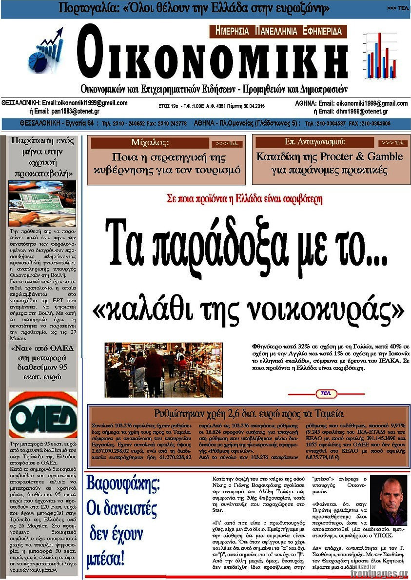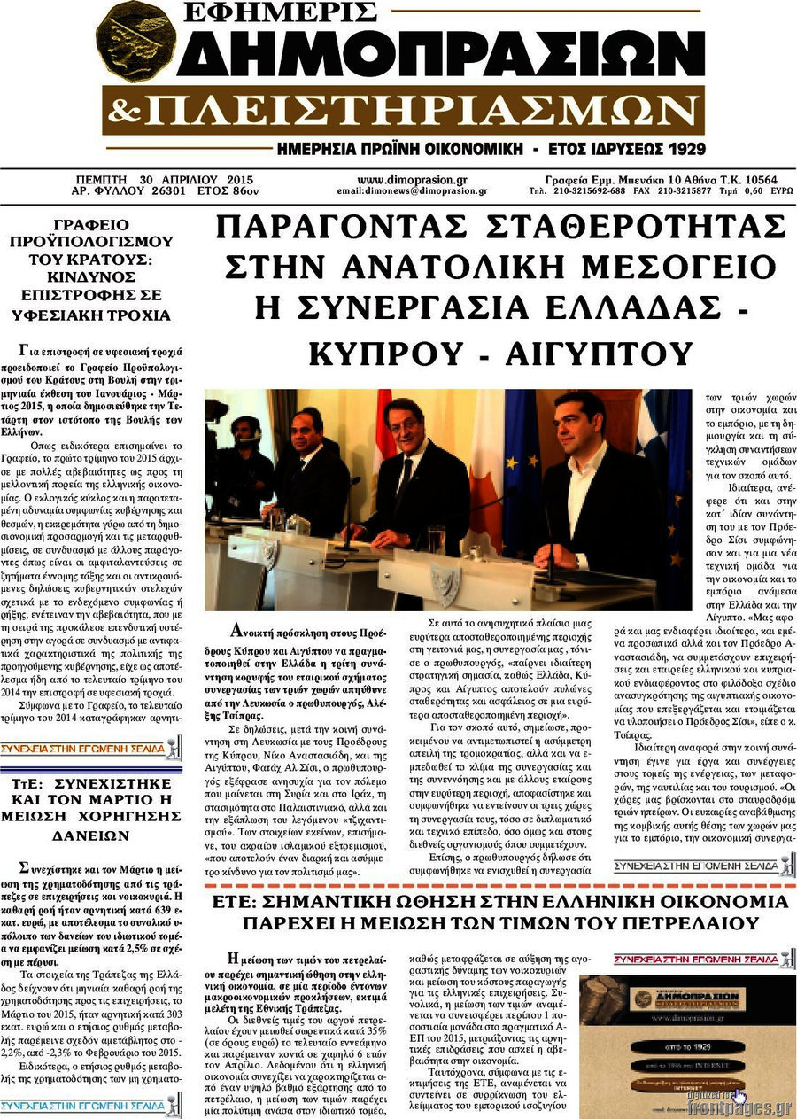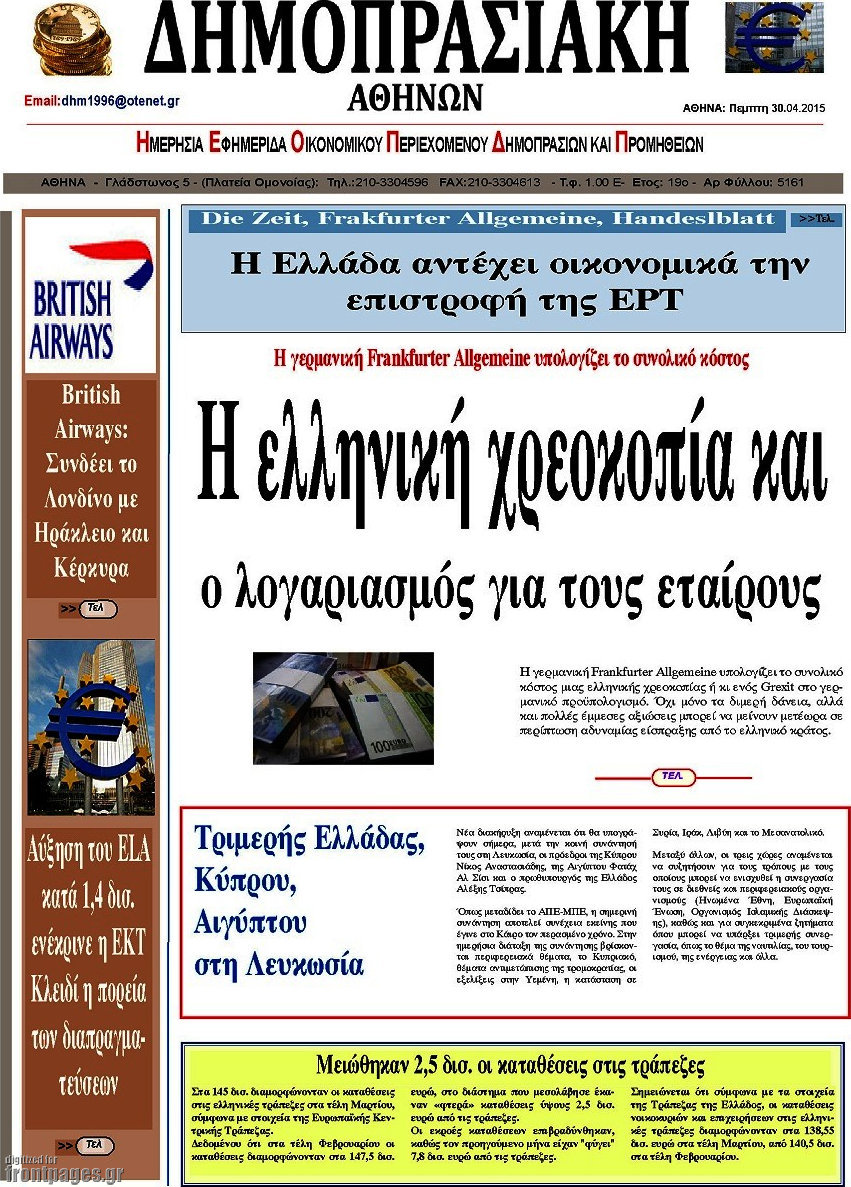 Οι οικονομικές εφημερίδες 30/4/2015 Enikos Newsroom 07:22, Πέμπτη 30 Απριλίου 2015 Media Διαβάστε τα σημερινά πρωτοσέλιδα των οικονομικών εφημερίδων: ΟΙΚΟΝΟΜΙΚΕΣ ΕΦΗΜΕΡΙΔΕΣ ΠΡΩΤΟΣΕΛΙΔΑ Μοιράσου το: σχολίασε κι εσύ (0 σχόλια) Ακολουθήστε το enikos.gr στο Google News και μάθετε πρώτοι όλες τις ειδήσεις Δείτε όλες τις τελευταίες ειδήσεις από την Ελλάδα και τον Κόσμο στο enikos.gr Ειδήσεις Ροή Ειδήσεων 51 λεπτά πριν Πώς στήθηκε η επιχείρηση «Ίπαλλος» που οδήγησε στη σύλληψη του «Έλληνα Εσκομπάρ» – «Ο πόλεμος ενάντια στους εμπόρους ναρκωτικών θα συνεχιστεί» 36 λεπτά πριν Δίκη Χρυσής Αυγής: Την ενοχή και των 42 κατηγορουμένων ζητά η εισαγγελέας 56 λεπτά πριν Κυψέλη: Στη φυλακή η 16χρονη που μαχαίρωσε συμμαθήτριά της 4 ώρες πριν Αμοργός: «Θα προσπαθήσω να το κάνω κάθε μέρα» – Ποιος είναι ο αγρότης που έστησε μόνος του το πρώτο μπλόκο στο νησί 2 ώρες πριν Τραγωδία στην Αλεξανδρούπολη: Παιδάκι 3 ετών μεταφέρθηκε νεκρό από τη μητέρα του στο νοσοκομείο 1 ώρα πριν Τα 3 ζώδια που θα δουν τη ζωή τους να αλλάζει ριζικά το 2026 – «Όλα γίνονται καλύτερα σταδιακά» 6 ώρες πριν «Δεν είχα κλάψει από τότε που διαγνώστηκα με καρκίνο, ώσπου ένα τηλεφώνημα με έκανε να λυγίσω» – Η συγκλονιστική εξομολόγηση ενός άνδρα 2 ώρες πριν Ο σπάνιος σεισμός που έλυσε τα χέρια των επιστημόνων – Αποκάλυψε ακριβώς όσα αναζητούσαν 8 ώρες πριν 20 χρόνια τα Χριστούγεννα ξεκινούν στα Public με μεγάλη ποικιλία σε δώρα! 57 δευτερόλεπτα πριν Νίκος Παππάς: Δημοσιογράφος καταγγέλλει τον ευρωβουλευτή του ΣΥΡΙΖΑ για επίθεση 7 λεπτά πριν ΥΠΕΞ σε Μίτσκοσκι: «Κάθε προσπάθεια αλλοίωσης της Συμφωνίας των Πρεσπών δεν πρόκειται να γίνει αποδεκτή» 11 λεπτά πριν Θεσσαλονίκη: Επίθεση αδέσποτου σκύλου σε κάτοικο στον Χορτιάτη – Διακομίστηκε στο νοσοκομείο 23 λεπτά πριν Θεσσαλονίκη: Ακυρώνονται τρεις παραστάσεις του ΚΘΒΕ λόγω στάσης εργασίας των εργαζομένων 30 λεπτά πριν Τραγωδία στην Αχαΐα: 48χρονος κατέρρευσε στο κυνήγι μπροστά στα μάτια του πατέρα του ENIKOS NETWORK Γιατί αναζητούμε τα Χριστούγεννα όλο και νωρίτερα; Ποιοι οι ψυχολογικοί και οι συναισθηματικοί λόγοι Σοβαροί κίνδυνοι από τη λάθος χορήγηση φαρμάκου για τις αιμορραγίες-Συστάσεις προς τους γιατρούς Επίδομα παιδιού: Πότε θα δοθεί η τελευταία δόση για το 2025 από τον ΟΠΕΚΑ και τι πρέπει να γνωρίζετε Eurostat: Κάτω από την αρχική εκτίμηση της Υπηρεσίας ο πληθωρισμός στην Ελλάδα τον Νοέμβριο του 2025 – Tα στοιχεία για την ... Χαρτογραφώντας το «σημείο χωρίς επιστροφή»: Για πρώτη φορά αποκαλύπτεται με λεπτομέρεια το ακανθώδες όριο της ατμόσφαιρας τ... Η Google καταργεί τη λειτουργία «dark web report» – Πώς θα μπορούν οι χρήστες να διαγράφουν τα δεδομένα τους περισσότερα 12:35 , Τετάρτη 17 Δεκεμβρίου 2025 Μίρκα Παπακωνσταντίνου: «Δεν ήμουν αισιόδοξη για τα νούμερα – Είμαι ρεαλίστρια» Στα γυρίσματα του εορταστικού επεισοδίου της αγαπημένης σειράς “Το Σόι Σου”, βρέθηκε η κάμερα ... 12:12 , Τετάρτη 17 Δεκεμβρίου 2025 Ακούστε την εκπομπή του Νίκου Χατζηνικολάου 17/12/2025 Ακούστε την εκπομπή του Νίκου Χατζηνικολάου στον ραδιοφωνικό σταθμό RealFm 97,8, την Τετάρτη 1... 11:35 , Τετάρτη 17 Δεκεμβρίου 2025 Home Alone: Το σπίτι της ταινίας θα ανακαινιστεί – Επιστροφή στην αισθητική της δεκαετίας του ’90 Οι νέοι ιδιοκτήτες του πραγματικού σπιτιού που παρουσιάζεται στην κλασική ταινία του 1990 «Hom... 11:25 , Τετάρτη 17 Δεκεμβρίου 2025 Grand Hotel: Απόψε το τελευταίο επεισόδιο της χρονιάς – Όλα τα μυστικά μένουν εδώ Το τελευταίο επεισόδιο της χρονιάς της σειρ