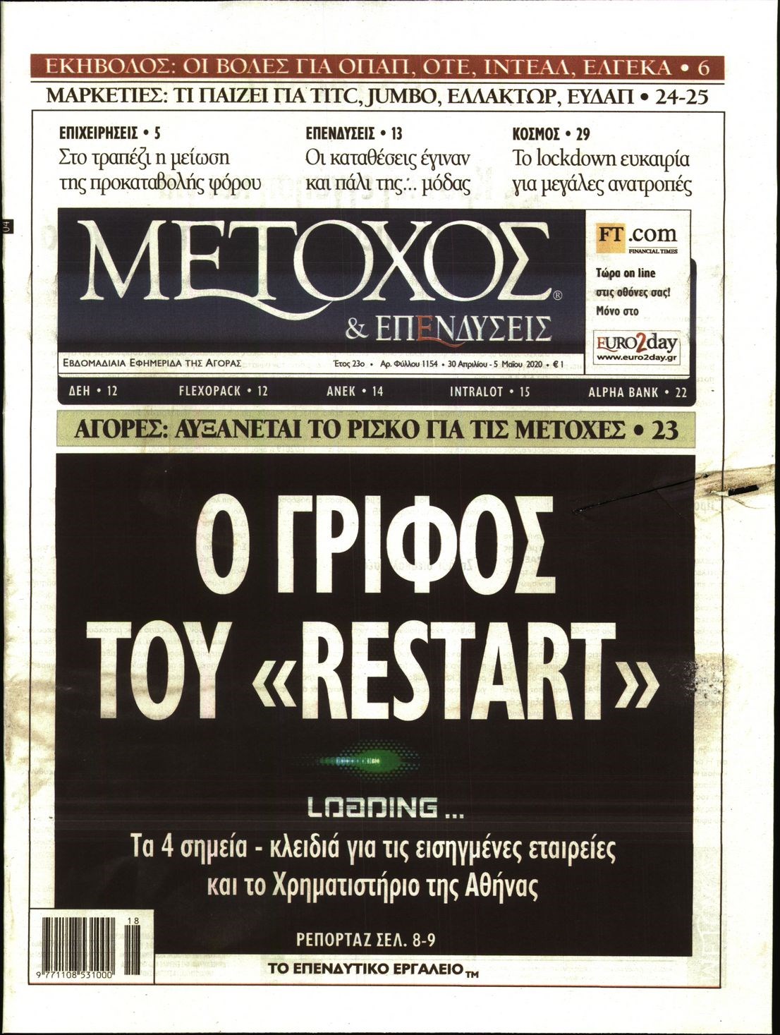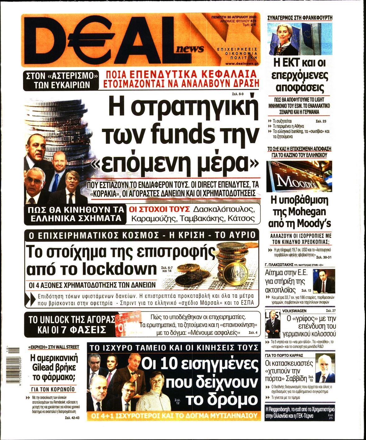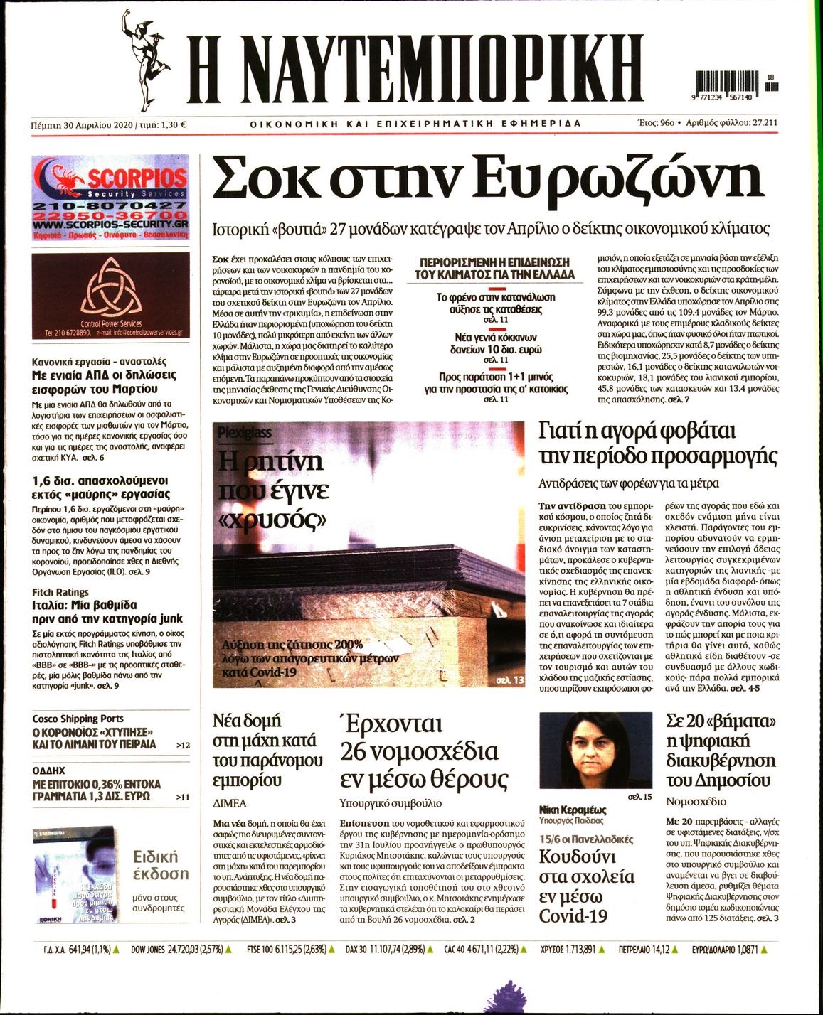 Οι οικονομικές εφημερίδες 30/4/2020 Διονύσης Νίκκας 06:46, Πέμπτη 30 Απριλίου 2020 Media Διαβάστε τα πρωτοσέλιδα των οικονομικών εφημερίδων… ΟΙΚΟΝΟΜΙΚΕΣ ΕΦΗΜΕΡΙΔΕΣ ΠΡΩΤΟΣΕΛΙΔΑ Μοιράσου το: σχολίασε κι εσύ (0 σχόλια) Ακολουθήστε το enikos.gr στο Google News και μάθετε πρώτοι όλες τις ειδήσεις Δείτε όλες τις τελευταίες ειδήσεις από την Ελλάδα και τον Κόσμο στο enikos.gr Ειδήσεις Ροή Ειδήσεων 5 ώρες πριν Χριστούγεννα στα μπλόκα: Επιμένουν στις κινητοποιήσεις τους οι αγρότες – Ανοίγουν τα διόδια το Σαββατοκύριακο 6 ώρες πριν Ουκρανία: Η άνευ προηγουμένου επίθεση σε ρωσικό τάνκερ στη Μεσόγειο και το μήνυμα προς στον Πούτιν – Το «μακρύ χέρι» του Κιέβου 5 ώρες πριν Πούτιν: Τα μηνύματα σε Ευρώπη και ΝΑΤΟ από το μαραθώνιο «σόου» του – Η απαίτηση για «σεβασμό» και η ειρήνη «με τους όρους» της Μόσχας 6 ώρες πριν Τραμπ: Δεν αποκλείει την πιθανότητα ενός πολέμου στη Βενεζουέλα – «Ο Μαδούρο ξέρει καλύτερα από τον καθένα τι ακριβώς θέλω» 7 ώρες πριν Συνεχίζει να προκαλεί ο Μίτσκοσκι: «Για μένα το όνομα Μακεδονία είναι ιερό» 5 ώρες πριν Ανακαλύφθηκαν αρχαία χρυσά νομίσματα 2.200 ετών που απεικονίζουν τον θεό Απόλλωνα – Η άγνωστη σύνδεση με τον Φίλιππο Β΄ της Μακεδονίας 6 ώρες πριν Ύπνος: Μια κρυφή κατάσταση του εγκεφάλου πριν από τον ύπνο μπορεί να είναι το “κλειδί” για υψηλή ευφυΐα και δημιουργικότητα 7 ώρες πριν Αριθμολογία: Οι άνθρωποι που έχουν γεννηθεί αυτές τις 4 ημερομηνίες, συχνά παρεξηγούνται – «Η καλοσύνη τους κρύβει τεράστια δύναμη» 8 ώρες πριν Ξεχάστε το καθάρισμα το Σαββατοκύριακο: Ο «κανόνας των 20 λεπτών» που θα σας λύσει τα χέρια 1 λεπτό πριν Βολιβία: Μαζική διαδηλώσεις εναντίον της κατάργησης των επιδοτήσεων των τιμών των καυσίμων 17 λεπτά πριν Φως στο Τούνελ: Έφτασε η ώρα της αλήθειας για την δολοφονία της χήρας του πρώην υπουργού στο Κολωνάκι 32 λεπτά πριν Ντόναλντ Τραμπ: Προστέθηκε το όνομά του στην πρόσοψη του Κέντρου Κένεντι – Οργισμένη αντίδραση των συγγενών του JFK 47 λεπτά πριν Ταμίλα Κουλίεβα: «Δεν θέλω να είμαι κάποια που πορεύεται συνεχώς με τις ίδιες αναφορές» 1 ώρα πριν Η Ελλάδα προσχωρεί στη Διεθνή Επιτροπή Αποζημιώσεων για την Ουκρανία ENIKOS NETWORK Το ΕΚΑΒ τιμήθηκε από την Ακαδημία Αθηνών για τα 40 χρόνια προσφοράς του Έχετε πραγματικά μεγάλη καρδιά; 10 χαρακτηριστικά όσων έχουν καλοσύνη Αναστολή μέτρων αναγκαστικής εκτέλεσης για κτηνοτρόφους που πλήττονται από την ευλογιά των αιγοπροβάτων Πλήρης επάρκεια προϊόντων στις λαϊκές της Αττικής, παρά τις αγροτικές κινητοποιήσεις – Τι απαντούν οι πωλητές Χαρτογραφώντας το «σημείο χωρίς επιστροφή»: Για πρώτη φορά αποκαλύπτεται με λεπτομέρεια το ακανθώδες όριο της ατμόσφαιρας τ... Η Google καταργεί τη λειτουργία «dark web report» – Πώς θα μπορούν οι χρήστες να διαγράφουν τα δεδομένα τους περισσότερα 02:50 , Σάββατο 20 Δεκεμβρίου 2025 GNTM: Η Ξένια Τσίρκοβα αναδείχθηκε μεγάλη νικήτρια και πήρε τις 50.000 ευρώ – Ποιος βρέθηκε σε απόσταση αναπνοής; Με φαντασμαγορικό τρόπο ολοκληρώθηκε το βράδυ της Παρασκευής ο μεγάλος τελικός του GNTM, μέσα ... 22:42 , Παρασκευή 19 Δεκεμβρίου 2025 Γιώργος Γιαννόπουλος για “Το σόι σου”: “Είναι ευτυχία και ευλογία αυτή η σειρά” «Είναι ευτυχία και ευλογία η συγκυρία αυτής της σειράς», θα πει ο Γιώργος Γιαννόπουλος -ο αγαπ... 20:37 , Παρασκευή 19 Δεκεμβρίου 2025 Don’t Forget The Lyrics: Η Έλλη Κοκκίνου υποδέχεται 4 παίκτες που θα κάνουν τα πάντα για να μη χάσουν ούτε… μισή λέξη από τους στίχους Το «Don’t Forget The Lyrics» επιστρέφει α