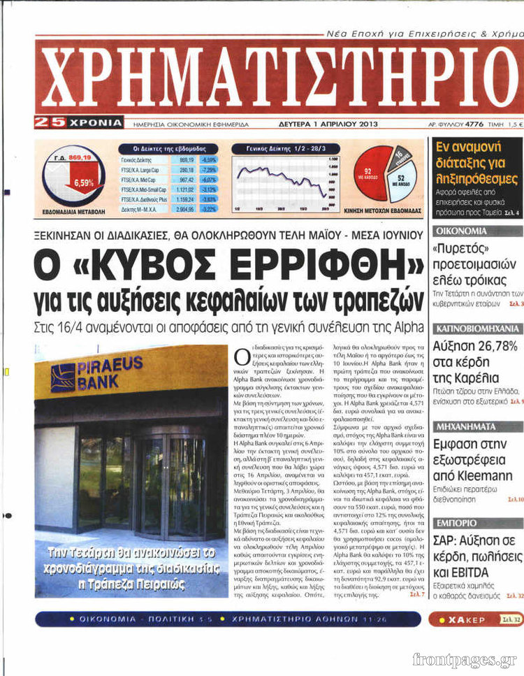 Οι οικονομικές εφημερίδες Enikos Newsroom 09:31, Δευτέρα 01 Απριλίου 2013 Media Οι οικονομικές εφημερίδες Τα πρωτοσέλιδα των οικονομικών εφημερίδων. ΕΦΗΜΕΡΙΔΕΣ ΟΙΚΟΝΟΜΙΚΕΣ ΕΦΗΜΕΡΙΔΕΣ ΠΡΩΤΟΣΕΛΙΔΑ Μοιράσου το: σχολίασε κι εσύ (0 σχόλια) Ακολουθήστε το enikos.gr στο Google News και μάθετε πρώτοι όλες τις ειδήσεις Δείτε όλες τις τελευταίες ειδήσεις από την Ελλάδα και τον Κόσμο στο enikos.gr Ειδήσεις Ροή Ειδήσεων 54 λεπτά πριν Κυψέλη: Επεισόδιο με μαχαίρωμα μέσα σε σχολείο – Τραυματίστηκε 14χρονη 2 ώρες πριν Βουλή: Κατατέθηκε το νομοσχέδιο για την αναδιάρθρωση των Ενόπλων Δυνάμεων – Όλα όσα προβλέπει 1 ώρα πριν Παύλος Μαρινάκης: Στις 15:00 οι ανακοινώσεις Τσιάρα για τα αιτήματα των αγροτών – «Δεν γίνεται διάλογος με ταχυδρομικά περιστέρια» 3 ώρες πριν Σίδνεϊ: Τα ονόματα των θυμάτων από την τρομοκρατική επίθεση – Η 10χρονη Ματίλντα και ο επιζών του Ολοκαυτώματος που έσωσε τη γυναίκα του 4 ώρες πριν Δείτε LIVE το συνέδριο «Ελληνικός Τουρισμός, Μια Εθνική Υπόθεση!» 3 ώρες πριν Μακροζωία: 55χρονος που ισχυρίζεται ότι βιολογικά είναι 20 ετών μοιράζεται μια απλή συμβουλή για υγιή εγκέφαλο 5 ώρες πριν Τα 3 ζώδια που μπαίνουν σε μια νέα δυναμική εποχή – «Είστε έτοιμοι για όλα» 4 ώρες πριν Οι 8 φράσεις που δίνουν αμέσως την εντύπωση πως είστε δύσκολος άνθρωπος 6 ώρες πριν Κληρονόμησε 2,8 εκατ. ευρώ και φοβάται ότι οι άνδρες θα την πλησιάζουν για τα λεφτά – «Μήπως καλύτερα να το κρατήσω μυστικό;» 7 λεπτά πριν Βελόπουλος: Προσυπογράφουμε ένα προς ένα τα αιτήματα των αγροτών – Σηκωθείτε, αγωνιστείτε, νικήστε 8 λεπτά πριν Βουλή: Κόντρα Λαζαρίδη – Δουδωνή για τις κουμπαριές 12 λεπτά πριν Τρίκαλα: Αγρότες απέκλεισαν συμβολικά για δύο ώρες γέφυρα στον Πηνειό 17 λεπτά πριν Να μ’ αγαπάς: Η Φωτεινή αποφασίζει να δώσει τέλος στη ζωή της 17 λεπτά πριν Χριστουγεννιάτικο Bazaar αγάπης και προσφοράς από το σωματείο ΕΛΠΙΔΑ ENIKOS NETWORK ΠΟΕΔΗΝ: Ανανέωση των συμβάσεων του ειδικού προγράμματος ΔΥΠΑ 55 ετών και άνω σε δομές Υγείας Γιατί τρώμε χωρίς να πεινάμε; Τα τρόφιμα που ανοίγουν την όρεξη ειδικά στους πιο νέους Πανελλαδικές Εξετάσεις 2026: Αυτό είναι το νέο ηλικιακό όριο εισαγωγής στις Σχολές της Αστυνομίας Ισπανία: Γιατί επιβάλλει η χώρα τσουχτερό πρόστιμο στην πλατφόρμα Airbnb Σύγχρονος Νοστράδαμος: Προειδοποιεί για «μεγάλο γεγονός» τους επόμενους μήνες που θα συγκλονίσει τη Βρετανία και τον κόσμο Τεστ παρατηρητικότητας: Μπορείτε να βρείτε τις 3 διαφορές στις εικόνες με έναν πιγκουίνο σε 14 δευτερόλεπτα περισσότερα 14:27 , Δευτέρα 15 Δεκεμβρίου 2025 Να μ’ αγαπάς: Η Φωτεινή αποφασίζει να δώσει τέλος στη ζωή της Η Φωτεινή βεβαιώνεται πως είναι έγκυος στο νέο επεισόδιο της σειράς “Να μ’ αγαπάς&... 14:08 , Δευτέρα 15 Δεκεμβρίου 2025 Grand Hotel: Η Μελίνα προσπαθεί να παρασύρει τον Χαραλάμπη και να τον μπλέξει στο σχέδιό της Ανατρεπτικό νέο επεισόδιο της σειράς “Grand Hotel” έρχεται απόψε στις 21:00 στον Α... 14:02 , Δευτέρα 15 Δεκεμβρίου 2025 Συνέδριο «Ελληνικός Τουρισμός 2025, Μια εθνική υπόθεση!» – Βιώσιμη τουριστική ανάπτυξη και ανθεκτικότητα Το ετήσιο συνέδριο «Ελληνικός Τουρισμός 2025, Μια εθνική υπόθεση!» συνδιοργανώνουν η Next is N... 13:38 , Δευτέρα 15 Δεκεμβρίου 2025 Porto Leone: Στη γειτονιά με τα κόκκινα φανάρια – Στο τμήμα Γαλήνη και Γρηγόρης, ο Ντίνος Βούλγαρης σε σοκ Συγκλονιστική η συνέχεια της μεγάλης δραματικής σειράς του Apha «Porto Leone: Στη γειτονιά με ... ΤΕΛΕΥΤΑΙΕΣ ΕΙΔΗΣΕΙΣ 7 λεπτά πριν Βελόπουλος: Προσυπογράφουμε ένα προς ένα τα αιτήματα... 8 λεπτά πρι