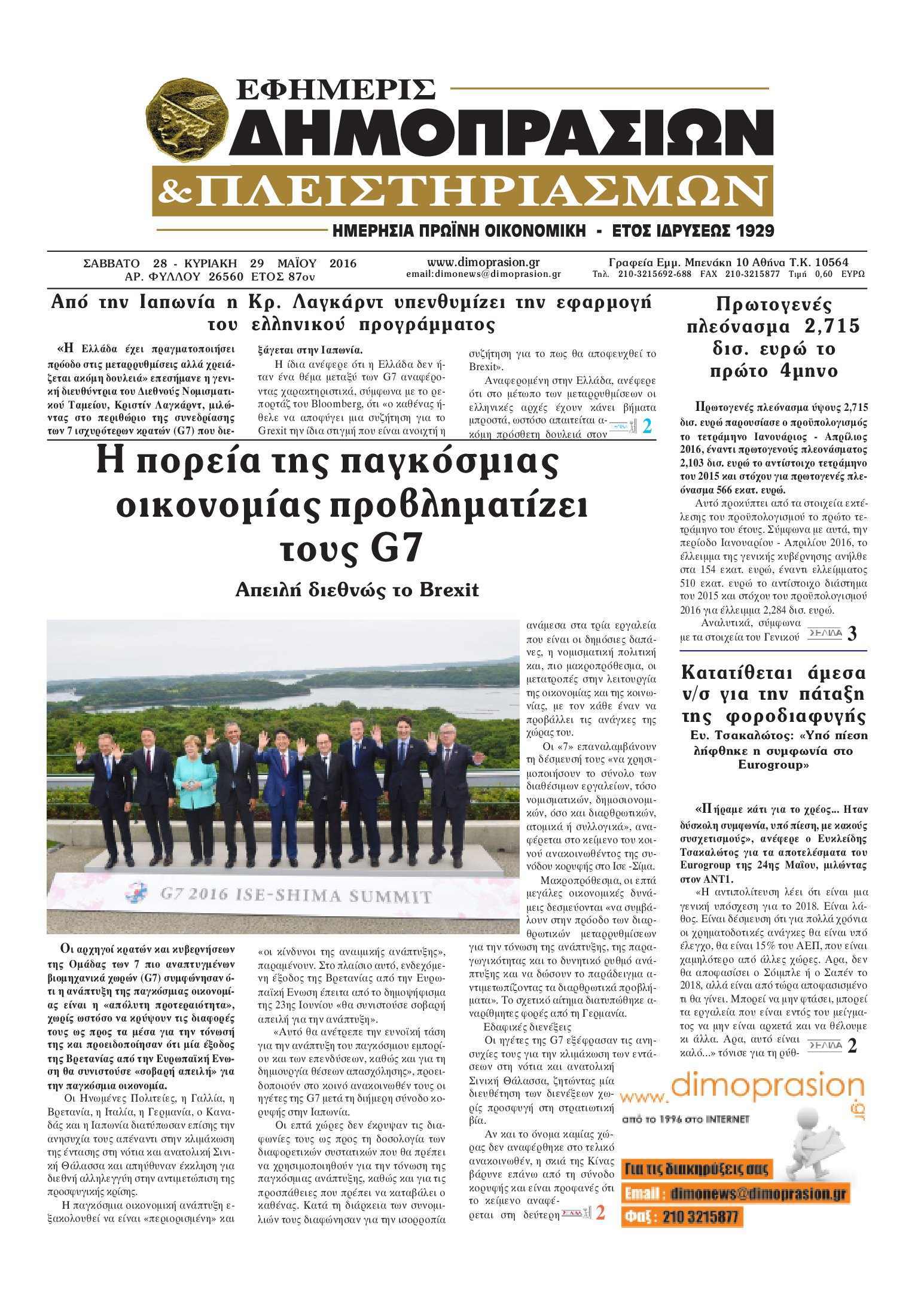 Οι οικονομικές εφημερίδες 30/5/2016 Enikos Newsroom 05:14, Δευτέρα 30 Μαΐου 2016 Media Διαβάστε τα σημερινά πρωτοσέλιδα των οικονομικών εφημερίδων: ΟΙΚΟΝΟΜΙΚΕΣ ΕΦΗΜΕΡΙΔΕΣ ΠΡΩΤΟΣΕΛΙΔΑ Μοιράσου το: σχολίασε κι εσύ (0 σχόλια) Ακολουθήστε το enikos.gr στο Google News και μάθετε πρώτοι όλες τις ειδήσεις Δείτε όλες τις τελευταίες ειδήσεις από την Ελλάδα και τον Κόσμο στο enikos.gr Ειδήσεις Ροή Ειδήσεων 2 ώρες πριν Αυξάνουν την πίεση προς την κυβέρνηση οι αγρότες: Κλείνουν παρακαμπτήριους και ανοίγουν διόδια – Τι θα γίνει τις γιορτές 60 λεπτά πριν ΟΠΕΚΕΠΕ: Προφυλακιστέος ο φερόμενος αρχηγός και ο λογιστής της εγκληματικής οργάνωσης 2 ώρες πριν Φοινικούντα: Το Σάββατο απολογείται ο 30χρονος γιος γνωστού επιχειρηματία της Πλάκας που παραδόθηκε – Όσα είπε στους αστυνομικούς και ο ρόλος του στο έγκλημα 2 ώρες πριν Μπορεί ο Μαδούρο να αντέξει τον αποκλεισμό του Τραμπ; Τι θα χρειαστεί η Ουάσινγκτον για να τον ανατρέψει 3 ώρες πριν Πρίγκιπας Ουίλιαμ – Κέιτ: Η νέα οικογενειακή φωτογραφία για τις Χριστουγεννιάτικες κάρτες του 2025 3 ώρες πριν Ύπνος: Η απλή βραδινή ρουτίνα για να προστατεύσετε τα μαλλιά σας από το κρύο κατά τη διάρκεια του χειμώνα 4 ώρες πριν Manifesting: Πώς να συναντήσετε τον σύντροφο της ζωής σας, ανάλογα με τον μήνα γέννησής σας 2 ημέρες πριν 20 χρόνια τα Χριστούγεννα ξεκινούν στα Public με μεγάλη ποικιλία σε δώρα! 2 ώρες πριν Αρχαιολόγοι ανακάλυψαν ρωμαϊκά τεχνουργήματα από μια πόλη που δεν υπήρξε ποτέ – Τα τρία εντυπωσιακά κτίρια και ο αμφορέας με τις… σαρδέλες 15 λεπτά πριν Βαθμολογία UEFA: Η Πολωνία προσπέρασε την Ελλάδα 31 λεπτά πριν Conference League: Οι ομάδες που προκρίθηκαν στους «16» και τα «ζευγαρώματα» στα νοκ άουτ 40 λεπτά πριν ΑΕΚ – Κραϊόβα 3-2: Επική ανατροπή και πρόκριση στους «16» του Conference League η Ένωση 60 λεπτά πριν ΟΠΕΚΕΠΕ: Προφυλακιστέος ο φερόμενος αρχηγός και ο λογιστής της εγκληματικής οργάνωσης 1 ώρα πριν Αθηνά Μαξίμου: Η τρυφερή ανάρτηση για τα γενέθλια του Αιμίλιου Χειλάκη – «Είναι η εκλεκτική συγγένειά μου, η επιλογή και η ευθύνη μου» ENIKOS NETWORK Σε περίοδο αυξημένης δραστηριότητας η γρίπη στην Ελλάδα-Μέτρα προστασίας από τον ΕΟΔΥ Σκέφτεστε συνέχεια συζητήσεις που έχετε κάνει; Τι σημαίνει αυτό, σύμφωνα με ειδικό Στεγαστικό: Τι λέει η ΠΟΜΙΔΑ για τα νέα μέτρα που ανακοίνωσε ο Κυριάκος Μητσοτάκης Λαγκάρντ: Αισιόδοξη για την ανάπτυξη της Ευρωζώνης, αβέβαιη για τον πληθωρισμό Χαρτογραφώντας το «σημείο χωρίς επιστροφή»: Για πρώτη φορά αποκαλύπτεται με λεπτομέρεια το ακανθώδες όριο της ατμόσφαιρας τ... Η Google καταργεί τη λειτουργία «dark web report» – Πώς θα μπορούν οι χρήστες να διαγράφουν τα δεδομένα τους περισσότερα 17:45 , Πέμπτη 18 Δεκεμβρίου 2025 ROUK ZOUK: Εορταστικό επεισόδιο με καλεσμένους τους πρωταγωνιστές του «Γιατί ρε πατέρα» Το Σάββατο 20 Δεκεμβρίου στις 21:00, η Ζέτα Μακρυπούλια υποδέχεται εκλεκτούς ηθοποιούς που όλο... 17:20 , Πέμπτη 18 Δεκεμβρίου 2025 Άγιος έρωτας: Η Χριστίνα εξομολογείται στον πατέρα Νικόλαο, απόψε στις 21:00 στον Alpha Η Νότα αποφασίζει να εκδικηθεί τον Πέτρο και τον Στέφανο, για χάρη του Λούη, όμως τα πράγματα ... 16:50 , Πέμπτη 18 Δεκεμβρίου 2025 Να μ’ αγαπάς: Ζωή και Φωτεινή συμφιλιώνονται ως μάνα με κόρη, απόψε στις 20:00 Η ταυτότητα του Άγγελου αποκαλύπτεται στο νέο επεισόδιο της σειράς “Να μ’ αγαπάς... 15:52 , Πέμπτη 18 Δεκεμβρίου 2025 Το Σπίτι Δίπλα Στο Ποτάμι: Το καθηλωτικό τελευταίο επεισόδιο για το 2025 απόψε στις 22:30 Καθηλώνει το σημερινό επεισόδιο της σειράς “Το Σπίτι Δίπλα Στο Πο