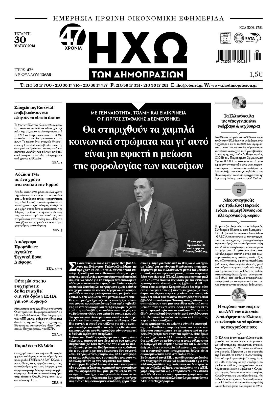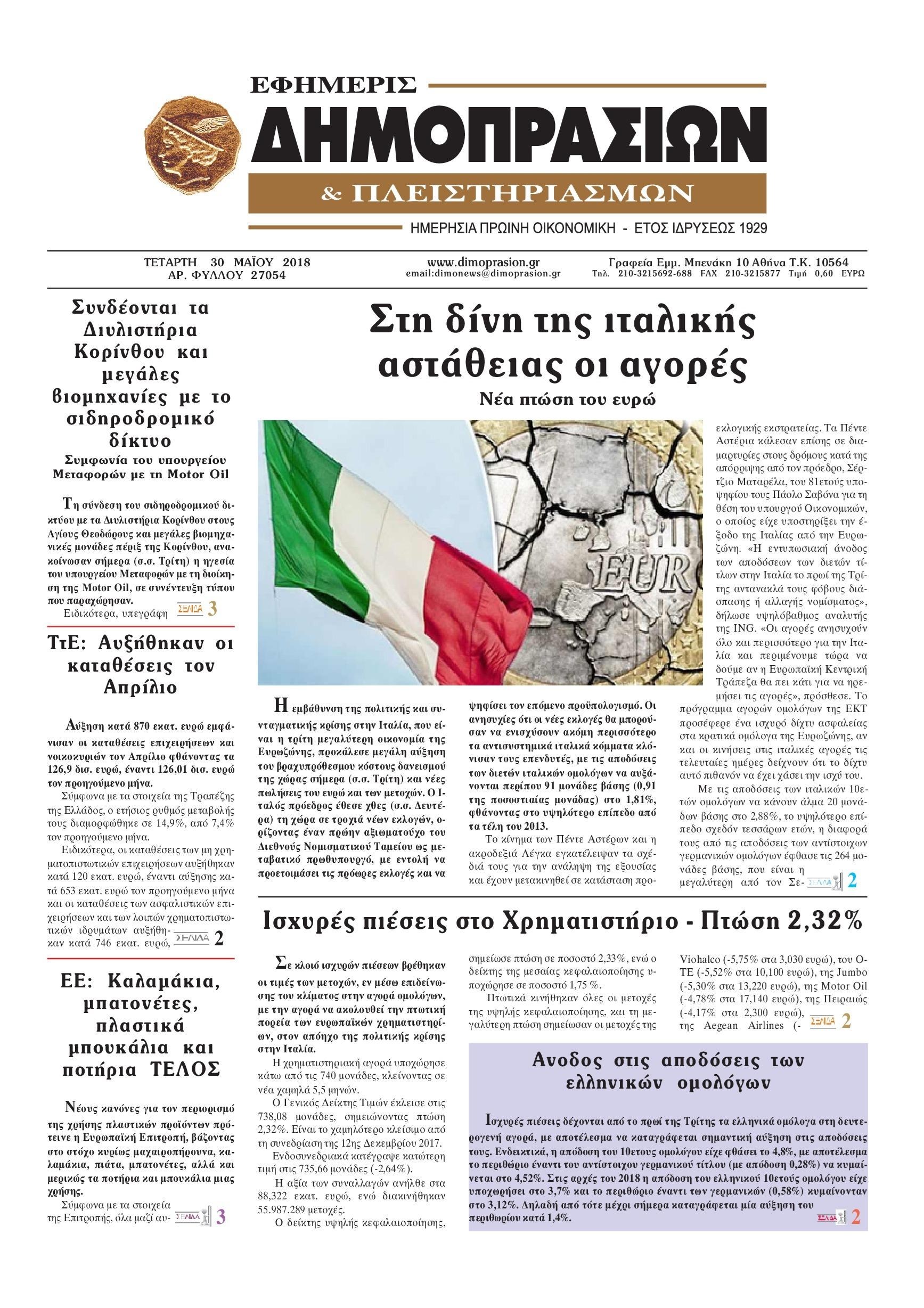 Οι οικονομικές εφημερίδες 30/5/2018 Κώστας Τεό 05:56, Τετάρτη 30 Μαΐου 2018 Media Διαβάστε τα σημερινά πρωτοσέλιδα των οικονομικών εφημερίδων: ΟΙΚΟΝΟΜΙΚΕΣ ΕΦΗΜΕΡΙΔΕΣ ΠΡΩΤΟΣΕΛΙΔΑ Μοιράσου το: σχολίασε κι εσύ (0 σχόλια) Ακολουθήστε το enikos.gr στο Google News και μάθετε πρώτοι όλες τις ειδήσεις Δείτε όλες τις τελευταίες ειδήσεις από την Ελλάδα και τον Κόσμο στο enikos.gr Ειδήσεις Ροή Ειδήσεων 3 ώρες πριν Αγρότες: «Όχι στον διάλογο, μας εμπαίζει η κυβέρνηση» – Αποφάσισαν κλιμάκωση των κινητοποιήσεων, τι θα γίνει τα Χριστούγεννα 3 ώρες πριν Την πρώτη Belharra παρέλαβε η χώρα μας, υψώθηκε η ελληνική σημαία στη φρεγάτα «Κίμων» – Δένδιας: «Το ισχυρότερο Πολεμικό Ναυτικό που είχε ποτέ ο ελληνισμός» 1 ώρα πριν Γιώργος Μαζωνάκης: «Έχει υποστεί ένα σωρό εκβιαστικές πρακτικές – Του είπαν ότι θα του βάλουν τον συγκεκριμένο άνθρωπο να τον καταγγείλει» 3 ώρες πριν Μιχάλης Χουρδάκης: «Είμαι διαθέσιμος να συμβάλω στην προσωρινή κάλυψη του ιατρείου της Ψερίμου» – Η επιστολή στον Άδωνι Γεωργιάδη 3 ώρες πριν Εξώδικο Γεωργιάδη στην Κωνσταντοπούλου – «Με κατηγόρησε ότι έχω καταδικαστεί για παιδεραστία» 45 λεπτά πριν Γάμος: 11 ψυχρές αλλά ευγενικές φράσεις, που λέει ένας άνδρας όταν σκέφτεται τον χωρισμό 4 ώρες πριν Τα 5 ζώδια που θα ευνοηθούν στα οικονομικά τους το 2026 – «Τραβούν το χρήμα σαν μαγνήτες» 5 ώρες πριν Αυτό που κρύβεται κάτω από τη Γροιλανδία θα μπορούσε να ανατρέψει όσα γνωρίζουμε για την άνοδο της στάθμης των θαλασσών 1 ημέρα πριν 20 χρόνια τα Χριστούγεννα ξεκινούν στα Public με μεγάλη ποικιλία σε δώρα! 49 δευτερόλεπτα πριν Στη φυλακή ο «Έλληνας Εσκομπάρ» και τρεις συνεργοί του για το φορτίο με την κοκαΐνη – Τι υποστήριξε στην απολογία του 5 λεπτά πριν ΕΕ: Καλεί τα Σκόπια να σέβονται τις δεσμεύσεις από τη διαδικασία ένταξης και το Διεθνές Δίκαιο – Η χρηματοδότηση του Διαδρόμου Χ 11 λεπτά πριν Σοκ στη Σουηδία: 12χρονος πληρωμένος δολοφόνος σκότωσε λάθος άτομο 16 λεπτά πριν FIFA: Έτοιμη να… επανεντάξει τη Ρωσία από το 2026 20 λεπτά πριν Live η κίνηση: Στο «κόκκινο» Κηφισός, Κηφισίας και οι δρόμοι στο κέντρο – Καθυστερήσεις και στην Αττική Οδό ENIKOS NETWORK Ξεκίνησε η «επέλαση» της γρίπης στην Ελλάδα-Ποιοι κινδυνεύουν ΕΟΔΥ: Δωρεάν τεστ για HIV, Ηπατίτιδες, Σύφιλη, Χλαμύδια, Γονόρροια Κλιμάκωση των κινητοποιήσεων αποφάσισαν οι αγρότες, κλείνουν παρακαμπτήριους την Παρασκευή – Τι απαντά η κυβέρνηση Ευλογιά αιγοπροβάτων: Νέες αποζημιώσεις ύψους 26,02 εκατ. ευρώ σε κτηνοτρόφους – Η κατανομή ανά Περιφέρεια Χαρτογραφώντας το «σημείο χωρίς επιστροφή»: Για πρώτη φορά αποκαλύπτεται με λεπτομέρεια το ακανθώδες όριο της ατμόσφαιρας τ... Η Google καταργεί τη λειτουργία «dark web report» – Πώς θα μπορούν οι χρήστες να διαγράφουν τα δεδομένα τους περισσότερα 17:45 , Πέμπτη 18 Δεκεμβρίου 2025 ROUK ZOUK: Εορταστικό επεισόδιο με καλεσμένους τους πρωταγωνιστές του «Γιατί ρε πατέρα» Το Σάββατο 20 Δεκεμβρίου στις 21:00, η Ζέτα Μακρυπούλια υποδέχεται εκλεκτούς ηθοποιούς που όλο... 17:20 , Πέμπτη 18 Δεκεμβρίου 2025 Άγιος έρωτας: Η Χριστίνα εξομολογείται στον πατέρα Νικόλαο, απόψε στις 21:00 στον Alpha Η Νότα αποφασίζει να εκδικηθεί τον Πέτρο και τον Στέφανο, για χάρη του Λούη, όμως τα πράγματα ... 16:50 , Πέμπτη 18 Δεκεμβρίου 2025 Να μ’ αγαπάς: Ζωή και Φωτεινή συμφιλιώνονται ως μάνα με κόρη, απόψε στις 20:00 Η ταυτότητα του Άγγελου αποκαλύπτεται στο νέο επεισόδιο της σειράς “Να μ’ αγαπάς... 15:52 , Πέμπτη 18 Δεκεμβρίου 2025 Το Σπίτι Δίπλα Στο Ποτάμι: Το καθηλωτικό τελ