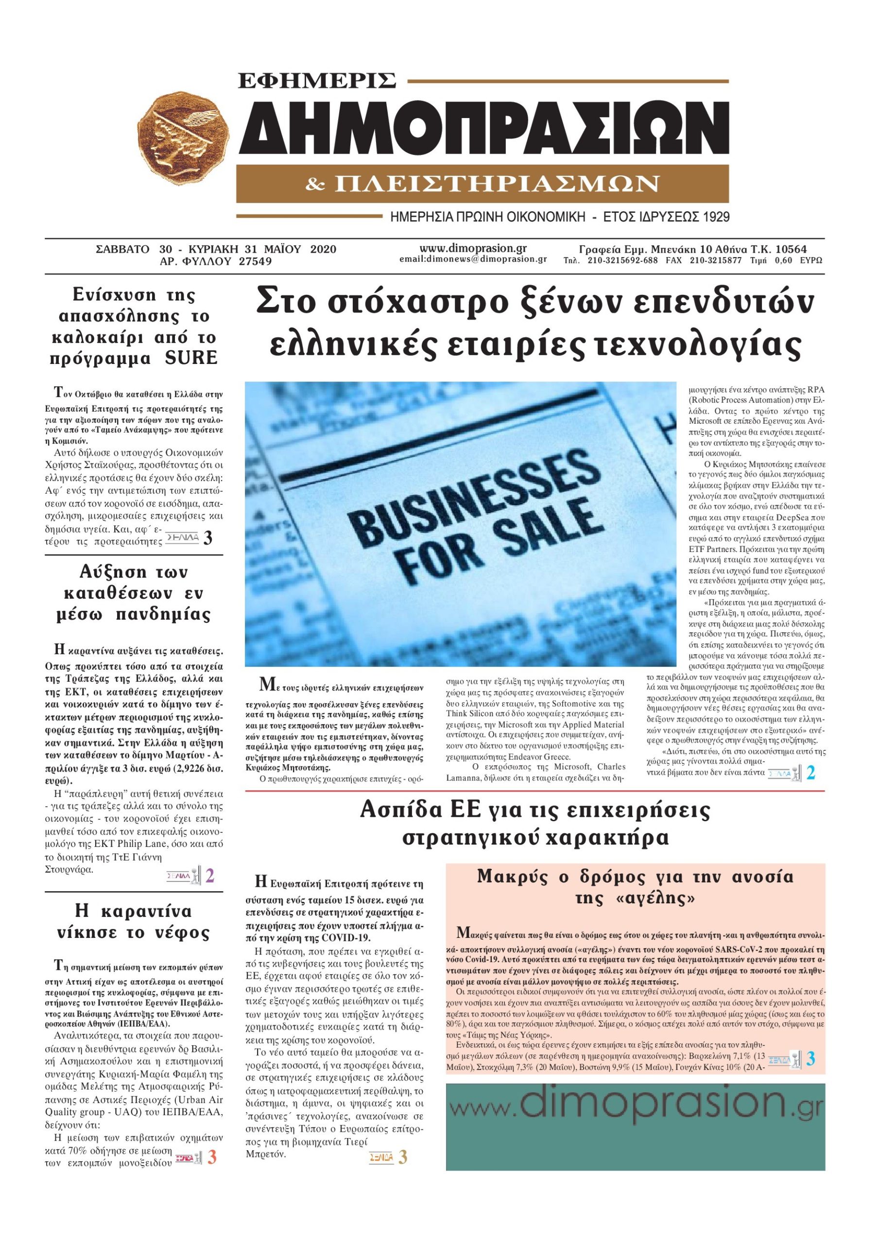 Οι οικονομικές εφημερίδες 30/5/2020 Διονύσης Νίκκας 07:43, Σάββατο 30 Μαΐου 2020 Media Διαβάστε τα πρωτοσέλιδα των οικονομικών εφημερίδων… ΟΙΚΟΝΟΜΙΚΕΣ ΕΦΗΜΕΡΙΔΕΣ Μοιράσου το: σχολίασε κι εσύ (0 σχόλια) Ακολουθήστε το enikos.gr στο Google News και μάθετε πρώτοι όλες τις ειδήσεις Δείτε όλες τις τελευταίες ειδήσεις από την Ελλάδα και τον Κόσμο στο enikos.gr Ειδήσεις Ροή Ειδήσεων 1 ώρα πριν Υπόθεση Έπσταϊν: Το Υπουργείο Δικαιοσύνης δημοσιοποίησε μια σειρά από εξαιρετικά επεξεργασμένα αρχεία – «Λείπουν τα πιο σημαντικά έγγραφα», λένε οι Δημοκρατικοί 29 λεπτά πριν Ο «χάρτης» με τις αυξήσεις και τις φοροελαφρύνσεις του 2026 – Ποιοι και πόσα κερδίζουν 10 ώρες πριν Χριστούγεννα στα μπλόκα: Επιμένουν στις κινητοποιήσεις τους οι αγρότες – Ανοίγουν τα διόδια το Σαββατοκύριακο 2 ώρες πριν ΟΝΕΧ – MEGATUGS: Ξεκίνησε η ναυπήγηση ρυμουλκών στην Ελλάδα – Προθάλαμος πολεμικών πλοίων – Δείτε φωτογραφίες και βίντεο 1 ώρα πριν Καιρός: Αλλαγή σκηνικού σήμερα με βροχές και πτώση της θερμοκρασίας – Οι προβλέψεις των μετεωρολόγων για τα Χριστούγεννα 3 ώρες πριν Αυγά: Πόσα μπορείτε να τρώτε την ημέρα με ασφάλεια για μέγιστη πρόσληψη πρωτεΐνης 4 ώρες πριν Τα ζώδια σήμερα, Σάββατο 20 Δεκεμβρίου: Παρθένοι, το σύμπαν σας δίνει το κλειδί 3 ώρες πριν Οπτική ψευδαίσθηση: Μόνο αν είσαι ο Σέρλοκ Χολμς θα βρεις τον αριθμό «87» σε 7 δευτερόλεπτα 1 ώρα πριν Αρχαιολόγοι ανακάλυψαν σε χωράφι απεικόνιση 600 ετών ενός Αγίου – Τα στοιχεία που δείχνουν ότι μαρτύρησε 32 δευτερόλεπτα πριν Παιδική υπέρταση: Μια σιωπηλή απειλή που αυξάνεται διεθνώς 1 λεπτό πριν Αγχώνεται για το χριστουγεννιάτικο δώρο που πήρε στην πλούσια σύντροφό του – «Φοβάμαι πως θα το βρει φθηνιάρικο, φοράει βραχιόλια Cartier» 8 λεπτά πριν Enerwave: Το νέο «ρεύμα» στη λιανική ενέργειας που αλλάζει την εμπειρία του καταναλωτή 13 λεπτά πριν Γιώργος Μαζωνάκης: Τη Δευτέρα η μήνυση του τραγουδιστή κατά του 22χρονου 22 λεπτά πριν Αμαλία Κωστοπούλου: Το μήνυμα για το χειρουργείο στο γόνατο – «Αυτός ο τραυματισμός μού στέρησε πολλά…» ENIKOS NETWORK Πόσα κιλά παίρνουμε πραγματικά τα Χριστούγεννα, σύμφωνα με την επιστήμη – Πώς να το αποτρέψουμε; Το δημοφιλές ρόφημα που αυξάνει την πίεση πιο γρήγορα και από το αλάτι Mega χριστουγεννιάτικη φορολοταρία: «Κλείδωσε» η ημερομηνία για την κλήρωση – Ερωτήσεις και απαντήσεις Αναστολή μέτρων αναγκαστικής εκτέλεσης για κτηνοτρόφους που πλήττονται από την ευλογιά των αιγοπροβάτων Χαρτογραφώντας το «σημείο χωρίς επιστροφή»: Για πρώτη φορά αποκαλύπτεται με λεπτομέρεια το ακανθώδες όριο της ατμόσφαιρας τ... Η Google καταργεί τη λειτουργία «dark web report» – Πώς θα μπορούν οι χρήστες να διαγράφουν τα δεδομένα τους περισσότερα 08:14 , Σάββατο 20 Δεκεμβρίου 2025 Τρομεροί γονείς: Η Μαρία Καβογιάννη εισβάλλει στο σπίτι της οικογένειας Στεφανίδη Όσα θα δούμε στο νέο διπλό επεισόδιο της σειράς «Τρομεροί γονείς», σήμερα Σάββατο 20 Δεκεμβρίο... 05:48 , Σάββατο 20 Δεκεμβρίου 2025 Οι οικονομικές εφημερίδες 20/12/2025 Διαβάστε τα πρωτοσέλιδα από τις οικονομικές εφημερίδες, σήμερα 20/12/2025. 05:43 , Σάββατο 20 Δεκεμβρίου 2025 Οι αθλητικές εφημερίδες 20/12/2025 Διαβάστε τα πρωτοσέλιδα από τις αθλητικές εφημερίδες, σήμερα 20/12/2025. 05:38 , Σάββατο 20 Δεκεμβρίου 2025 Οι πολιτικές εφημερίδες 20/12/2025 Διαβάστε τα πρωτοσέλιδα από τις πολιτικές εφημερίδες, σήμερα 20/12/2025. ΤΕΛΕΥΤΑΙΕΣ ΕΙΔΗΣΕΙΣ 8 λεπτά πριν Enerwave: Το νέο «ρεύμα» στη λιανική ενέργειας που αλλάζει... 13 λεπτά πριν Γιώργος Μαζωνάκης: Τη Δευ