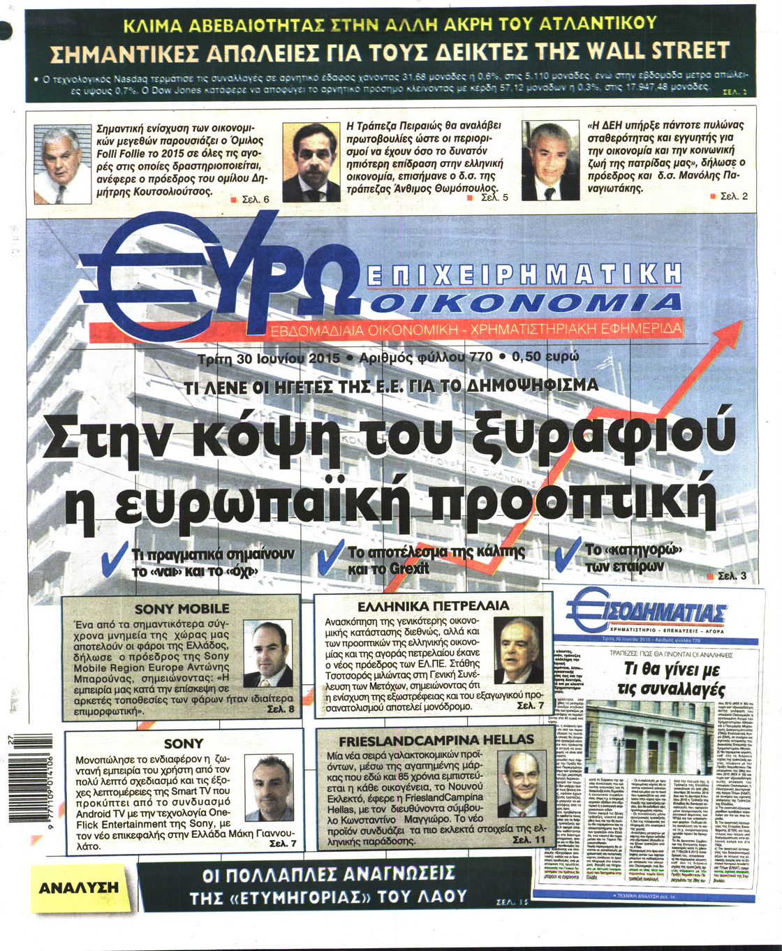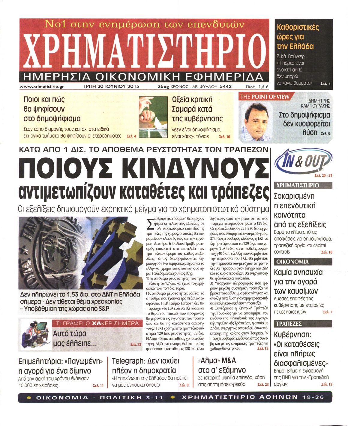 Oι οικονομικές εφημερίδες 30/6/2015 Enikos Newsroom 06:15, Τρίτη 30 Ιουνίου 2015 Media Διαβάστε τα σημερινά πρωτοσέλιδα των οικονομικών εφημερίδων: ΟΙΚΟΝΟΜΙΚΕΣ ΕΦΗΜΕΡΙΔΕΣ ΠΡΩΤΟΣΕΛΙΔΑ Μοιράσου το: σχολίασε κι εσύ (0 σχόλια) Ακολουθήστε το enikos.gr στο Google News και μάθετε πρώτοι όλες τις ειδήσεις Δείτε όλες τις τελευταίες ειδήσεις από την Ελλάδα και τον Κόσμο στο enikos.gr Ειδήσεις Ροή Ειδήσεων 20 λεπτά πριν ΣΥΡΙΖΑ: Διέγραψε τον ευρωβουλευτή Νίκο Παππά μετά την μήνυση δημοσιογράφου για ξυλοδαρμό 1 ώρα πριν Πώς στήθηκε η επιχείρηση «Ίπαλλος» που οδήγησε στη σύλληψη του «Έλληνα Εσκομπάρ» – «Ο πόλεμος ενάντια στους εμπόρους ναρκωτικών θα συνεχιστεί» 1 ώρα πριν Δίκη Χρυσής Αυγής: Την ενοχή και των 42 κατηγορουμένων ζητά η εισαγγελέας 1 ώρα πριν Κυψέλη: Στη φυλακή η 16χρονη που μαχαίρωσε συμμαθήτριά της 4 ώρες πριν Αμοργός: «Θα προσπαθήσω να το κάνω κάθε μέρα» – Ποιος είναι ο αγρότης που έστησε μόνος του το πρώτο μπλόκο στο νησί 1 ώρα πριν Τα 3 ζώδια που θα δουν τη ζωή τους να αλλάζει ριζικά το 2026 – «Όλα γίνονται καλύτερα σταδιακά» 6 ώρες πριν «Δεν είχα κλάψει από τότε που διαγνώστηκα με καρκίνο, ώσπου ένα τηλεφώνημα με έκανε να λυγίσω» – Η συγκλονιστική εξομολόγηση ενός άνδρα 2 ώρες πριν Ο σπάνιος σεισμός που έλυσε τα χέρια των επιστημόνων – Αποκάλυψε ακριβώς όσα αναζητούσαν 8 ώρες πριν 20 χρόνια τα Χριστούγεννα ξεκινούν στα Public με μεγάλη ποικιλία σε δώρα! 3 λεπτά πριν Μαργαρίτα Θεοδωράκη για Γιώργο Χατζιδάκι: Προσβλητικό το εξώδικο – Ο Μίκης έγραψε «απαγορεύεται το απαγορεύεται» 9 λεπτά πριν Ρόδος: Ανήλικος που βρισκόταν σε σχολική εκδρομή μεταφέρθηκε μεθυσμένος στο νοσοκομείο – 2 συλλήψεις 15 λεπτά πριν Γέννησε η Ευάννα Ζουμπούρογλου: «Είμαστε και οι δύο πολύ καλά – Είναι η πιο όμορφη όλου του κόσμου» 20 λεπτά πριν ΣΥΡΙΖΑ: Διέγραψε τον ευρωβουλευτή Νίκο Παππά μετά την μήνυση δημοσιογράφου για ξυλοδαρμό 22 λεπτά πριν Απολαυστικό «Ρουκ…Σουτ» με παίκτες του Παναθηναϊκού AKTOR – ΒΙΝΤΕΟ ENIKOS NETWORK Γιατί αναζητούμε τα Χριστούγεννα όλο και νωρίτερα; Ποιοι οι ψυχολογικοί και οι συναισθηματικοί λόγοι Σοβαροί κίνδυνοι από τη λάθος χορήγηση φαρμάκου για τις αιμορραγίες-Συστάσεις προς τους γιατρούς Δάνεια σε ελβετικό φράγκο: Αύριο η κατάθεση της τροπολογίας στη Βουλή – Όλες οι λεπτομέρειες Επίδομα παιδιού: Πότε θα δοθεί η τελευταία δόση για το 2025 από τον ΟΠΕΚΑ και τι πρέπει να γνωρίζετε Χαρτογραφώντας το «σημείο χωρίς επιστροφή»: Για πρώτη φορά αποκαλύπτεται με λεπτομέρεια το ακανθώδες όριο της ατμόσφαιρας τ... Η Google καταργεί τη λειτουργία «dark web report» – Πώς θα μπορούν οι χρήστες να διαγράφουν τα δεδομένα τους περισσότερα 12:35 , Τετάρτη 17 Δεκεμβρίου 2025 Μίρκα Παπακωνσταντίνου: «Δεν ήμουν αισιόδοξη για τα νούμερα – Είμαι ρεαλίστρια» Στα γυρίσματα του εορταστικού επεισοδίου της αγαπημένης σειράς “Το Σόι Σου”, βρέθηκε η κάμερα ... 12:12 , Τετάρτη 17 Δεκεμβρίου 2025 Ακούστε την εκπομπή του Νίκου Χατζηνικολάου 17/12/2025 Ακούστε την εκπομπή του Νίκου Χατζηνικολάου στον ραδιοφωνικό σταθμό RealFm 97,8, την Τετάρτη 1... 11:35 , Τετάρτη 17 Δεκεμβρίου 2025 Home Alone: Το σπίτι της ταινίας θα ανακαινιστεί – Επιστροφή στην αισθητική της δεκαετίας του ’90 Οι νέοι ιδιοκτήτες του πραγματικού σπιτιού που παρουσιάζεται στην κλασική ταινία του 1990 «Hom... 11:25 , Τετάρτη 17 Δεκεμβρίου 2025 Grand Hotel: Απόψε το τελευταίο επεισόδιο της χρονιάς – Όλα τα μυστικά μένουν εδώ Το τελευταίο επεισόδιο της χρονιάς της σειράς «Grand Hotel» θα προβληθεί απόψε σ