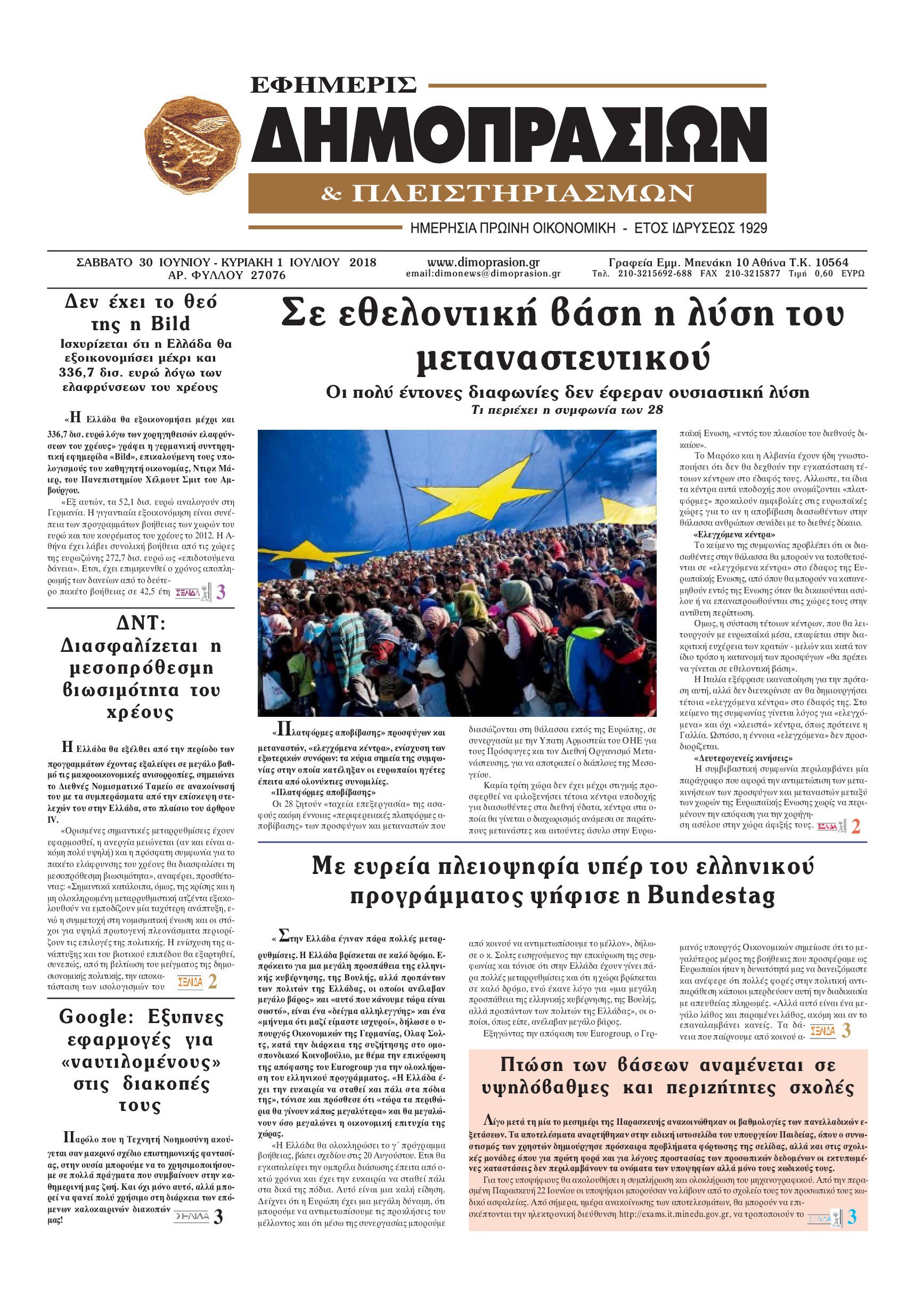 Οι οικονομικές εφημερίδες 30/6/2018 Enikos Newsroom 06:35, Σάββατο 30 Ιουνίου 2018 Media Διαβάστε τα πρωτοσέλιδα των οικονομικών εφημερίδων. ΟΙΚΟΝΟΜΙΚΕΣ ΕΦΗΜΕΡΙΔΕΣ ΠΡΩΤΟΣΕΛΙΔΑ Μοιράσου το: σχολίασε κι εσύ (0 σχόλια) Ακολουθήστε το enikos.gr στο Google News και μάθετε πρώτοι όλες τις ειδήσεις Δείτε όλες τις τελευταίες ειδήσεις από την Ελλάδα και τον Κόσμο στο enikos.gr Ειδήσεις Ροή Ειδήσεων 29 λεπτά πριν Μεσόγειος: Η διαδρομή του ρωσικού τάνκερ «Qendil» και η στοχευμένη επίθεση της Ουκρανίας με drone – Ο Πούτιν προειδοποίησε για αντίποινα 2 ημέρες πριν 20 χρόνια τα Χριστούγεννα ξεκινούν στα Public με μεγάλη ποικιλία σε δώρα! 1 ώρα πριν Από το Ορμένιο ως τα Μάλγαρα κι από τη Σιάτιστα μέχρι τη Νίκαια: Μπλόκα σε όλη την Ελλάδα – Το Σάββατο ανοίγουν τα διόδια οι αγρότες 1 ώρα πριν «Έλληνας Εσκομπάρ»: Φωτογραφίες με τους 4 τόνους κοκαΐνης που κατασχέθηκαν από το σκάφος «Ουρανία» 3 ώρες πριν Πούτιν: Σαρκαστικά μηνύματα, παράπονα και απρόοπτα στη συνέντευξη Τύπου – Η πρόταση γάμου on air και οι ερωτήσεις για τα αγγούρια και τους… εξωγήινους 2 ώρες πριν Τα 5 ζώδια που ευνοούνται στην ερωτική ζωή τους την επόμενη εβδομάδα – «Η ενέργεια του Αιγόκερου φέρνει αγάπη και σταθερότητα» 7 ώρες πριν Γεμάτος νεροχύτης; 5 σοβαρές ευθύνες που «φοβίζουν» όσους αφήνουν άπλυτα πιάτα 6 ώρες πριν Ειδικός μοιράζεται 6 κόλπα για να διατηρείστε σε φόρμα με πάνω από 40 ώρες εργασίας την εβδομάδα: «Προπονηθείτε πριν από τη δουλειά, όχι μετά» 23 λεπτά πριν Αττική: Θρίλερ με νεκρό βρέφος 5 μηνών – Κοιμόταν στο ίδιο κρεβάτι με τους γονείς του 2 λεπτά πριν Θεσσαλονίκη: Πατέρας εγκαλεί τον Ιατρικό Σύλλογο για ποινές «χάδι» σε γιατρό που κατηγορείται για τον θάνατο του παιδιού του 8 λεπτά πριν Κερατσίνι: Αστυνομικός εκτός υπηρεσίας απέτρεψε κλοπή μηχανών – Συνελήφθησαν τρεις ανήλικοι 12 λεπτά πριν Το σόι σου: Ο Άρης έρχεται στην Ελλάδα για τις γιορτές των Χριστουγέννων – Τι θα δούμε στο αποψινό εορταστικό επεισόδιο 19 λεπτά πριν ΠΑΣΟΚ σε Μαρινάκη: Δεν νομιμοποιούμε πολιτικές επιλογές που μεταφέρουν το πρόβλημα από υπηρεσία σε υπηρεσία 23 λεπτά πριν Αττική: Θρίλερ με νεκρό βρέφος 5 μηνών – Κοιμόταν στο ίδιο κρεβάτι με τους γονείς του ENIKOS NETWORK «Η σούπερ» γρίπη εξαπλώνεται στην Ευρώπη-Στοιχεία για την αποτελεσματικότητα του εμβολίου από το ECDC ΕΛΣΤΑΤ: Αύξηση κατά 1,7% των επαγγελματιών υγείας το 2024 Η απάντηση της κυβέρνησης στα αιτήματα των αγροτών: 16 έχουν ικανοποιηθεί, 4 βρίσκονται υπό επεξεργασία και 7 δεν είναι εφι... Μισθολογική διαφάνεια: Το 68% των εργαζομένων αγνοεί τη νέα οδηγία – Αναλυτικά τα στοιχεία έρευνας Χαρτογραφώντας το «σημείο χωρίς επιστροφή»: Για πρώτη φορά αποκαλύπτεται με λεπτομέρεια το ακανθώδες όριο της ατμόσφαιρας τ... Η Google καταργεί τη λειτουργία «dark web report» – Πώς θα μπορούν οι χρήστες να διαγράφουν τα δεδομένα τους περισσότερα 18:11 , Παρασκευή 19 Δεκεμβρίου 2025 Το σόι σου: Ο Άρης έρχεται στην Ελλάδα για τις γιορτές των Χριστουγέννων – Τι θα δούμε στο αποψινό εορταστικό επεισόδιο Ένα απολαυστικό, εορταστικό επεισόδιο της σειράς “Το σόι σου”, γεμάτο ευτράπελα αλ... 15:15 , Παρασκευή 19 Δεκεμβρίου 2025 Την Κυριακή με τη Realnews: Ό,τι και αν αγοράσεις, σκανάρεις και κερδίζεις! Την Κυριακή με τη Realnews: Ό,τι και αν αγοράσεις, σκανάρεις και κερδίζεις! Με το PADU app, το... 08:00 , Παρασκευή 19 Δεκεμβρίου 2025 Την Κυριακή με τη Realnews: Δωροεπιταγή 10€ Δωροεπιταγή αξίας 10€ για αγορές άνω των 60€ από τα πολυκαταστήματα FactoryOutlet H προσφορά ι... 05:48 , Πα