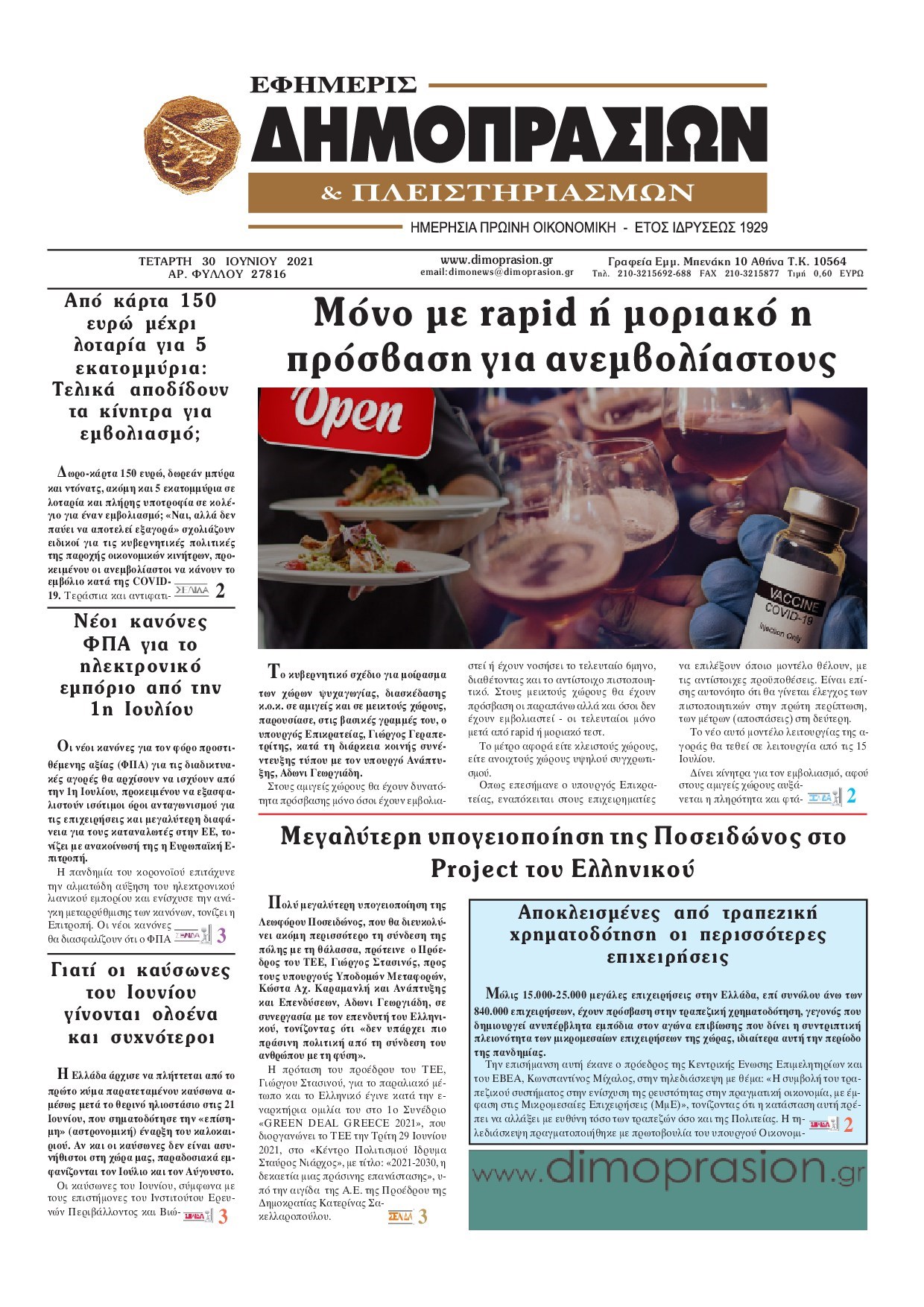 Οι οικονομικές εφημερίδες 30/6/2021 Διονύσης Νίκκας 06:55, Τετάρτη 30 Ιουνίου 2021 Media Διαβάστε τα πρωτοσέλιδα των οικονομικών εφημερίδων… ΟΙΚΟΝΟΜΙΚΕΣ ΕΦΗΜΕΡΙΔΕΣ Μοιράσου το: σχολίασε κι εσύ (0 σχόλια) Ακολουθήστε το enikos.gr στο Google News και μάθετε πρώτοι όλες τις ειδήσεις Δείτε όλες τις τελευταίες ειδήσεις από την Ελλάδα και τον Κόσμο στο enikos.gr Ειδήσεις Ροή Ειδήσεων 1 ώρα πριν LIVE από Λοριάν: Η ύψωση της ελληνικής σημαίας στην πρώτη φρεγάτα FDI Belharra ΚΙΜΩΝ 1 ώρα πριν Στην Ευελπίδων ο 22χρονος που καταγγέλλει τον Γιώργο Μαζωνάκη για ασελγείς πράξεις – «Έχουμε εμπιστοσύνη στη Δικαιοσύνη, καμία εκβίαση» λέει ο δικηγόρος του 19 λεπτά πριν Γαλλία: Η οργή των αγροτών – Αναμένεται η ομιλία του Μακρόν, τα τρακτέρ συγκεντρώνονται μαζικά στις Βρυξέλλες 3 ώρες πριν Νίκος Παππάς: Άφαντος παραμένει ο ευρωβουλευτής μετά την επίθεση στον Νίκο Γιαννόπουλο 4 ώρες πριν Συναγερμός και στην Ελλάδα για τη «σούπερ γρίπη»: Πόσο σοβαρή είναι και ποιοι θεωρούνται πιο ευάλωτοι – 3 ειδικοί μιλούν στο enikos.gr 4 ώρες πριν Τα 4 ζώδια που λαμβάνουν ένα ισχυρό σημάδι από το σύμπαν – «Αποκαλύπτεται κάτι που μπορεί να αλλάξει τη ζωή μας» 5 ώρες πριν Η σύζυγός του παραπονιέται για τα χρήματα που της δίνει για ψώνια κάθε μήνα – «Λέει ότι νιώθει φτωχή και της είπα να βρει δουλειά» 3 ώρες πριν Αν κάνετε συνεχώς αυτά τα 8 πράγματα με τα κατοικίδιά σας, σας λείπει η ανθρώπινη επαφή 1 ημέρα πριν 20 χρόνια τα Χριστούγεννα ξεκινούν στα Public με μεγάλη ποικιλία σε δώρα! 7 λεπτά πριν Βίντεο: Ένταση έξω από το Ευρωπαϊκό Κοινοβούλιο στις Βρυξέλλες – Η αστυνομία χρησιμοποιεί δακρυγόνα εναντίον των αγροτών 14 λεπτά πριν Μαρινάκης για Ζωή Κωνσταντοπούλου: Είναι η προσωποποίηση του φασισμού και του μισογυνισμού 19 λεπτά πριν Γαλλία: Η οργή των αγροτών – Αναμένεται η ομιλία του Μακρόν, τα τρακτέρ συγκεντρώνονται μαζικά στις Βρυξέλλες 25 λεπτά πριν Μπαρτζώκας: Πρέπει να διαχειριστούμε τα συναισθήματά μας, νομίζω ότι για αυτό χάσαμε το ματς με τη Βαλένθια 28 λεπτά πριν Το πιο ελπιδοφόρο χριστουγεννιάτικο δέντρο άναψε στο Ογκολογικό Νοσοκομείο Παίδων «Μαριάννα Β. Βαρδινογιάννη-ΕΛΠΙΔΑ» ENIKOS NETWORK 100 χρόνια ΠΙΣ: Ένας αιώνας προσφοράς στην Ιατρική και την κοινωνία Ένα ποτήρι την ημέρα από αυτόν τον χυμό μειώνει τη χοληστερίνη, τη φλεγμονή και την πίεση ΕΚΤ: Σήμερα η συνεδρίαση της Ευρωπαϊκής Κεντρικής Τράπεζας για τα επιτόκια – Τι λένε οι αναλυτές Χριστουγεννιάτικο τραπέζι: Πόσο θα κοστίσει φέτος – Σε ποια είδη τραβούν… την ανηφόρα οι τιμές Χαρτογραφώντας το «σημείο χωρίς επιστροφή»: Για πρώτη φορά αποκαλύπτεται με λεπτομέρεια το ακανθώδες όριο της ατμόσφαιρας τ... Η Google καταργεί τη λειτουργία «dark web report» – Πώς θα μπορούν οι χρήστες να διαγράφουν τα δεδομένα τους περισσότερα 08:00 , Πέμπτη 18 Δεκεμβρίου 2025 Την Κυριακή με τη Realnews: Δωροεπιταγή 10€ Δωροεπιταγή αξίας 10€ για αγορές άνω των 60€ από τα πολυκαταστήματα FactoryOutlet H προσφορά ι... 07:50 , Πέμπτη 18 Δεκεμβρίου 2025 «Το σόι σου»: Backstage στα γυρίσματα για το εορταστικό επεισόδιο «Το σόι σου» φορά τα γιορτινά του για τα Χριστούγεννα και η Όλγα Λαφαζάνη, με την κάμερα του «... 07:36 , Πέμπτη 18 Δεκεμβρίου 2025 Οι αθλητικές μεταδόσεις 18/12/2025 – Πού θα δείτε τον αγώνα της ΑΕΚ με την Κραϊόβα για το Conference League Τα ματς ΑΕΚ – Ουνιβερσιτάτεα Κραϊόβα για το Conference League και Παναθηναϊκός – Χάποελ Τελ Αβ... 05:48 , Πέμπτη 18 Δεκεμβρίου 2025 Οι οικονομικές εφημερίδες 18/12/2025 Διαβάστε τα πρωτοσέλιδα από τις οικονομικές 