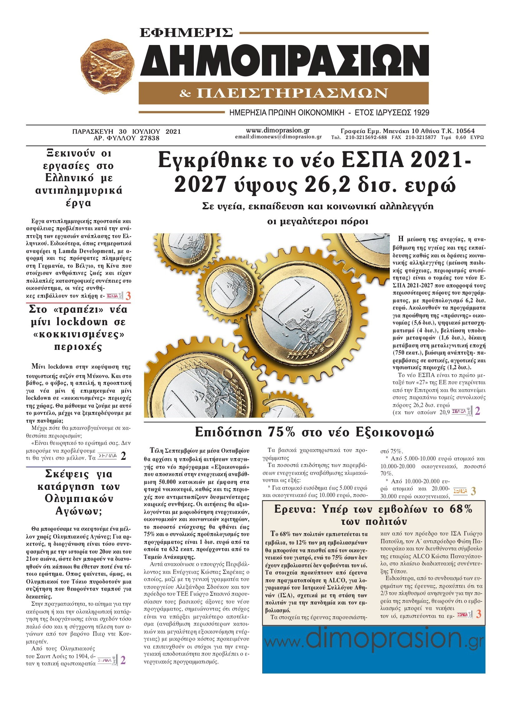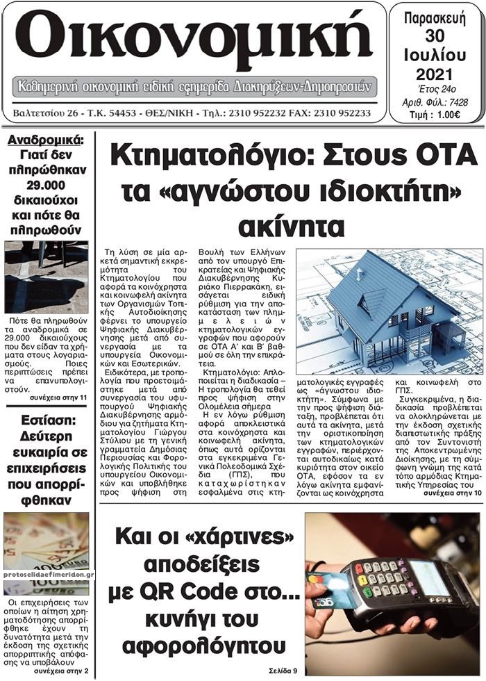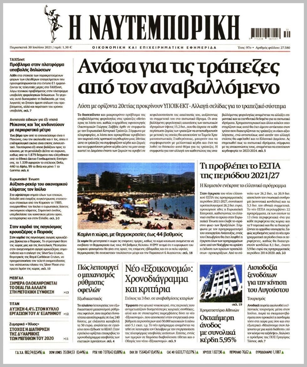 Οι οικονομικές εφημερίδες 30/7/2021 Διονύσης Νίκκας 06:52, Παρασκευή 30 Ιουλίου 2021 Media Διαβάστε τα πρωτοσέλιδα των οικονομικών εφημερίδων… ΟΙΚΟΝΟΜΙΚΕΣ ΕΦΗΜΕΡΙΔΕΣ Μοιράσου το: σχολίασε κι εσύ (0 σχόλια) Ακολουθήστε το enikos.gr στο Google News και μάθετε πρώτοι όλες τις ειδήσεις Δείτε όλες τις τελευταίες ειδήσεις από την Ελλάδα και τον Κόσμο στο enikos.gr Ειδήσεις Ροή Ειδήσεων 2 ώρες πριν LIVE από Λοριάν: Η ύψωση της ελληνικής σημαίας στην πρώτη φρεγάτα FDI Belharra ΚΙΜΩΝ 2 ώρες πριν Γιώργος Μαζωνάκης: «Δεν ζήτησα χρήματα, παρά μόνο ηθική δικαίωση» – Οι πρώτες δηλώσεις του 22χρονου μετά την κατάθεση της μήνυσης 32 λεπτά πριν Δίκη Βαλυράκη: Καταθέτει ο βασικός αυτόπτης μάρτυρας – «Δέχτηκα πιέσεις να μη μιλήσω, πήγα να ψωνίσω και αυτοκίνητο με χτύπησε στο πόδι» 2 ώρες πριν Γαλλία: Η οργή των αγροτών – Αναμένεται η ομιλία του Μακρόν, τα τρακτέρ συγκεντρώνονται μαζικά στις Βρυξέλλες 5 ώρες πριν Συναγερμός και στην Ελλάδα για τη «σούπερ γρίπη»: Πόσο σοβαρή είναι και ποιοι θεωρούνται πιο ευάλωτοι – 3 ειδικοί μιλούν στο enikos.gr 6 ώρες πριν Τα 4 ζώδια που λαμβάνουν ένα ισχυρό σημάδι από το σύμπαν – «Αποκαλύπτεται κάτι που μπορεί να αλλάξει τη ζωή μας» 5 ώρες πριν Αν κάνετε συνεχώς αυτά τα 8 πράγματα με τα κατοικίδιά σας, σας λείπει η ανθρώπινη επαφή 38 λεπτά πριν Αυτό που κρύβεται κάτω από τη Γροιλανδία θα μπορούσε να ανατρέψει όσα γνωρίζουμε για την άνοδο της στάθμης των θαλασσών 1 ημέρα πριν 20 χρόνια τα Χριστούγεννα ξεκινούν στα Public με μεγάλη ποικιλία σε δώρα! 5 λεπτά πριν ΑΕΚ – Κραϊόβα: Ώρα πρόκρισης στους «16» για την Ένωση 11 λεπτά πριν Θεσσαλονίκη: Εξάρθρωση κυκλώματος trafficking με θύματα γυναίκες από τη Λατινική Αμερική – 15 συλλήψεις, ανάμεσά τους και 3 αδέλφια 18 λεπτά πριν Άγιος έρωτας – Η Ελευθερία Αρβανιτάκη τραγουδά και ο Γιάννης Τσορτέκης καθηλώνει με τον χορό του 22 λεπτά πριν Ώρα αποφάσεων για τους αγρότες – Ξεκίνησε η πανελλαδική σύσκεψη μπλόκων στις Σέρρες – ΦΩΤΟ 28 λεπτά πριν Αλβανία: Συγκρούσεις μέσα στο κοινοβούλιο – Bουλευτές άναψαν φωτοβολίδες και πέταξαν νερό στον πρόεδρο της Βουλής – Δείτε βίντεο ENIKOS NETWORK 100 χρόνια ΠΙΣ: Ένας αιώνας προσφοράς στην Ιατρική και την κοινωνία Ένα ποτήρι την ημέρα από αυτόν τον χυμό μειώνει τη χοληστερίνη, τη φλεγμονή και την πίεση ΑΑΔΕ: Έρχεται το… ΔΕΟΣ – Όλες οι λεπτομέρειες για τον ενιαίο ελεγκτικό μηχανισμό για το οικονομικό έγκλημα e-ΕΦΚΑ: Μέχρι πότε πρέπει να γίνει επιλογή ασφαλιστικής κατηγορίας για το 2026 – Τι πρέπει να γνωρίζετε Χαρτογραφώντας το «σημείο χωρίς επιστροφή»: Για πρώτη φορά αποκαλύπτεται με λεπτομέρεια το ακανθώδες όριο της ατμόσφαιρας τ... Η Google καταργεί τη λειτουργία «dark web report» – Πώς θα μπορούν οι χρήστες να διαγράφουν τα δεδομένα τους περισσότερα 15:20 , Πέμπτη 18 Δεκεμβρίου 2025 Άγιος έρωτας – Η Ελευθερία Αρβανιτάκη τραγουδά και ο Γιάννης Τσορτέκης καθηλώνει με τον χορό του Ο Κλεάνθης χορεύει στους ήχους της Ελευθερίας Αρβανιτάκη στη σειρά “Άγιος Έρωτας“.... 08:00 , Πέμπτη 18 Δεκεμβρίου 2025 Την Κυριακή με τη Realnews: Δωροεπιταγή 10€ Δωροεπιταγή αξίας 10€ για αγορές άνω των 60€ από τα πολυκαταστήματα FactoryOutlet H προσφορά ι... 07:50 , Πέμπτη 18 Δεκεμβρίου 2025 «Το σόι σου»: Backstage στα γυρίσματα για το εορταστικό επεισόδιο «Το σόι σου» φορά τα γιορτινά του για τα Χριστούγεννα και η Όλγα Λαφαζάνη, με την κάμερα του «... 07:36 , Πέμπτη 18 Δεκεμβρίου 2025 Οι αθλητικές μεταδόσεις 18/12/2025 – Πού θα δείτε τον αγώνα της ΑΕΚ με την Κραϊόβα για το Conference League Τα μ