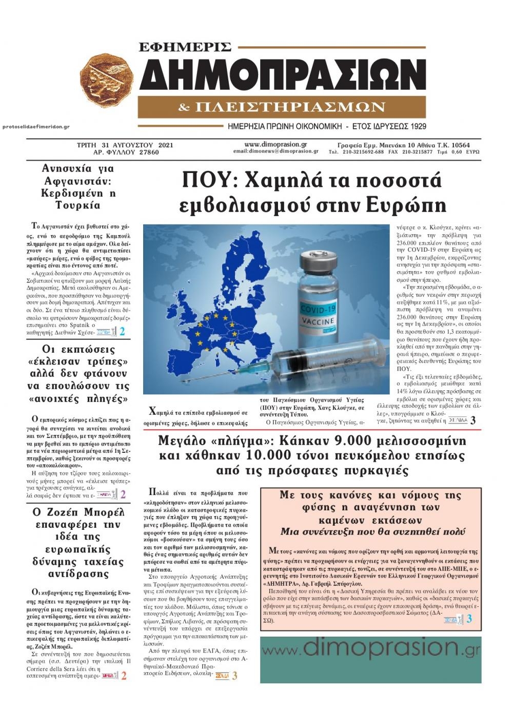 Οι οικονομικές εφημερίδες 31/8/2021 Σήφης Γαρυφαλάκης 06:09, Τρίτη 31 Αυγούστου 2021 Media Διαβάστε τα πρωτοσέλιδα των οικονομικών εφημερίδων. ΕΦΗΜΕΡΙΔΕΣ ΟΙΚΟΝΟΜΙΚΕΣ ΕΦΗΜΕΡΙΔΕΣ ΠΡΩΤΟΣΕΛΙΔΑ Μοιράσου το: σχολίασε κι εσύ (0 σχόλια) Ακολουθήστε το enikos.gr στο Google News και μάθετε πρώτοι όλες τις ειδήσεις Δείτε όλες τις τελευταίες ειδήσεις από την Ελλάδα και τον Κόσμο στο enikos.gr Ειδήσεις Ροή Ειδήσεων 27 λεπτά πριν Την πρώτη Belharra παρέλαβε η χώρα μας, υψώθηκε η ελληνική σημαία στη φρεγάτα «Κίμων» – Δένδιας: «Το ισχυρότερο Πολεμικό Ναυτικό που είχε ποτέ ο ελληνισμός» 3 ώρες πριν Γιώργος Μαζωνάκης: «Δεν ζήτησα χρήματα, παρά μόνο ηθική δικαίωση» – Οι πρώτες δηλώσεις του 21χρονου μετά την κατάθεση της μήνυσης 2 ώρες πριν Δίκη Βαλυράκη: Καταθέτει ο βασικός αυτόπτης μάρτυρας – «Δέχτηκα πιέσεις να μη μιλήσω, πήγα να ψωνίσω και αυτοκίνητο με χτύπησε στο πόδι» 2 ώρες πριν Ώρα αποφάσεων για τους αγρότες – Ξεκίνησε η πανελλαδική σύσκεψη μπλόκων στις Σέρρες – ΦΩΤΟ 6 ώρες πριν Συναγερμός και στην Ελλάδα για τη «σούπερ γρίπη»: Πόσο σοβαρή είναι και ποιοι θεωρούνται πιο ευάλωτοι – 3 ειδικοί μιλούν στο enikos.gr 53 λεπτά πριν Τα 5 ζώδια που θα ευνοηθούν στα οικονομικά τους το 2026 – «Τραβούν το χρήμα σαν μαγνήτες» 6 ώρες πριν Αν κάνετε συνεχώς αυτά τα 8 πράγματα με τα κατοικίδιά σας, σας λείπει η ανθρώπινη επαφή 2 ώρες πριν Αυτό που κρύβεται κάτω από τη Γροιλανδία θα μπορούσε να ανατρέψει όσα γνωρίζουμε για την άνοδο της στάθμης των θαλασσών 1 ημέρα πριν 20 χρόνια τα Χριστούγεννα ξεκινούν στα Public με μεγάλη ποικιλία σε δώρα! 3 λεπτά πριν Να μ’ αγαπάς: Ζωή και Φωτεινή συμφιλιώνονται ως μάνα με κόρη, απόψε στις 20:00 8 λεπτά πριν Εξώδικο Γεωργιάδη στην Κωνσταντοπούλου – «Με κατηγόρησε ότι έχω καταδικαστεί για παιδεραστία» 13 λεπτά πριν Εξεταστική για ΟΠΕΚΕΠΕ – Μπρατάκος: «Δεν μου τέθηκε ζήτημα για πιέσεις από τον κ. Αυγενάκη ή οποιονδήποτε» – Τι είπε για τον Σημανδράκο 14 λεπτά πριν ΤΕΧΑΝ: 1ο Πανελλήνιο Σχολικό Πρωτάθλημα Ανακύκλωσης Δευτεροβάθμιας Εκπαίδευσης 18 λεπτά πριν Τραυματίστηκε 5χρονο παιδί σε νηπιαγωγείο στο Αγρίνιο – Χτυπήθηκε από αντικείμενο που έπεσε από έπιπλο ENIKOS NETWORK 100 χρόνια ΠΙΣ: Ένας αιώνας προσφοράς στην Ιατρική και την κοινωνία Ένα ποτήρι την ημέρα από αυτόν τον χυμό μειώνει τη χοληστερίνη, τη φλεγμονή και την πίεση Κρατική επιχορήγηση έως 14.500 ευρώ: Ποιοι θα λάβουν από σήμερα την προκαταβολή στον τραπεζικό λογαριασμό τους Αυτόματη απόδοση ΦΠΑ: Τα δύο σενάρια που επεξεργάζεται η ΑΑΔΕ Χαρτογραφώντας το «σημείο χωρίς επιστροφή»: Για πρώτη φορά αποκαλύπτεται με λεπτομέρεια το ακανθώδες όριο της ατμόσφαιρας τ... Η Google καταργεί τη λειτουργία «dark web report» – Πώς θα μπορούν οι χρήστες να διαγράφουν τα δεδομένα τους περισσότερα 16:50 , Πέμπτη 18 Δεκεμβρίου 2025 Να μ’ αγαπάς: Ζωή και Φωτεινή συμφιλιώνονται ως μάνα με κόρη, απόψε στις 20:00 Η ταυτότητα του Άγγελου αποκαλύπτεται στο νέο επεισόδιο της σειράς “Να μ’ αγαπάς... 15:52 , Πέμπτη 18 Δεκεμβρίου 2025 Το Σπίτι Δίπλα Στο Ποτάμι: Το καθηλωτικό τελευταίο επεισόδιο για το 2025 απόψε στις 22:30 Καθηλώνει το σημερινό επεισόδιο της σειράς “Το Σπίτι Δίπλα Στο Ποτάμι” που έρχεται... 15:20 , Πέμπτη 18 Δεκεμβρίου 2025 Άγιος έρωτας – Η Ελευθερία Αρβανιτάκη τραγουδά και ο Γιάννης Τσορτέκης καθηλώνει με τον χορό του Ο Κλεάνθης χορεύει στους ήχους της Ελευθερίας Αρβανιτάκη στη σειρά “Άγιος Έρωτας“.... 08:00 , Πέμπτη 18 Δεκεμβρίου 2025 Την Κυριακή με τη Realnews: Δωροεπιταγή 10€ 