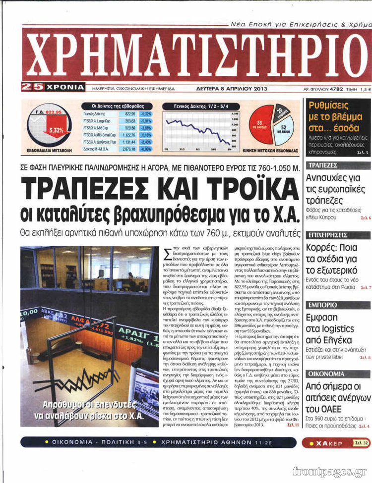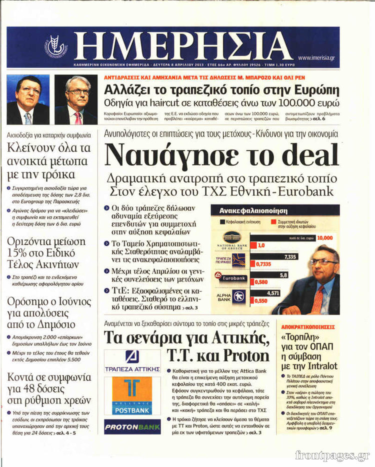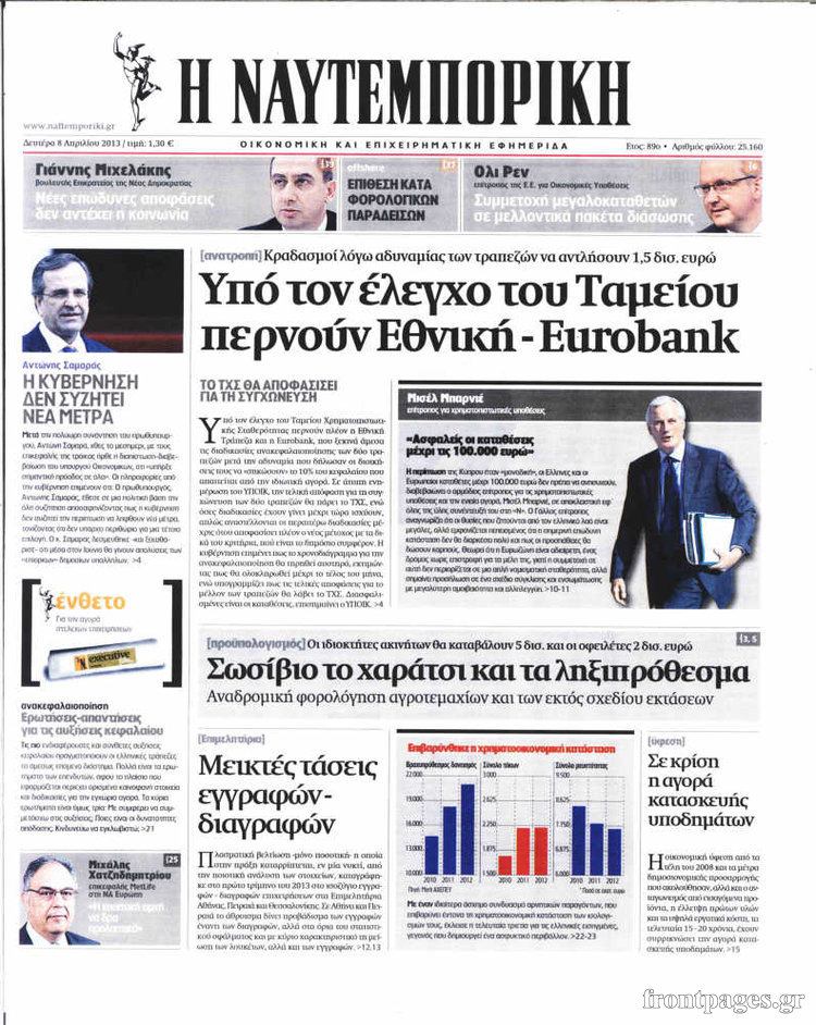 Οι οικονομικές εφημερίδες Enikos Newsroom 08:56, Δευτέρα 08 Απριλίου 2013 Media Οι οικονομικές εφημερίδες Τα πρωτοσέλιδα των οικονομικών εφημερίδων. ΕΦΗΜΕΡΙΔΕΣ ΟΙΚΟΝΟΜΙΚΕΣ ΕΦΗΜΕΡΙΔΕΣ ΠΡΩΤΟΣΕΛΙΔΑ Μοιράσου το: σχολίασε κι εσύ (0 σχόλια) Ακολουθήστε το enikos.gr στο Google News και μάθετε πρώτοι όλες τις ειδήσεις Δείτε όλες τις τελευταίες ειδήσεις από την Ελλάδα και τον Κόσμο στο enikos.gr Ειδήσεις Ροή Ειδήσεων 6 ώρες πριν Μακελειό στο Σίδνεϊ: Πατέρας και γιος οι δράστες της τρομοκρατικής επίθεσης – Γιατί η Αυστραλία βάζει στο στόχαστρο το Ιράν 6 ώρες πριν Μακελειό στην Αυστραλία: «Πέρασαν οι σφαίρες πάνω από το αυτοκίνητο» – Συγκλονίζει η μαρτυρία Έλληνα που ζει στο Σίδνεϊ 5 ώρες πριν Τρομοκρατική επίθεση στο Σίδνεϊ: «Το αναπόφευκτο συνέβη πλέον» – Πώς οι δράστες είχαν χάσει τον ανθρωπισμό τους πριν πατήσουν την σκανδάλη 5 ώρες πριν Όλα τα αιτήματα αγροτών, κτηνοτρόφων και μελισσοκόμων προς την κυβέρνηση – Παραμένουν στα μπλόκα και προαναγγέλλουν κλιμάκωση 8 ώρες πριν Λακωνία: Βίντεο ντοκουμέντο από την επιχείρηση διάσωσης της 13χρονης που έπεσε σε πηγάδι – Ποια ήταν τα πρώτα λόγια της 7 ώρες πριν Ύπνος: 5 λόγοι για τους οποίους ξυπνάτε κουρασμένοι το πρωί κατά τη διάρκεια του χειμώνα 10 ώρες πριν Οι 7 βραδινές συνήθειες που μαρτυρούν ότι κάποιος υποφέρει από βαθιά μοναξιά, σύμφωνα με την ψυχολογία 18 ώρες πριν Τα 8 πράγματα που τα ευτυχισμένα ζευγάρια δεν κάνουν ποτέ μπροστά στα παιδιά τους 9 ώρες πριν Κουζίνα: Η καθημερινή συνήθεια των ανθρώπων που την διατηρούν πάντα καθαρή 3 λεπτά πριν Νότια Κορέα: Ο πρώην πρόεδρος Γιούν Σουκ-Γέολ κατηγορείται για πρόκληση της Βόρειας Κορέας σε στρατιωτική επίθεση 19 λεπτά πριν Γιάννης Σμαραγδής: «Έχω αισθανθεί τον χρωματισμό της ψυχής του Καποδίστρια» 34 λεπτά πριν Δήμητρα Αλεξανδράκη: «Έκλεισε ένα κεφάλαιο της ζωής μου άγρια και άδικα» 49 λεπτά πριν Δημήτρης Καπουράνης: «Ο παππούς και η γιαγιά μου ήταν οι γονείς μου» 1 ώρα πριν Ιράν: Σταθερή και αποφασιστική υποστήριξη στη Χεζμπολάχ στον αγώνα της κατά του Ισραήλ ENIKOS NETWORK 8 κορυφαίες συμβουλές για άνδρες που θέλουν φλογερή σεξουαλική ζωή, σύμφωνα με ειδικό Baby botox: Ποια τα οφέλη και οι κίνδυνοι του να ξεκινήσει κάποιος τις ενέσεις πριν εμφανιστούν ρυτίδες Τέλος οι διώξεις για χρέη σε Εφορία και ΕΦΚΑ – Τι προβλέπει νέα διάταξη μετά την πτώχευση Υπουργείο Αγροτικής Ανάπτυξης: Ενισχύσεις de minimis ύψους 2,1 εκατ. ευρώ – Οι δικαιούχοι Σύγχρονος Νοστράδαμος: Προειδοποιεί για «μεγάλο γεγονός» τους επόμενους μήνες που θα συγκλονίσει τη Βρετανία και τον κόσμο Τεστ παρατηρητικότητας: Μπορείτε να βρείτε τις 3 διαφορές στις εικόνες με έναν πιγκουίνο σε 14 δευτερόλεπτα περισσότερα 21:34 , Κυριακή 14 Δεκεμβρίου 2025 Ο Δικαστής: Η Λέττα είναι αποφασισμένη να αποκαλύψει την αλήθεια για το τροχαίο, απόψε στις 21:45 στον ΑΝΤ1 Ραγδαίες οι εξελίξεις στο νέο επεισόδιο της σειράς “Ο Δικαστής” απόψε στις 21:45 σ... 17:38 , Κυριακή 14 Δεκεμβρίου 2025 Τηλεθέαση (13/12): Τα ποσοστά για το βράδυ του Σαββάτου Η «μάχη» της prime time για την τηλεθέαση, συνεχίστηκε δυναμικά το βράδυ του Σαββάτου (13/12).... 16:32 , Κυριακή 14 Δεκεμβρίου 2025 Τηλεθέαση (13/12): Πώς κινήθηκαν οι εκπομπές στην πρωινή ζώνη το Σάββατο Με αμείωτη ένταση συνεχίστηκε η μάχη για την τηλεθέαση στην πρωινή ζώνη των τηλεοπτικών καναλι... 15:07 , Κυριακή 14 Δεκεμβρίου 2025 IQ160: Η Μαρίνα στέλνει το φούτερ του Τηλέμαχου για το τεστ πατρότητας Η Πηνελόπη αποφασίζει να κάνει αμνιοπαρακέντηση,